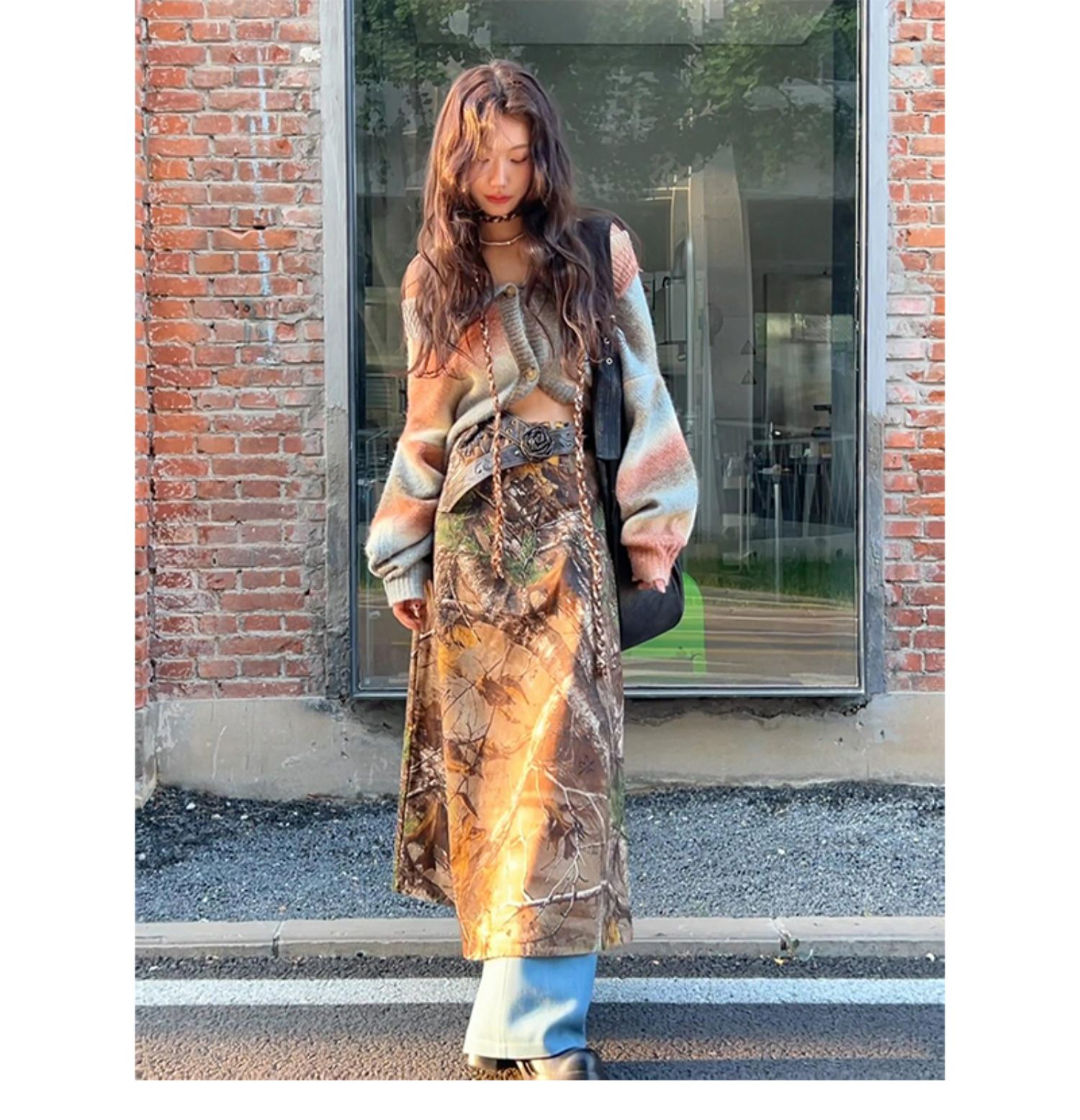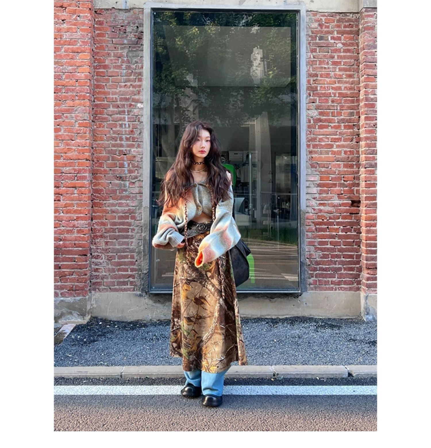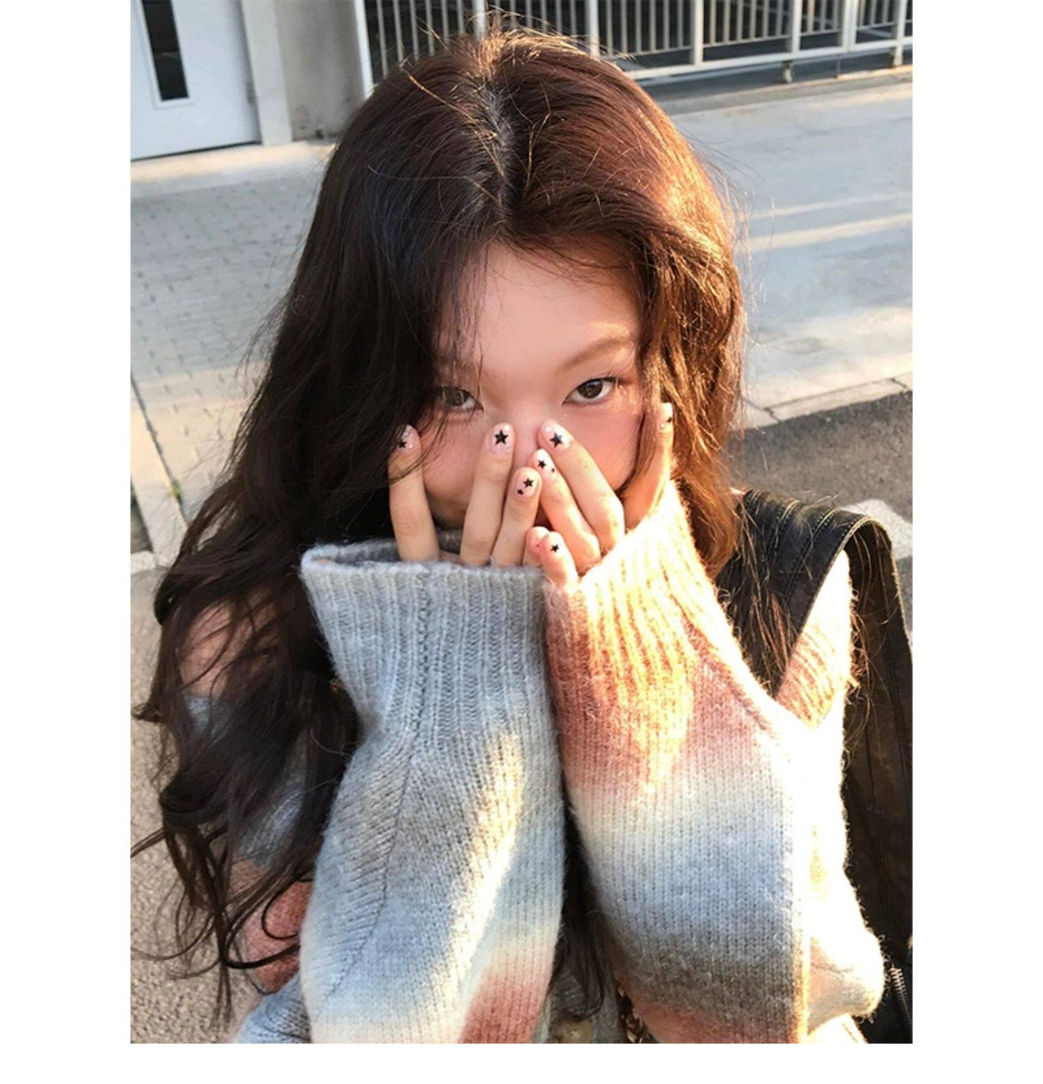 Turn up/陳腿兒 漸變條紋一字肩針織開衫女慵懶風辣妹兩穿毛衣ins