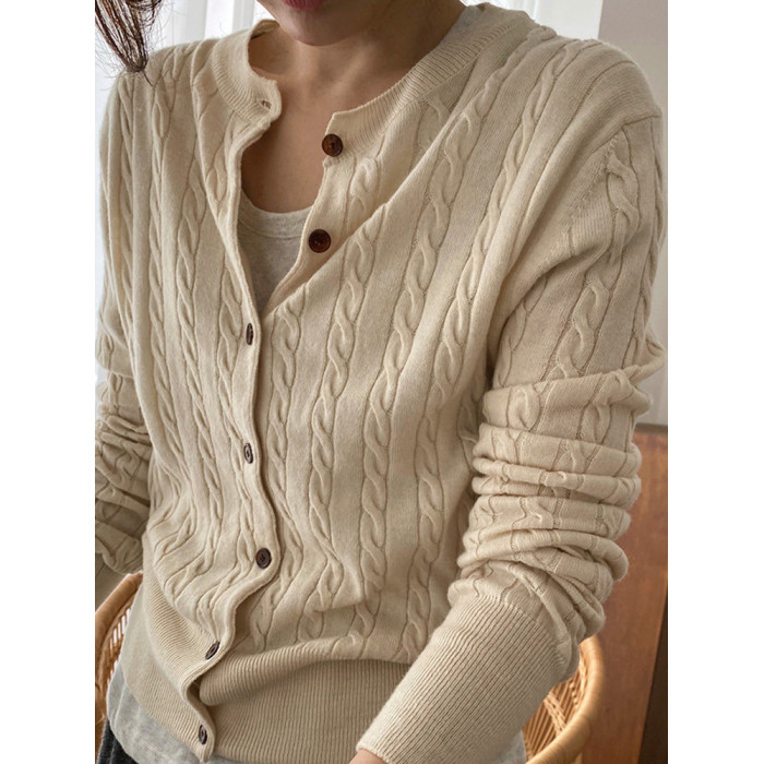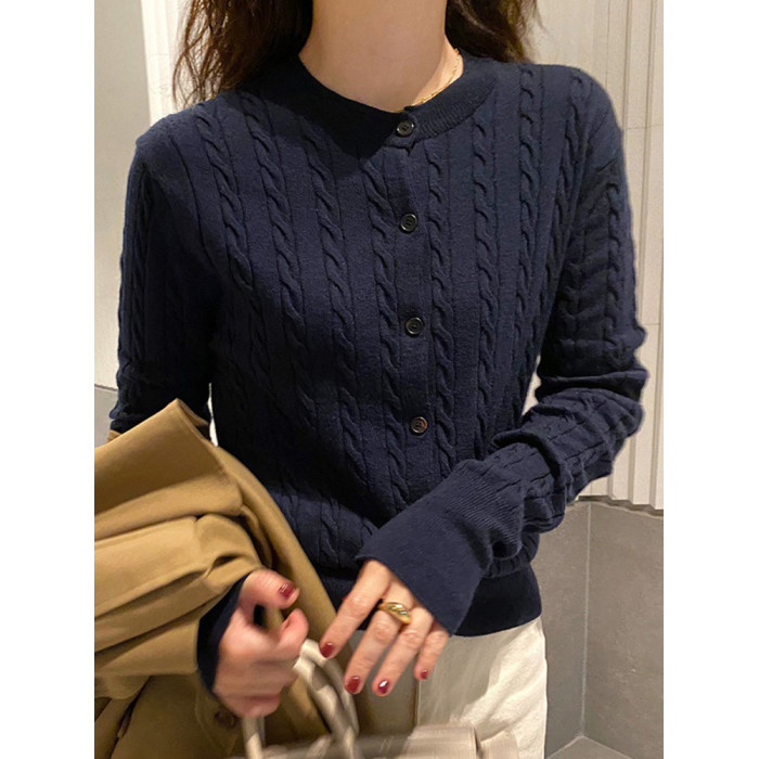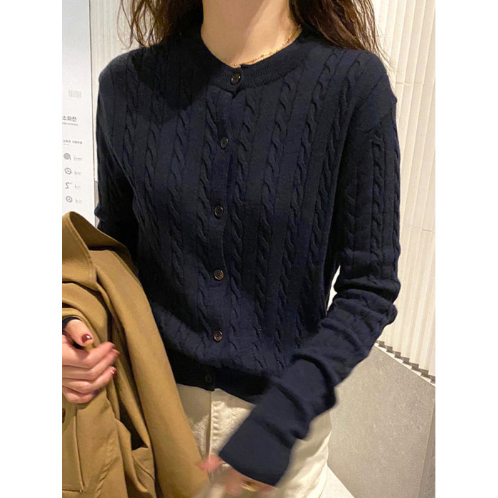 麻花毛衣外套女針織衫2025春秋新款圓領外搭開衫秋冬內搭打底上衣