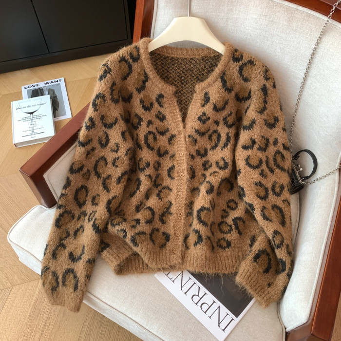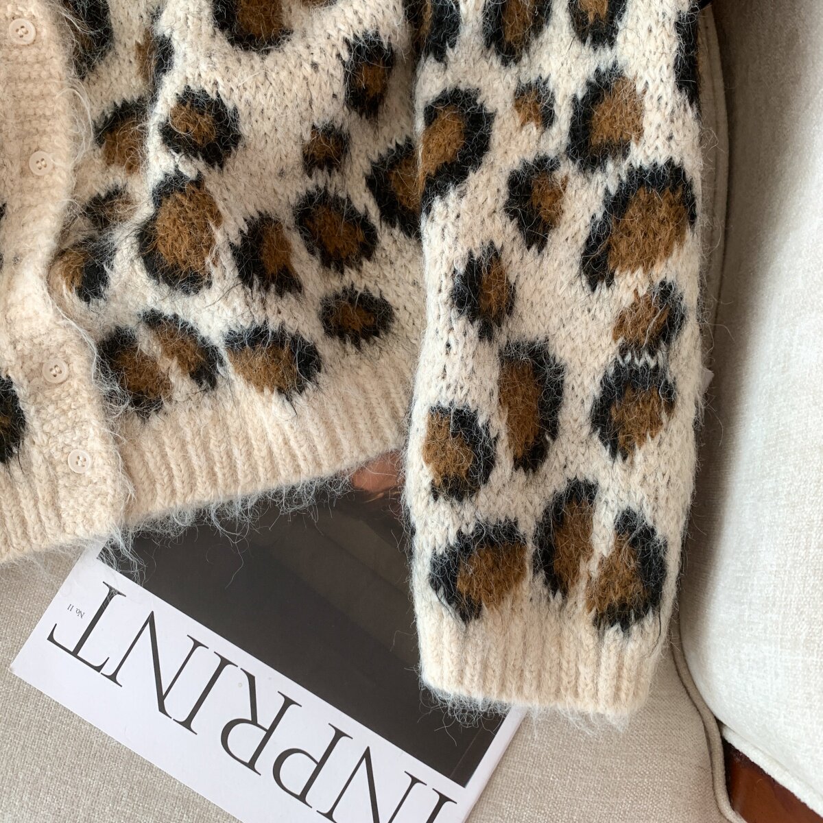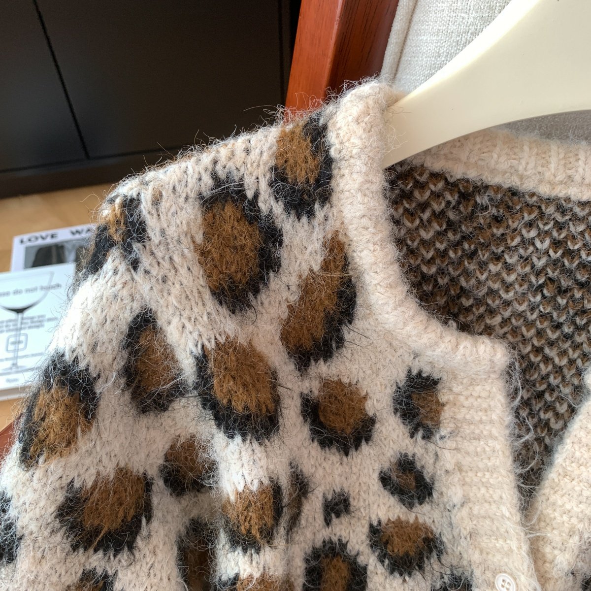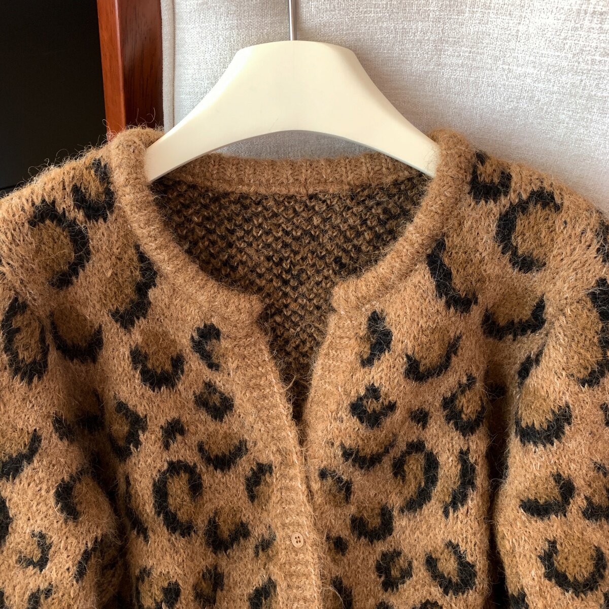 美式慵懶軟糯豹紋開衫外套毛衣女秋冬設計感洋氣寬松針織衫上衣潮
