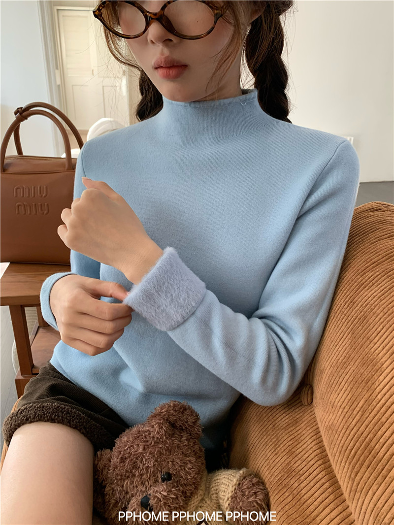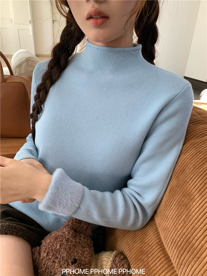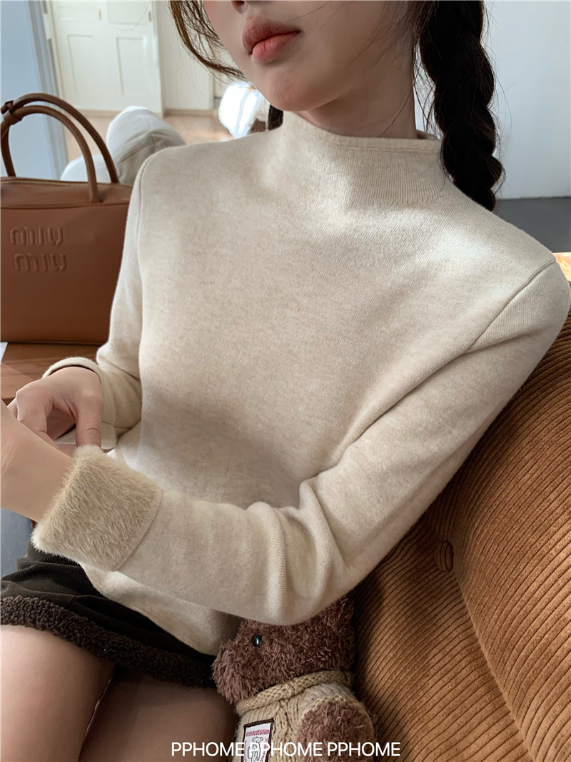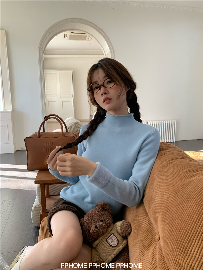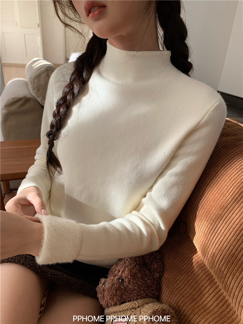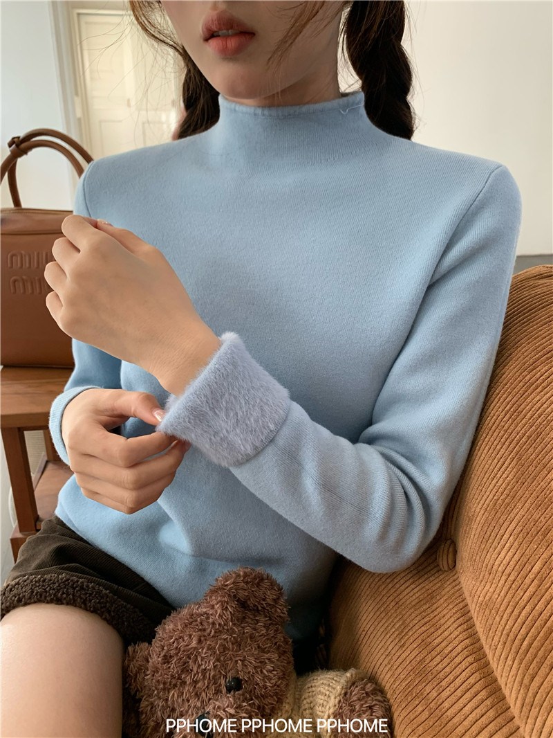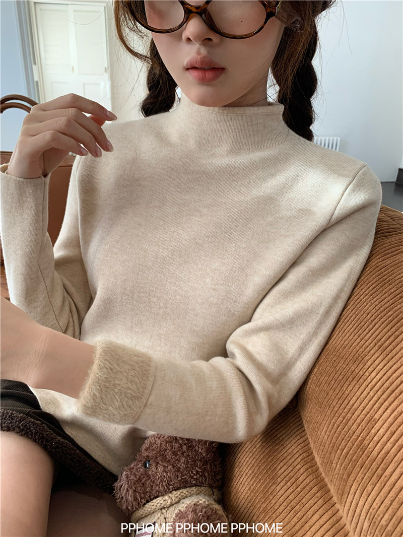 PPHOME自製~仿水貂毛打底衫 冬季半高領百搭保暖毛絨絨針織衫毛衣