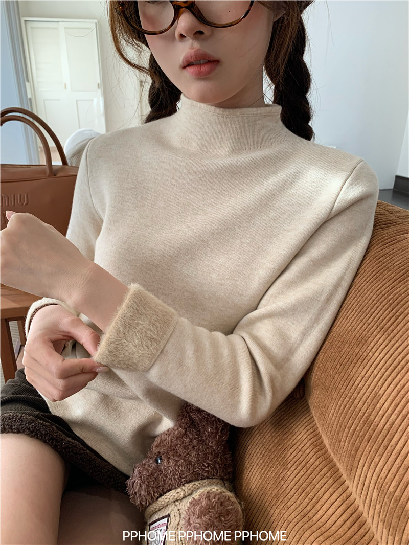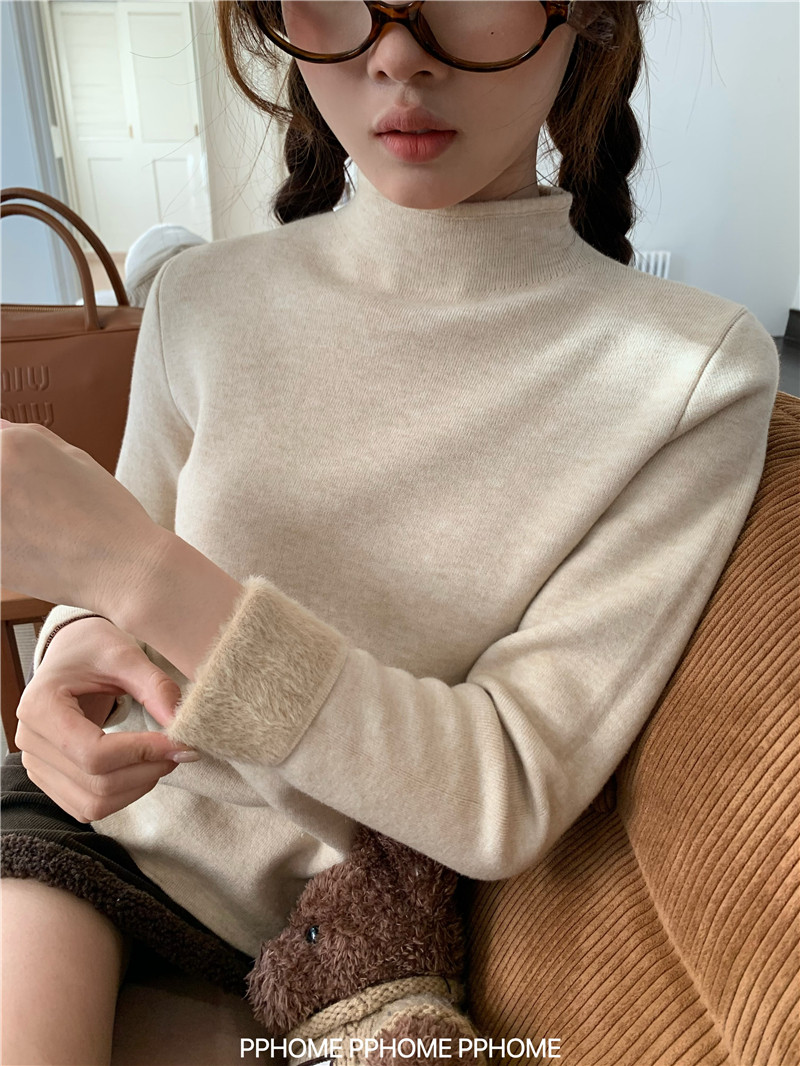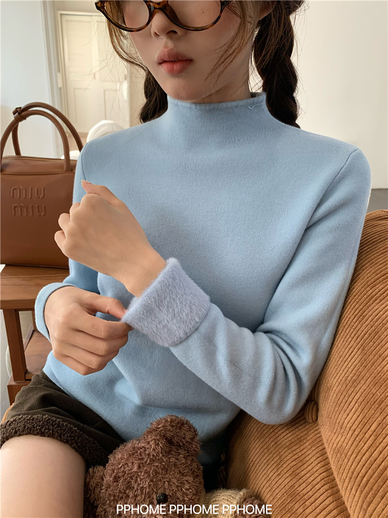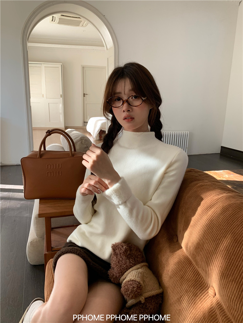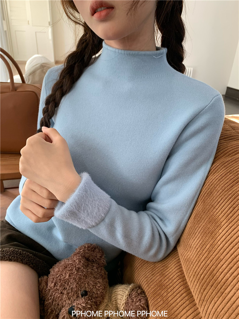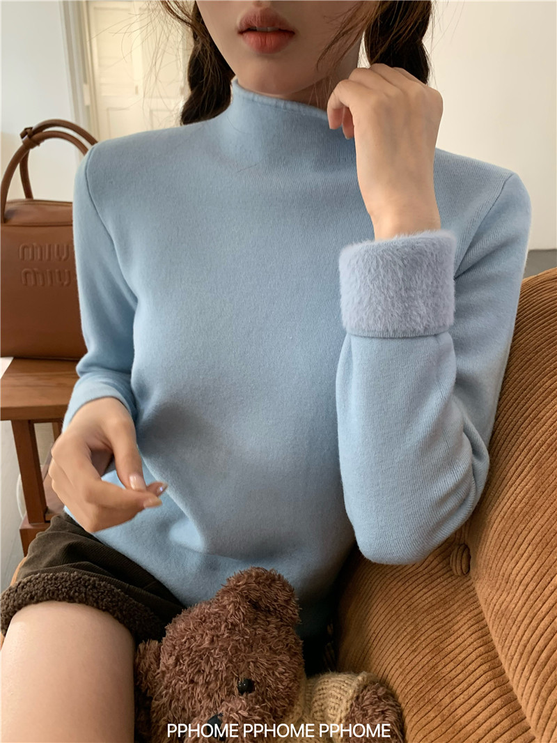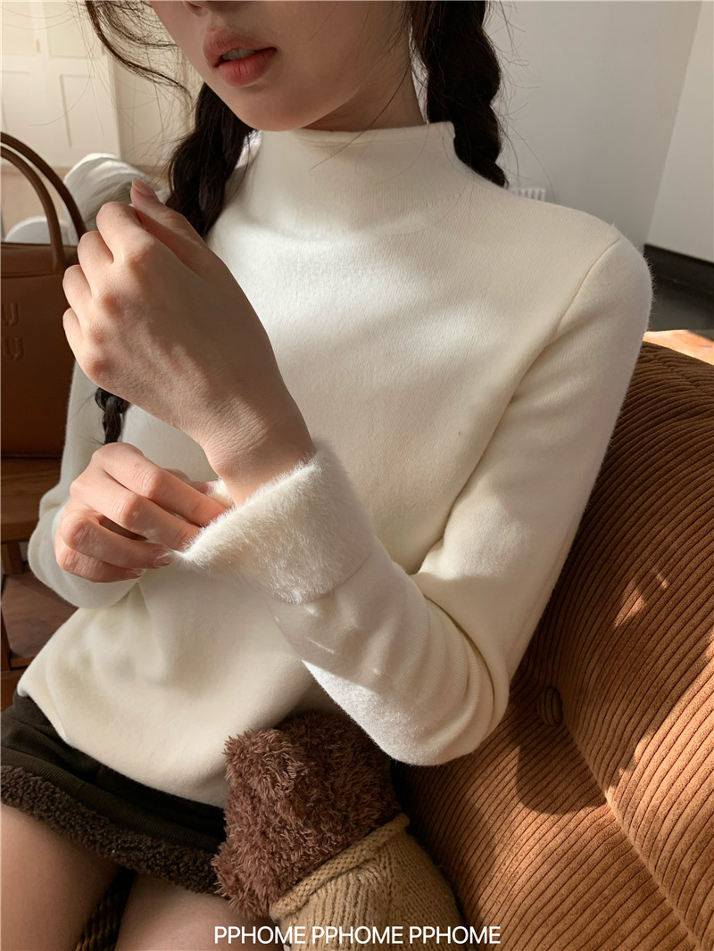 PPHOME自製~仿水貂毛打底衫 冬季半高領百搭保暖毛絨絨針織衫毛衣
