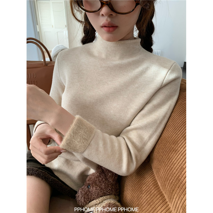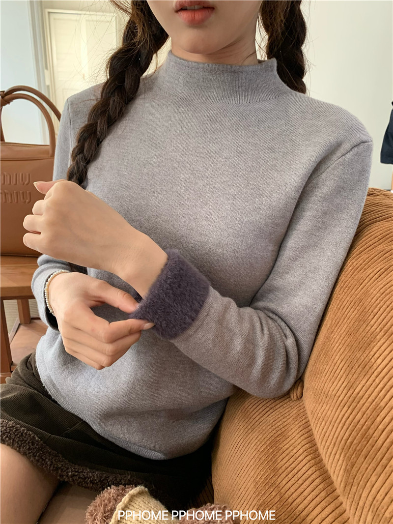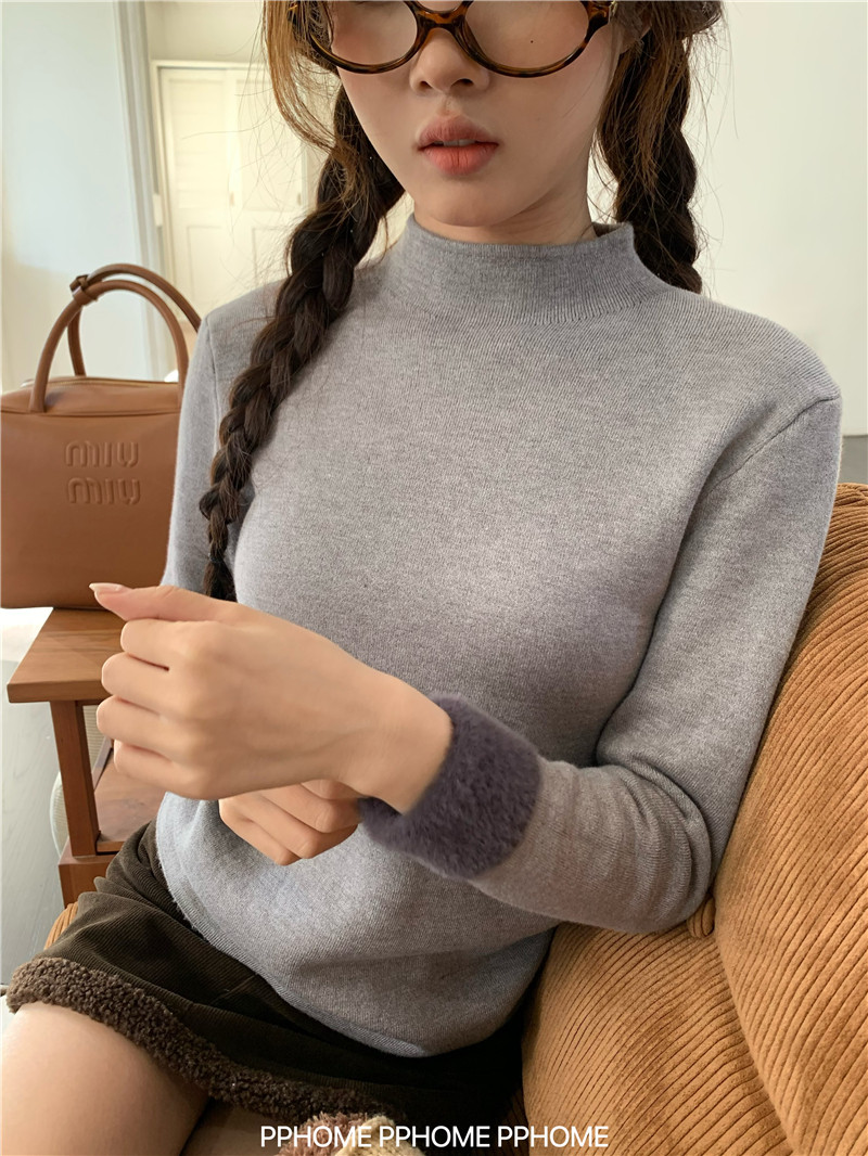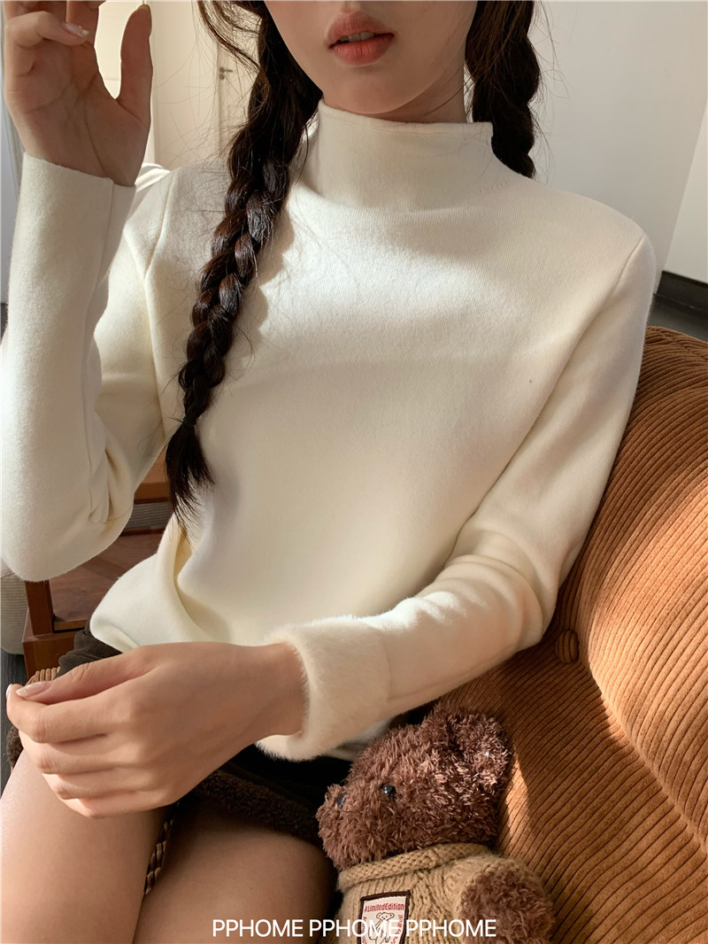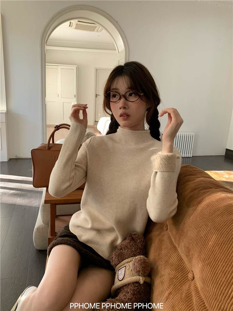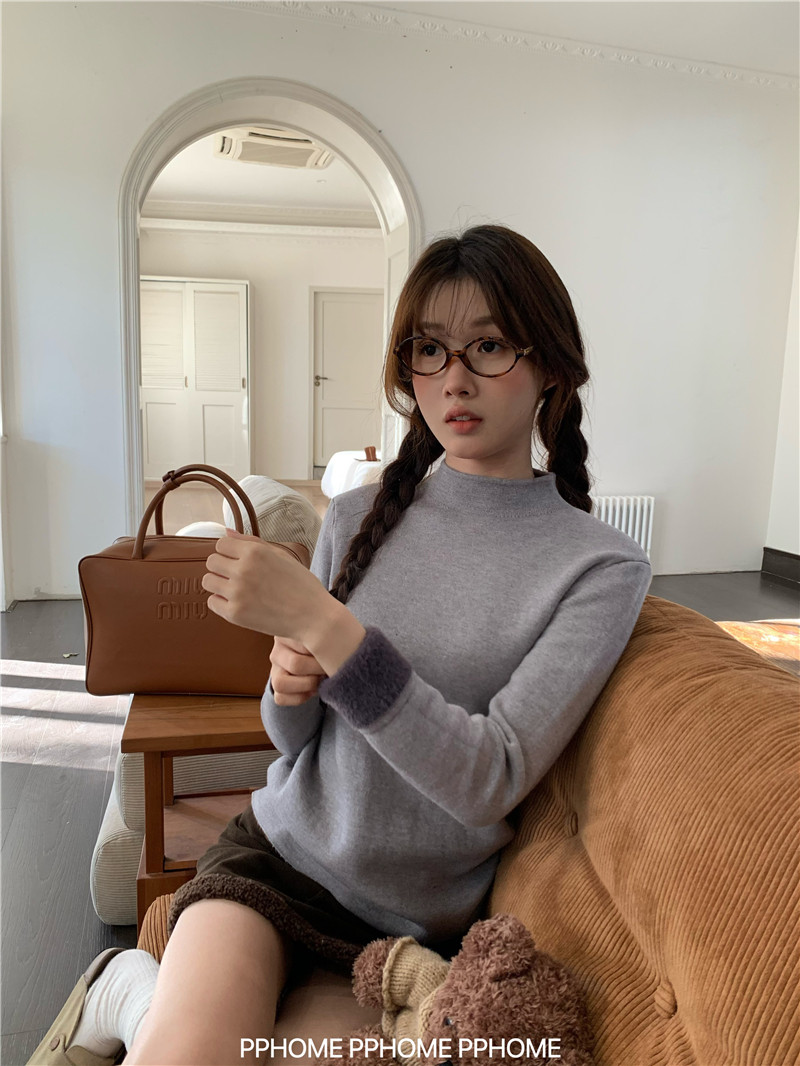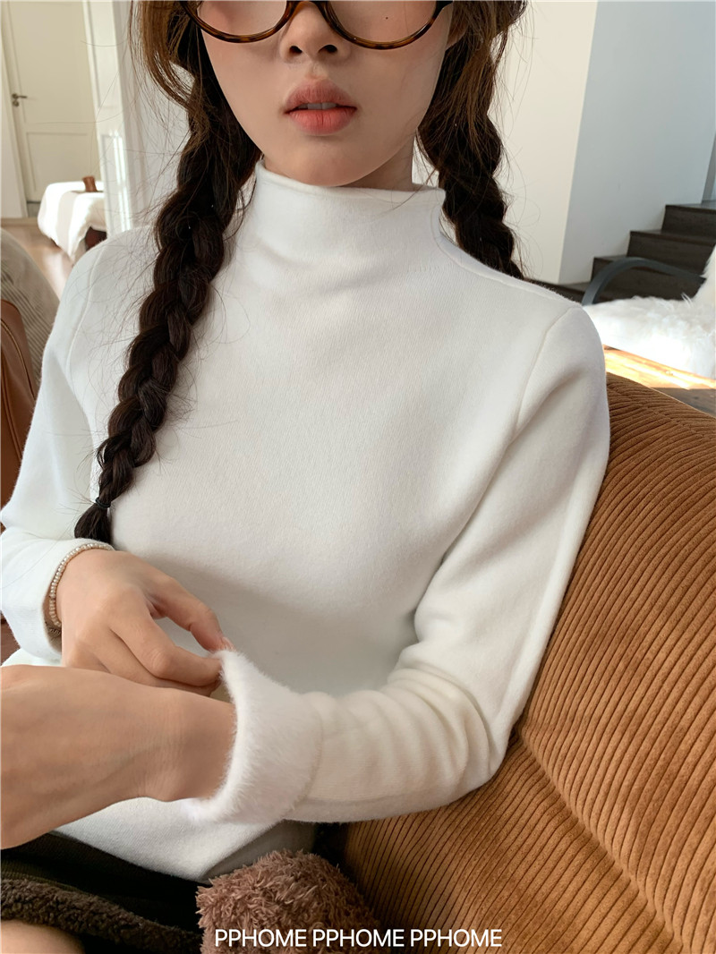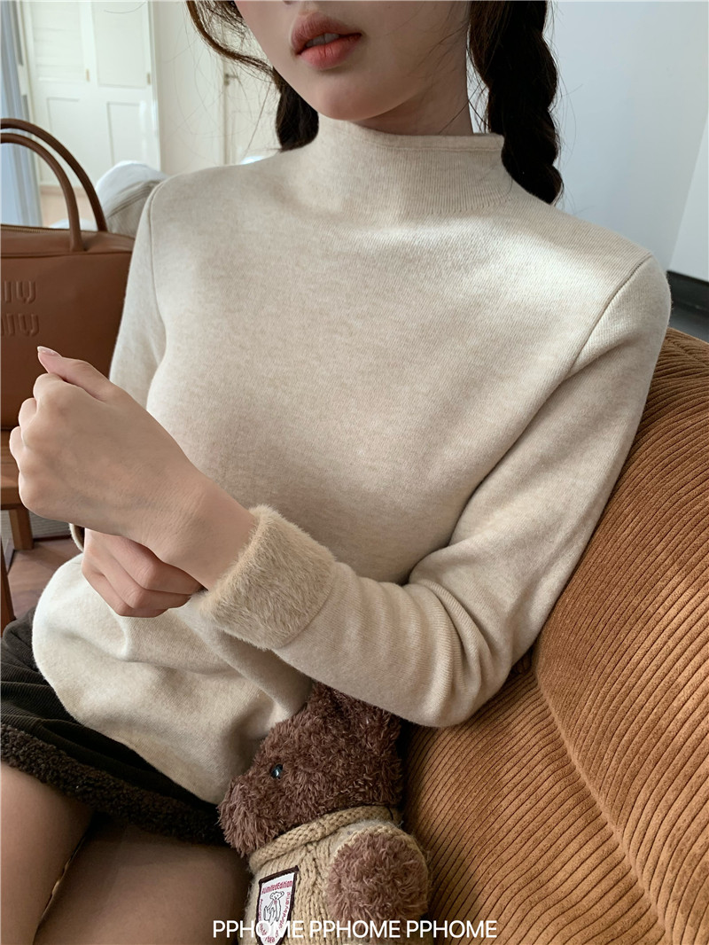 PPHOME自製~仿水貂毛打底衫 冬季半高領百搭保暖毛絨絨針織衫毛衣