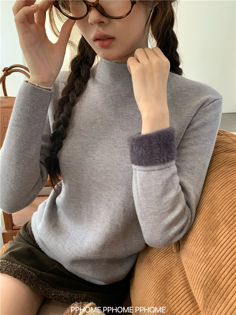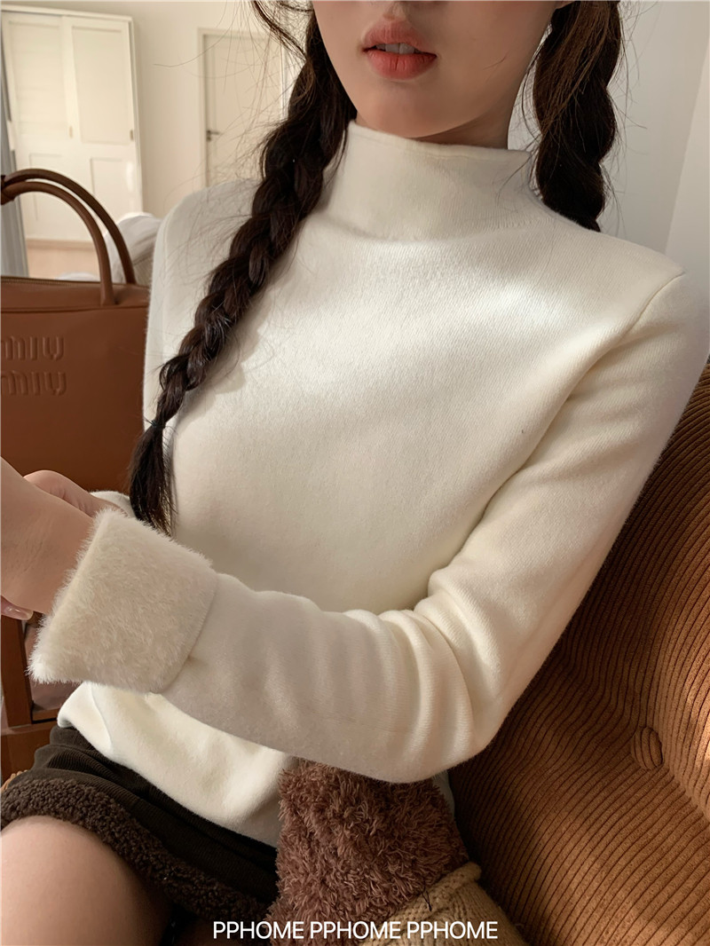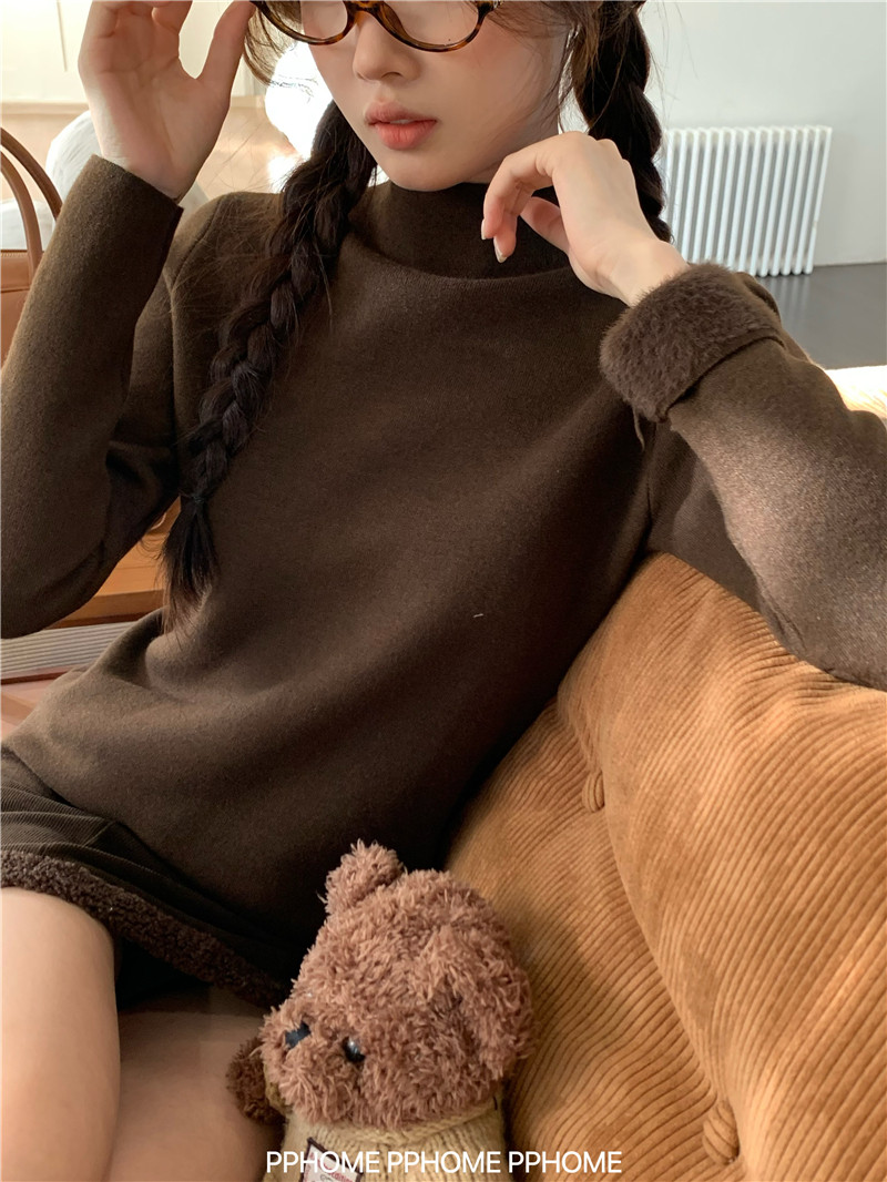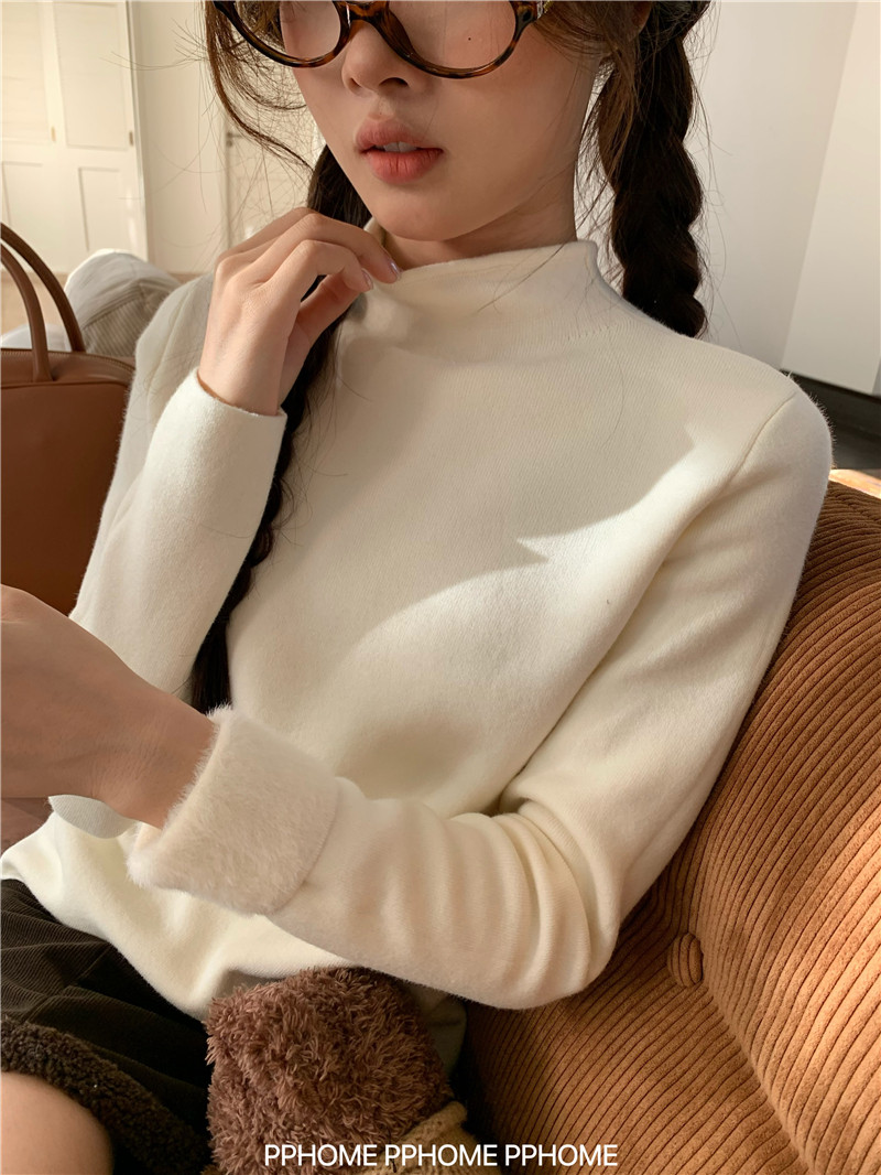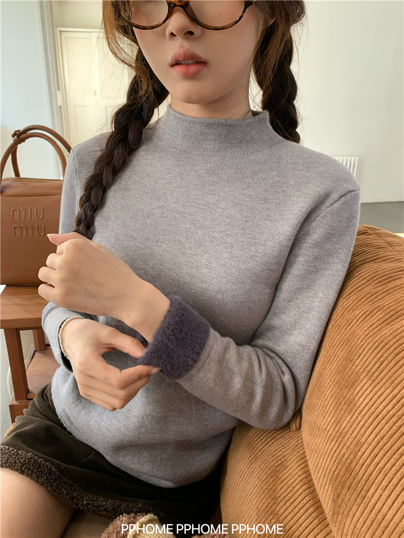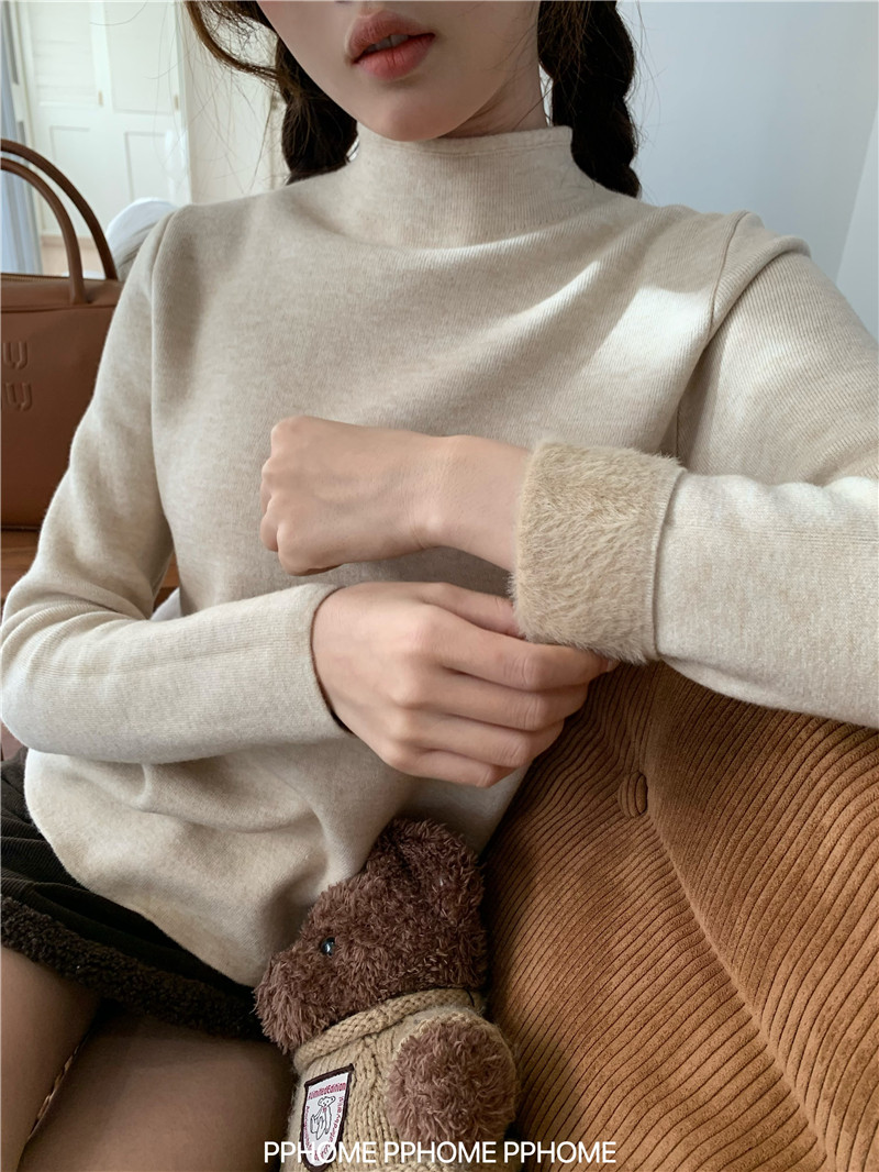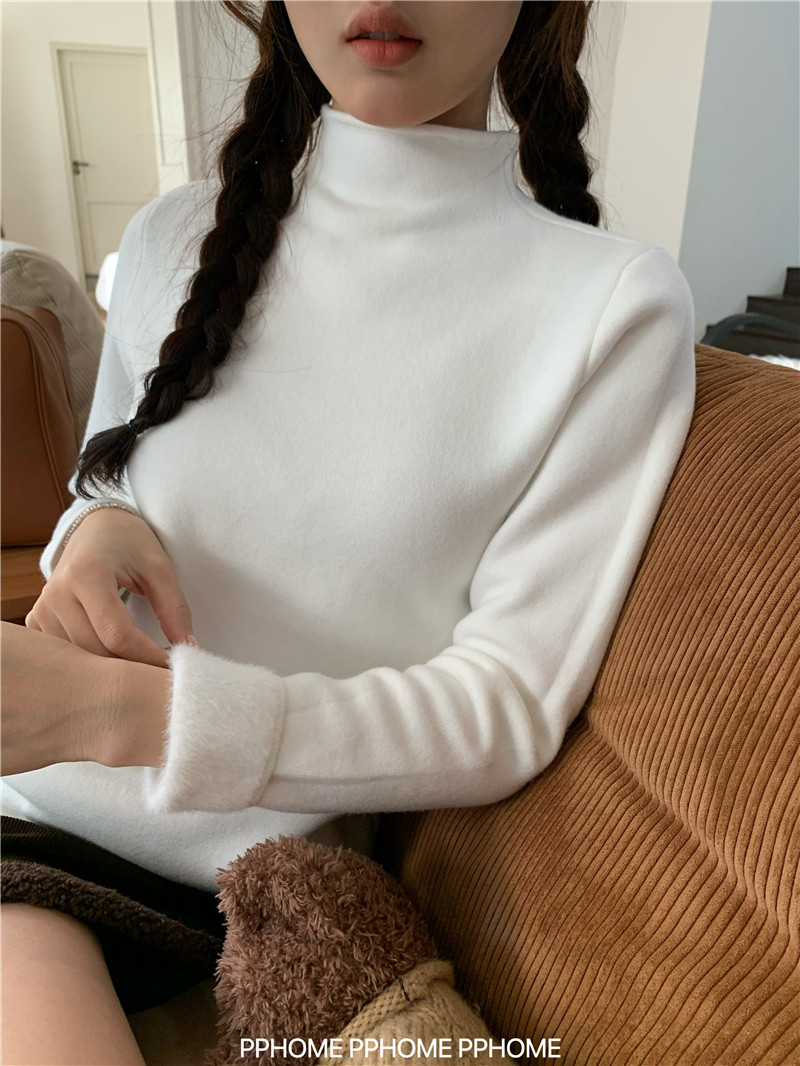 PPHOME自製~仿水貂毛打底衫 冬季半高領百搭保暖毛絨絨針織衫毛衣