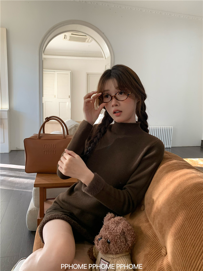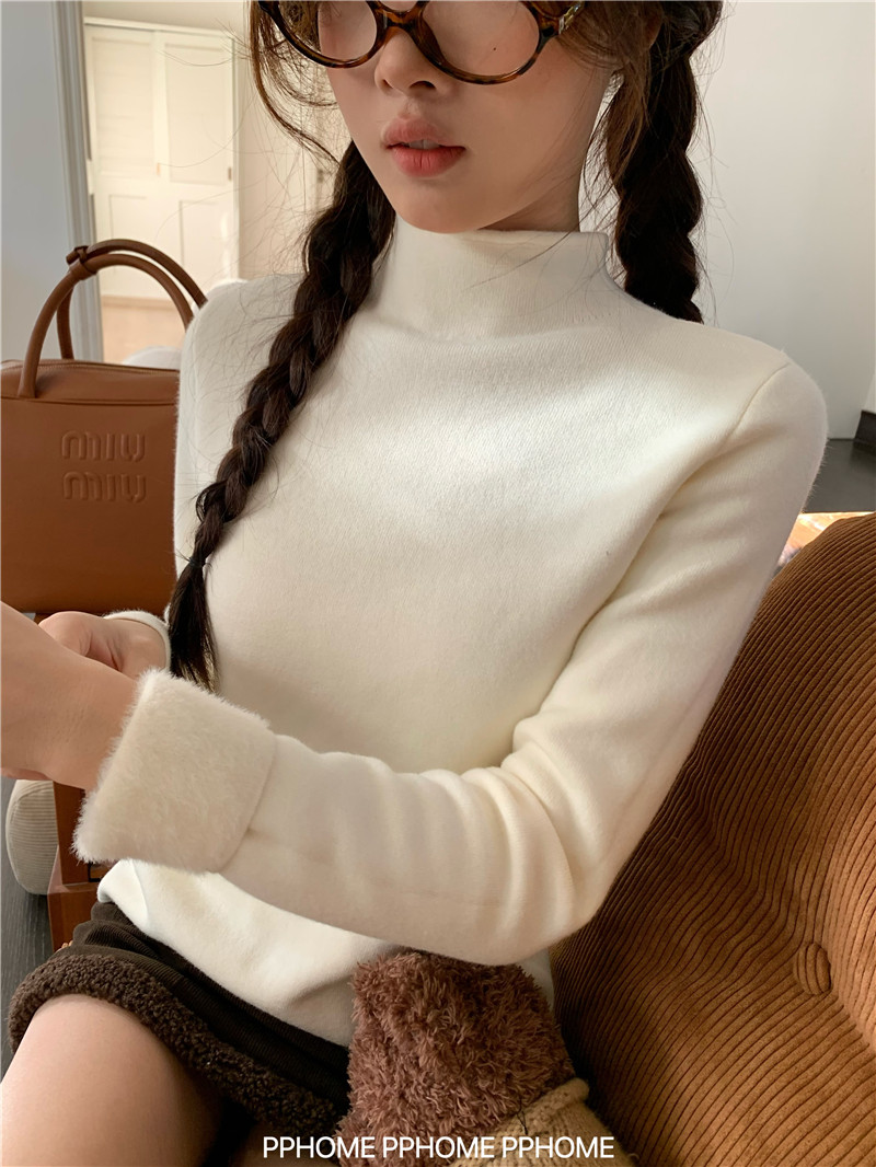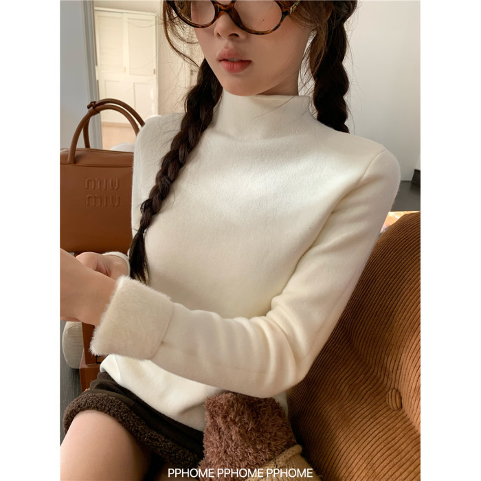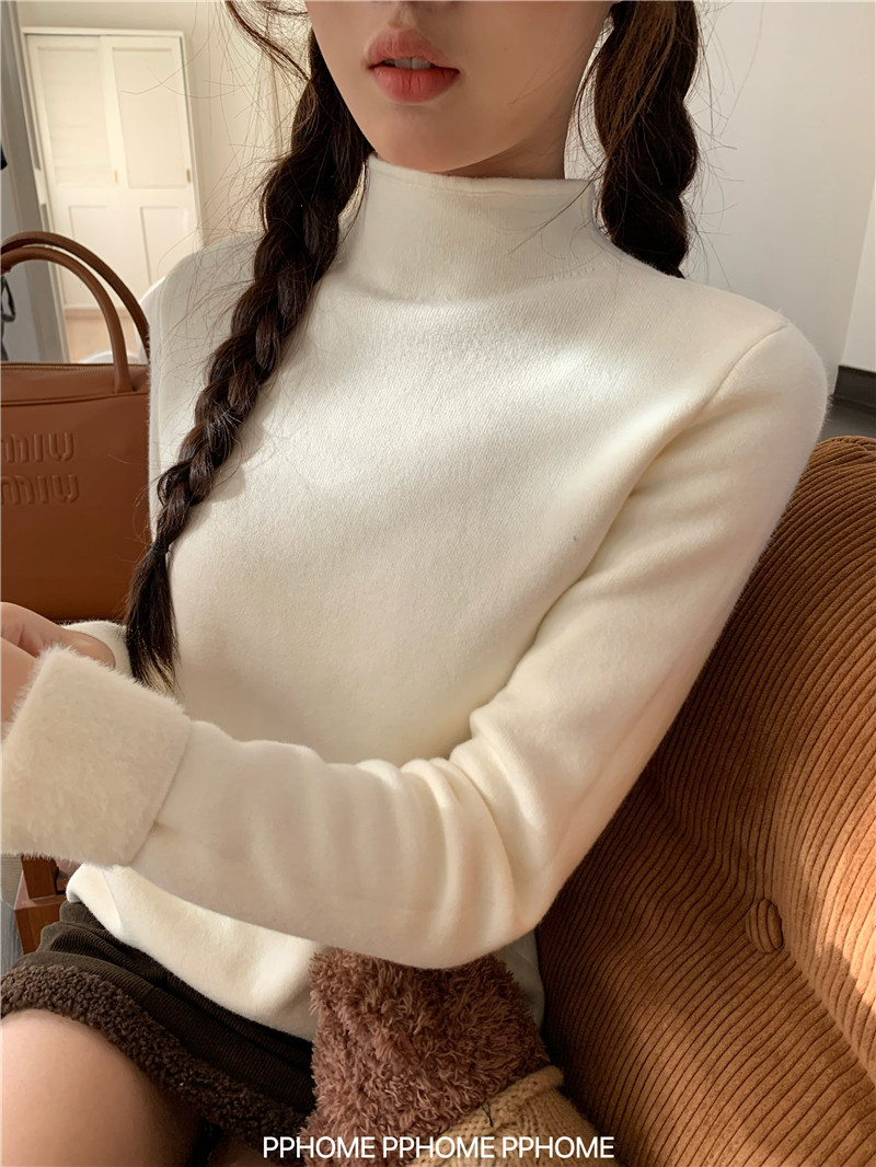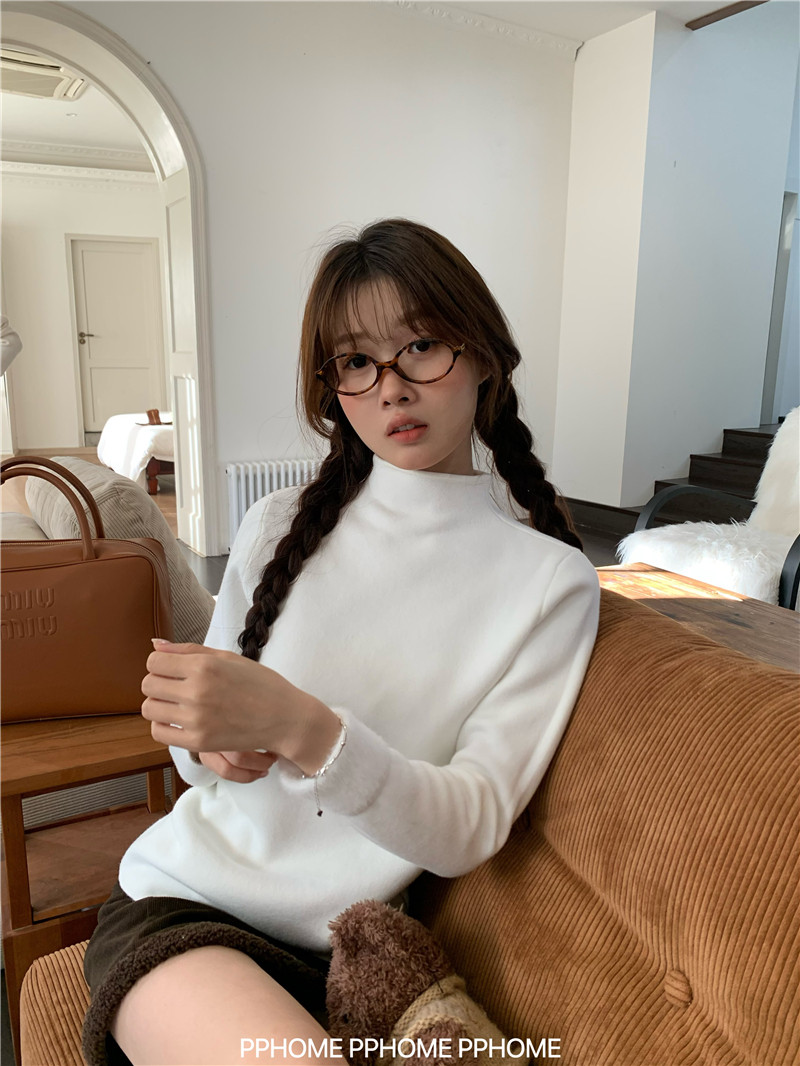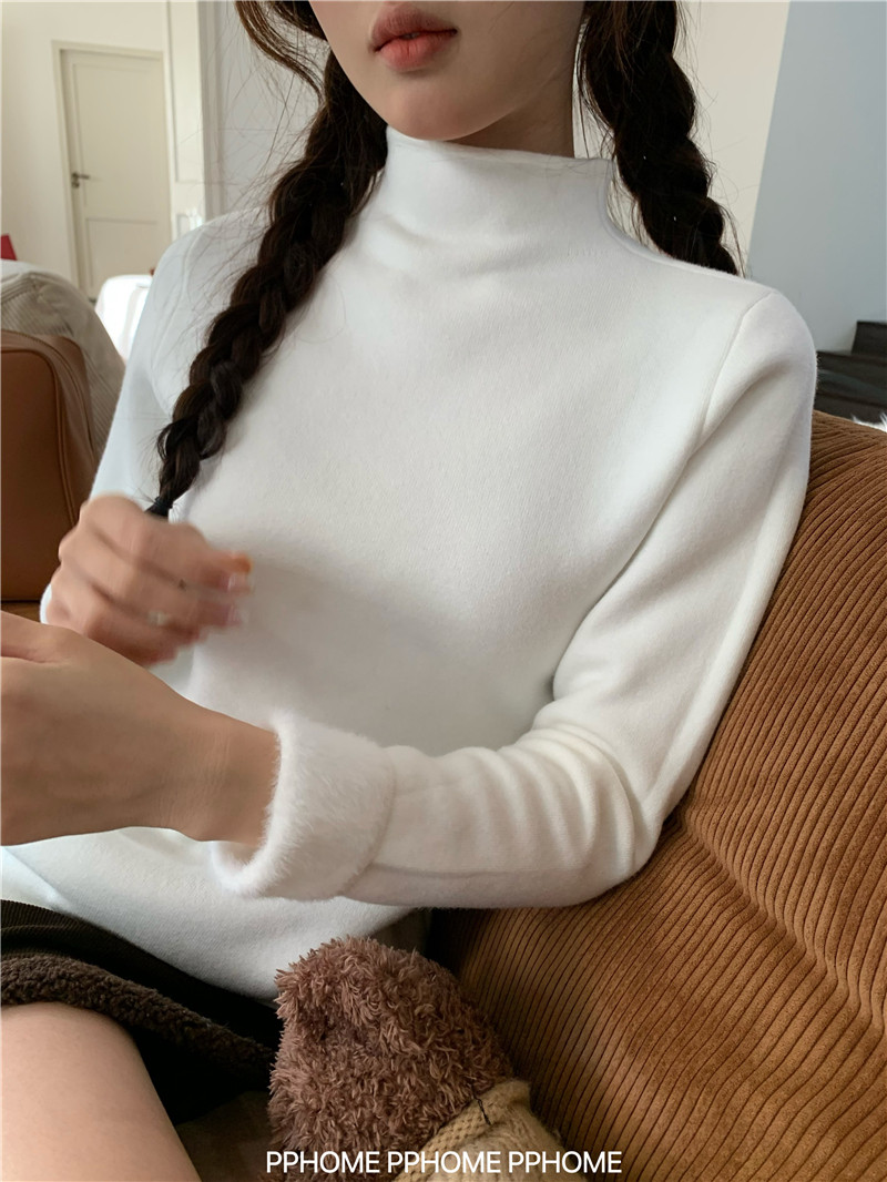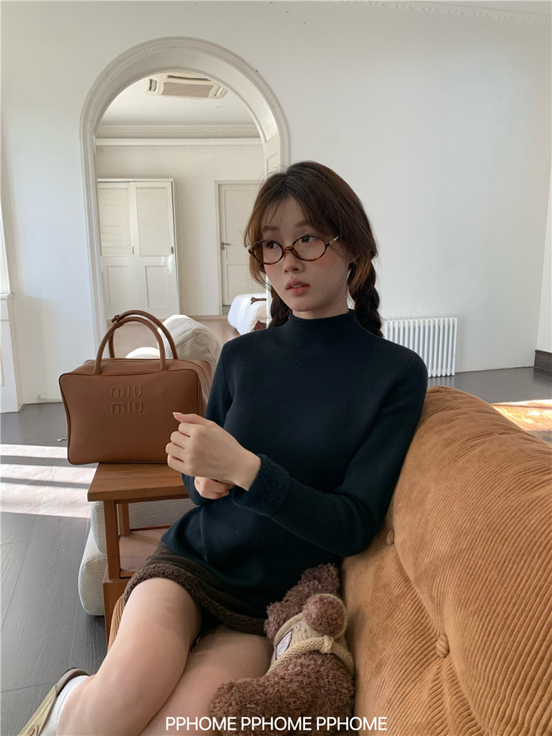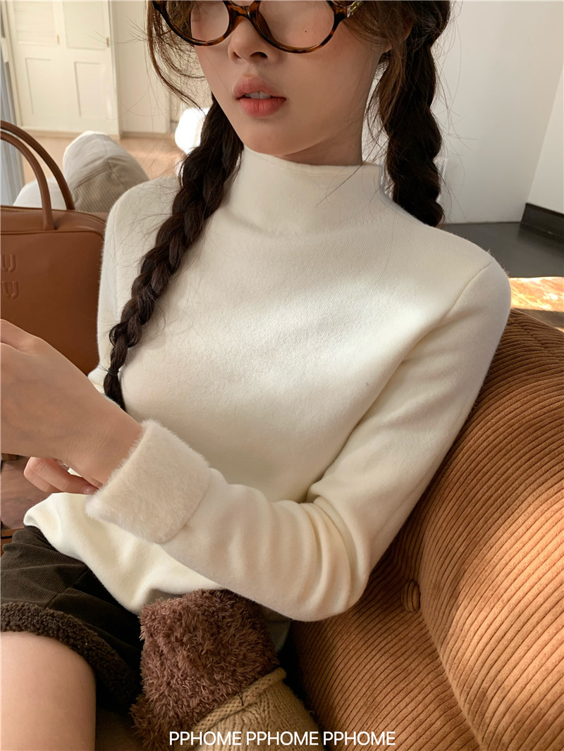 PPHOME自製~仿水貂毛打底衫 冬季半高領百搭保暖毛絨絨針織衫毛衣
