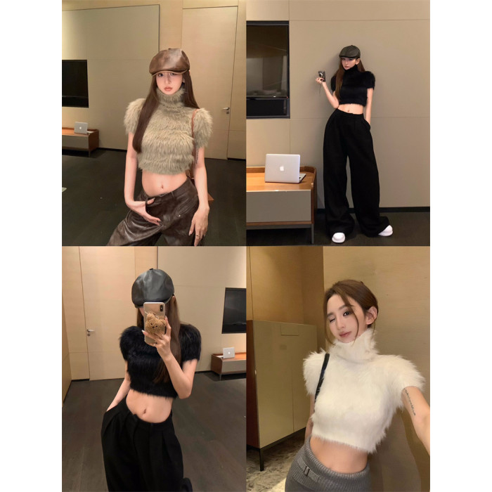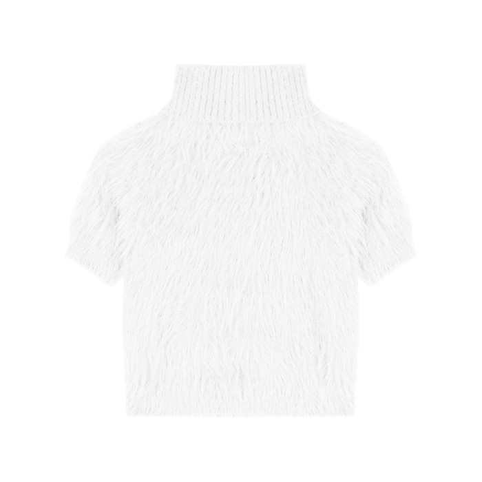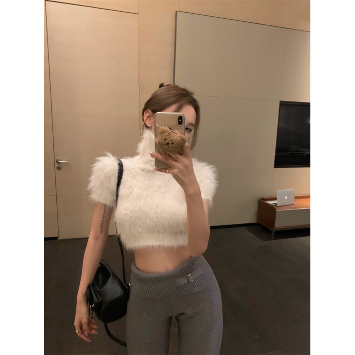 白色仿水貂毛高領針織衫女秋冬韓系修身短款短袖毛衣內搭打底上衣