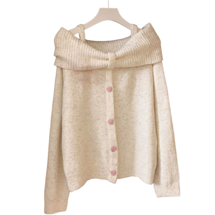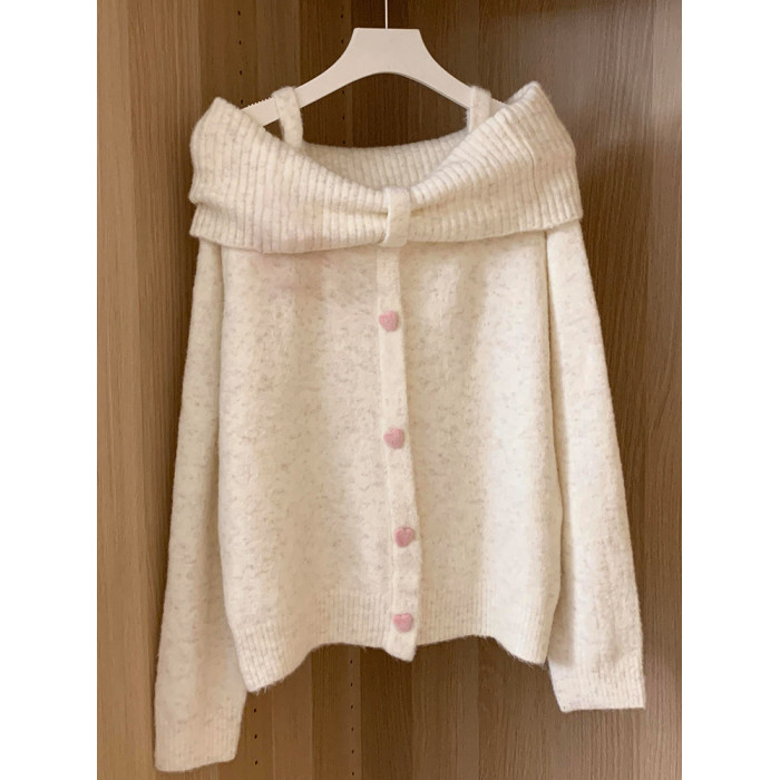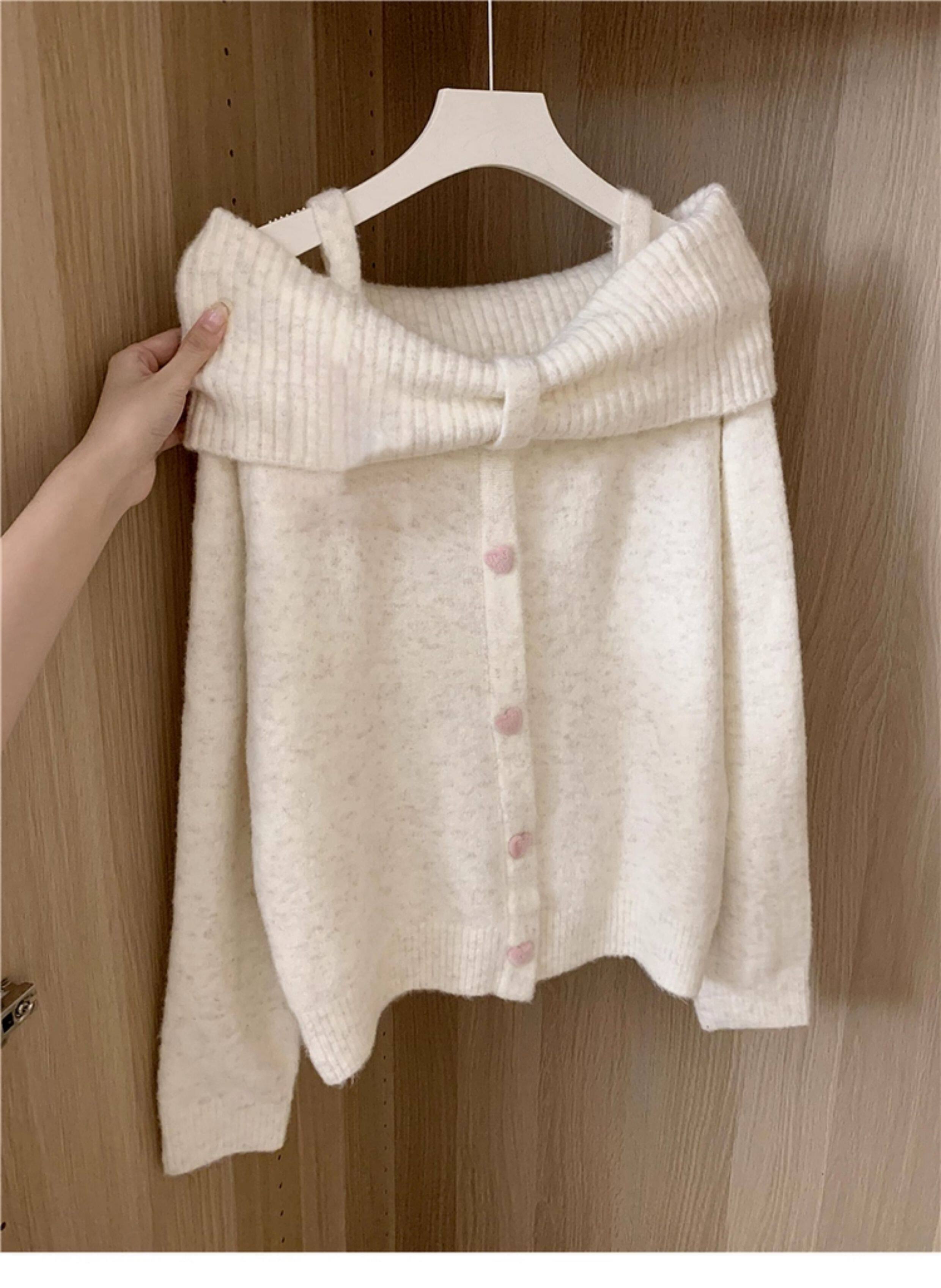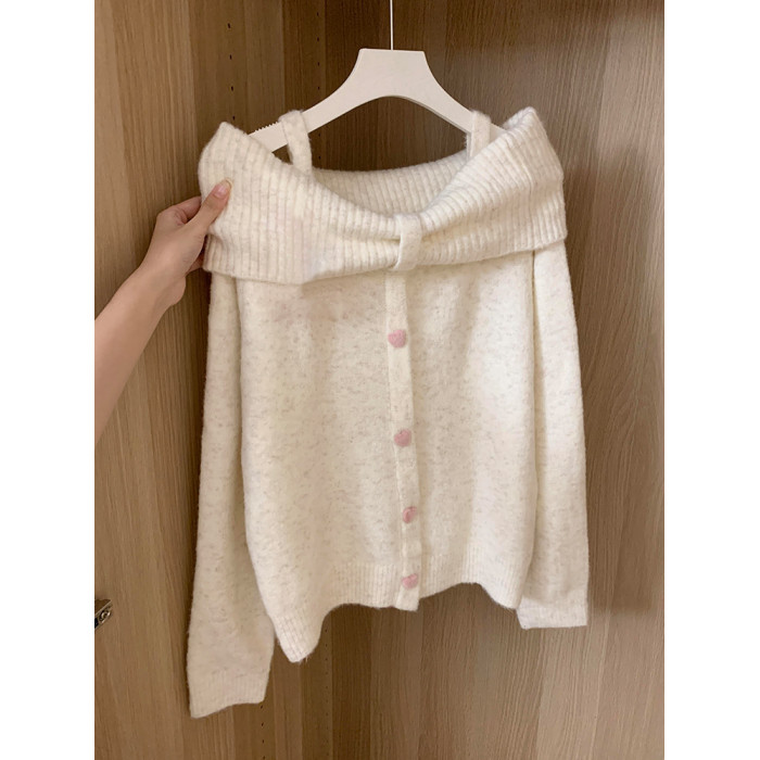 2025新款慵懶風一字肩毛衣女秋冬季內搭韓系高級感針織衫露肩上衣