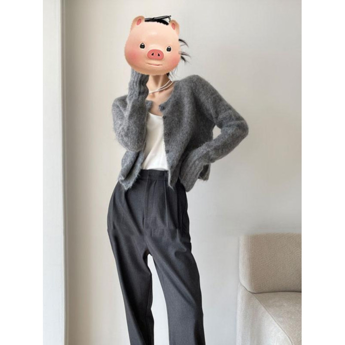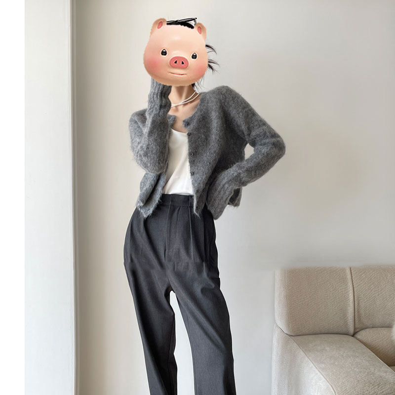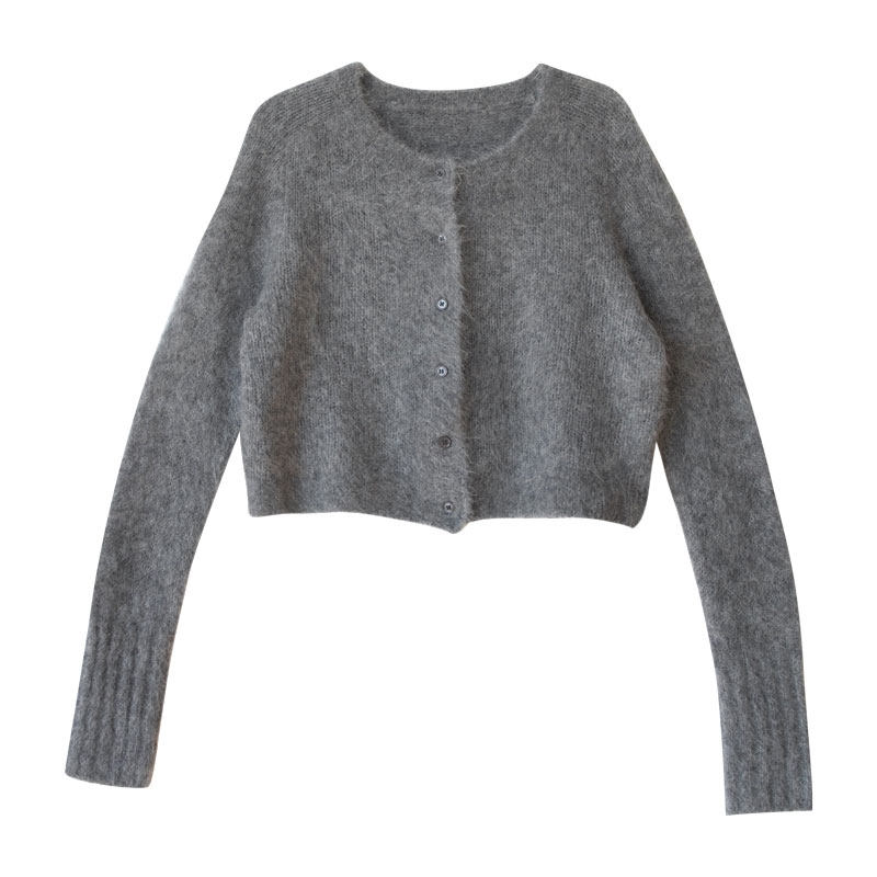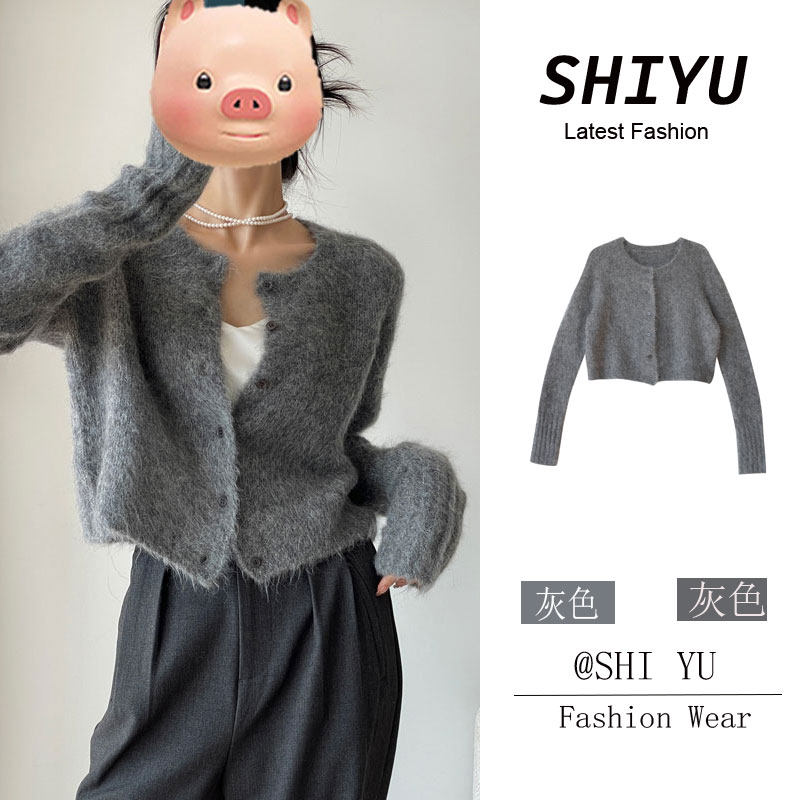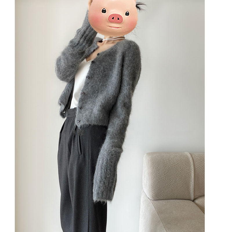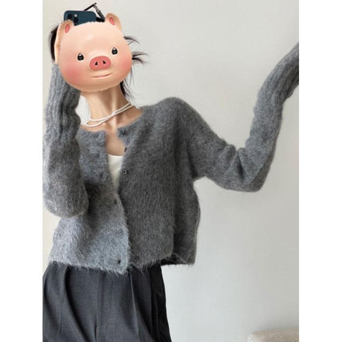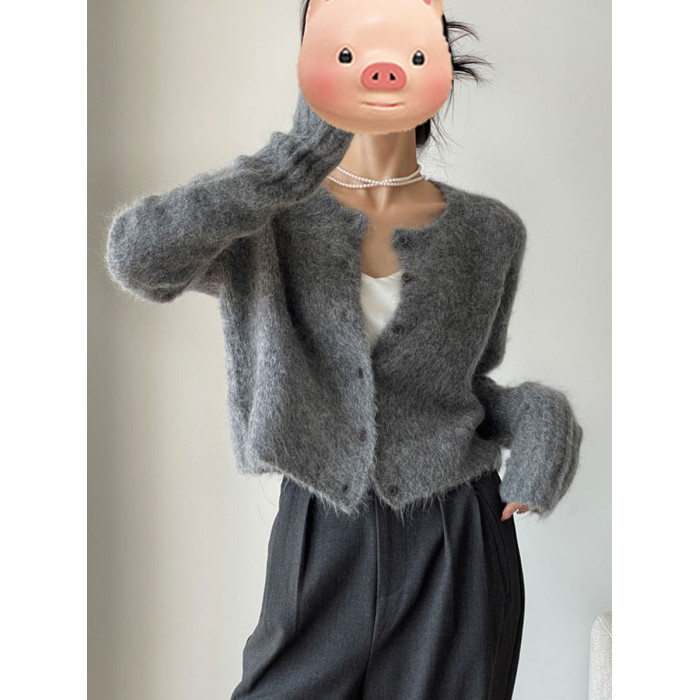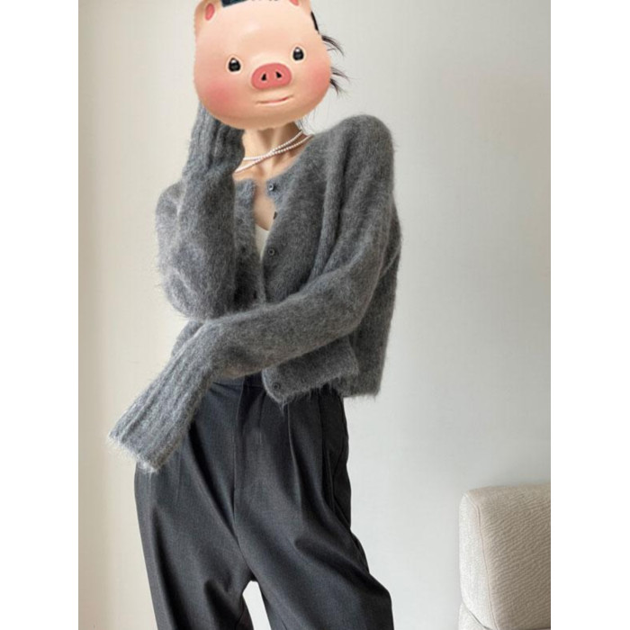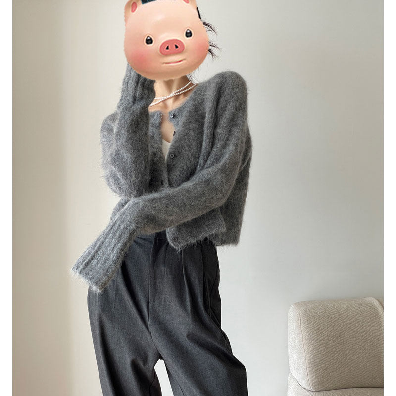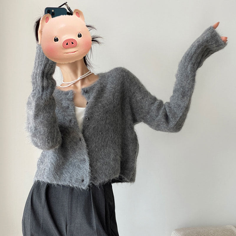 灰色軟糯馬海毛毛衣外套女2025新款早秋季新款短款高級感針織開衫