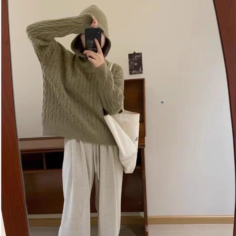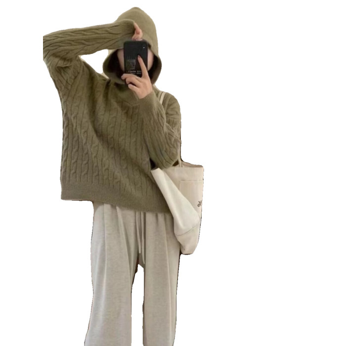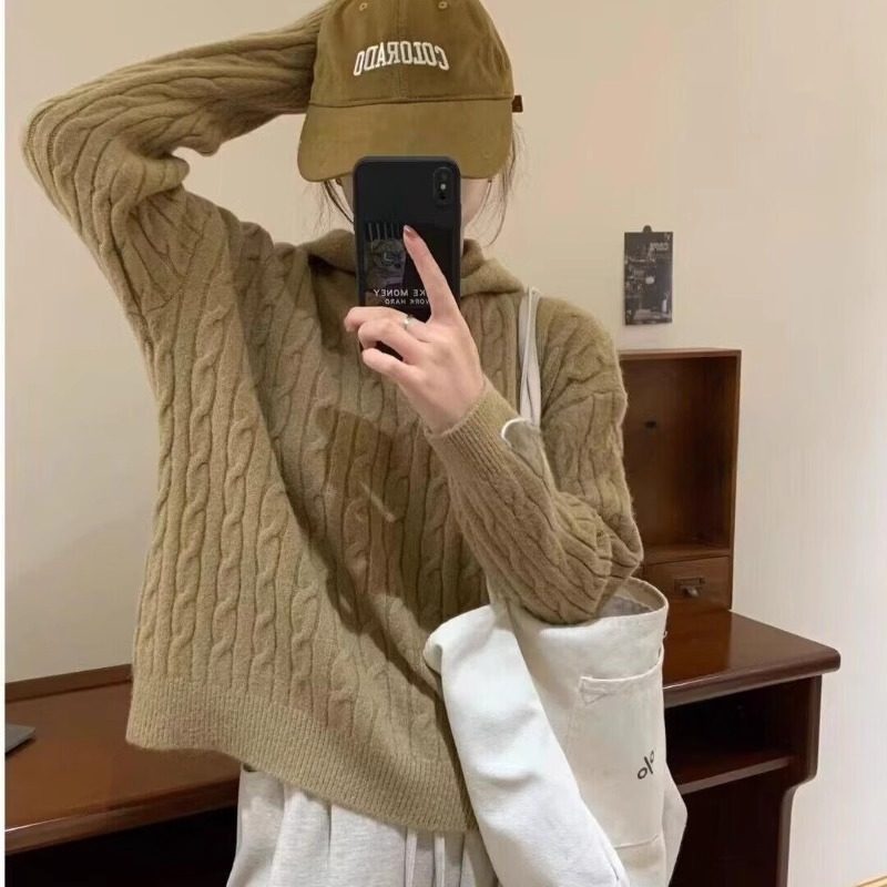 麻花毛衣女毛線衣秋冬2025款連帽復古日系慵懶寬松軟糯針織衫上衣