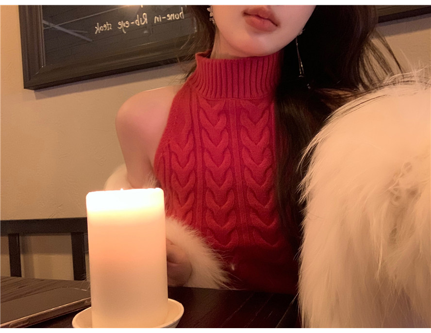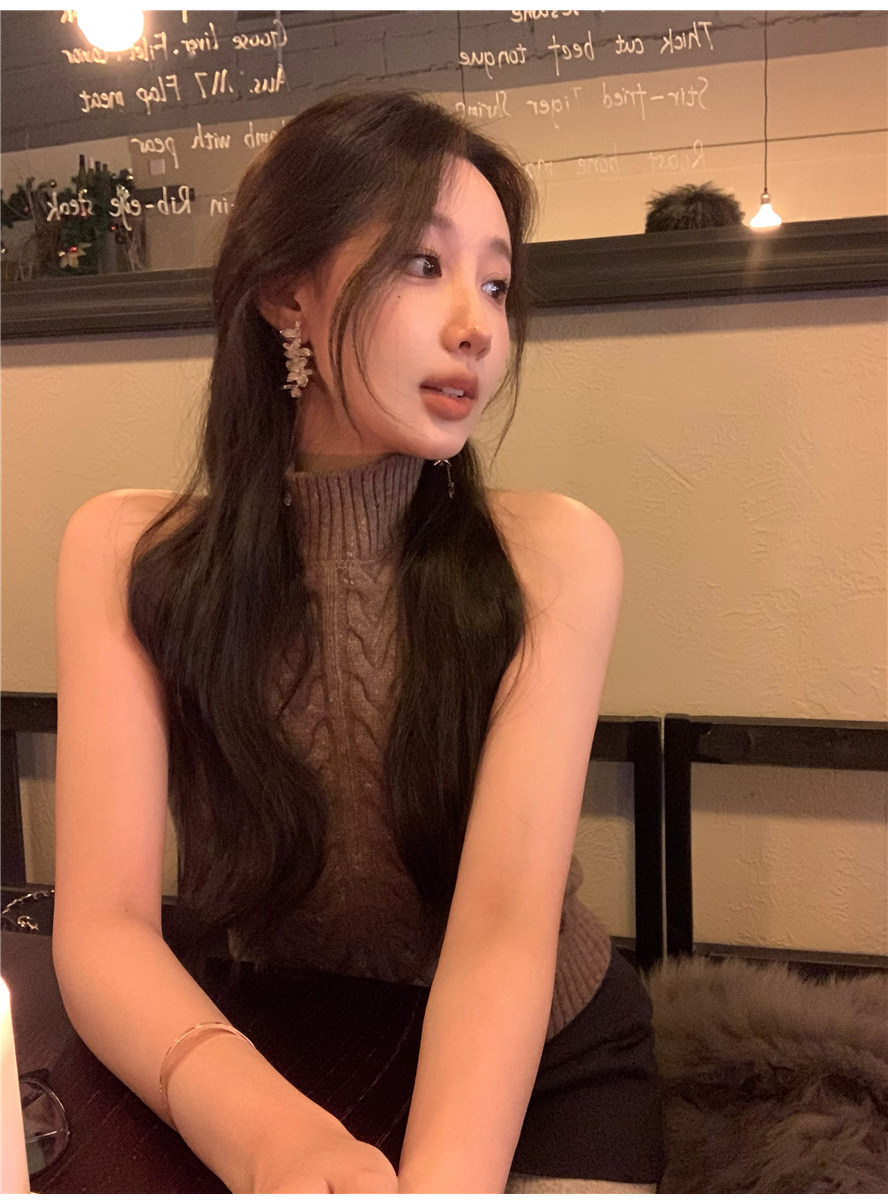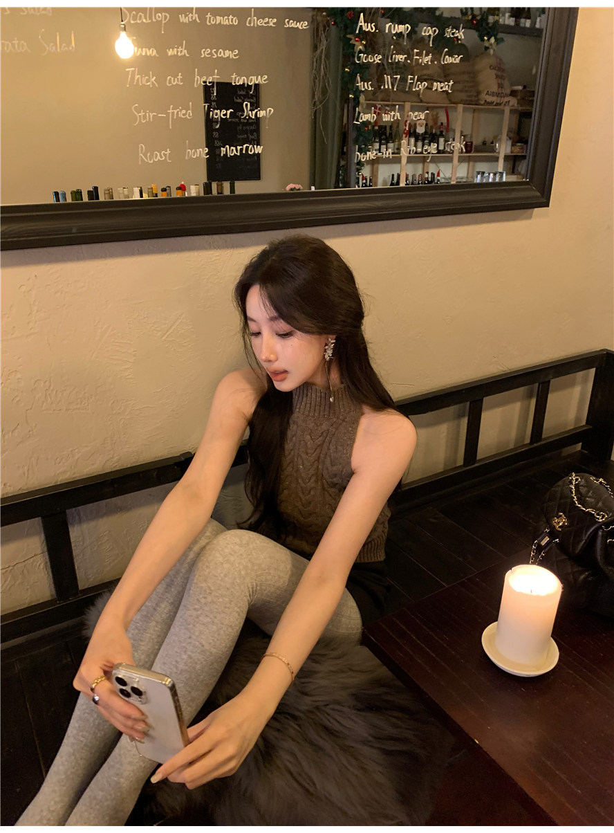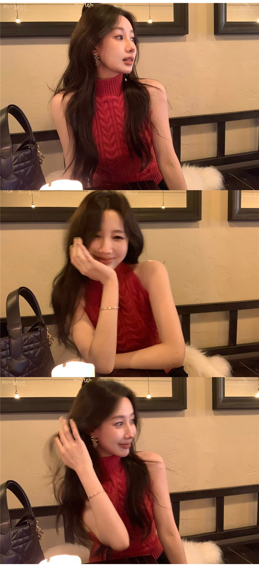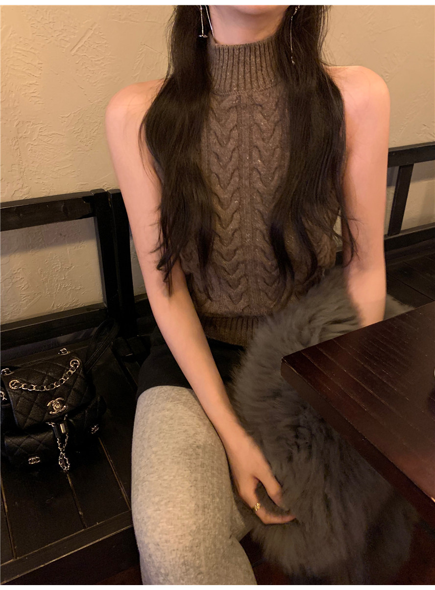 麻花高領針織背心女ins辣妹高級感小衆時尚顯瘦內搭無袖挖肩上衣