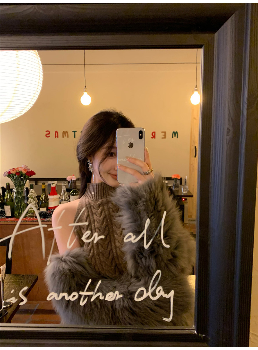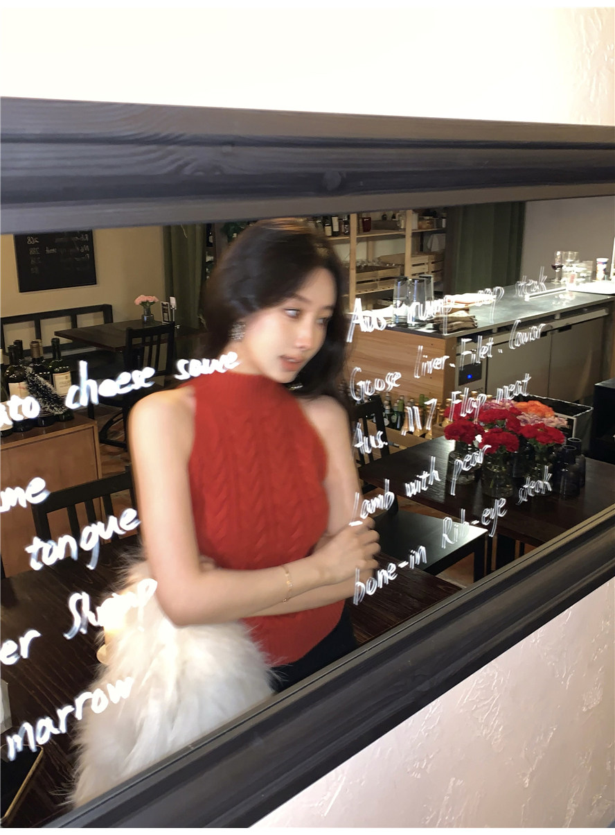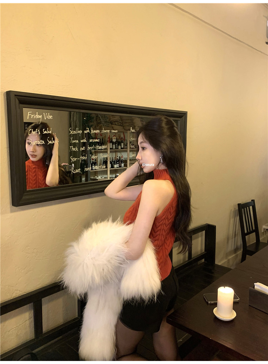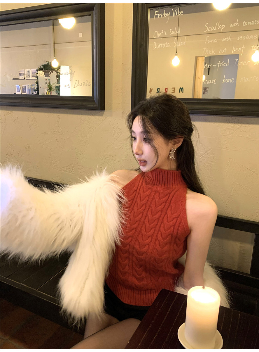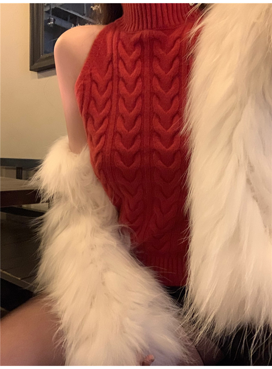 麻花高領針織背心女ins辣妹高級感小衆時尚顯瘦內搭無袖挖肩上衣