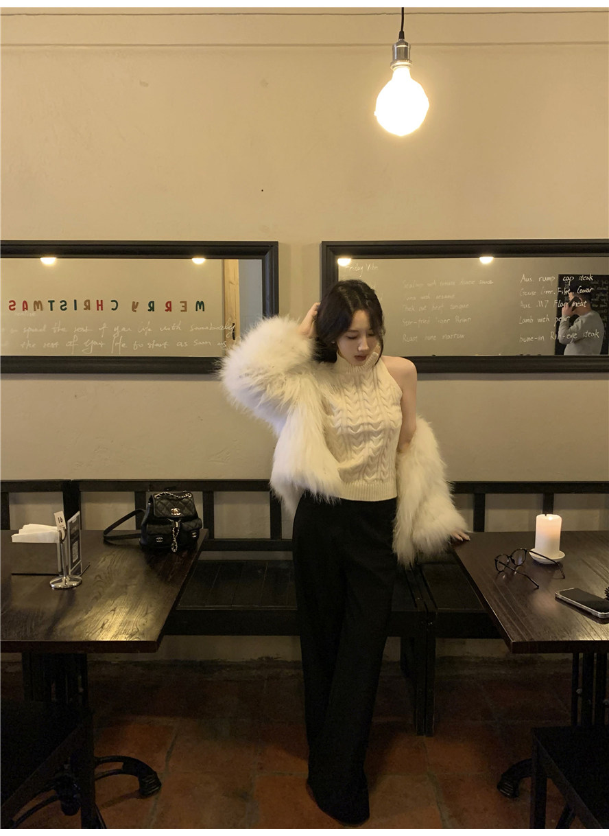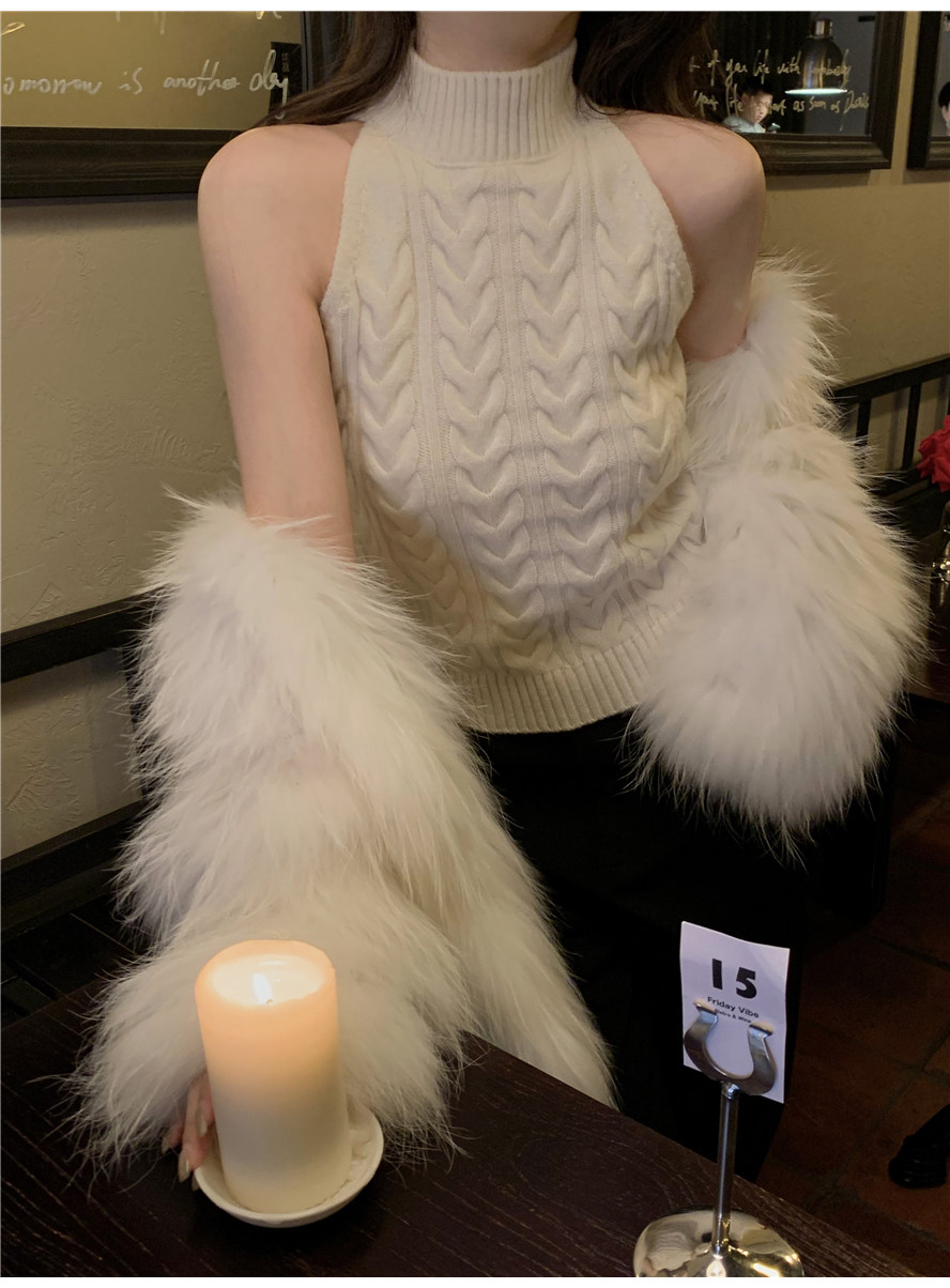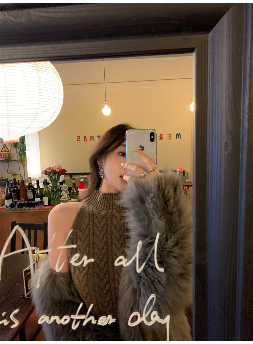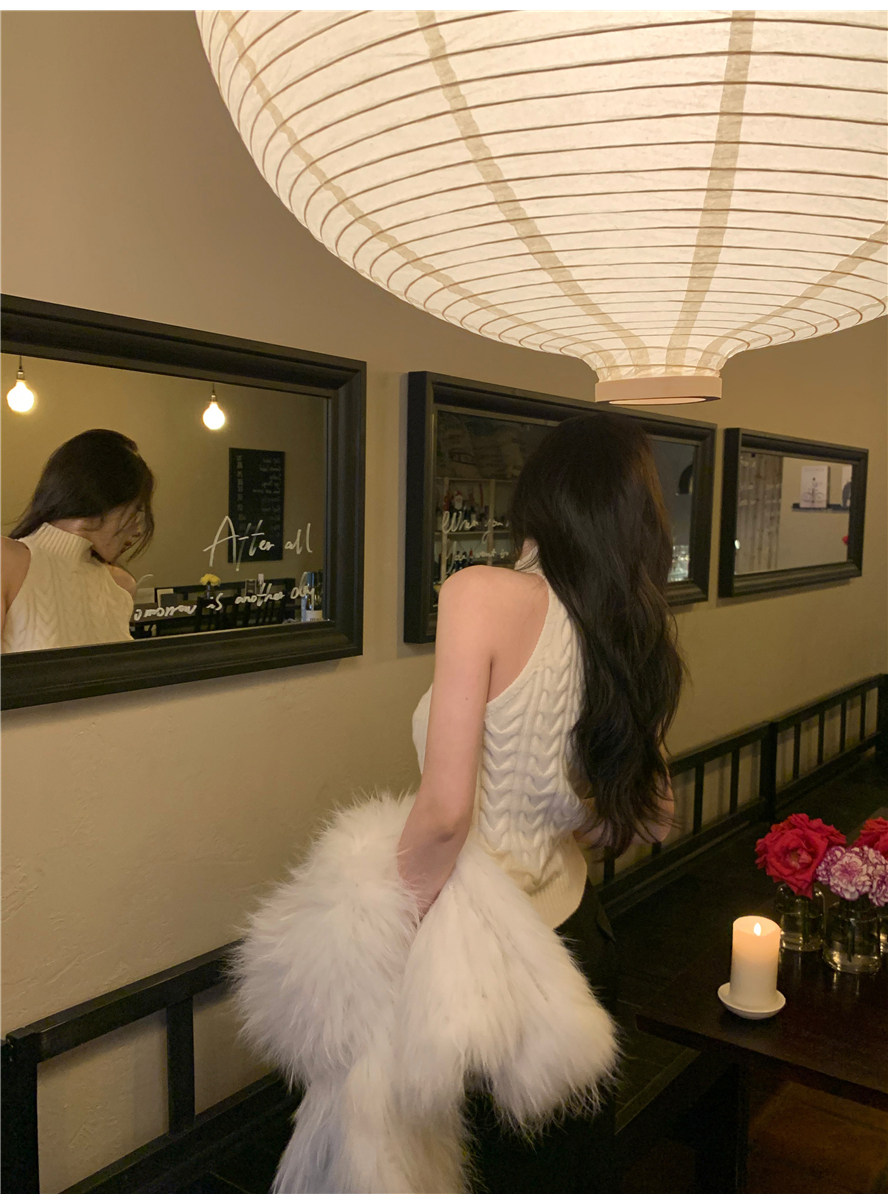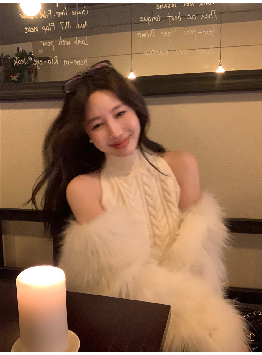 麻花高領針織背心女ins辣妹高級感小衆時尚顯瘦內搭無袖挖肩上衣