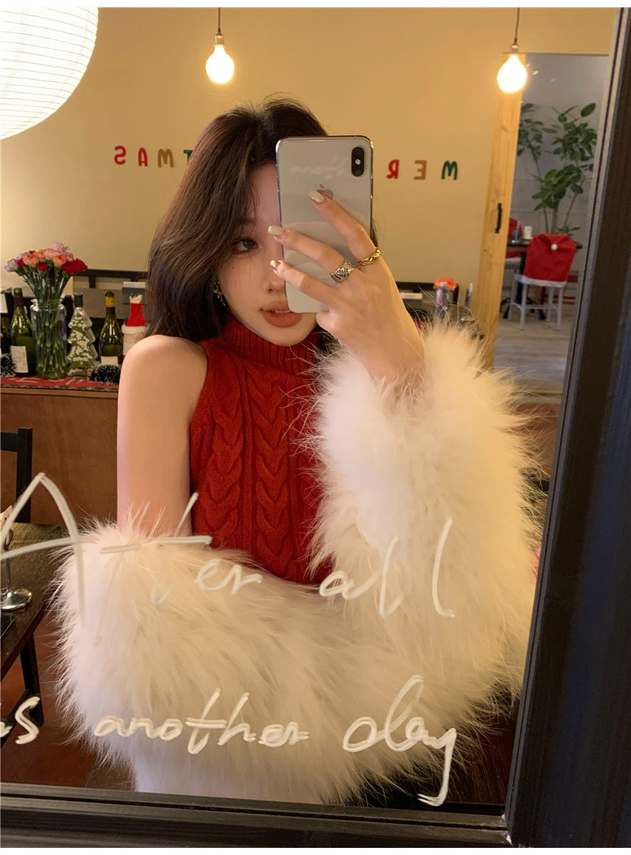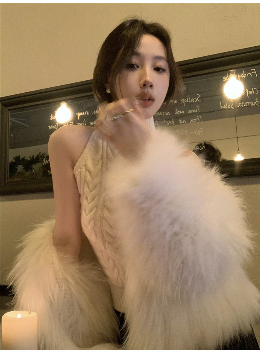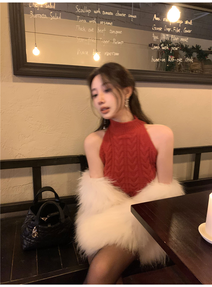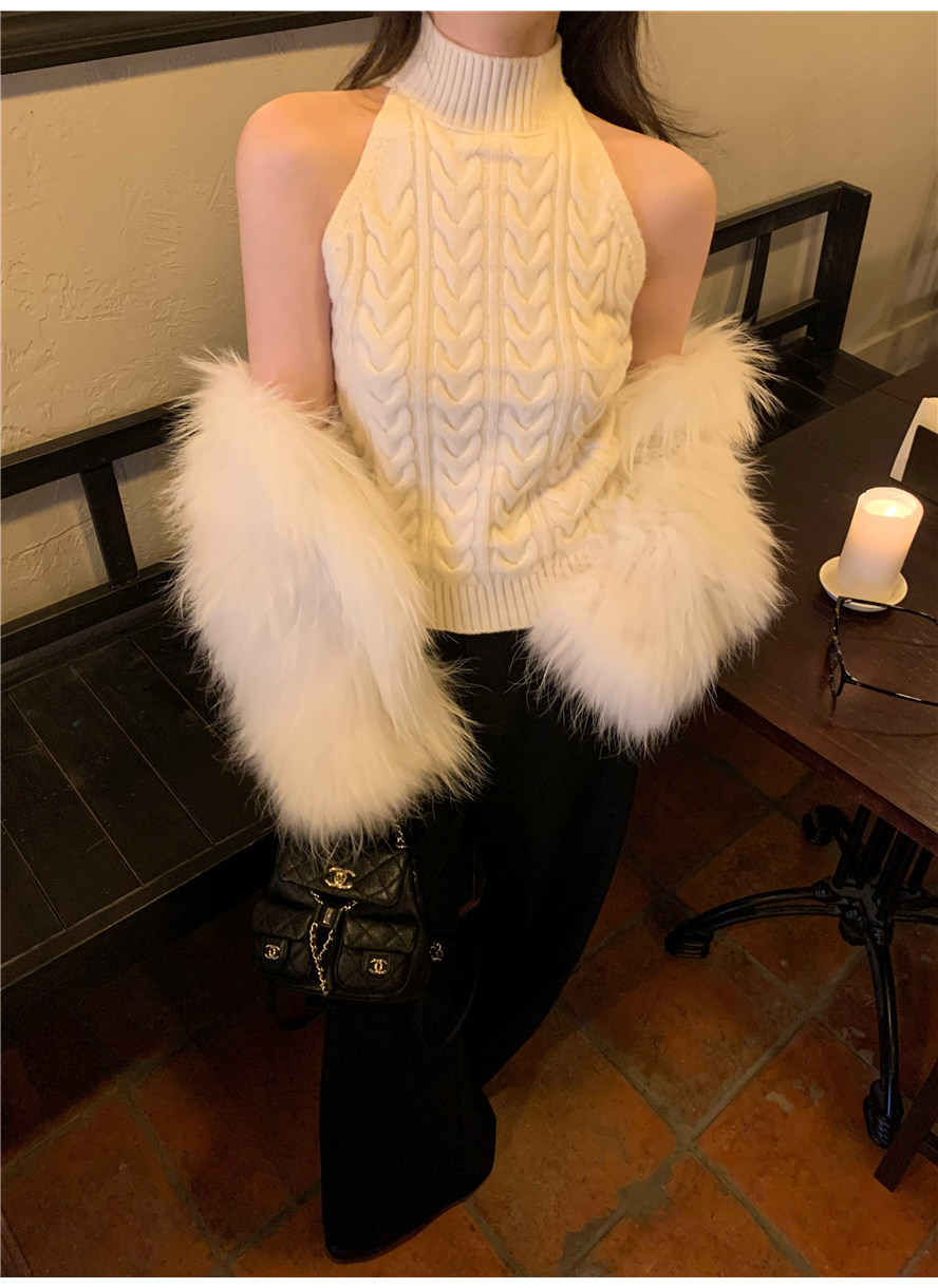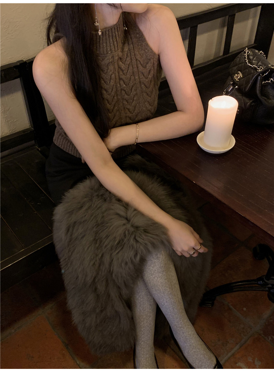 麻花高領針織背心女ins辣妹高級感小衆時尚顯瘦內搭無袖挖肩上衣