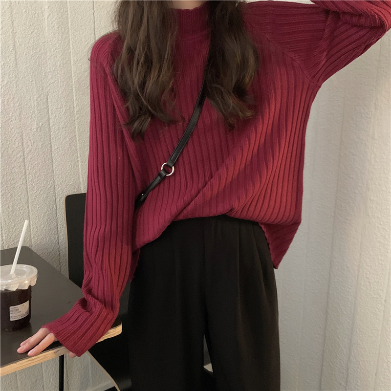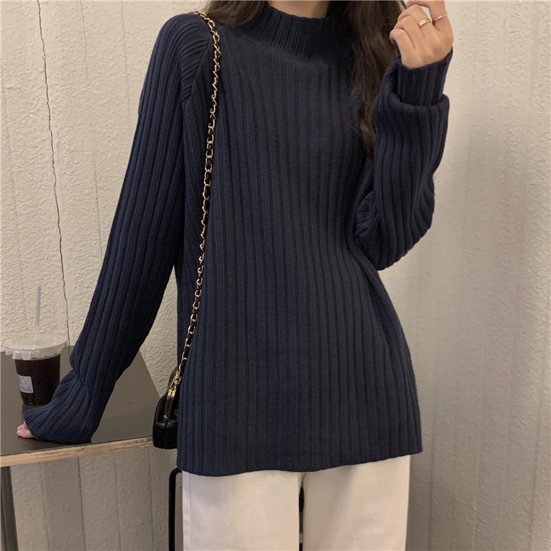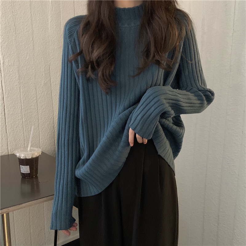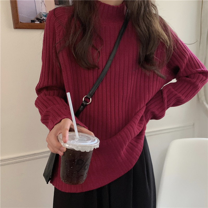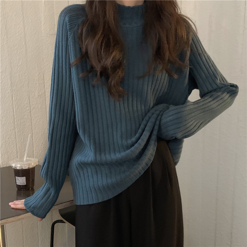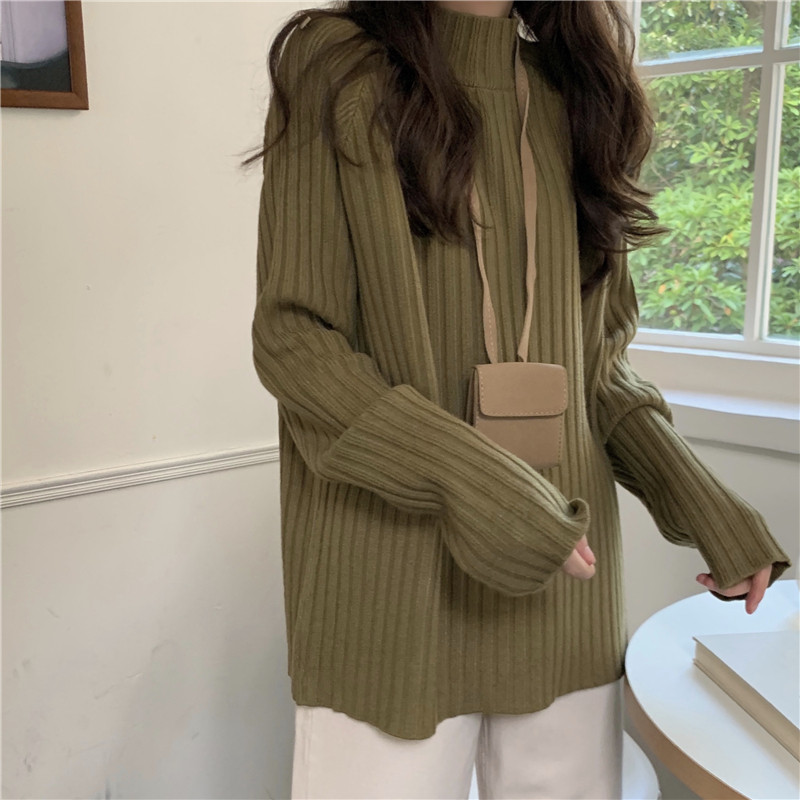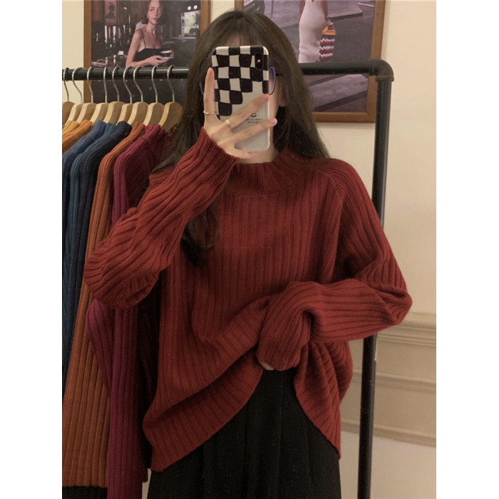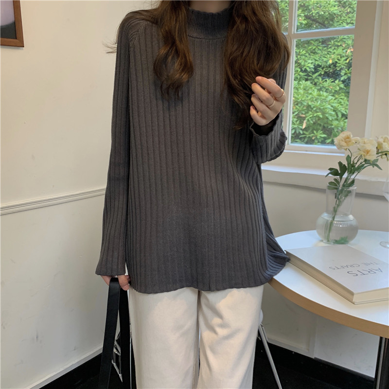 2025秋季純色半高領坑條設計感針織毛衣大碼女裝寬松顯瘦套頭上衣