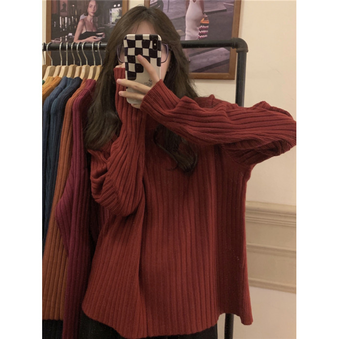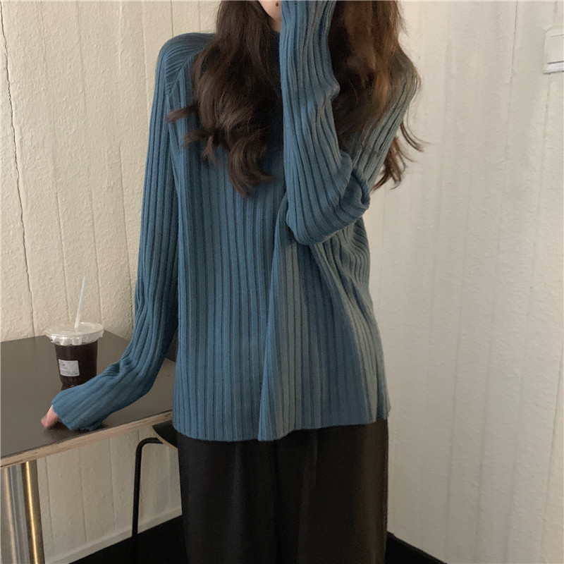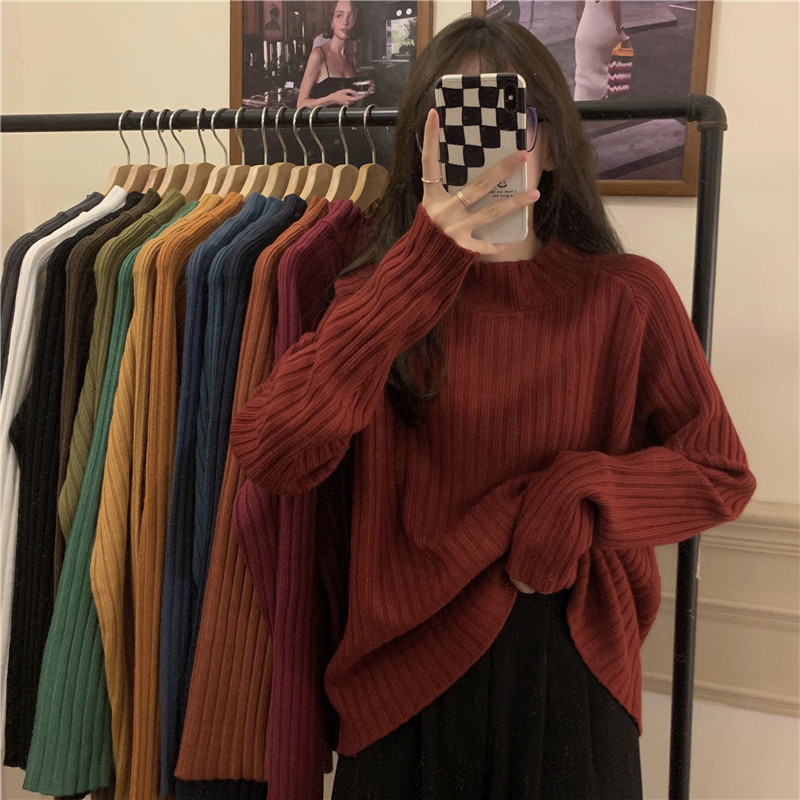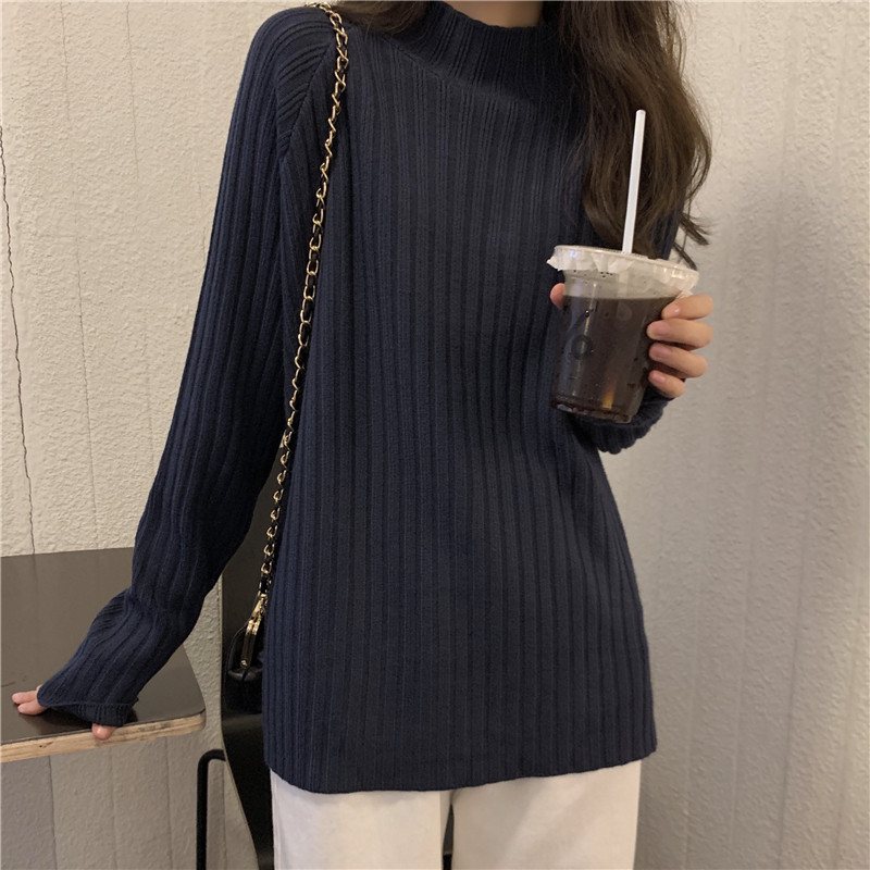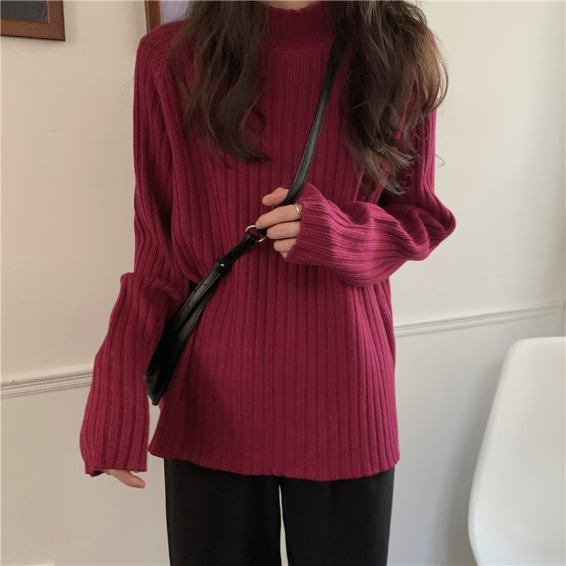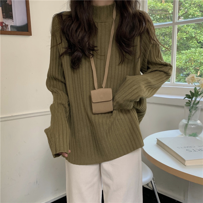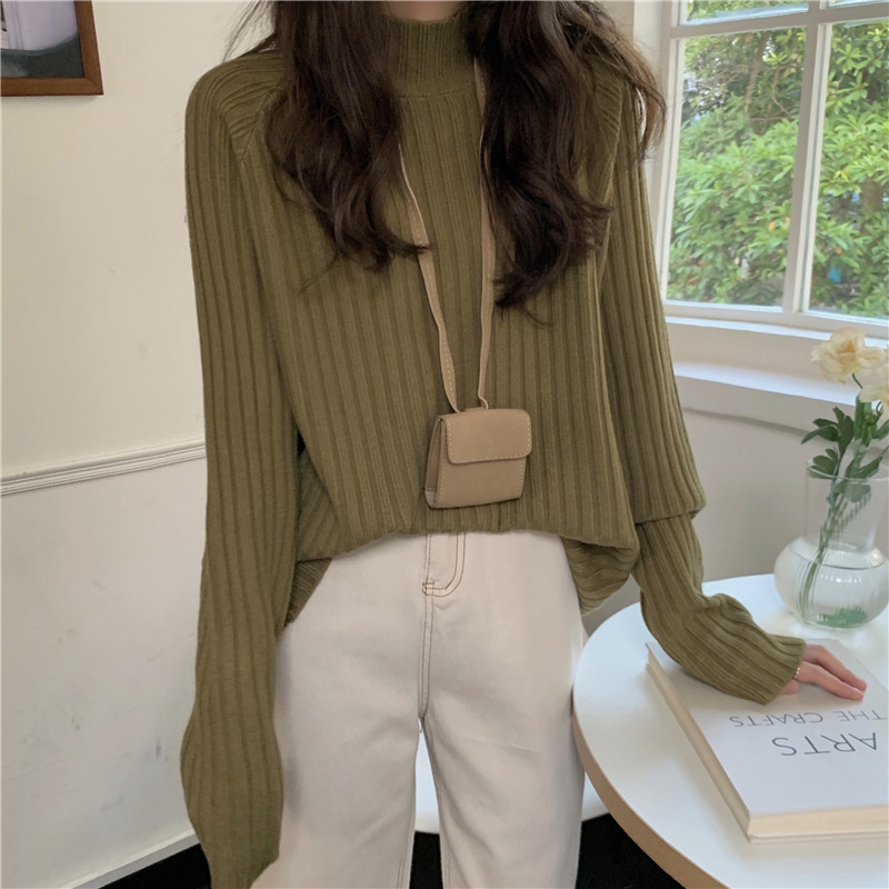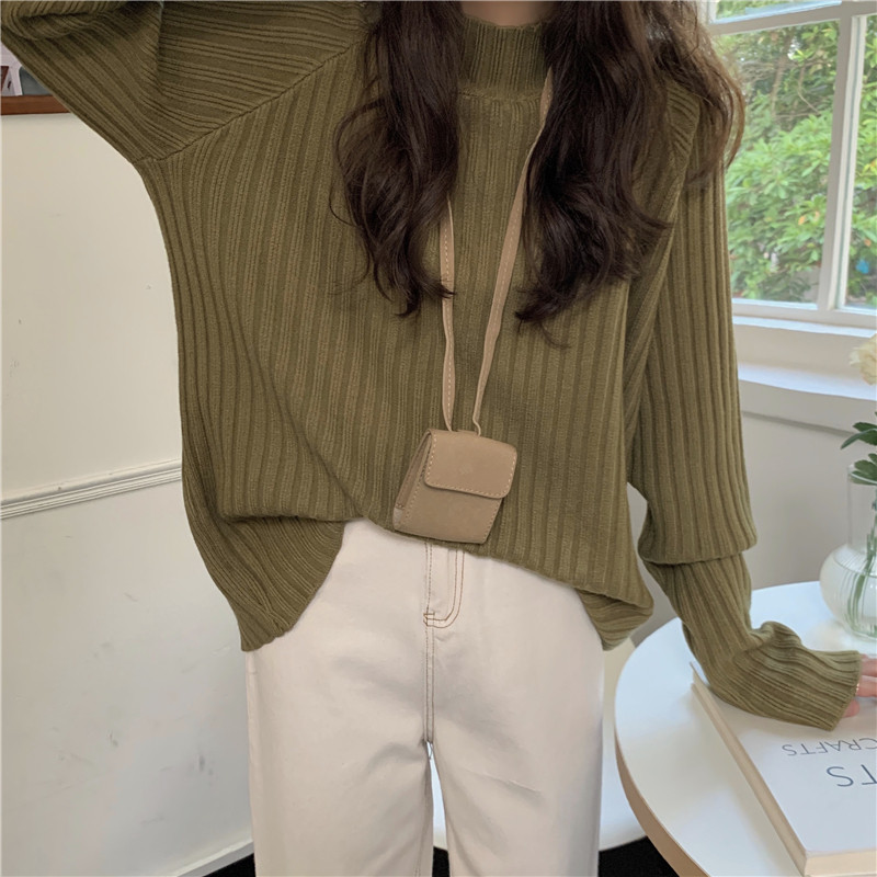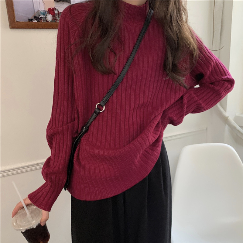 2025秋季純色半高領坑條設計感針織毛衣大碼女裝寬松顯瘦套頭上衣