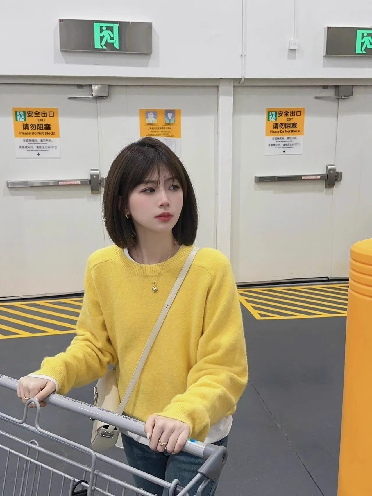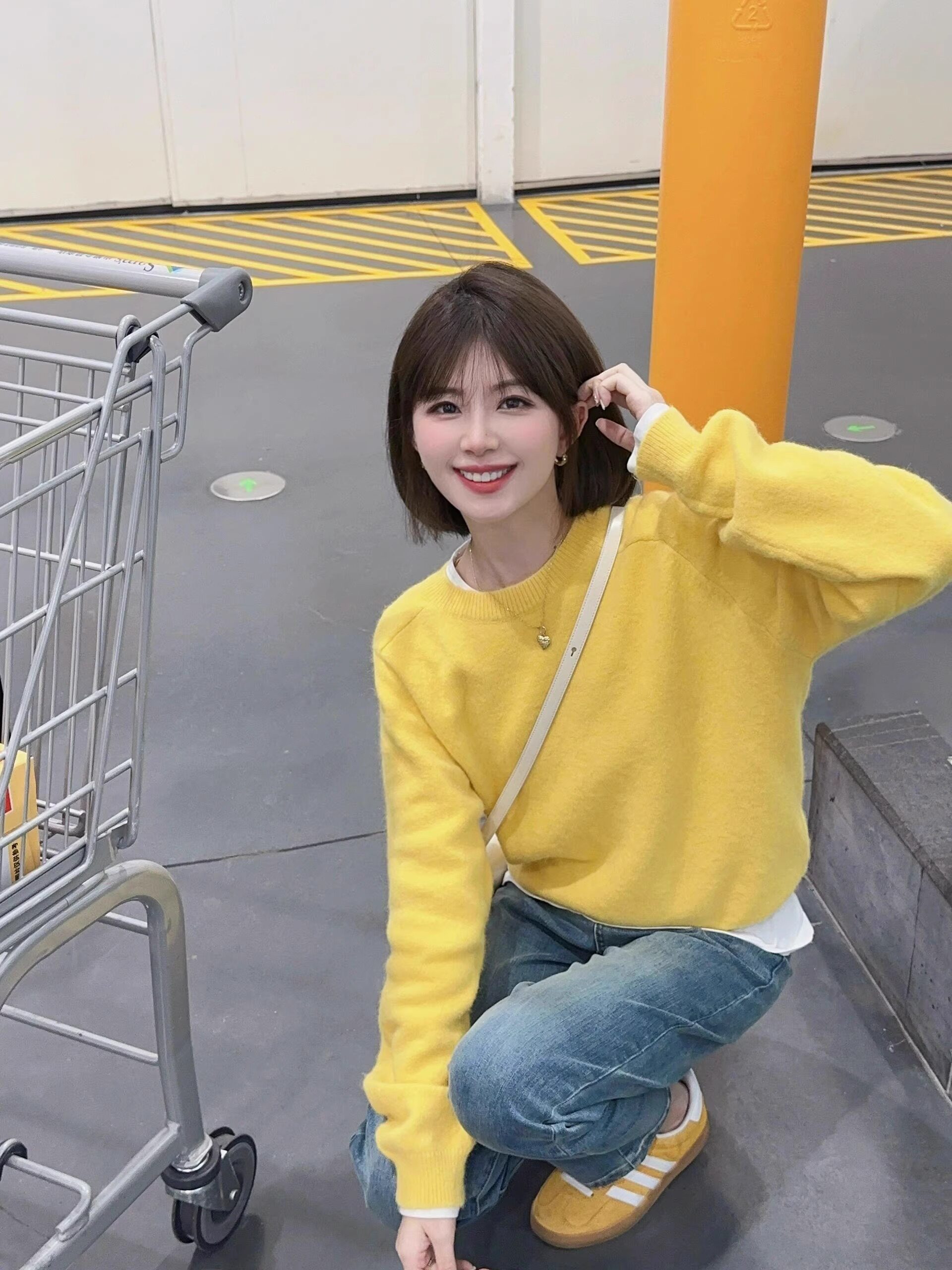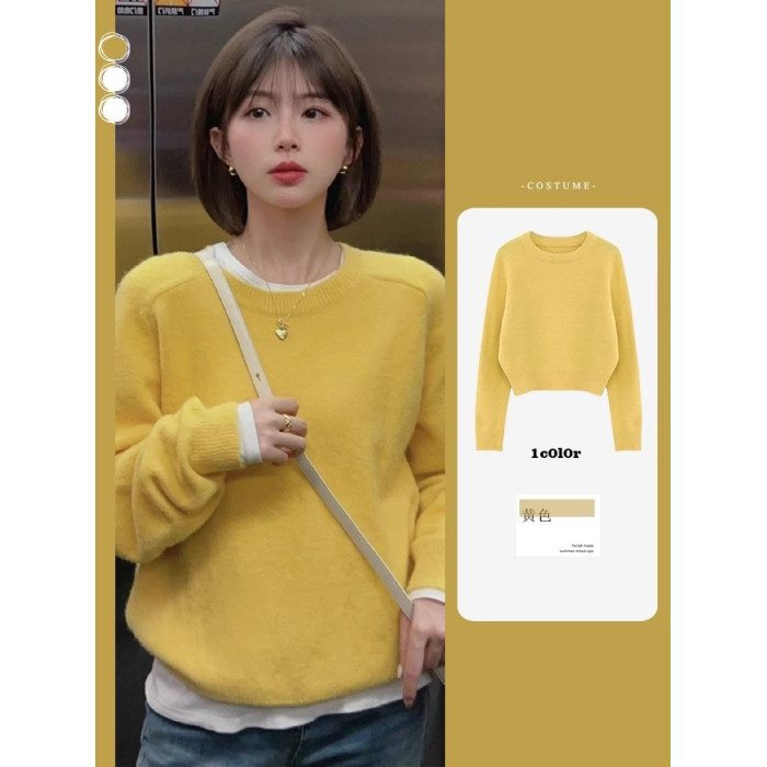 秋冬毛衣女2025爆款軟糯慵懶風別致奶系穿搭黃色針織衫上衣