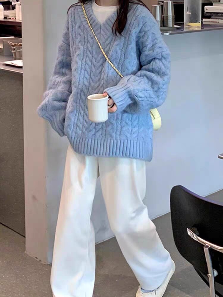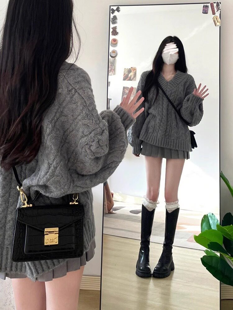 慵懶風寬松軟糯中長款毛衣女2025春季日系復古針織設計感小衆上衣