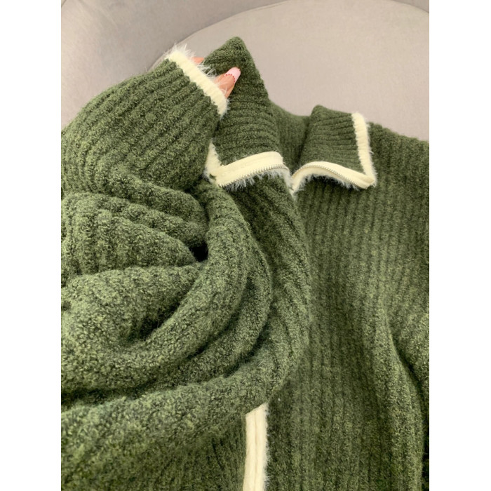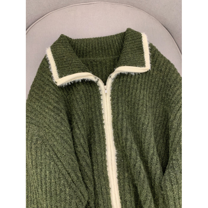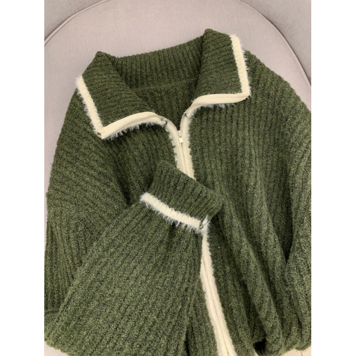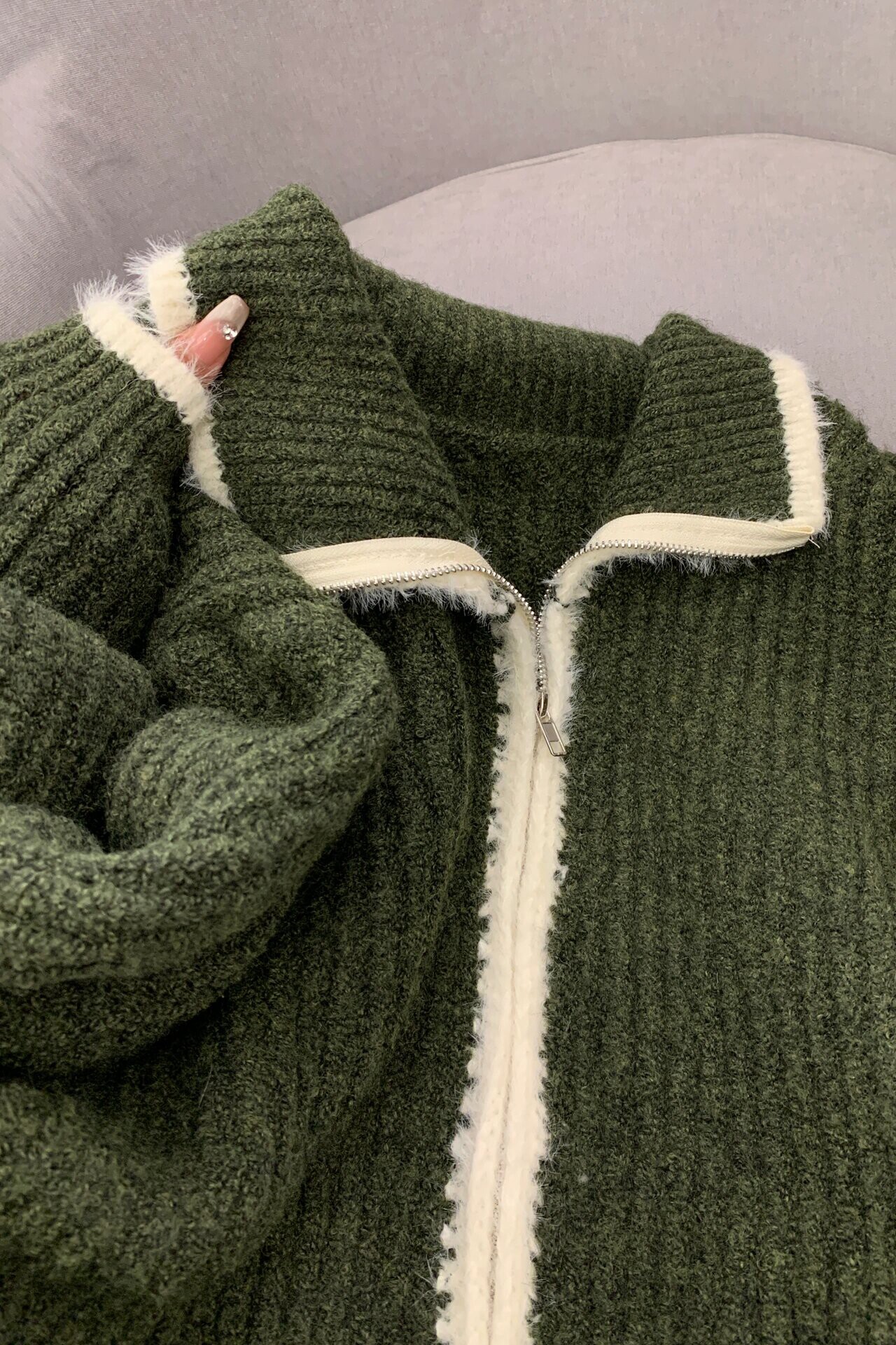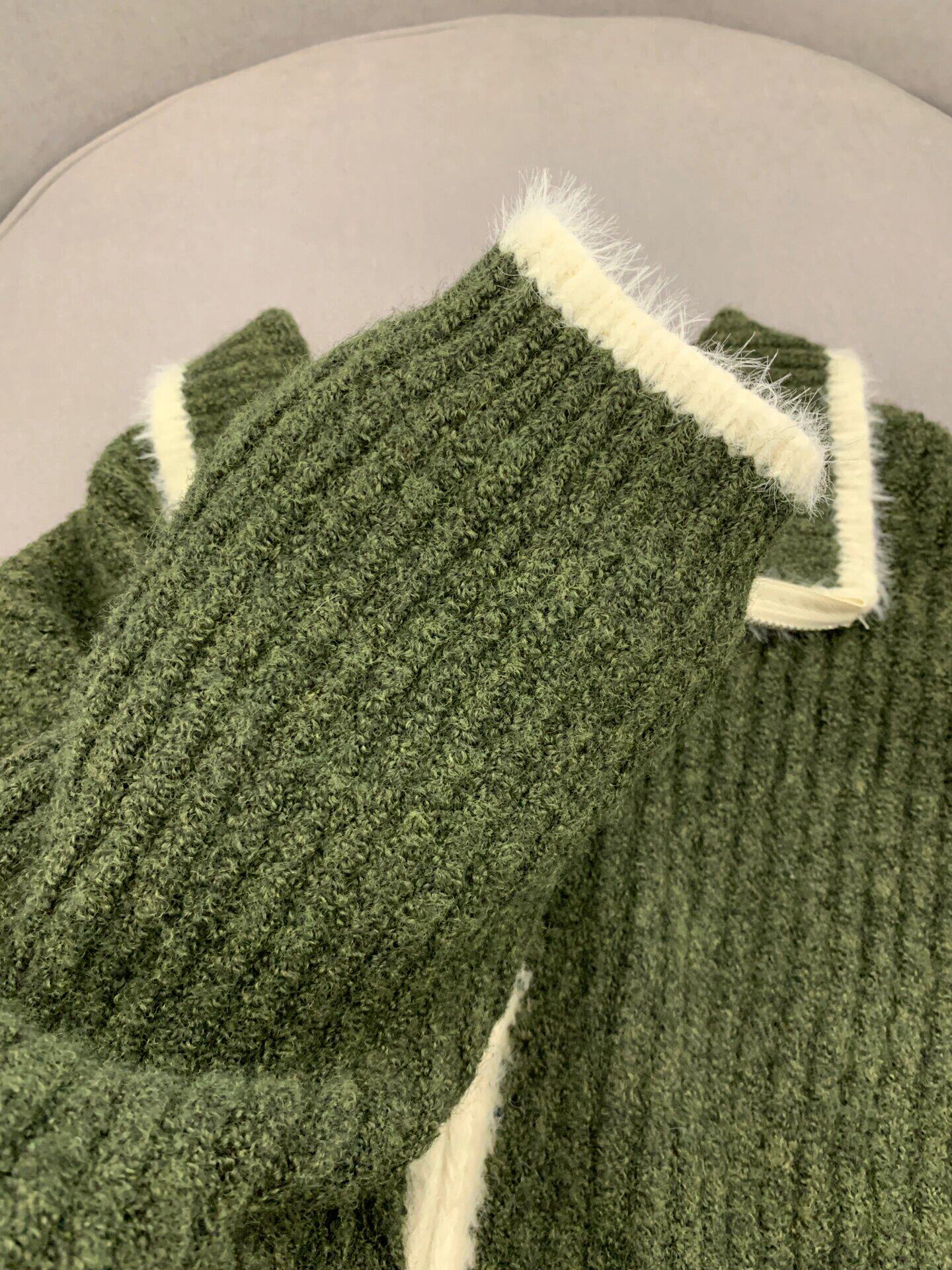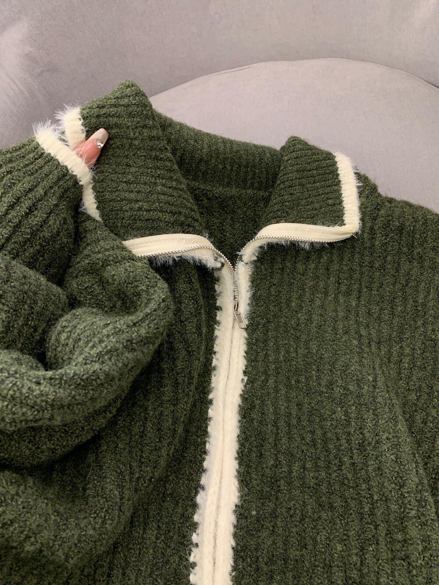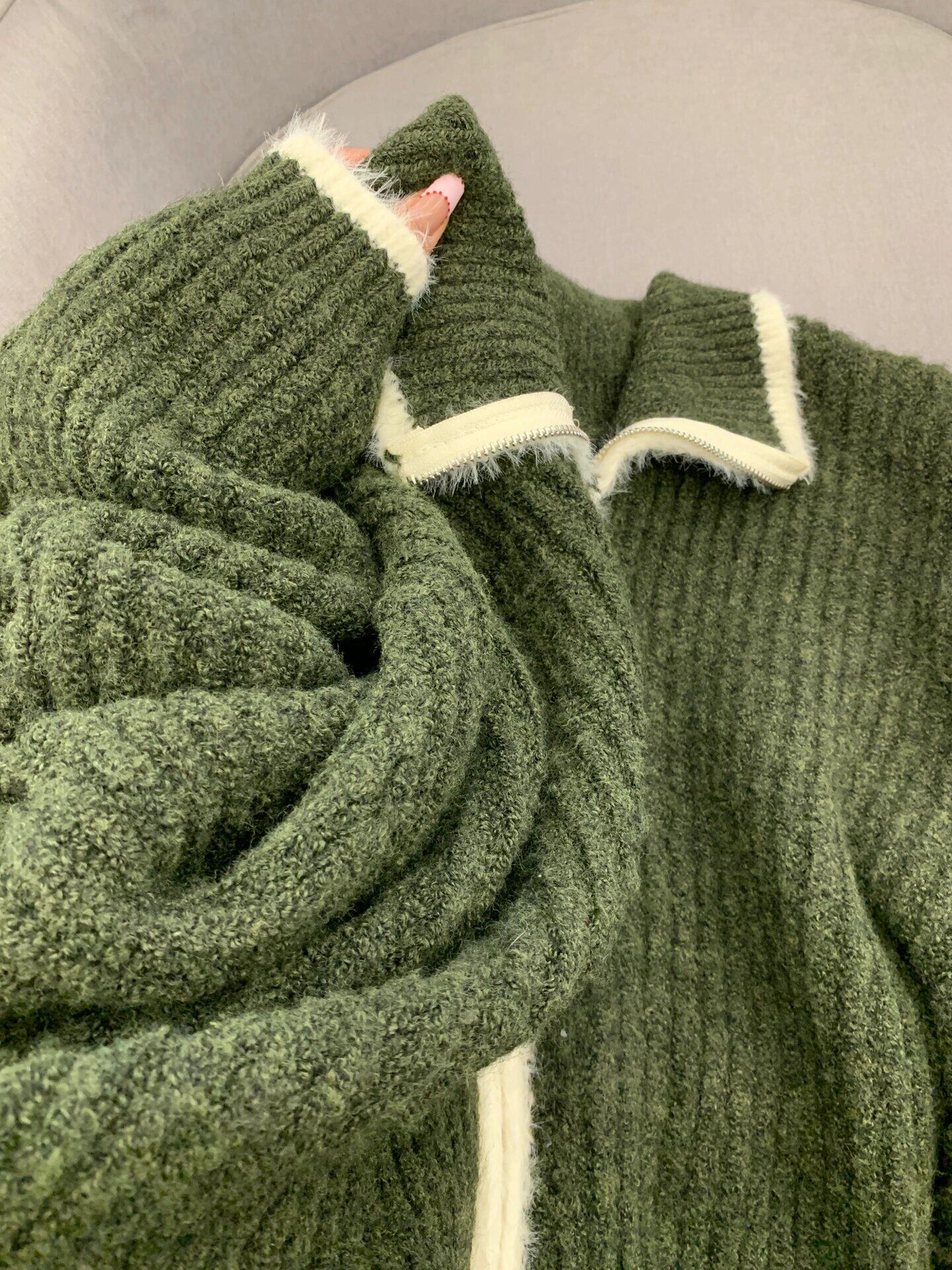 絕絕子!迴頭率超高!撞色長袖開衫毛衣女秋冬復古慵懶風針織外套