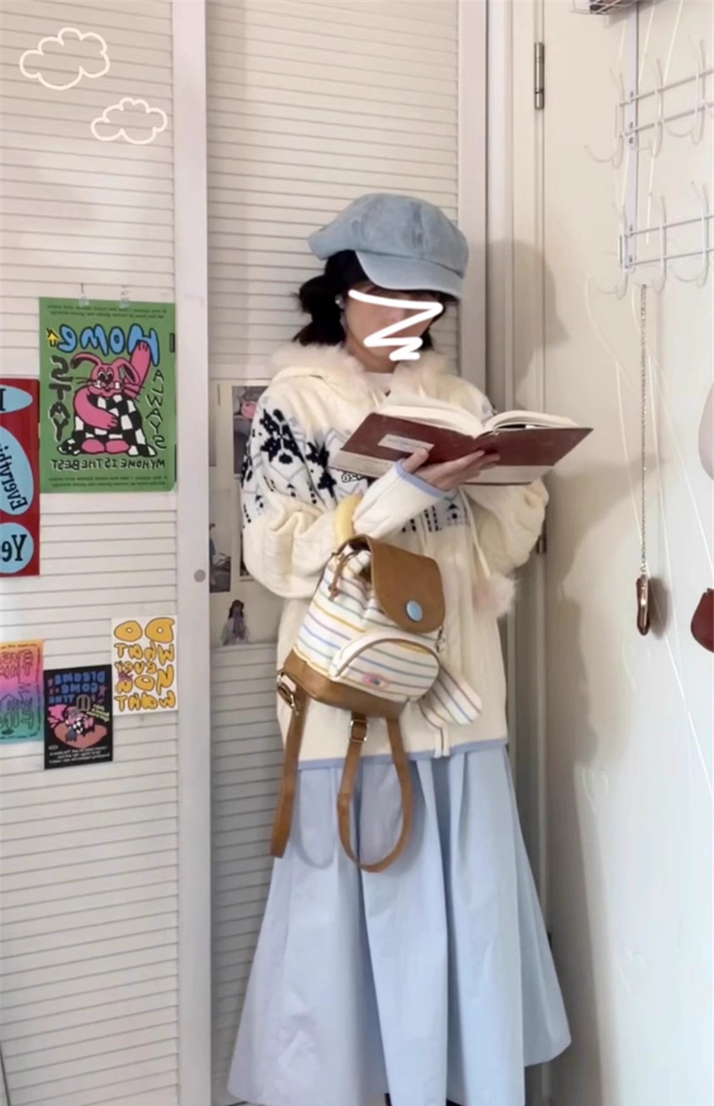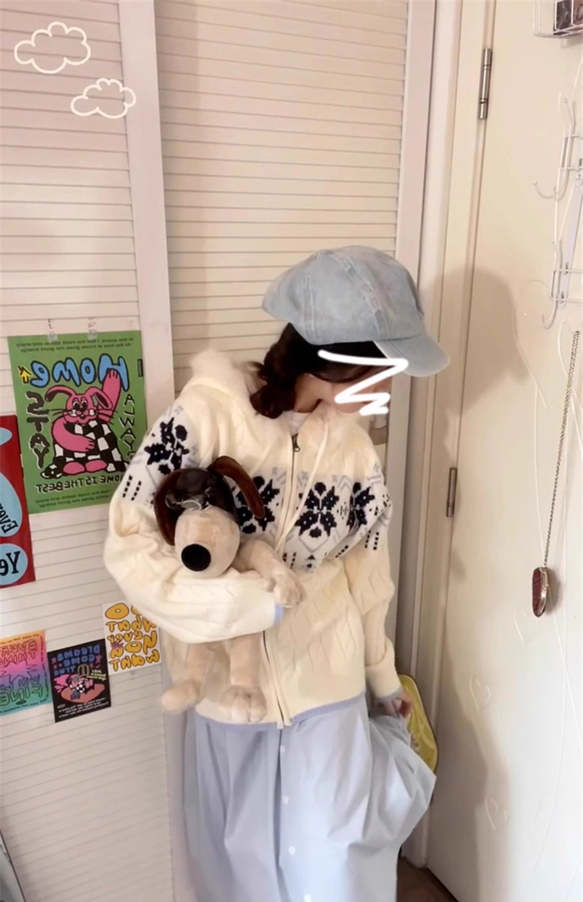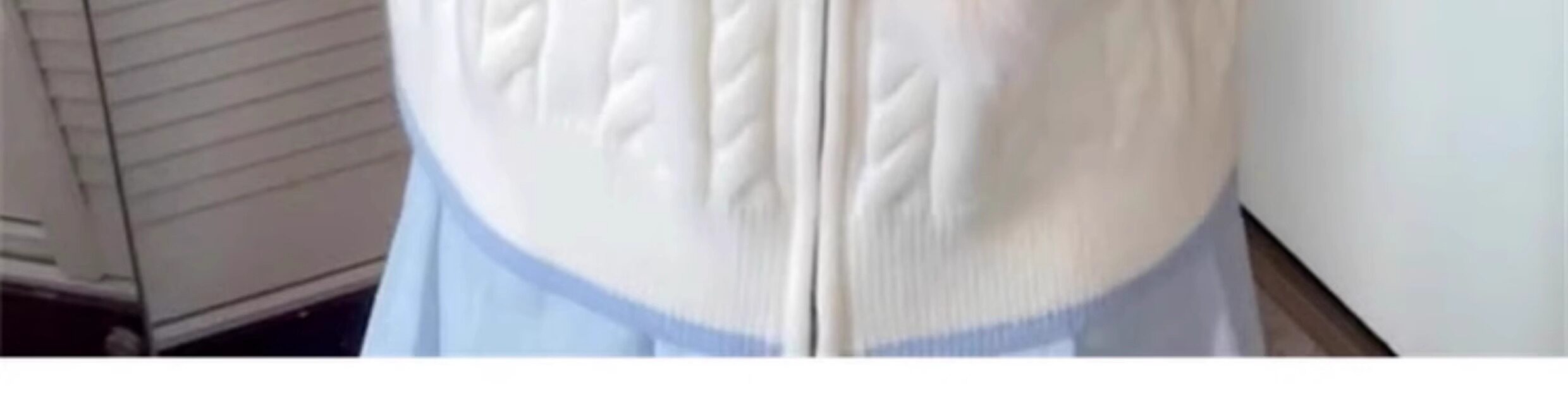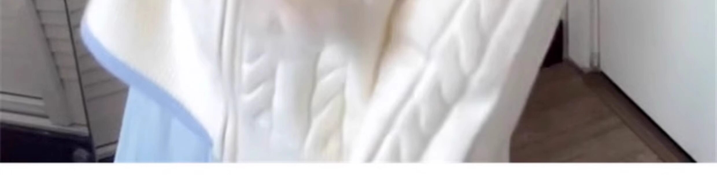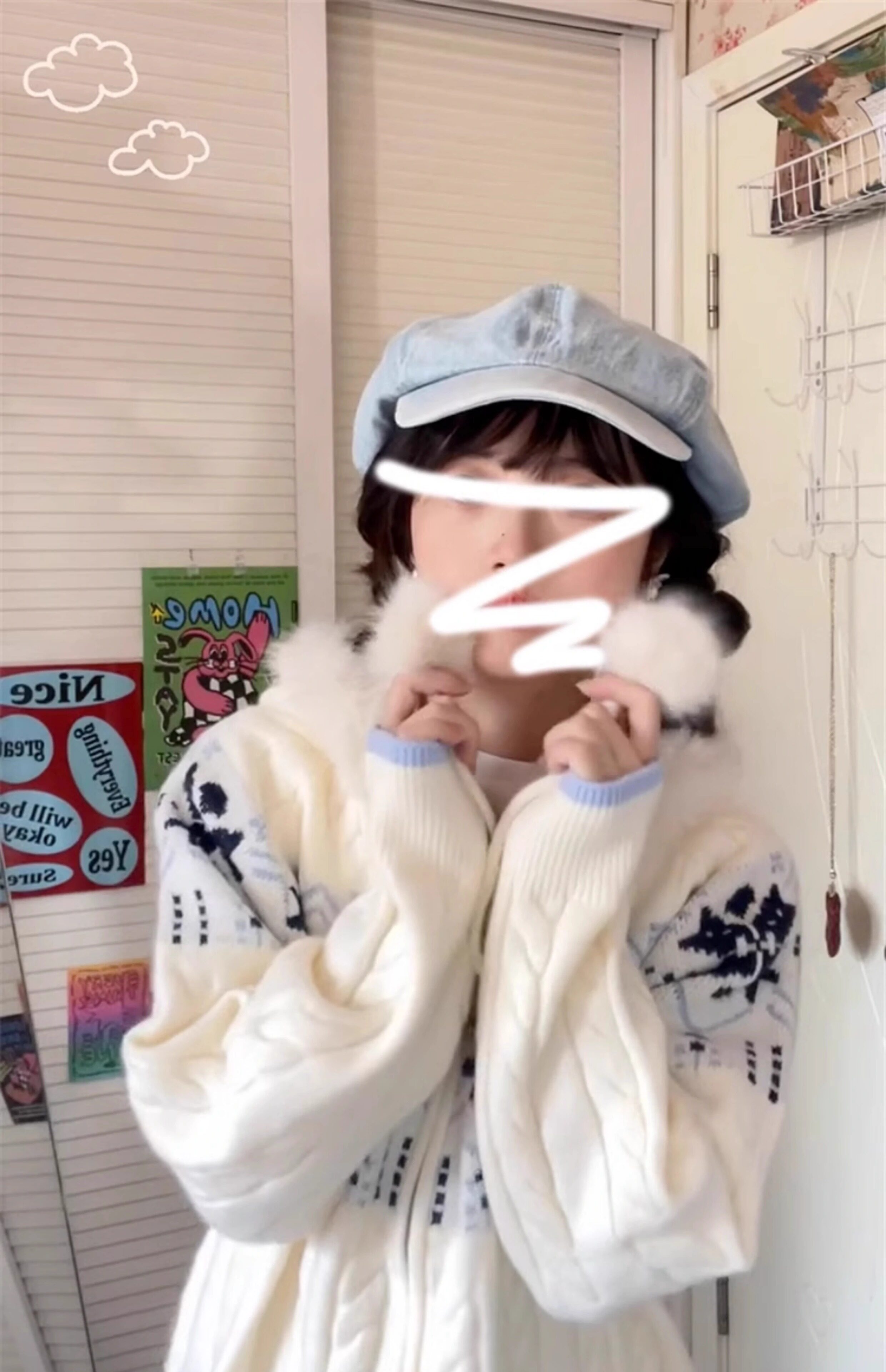 慵懶風藍白色費爾島連帽毛衣外套女秋冬季2025年新款寬松針織開衫