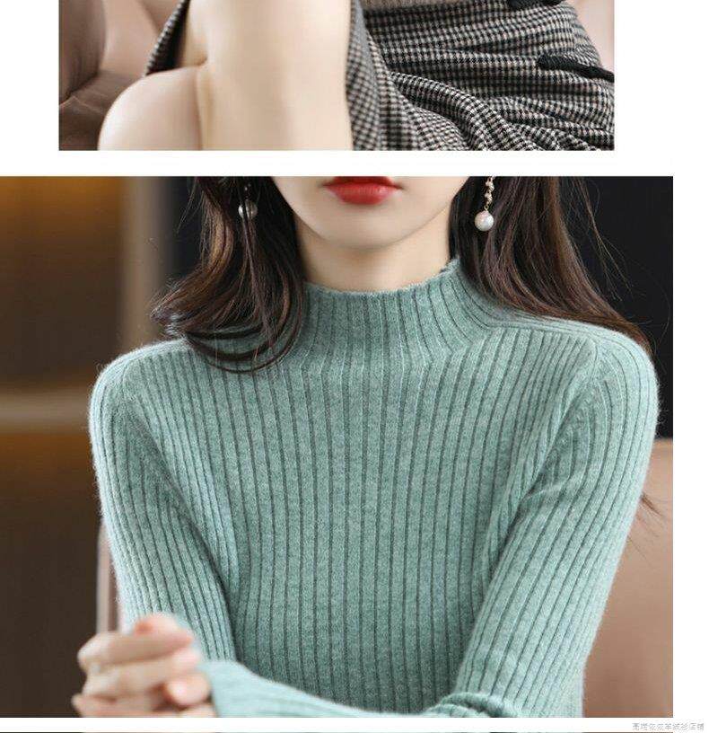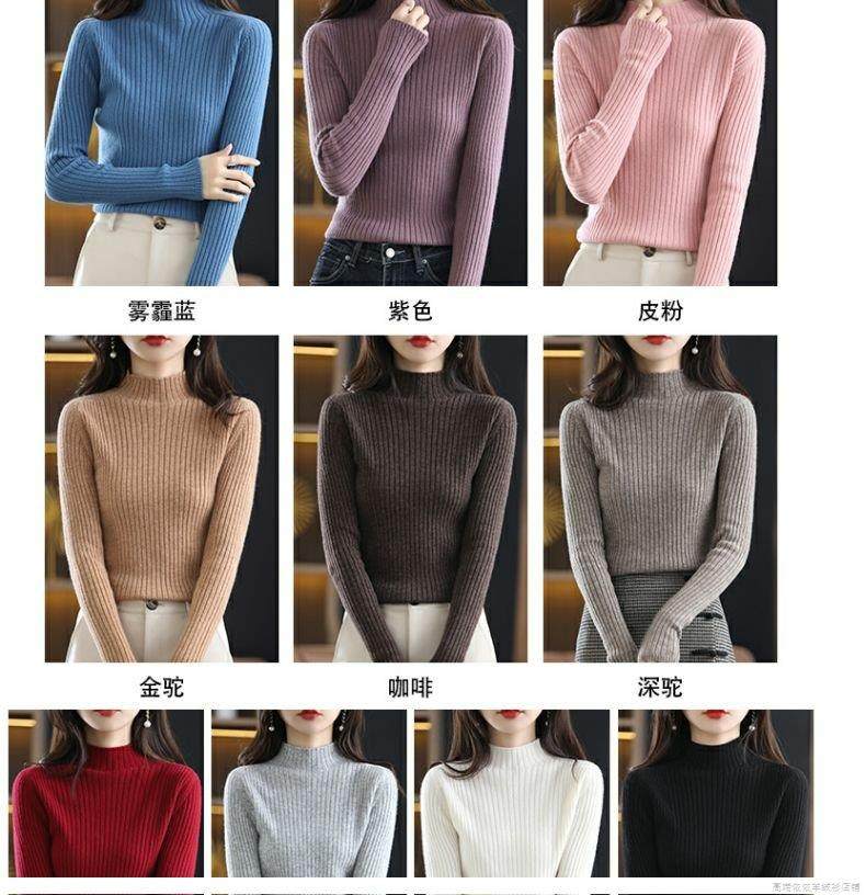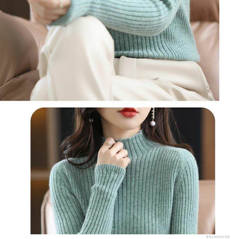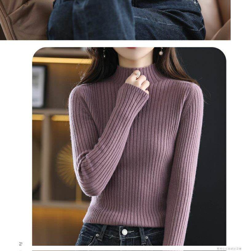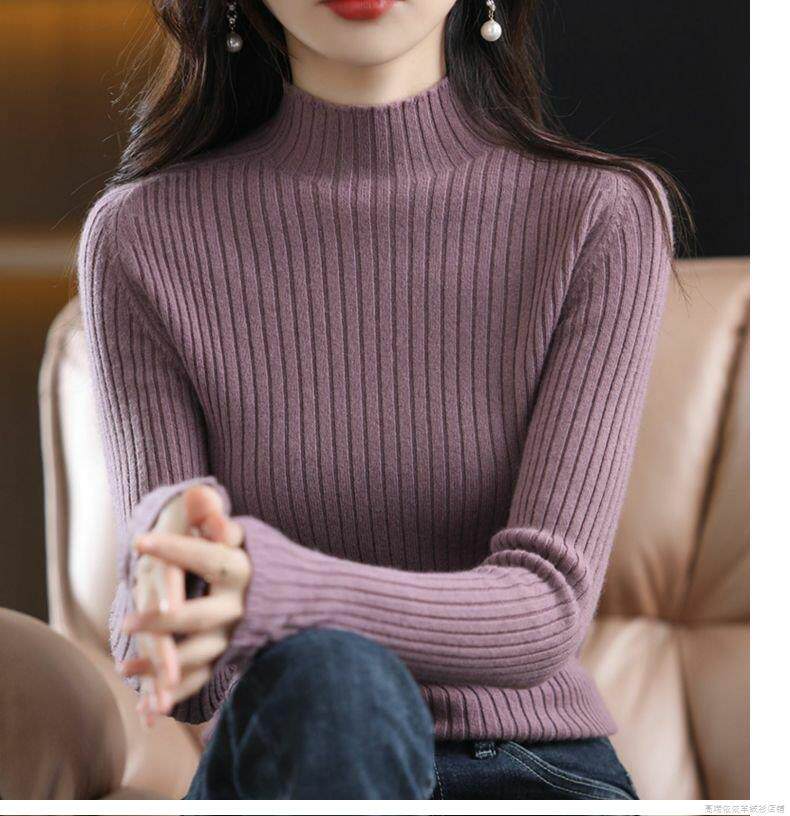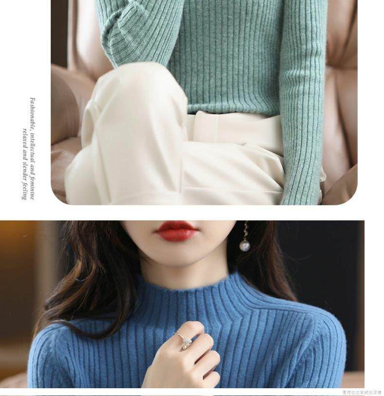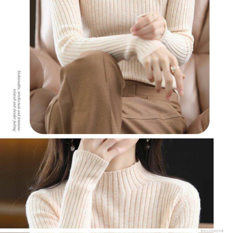 半高領直筒打底衫女修身套頭毛衣2024時尚秋新款長袖內搭針織衫