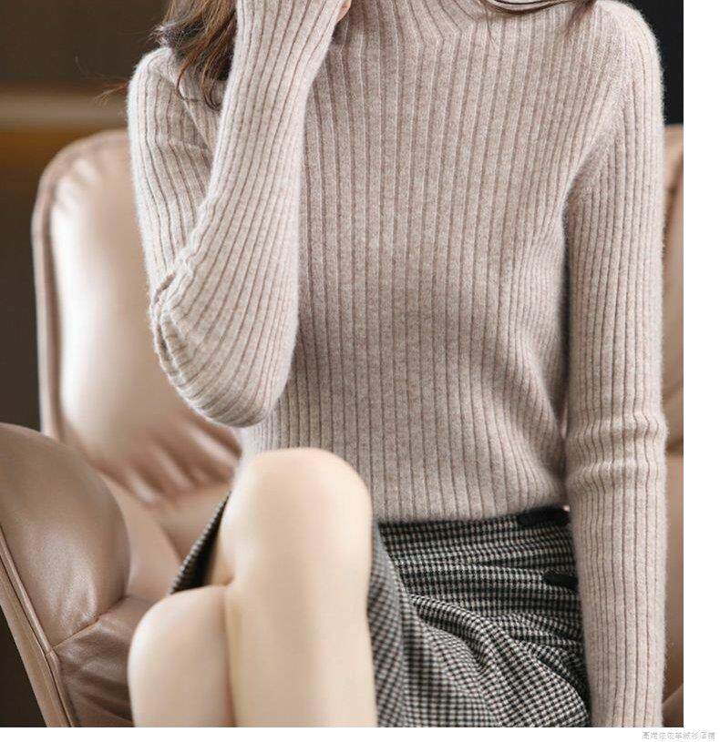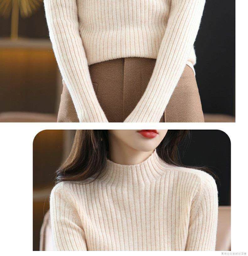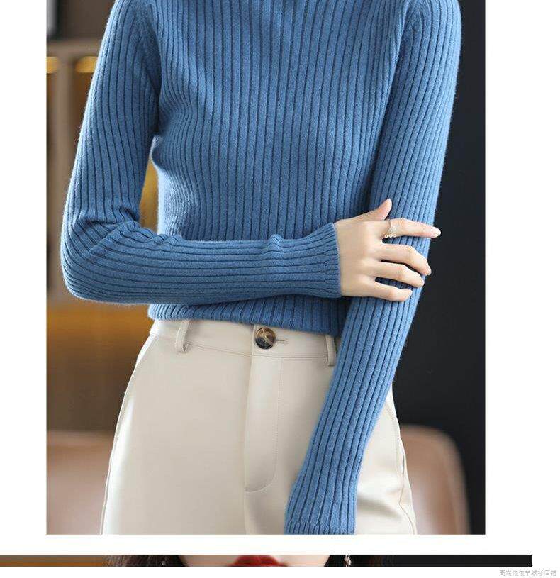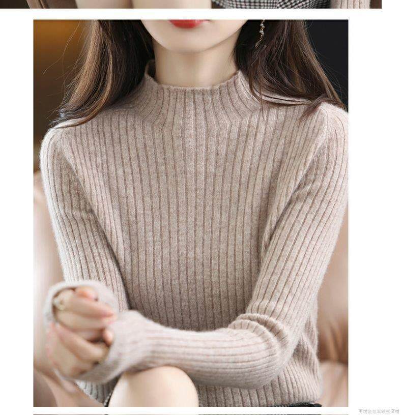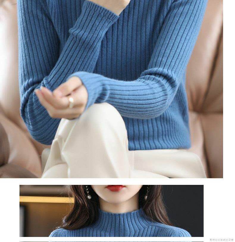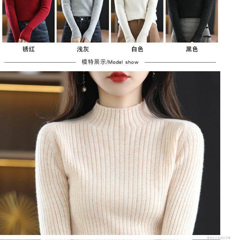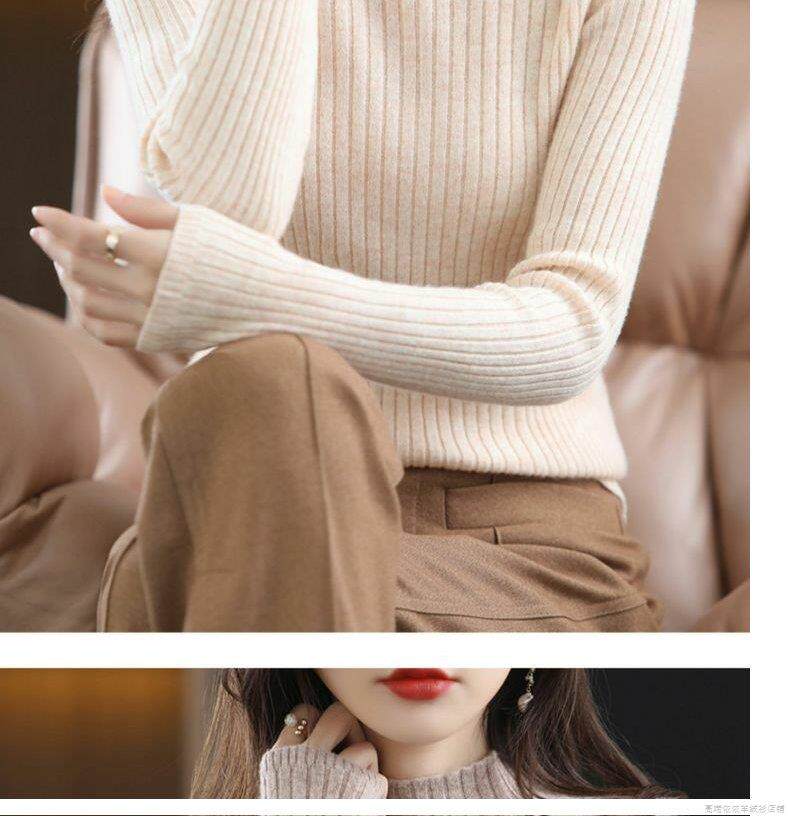 半高領直筒打底衫女修身套頭毛衣2024時尚秋新款長袖內搭針織衫