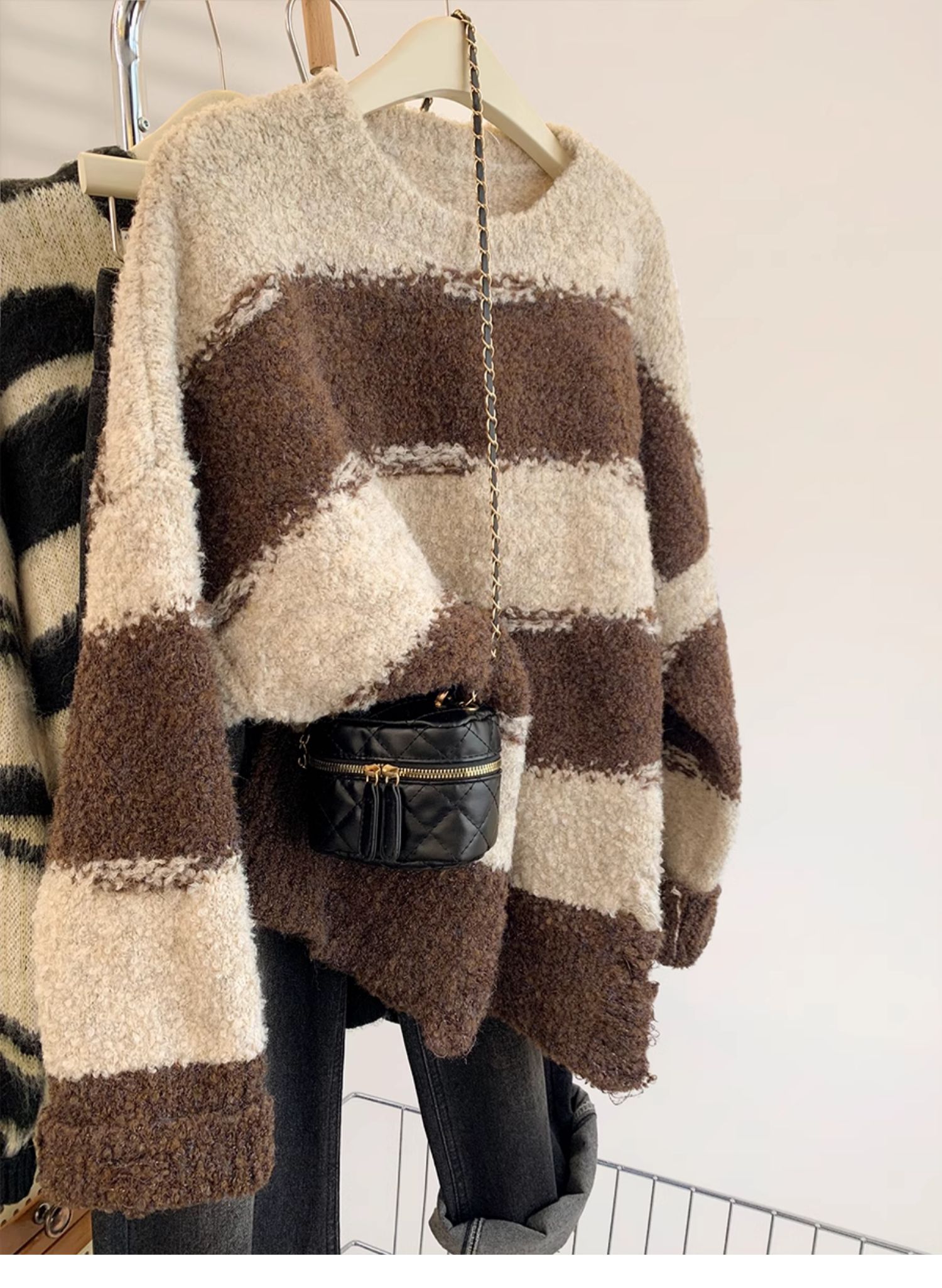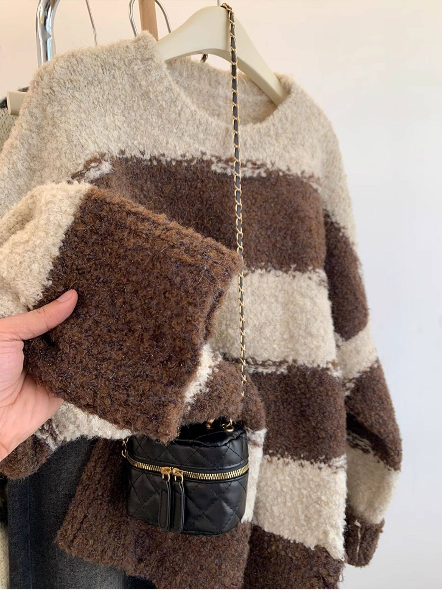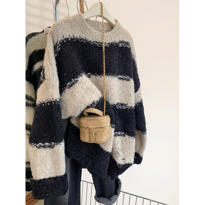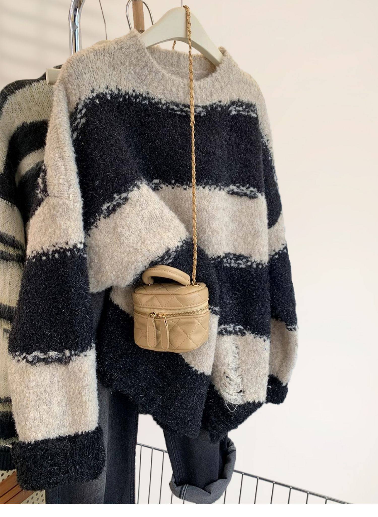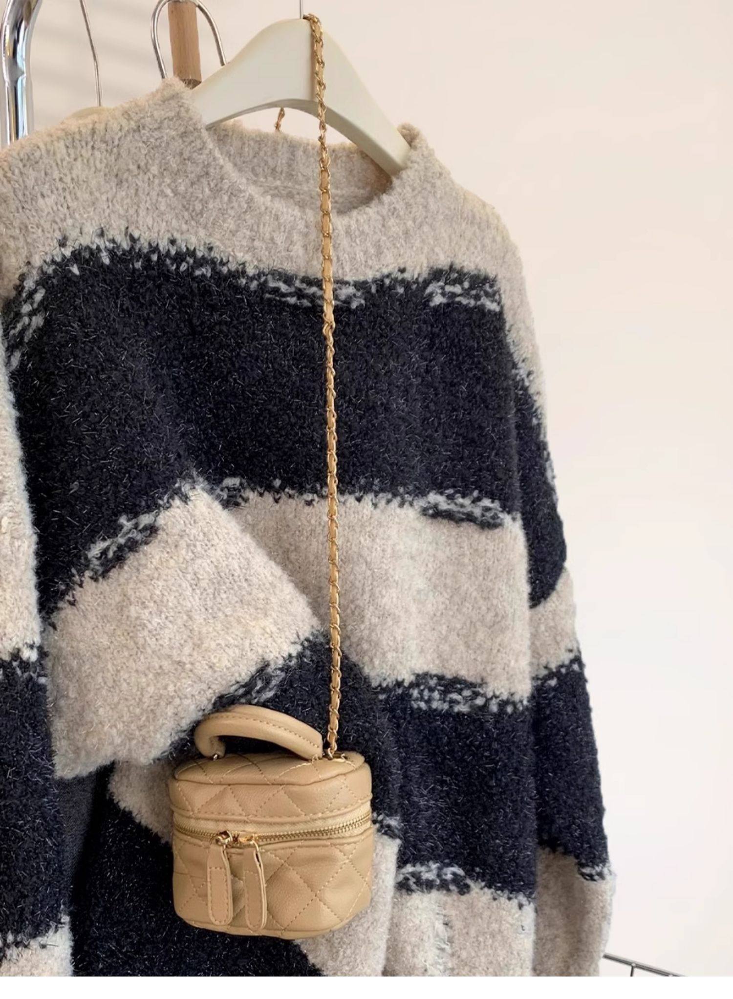 中長款套頭條紋毛衣女秋冬加厚外穿寬松慵懶風高級感秋冬2025新款