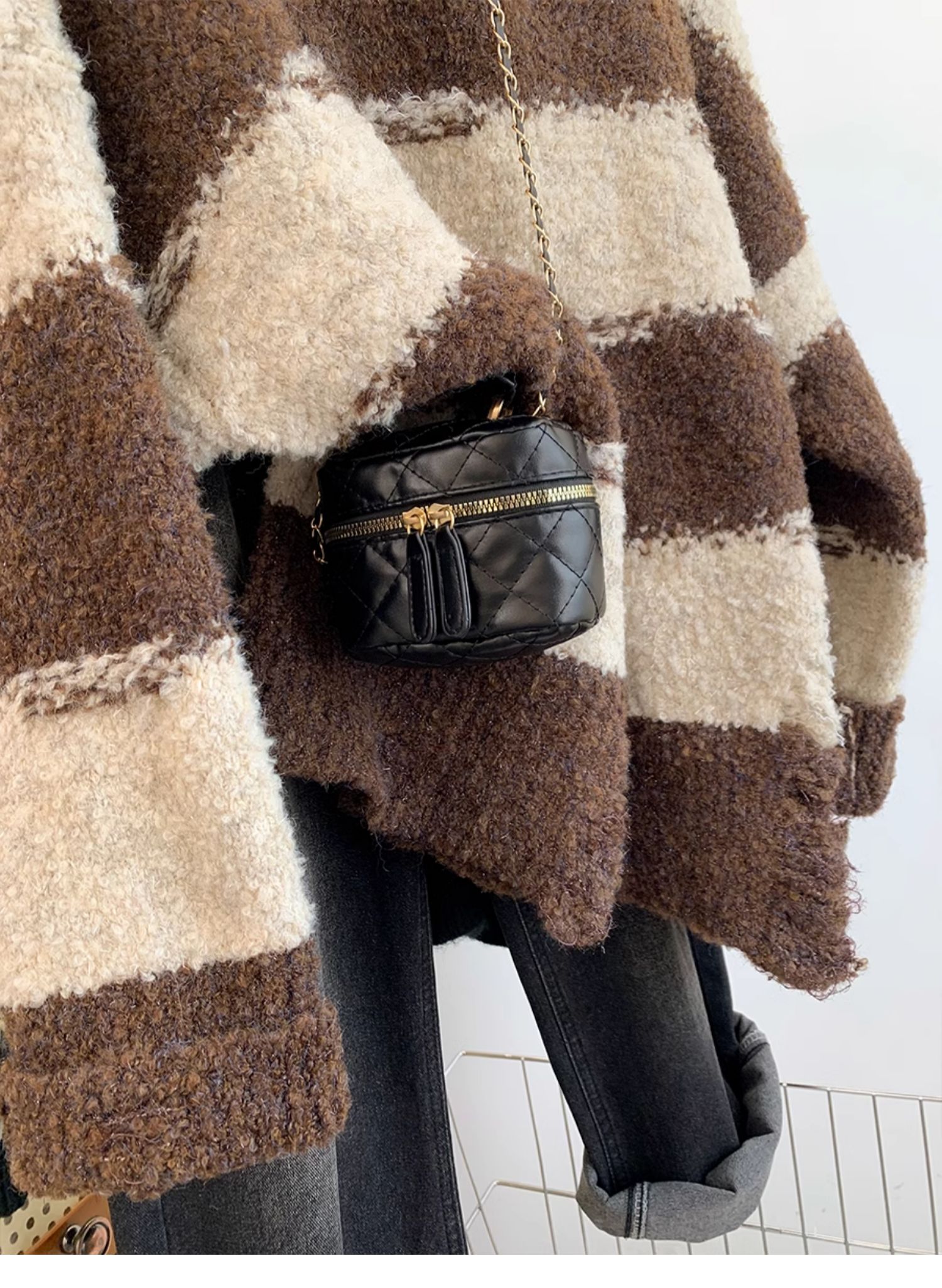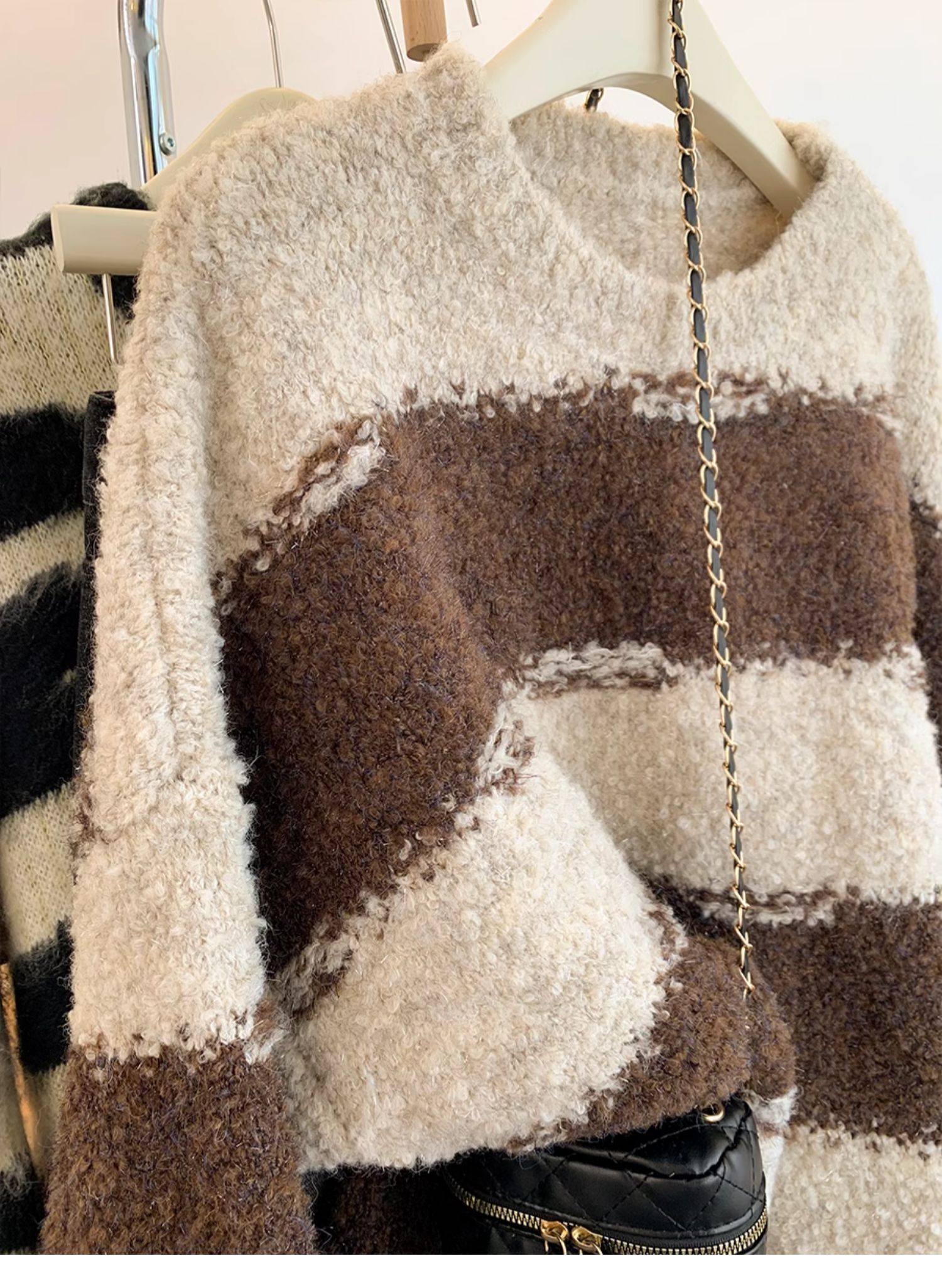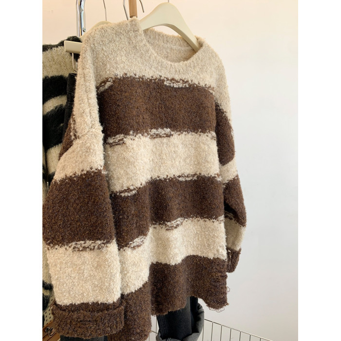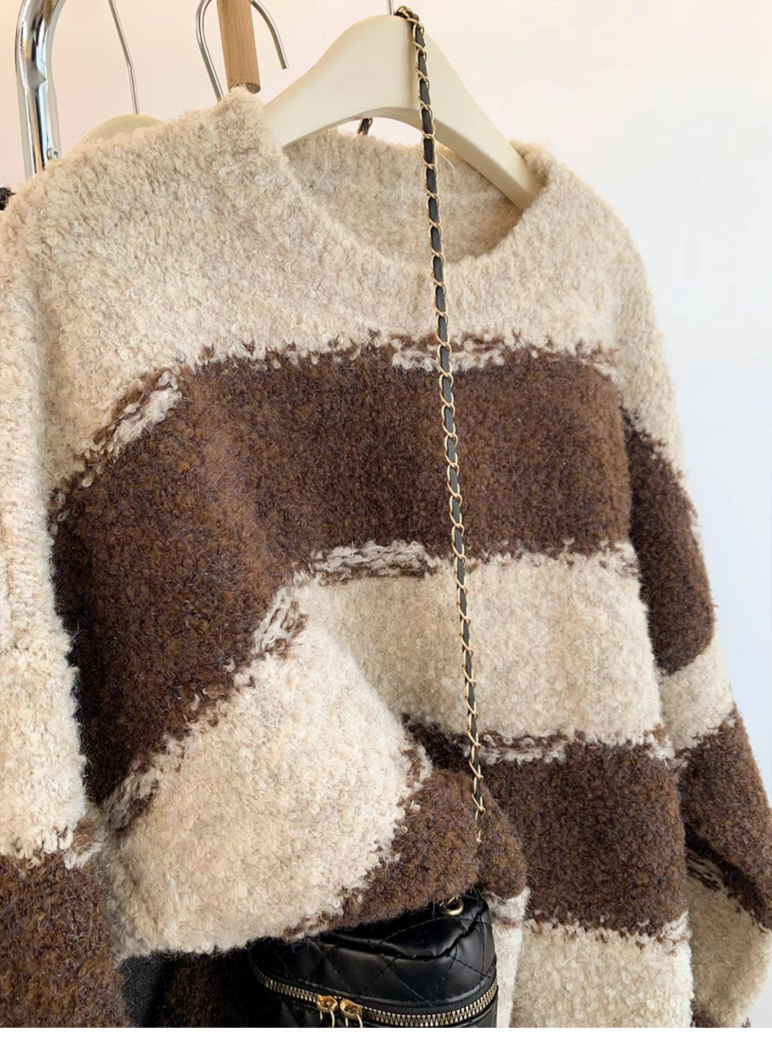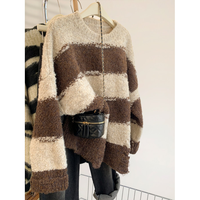 中長款套頭條紋毛衣女秋冬加厚外穿寬松慵懶風高級感秋冬2025新款