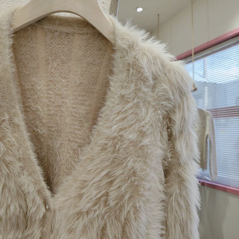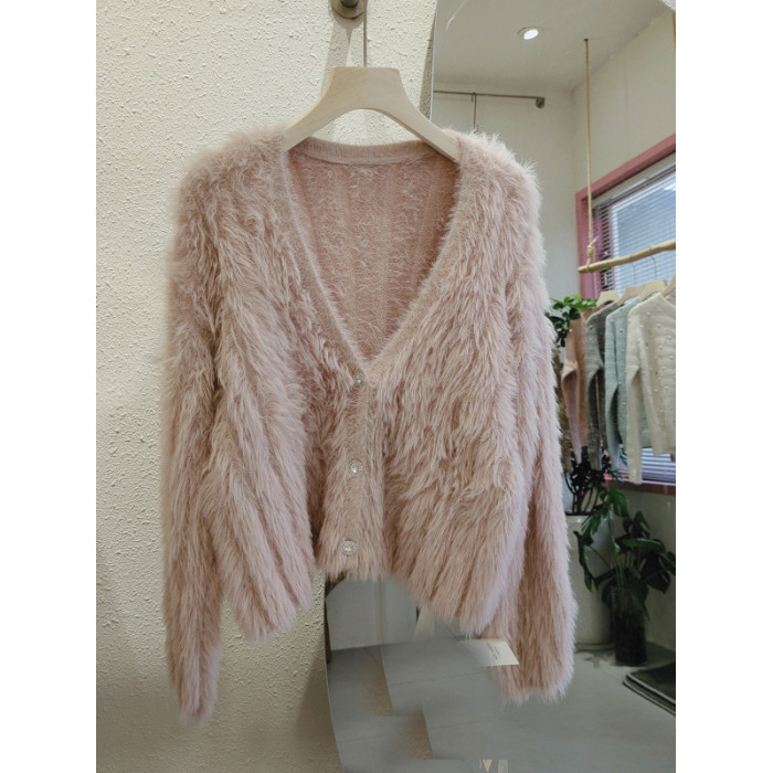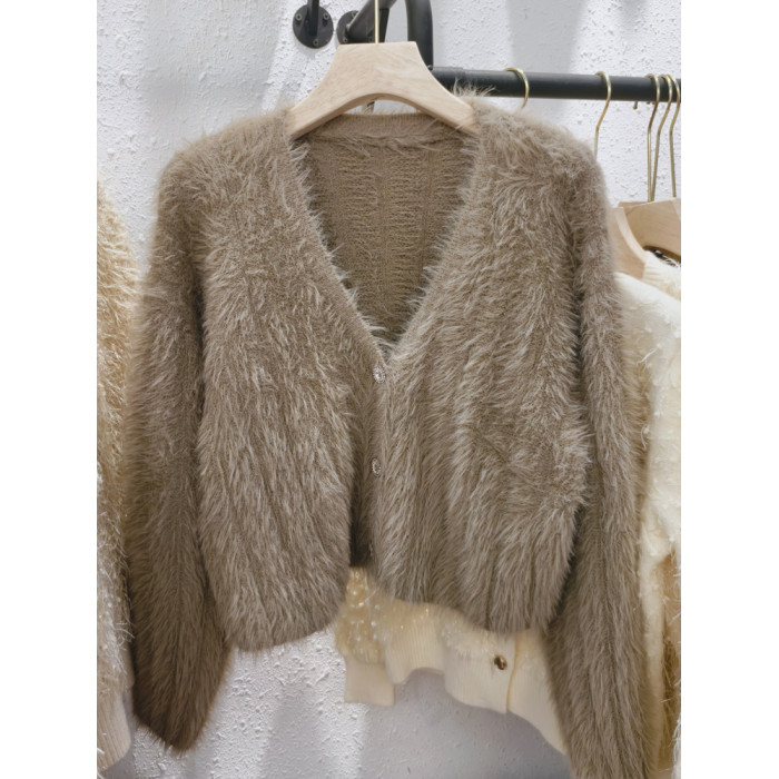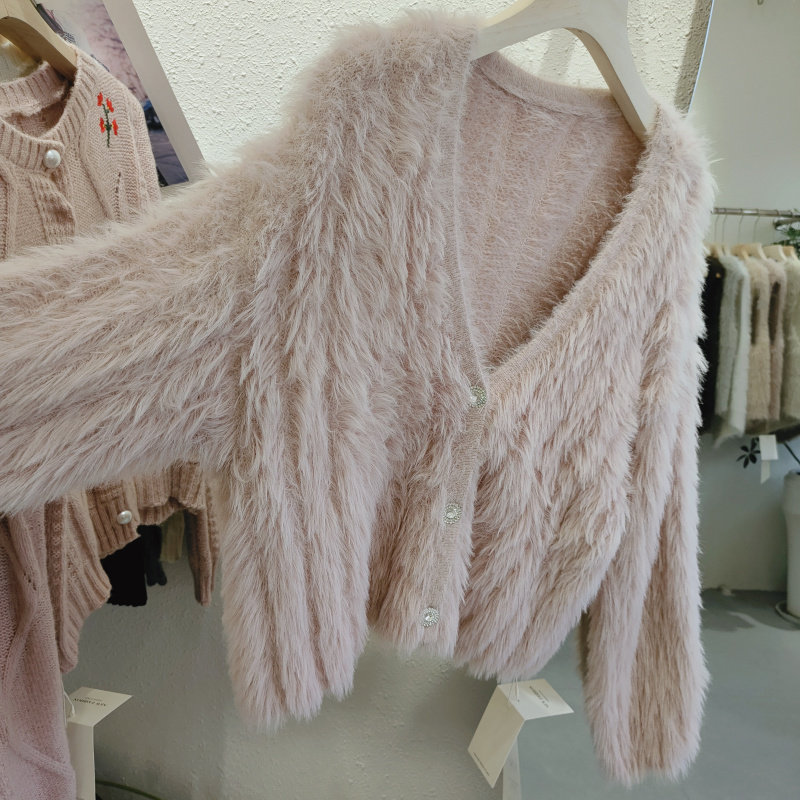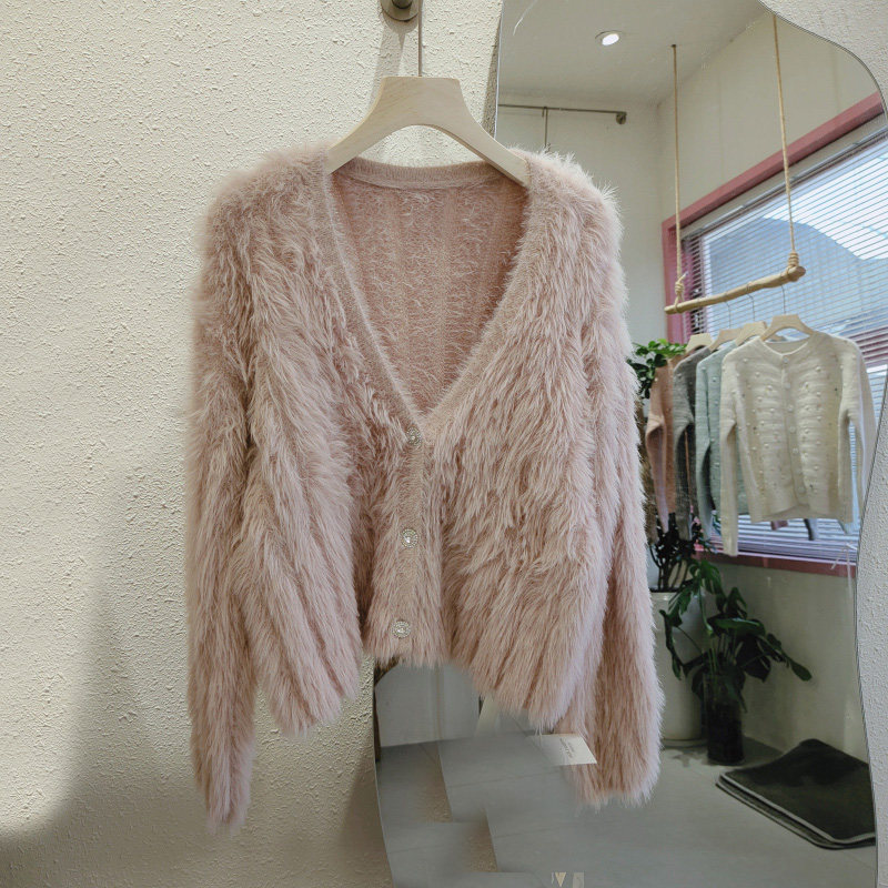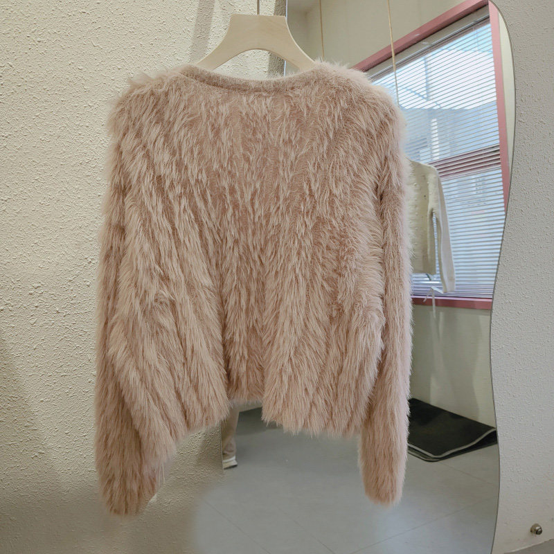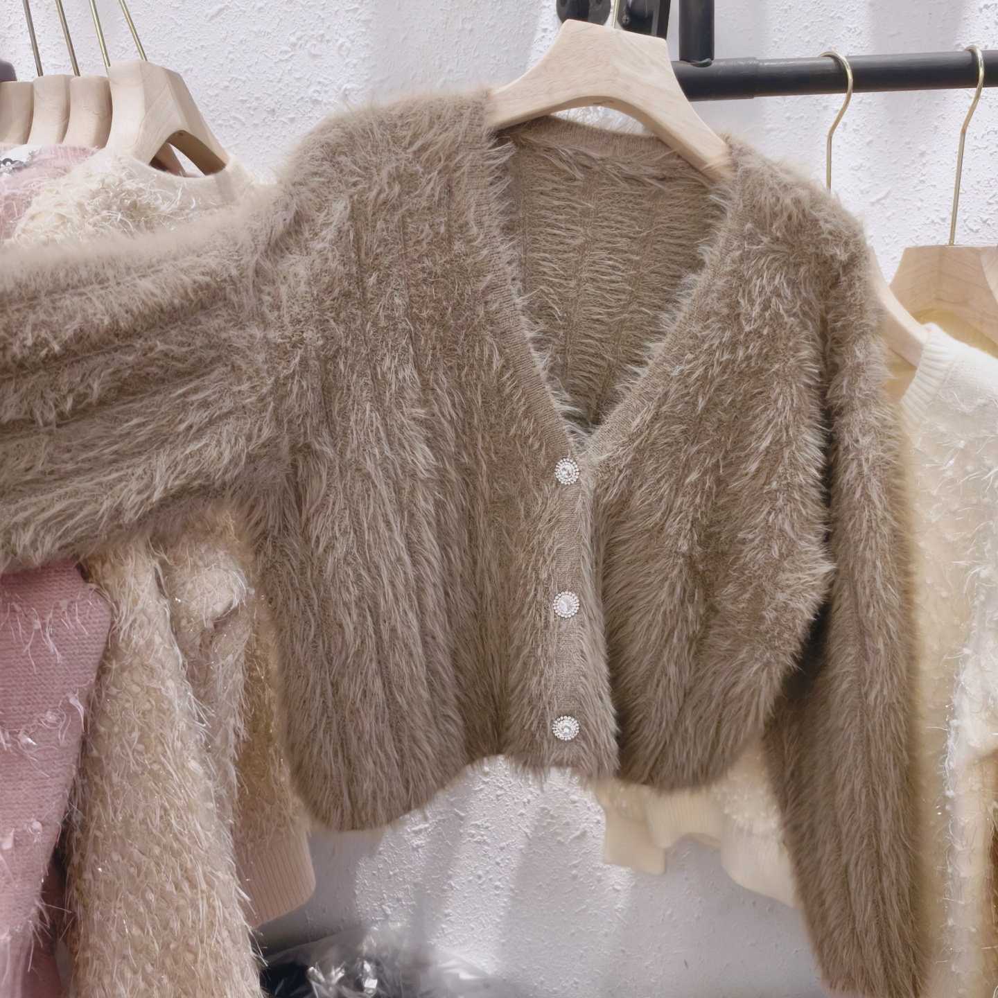 仿水貂絨名媛外搭針織外套女秋冬新款小香風高級軟糯短款毛衣上衣