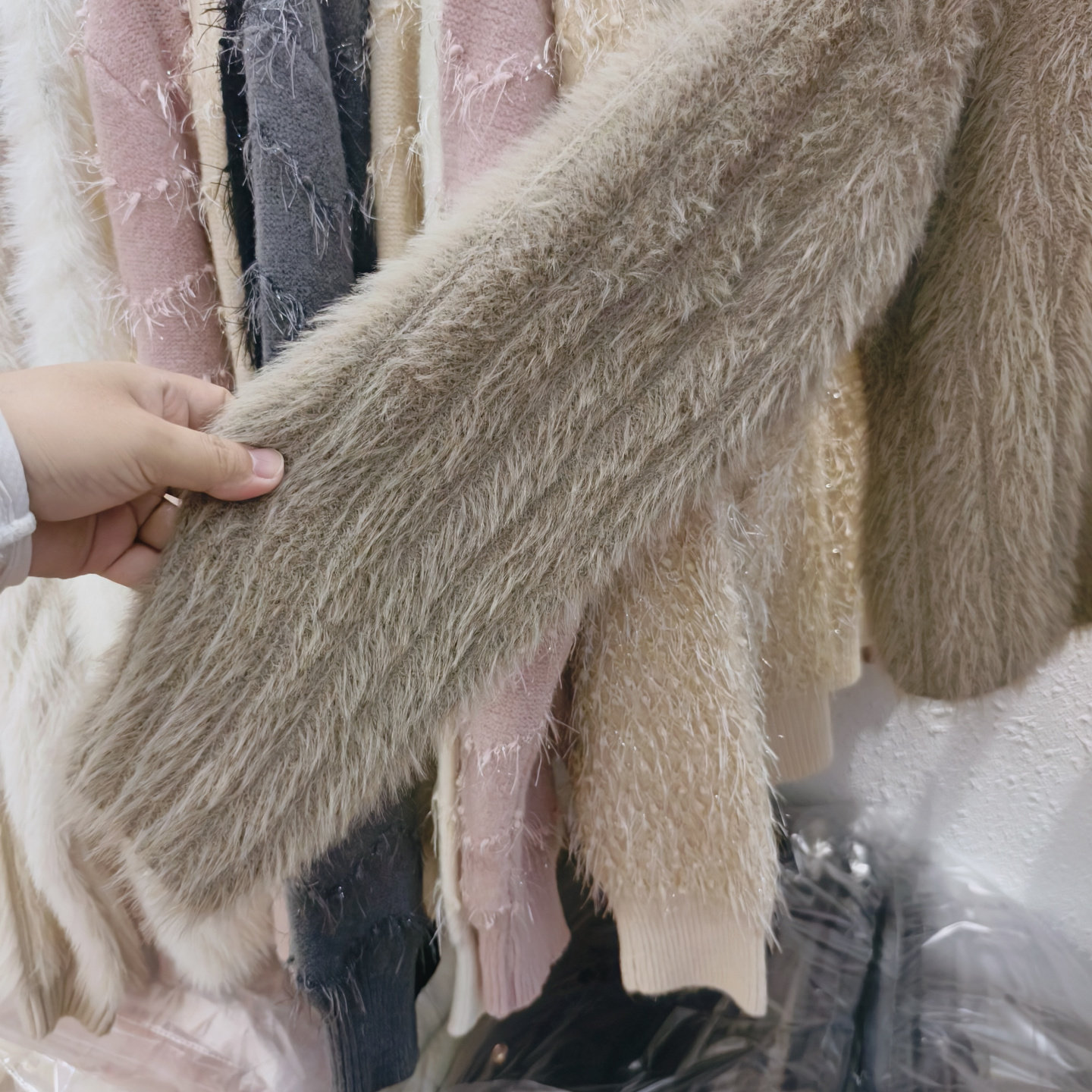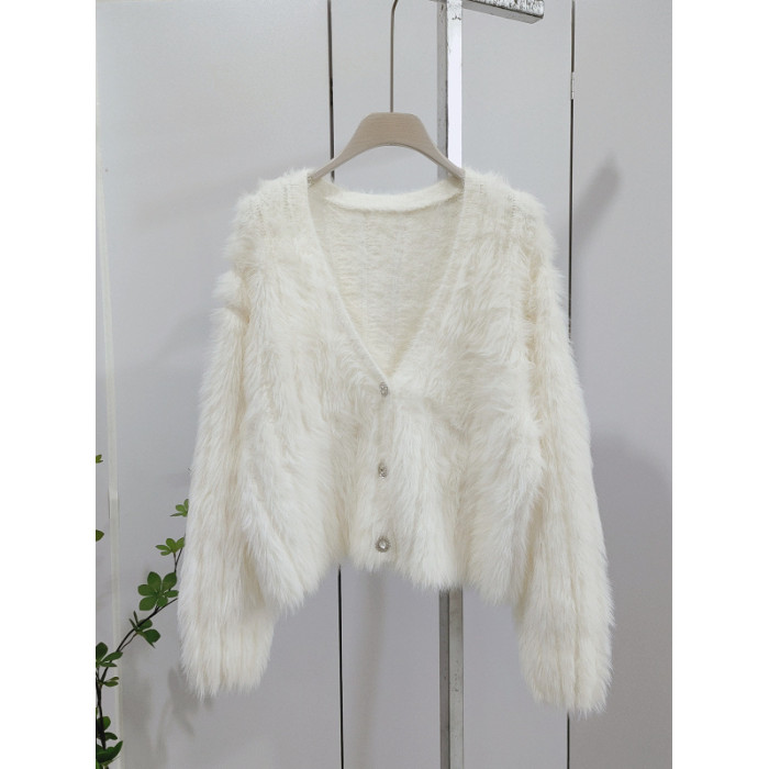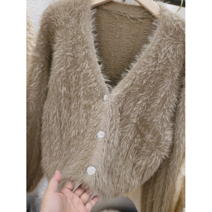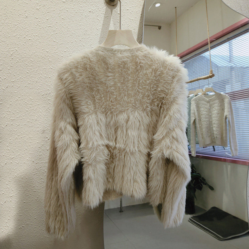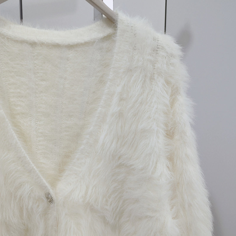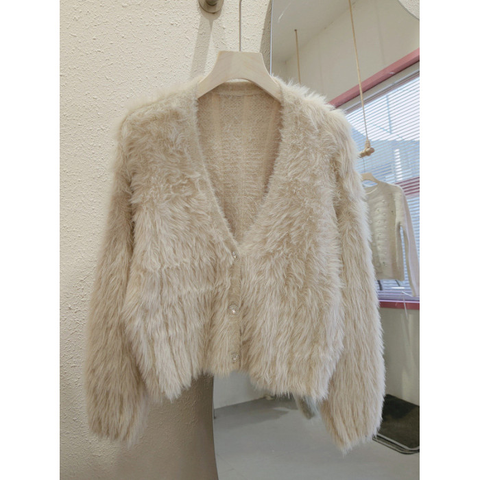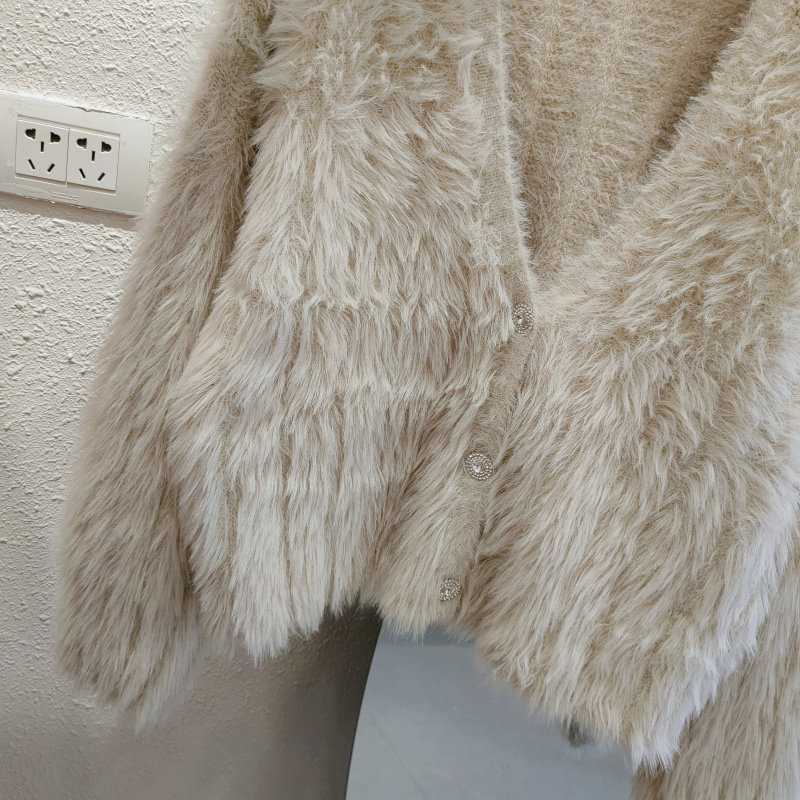 仿水貂絨名媛外搭針織外套女秋冬新款小香風高級軟糯短款毛衣上衣