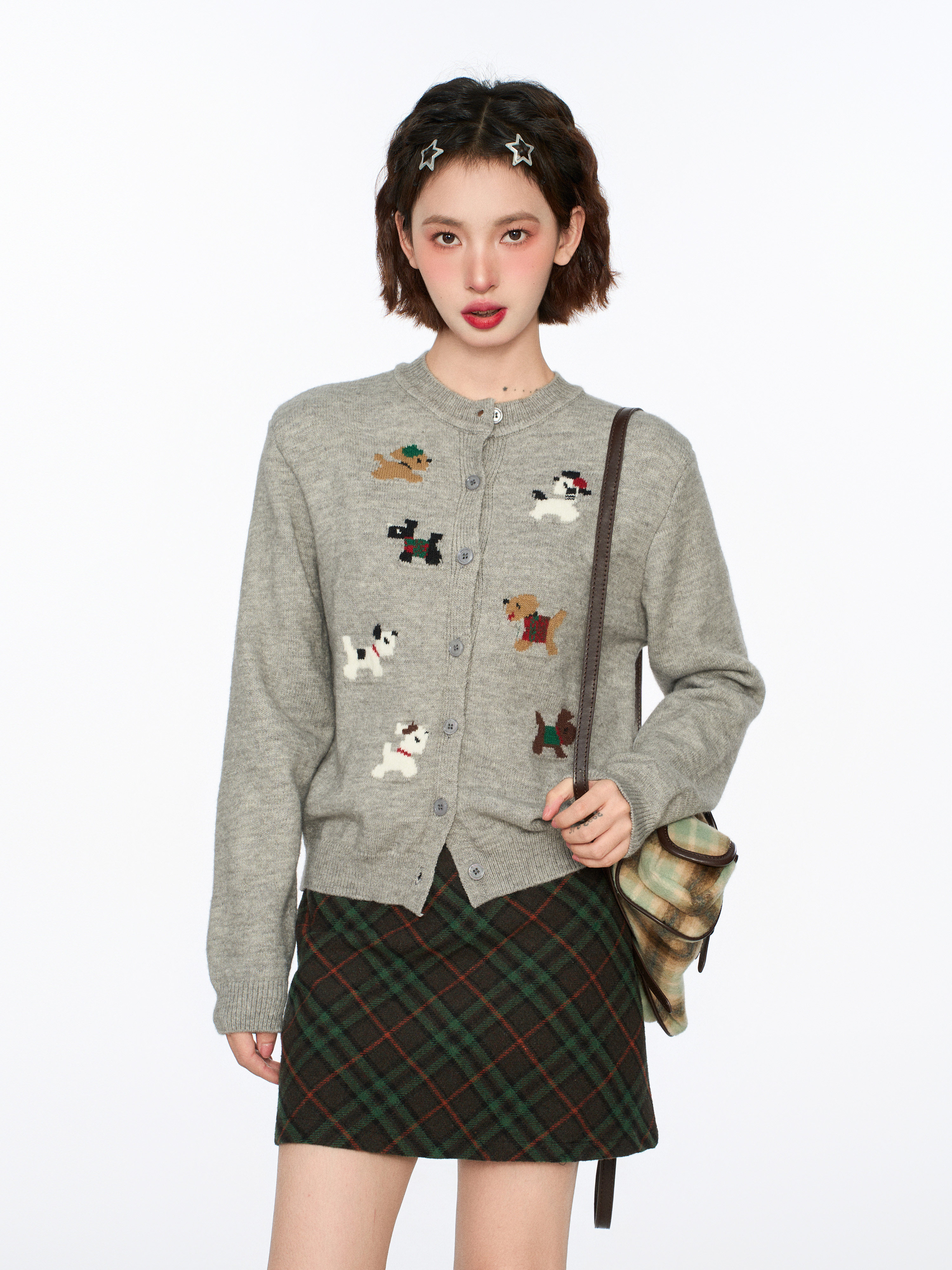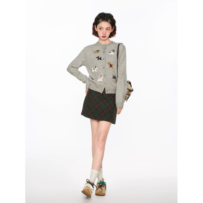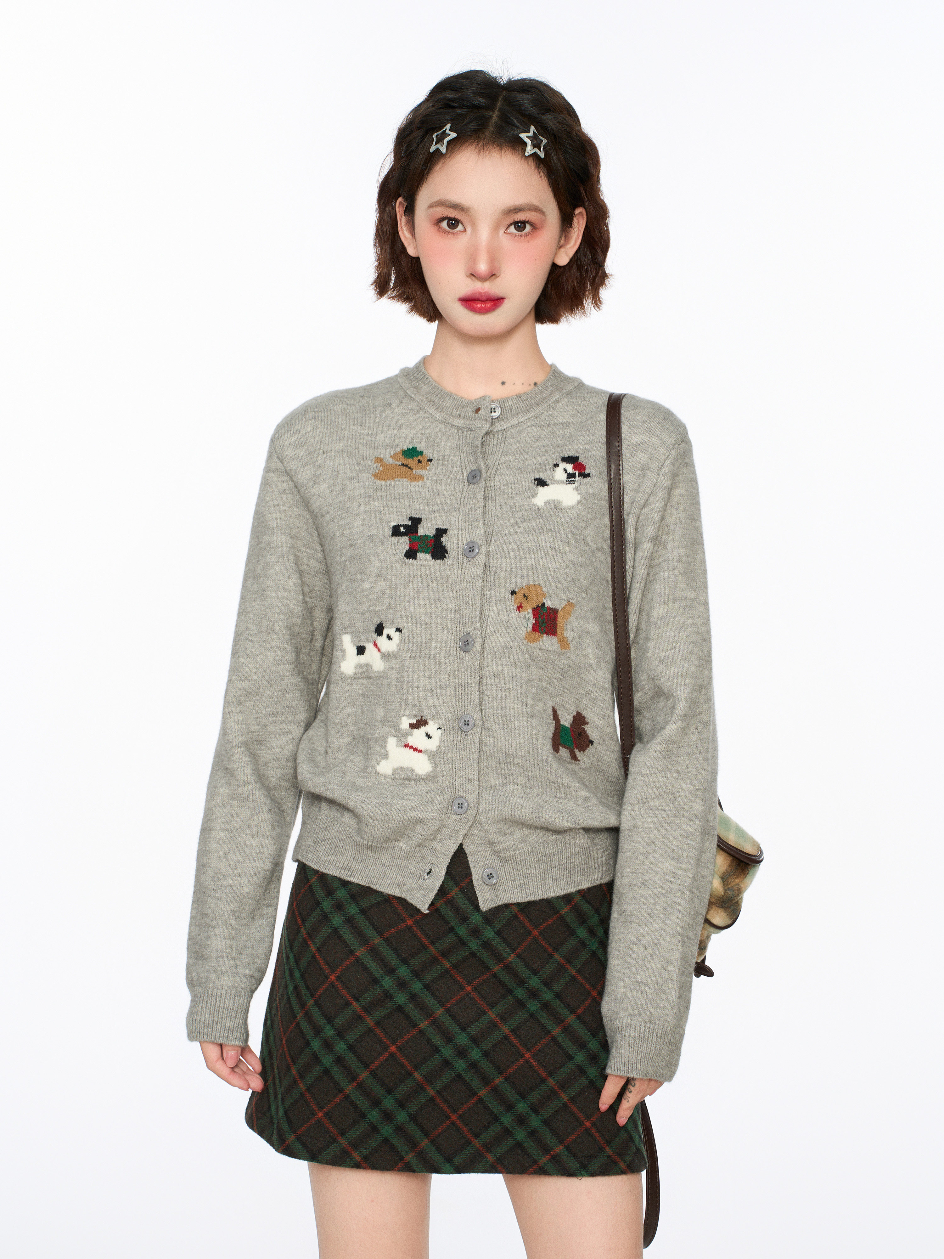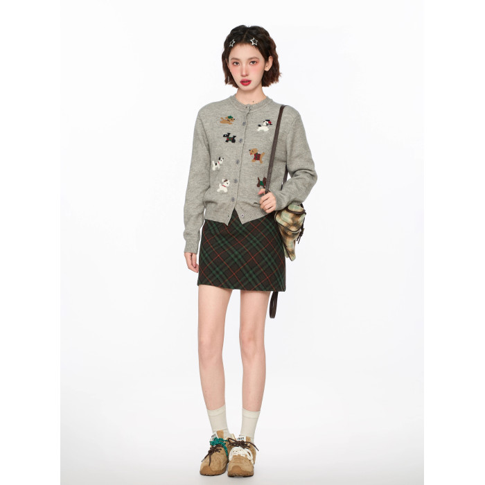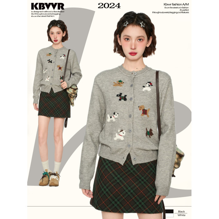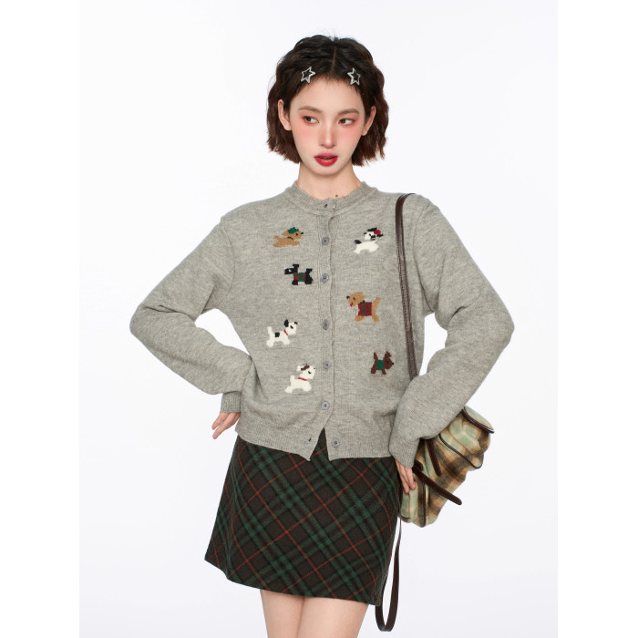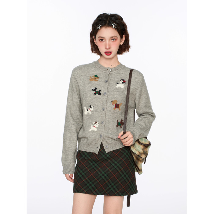 灰色小狗針織開衫毛衣外套女秋冬季小個子短款打底內搭羊毛針織衫