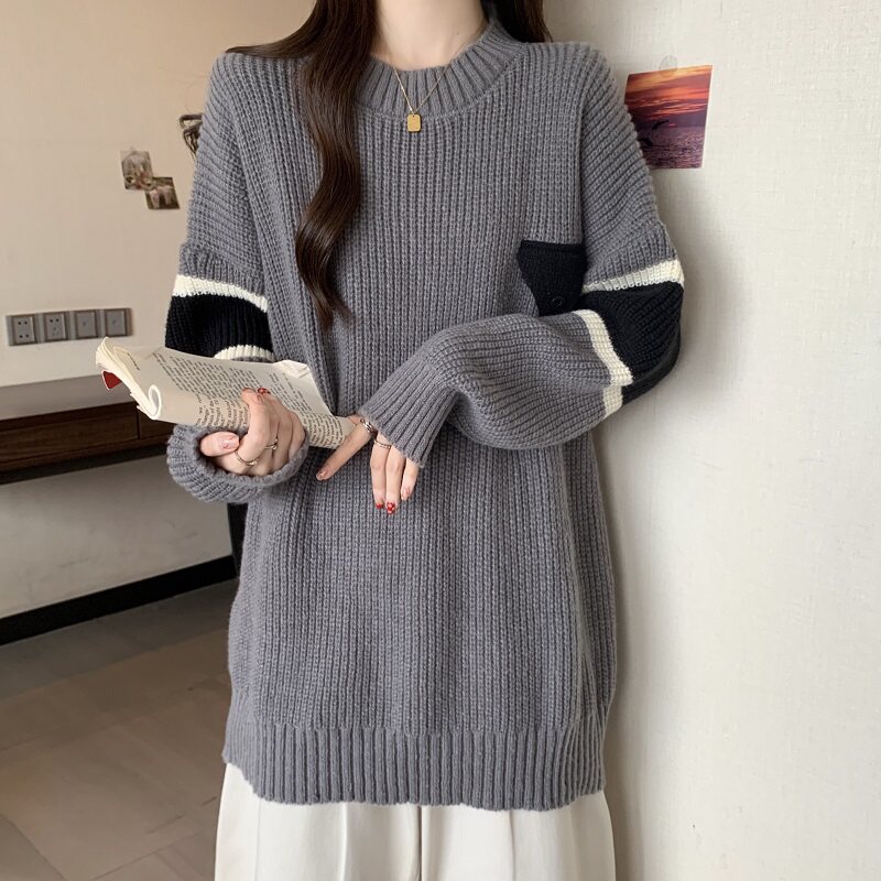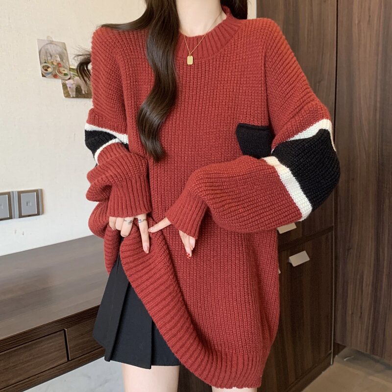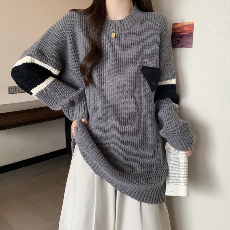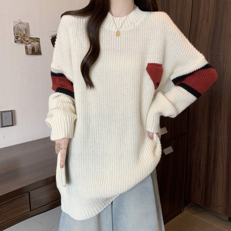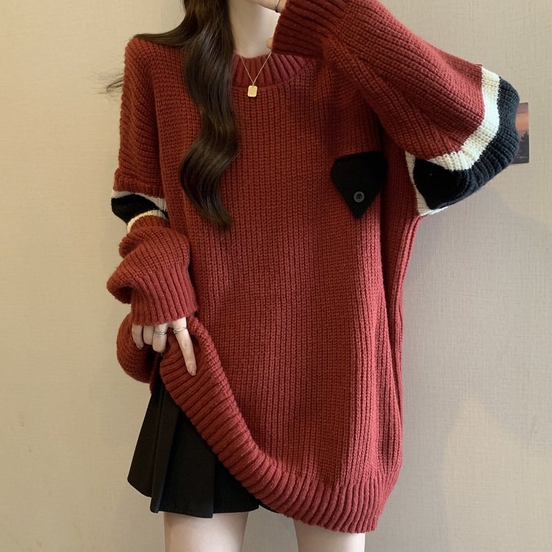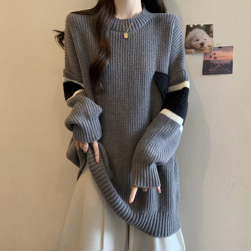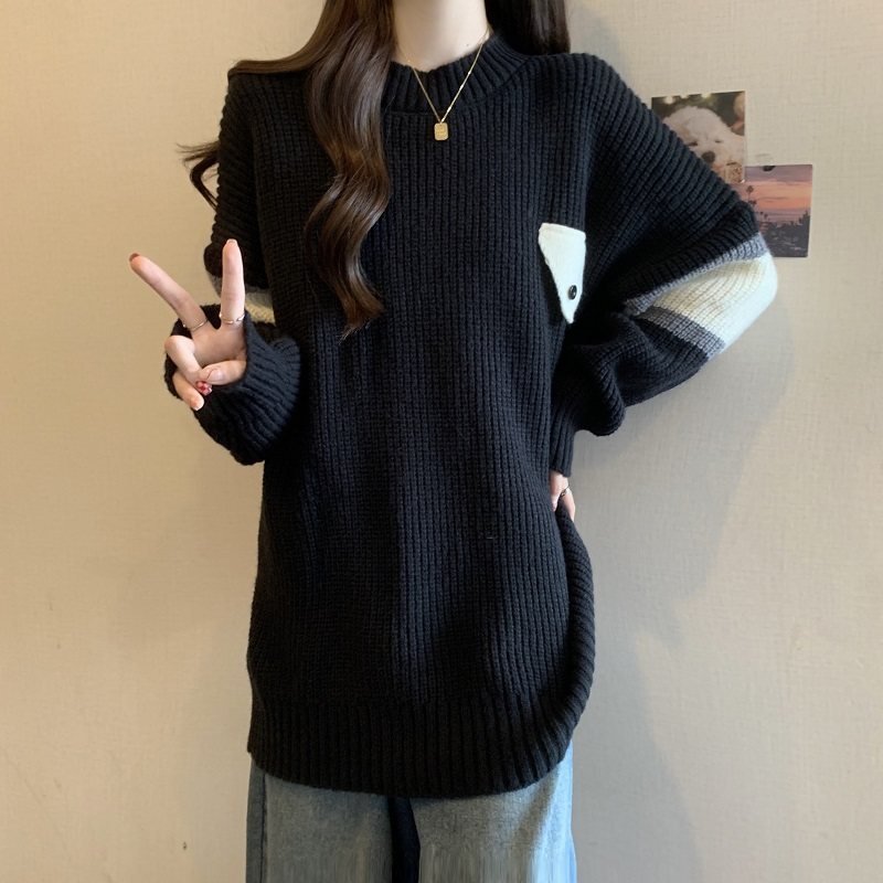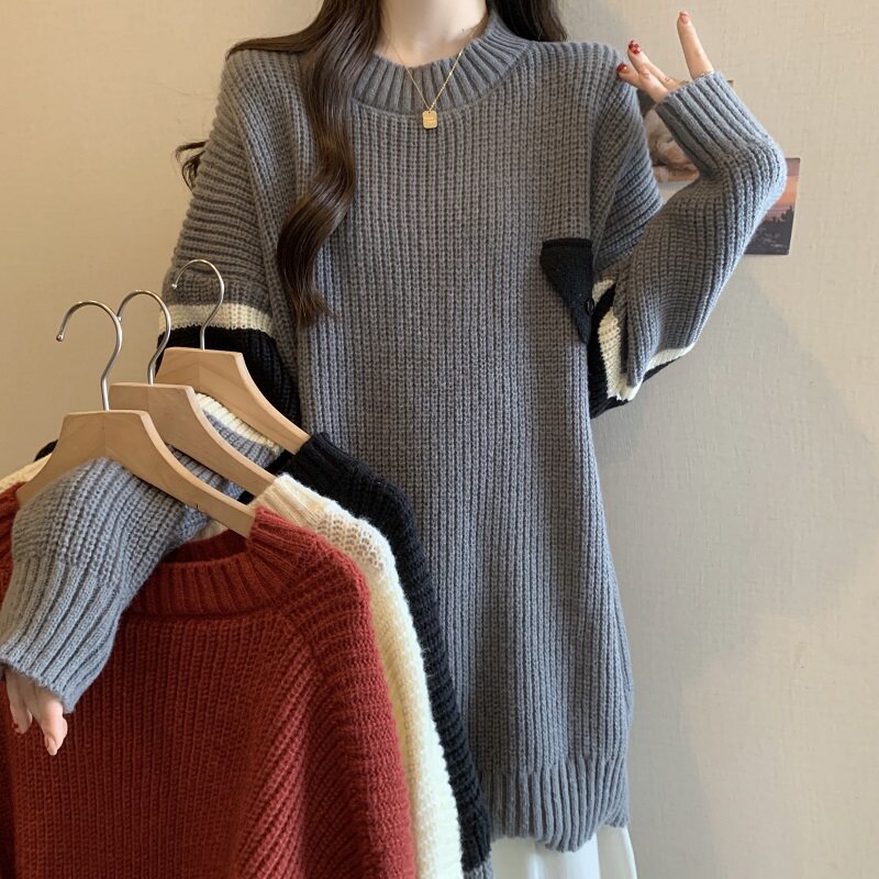 大碼胖mm寬鬆中長款套頭毛衣女秋冬慵嬾風歐貨漂亮長袖針織衫上衣