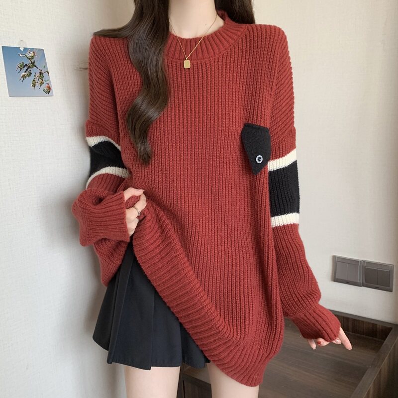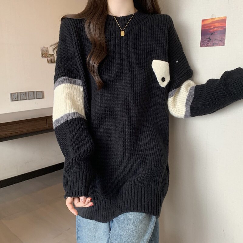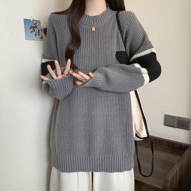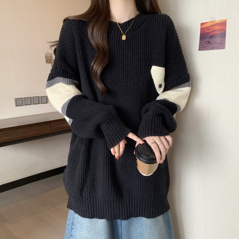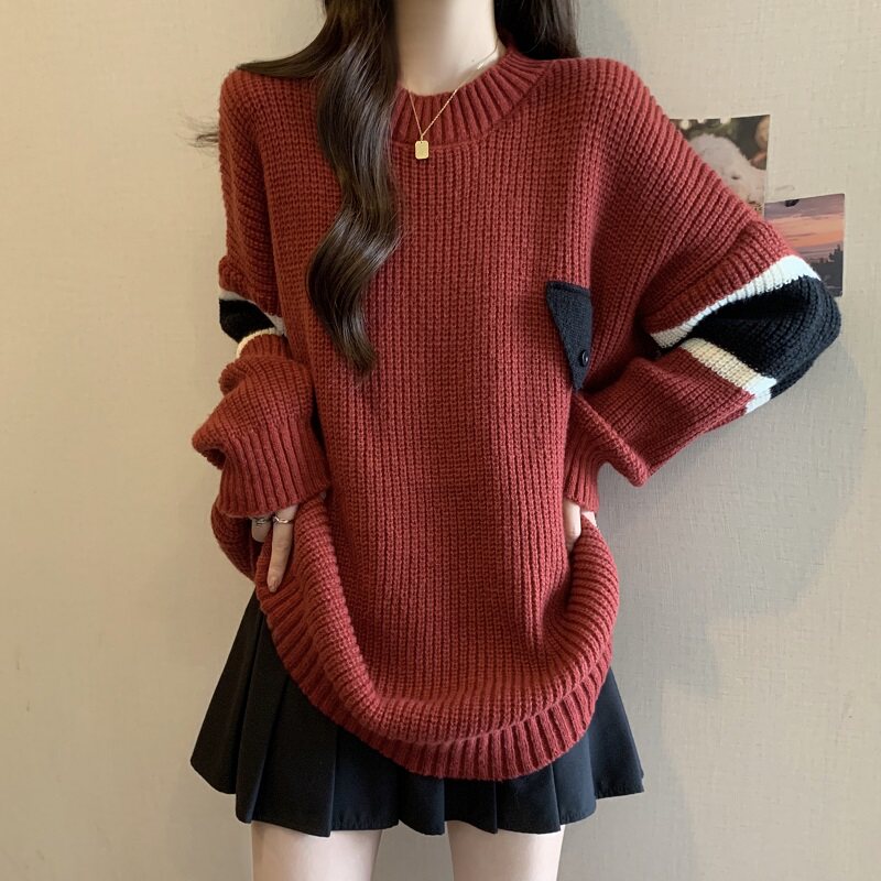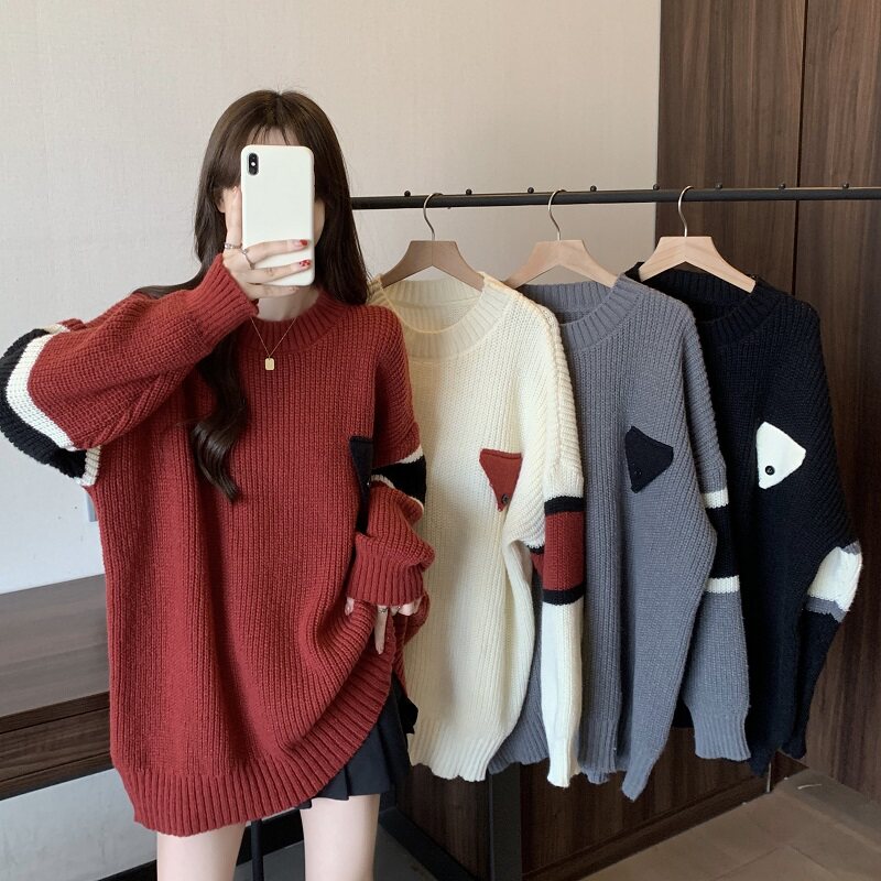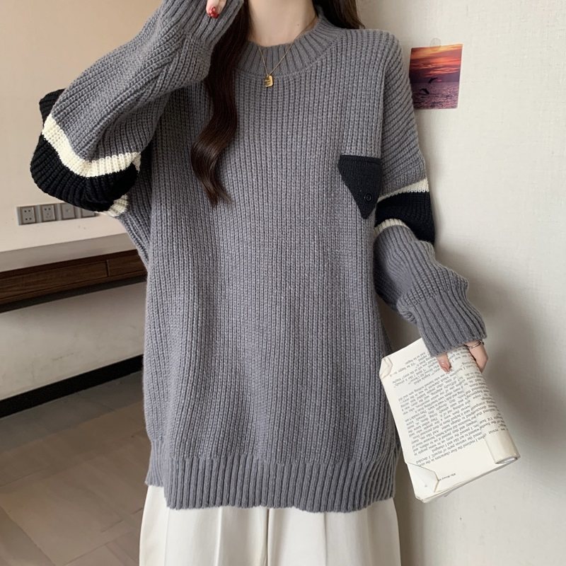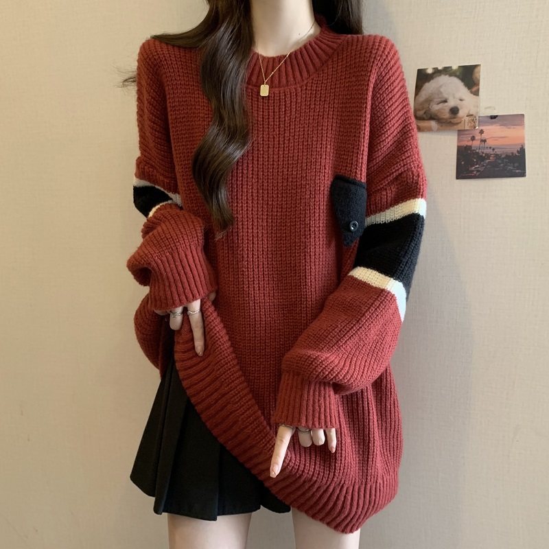 大碼胖mm寬鬆中長款套頭毛衣女秋冬慵嬾風歐貨漂亮長袖針織衫上衣