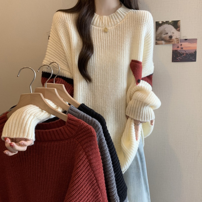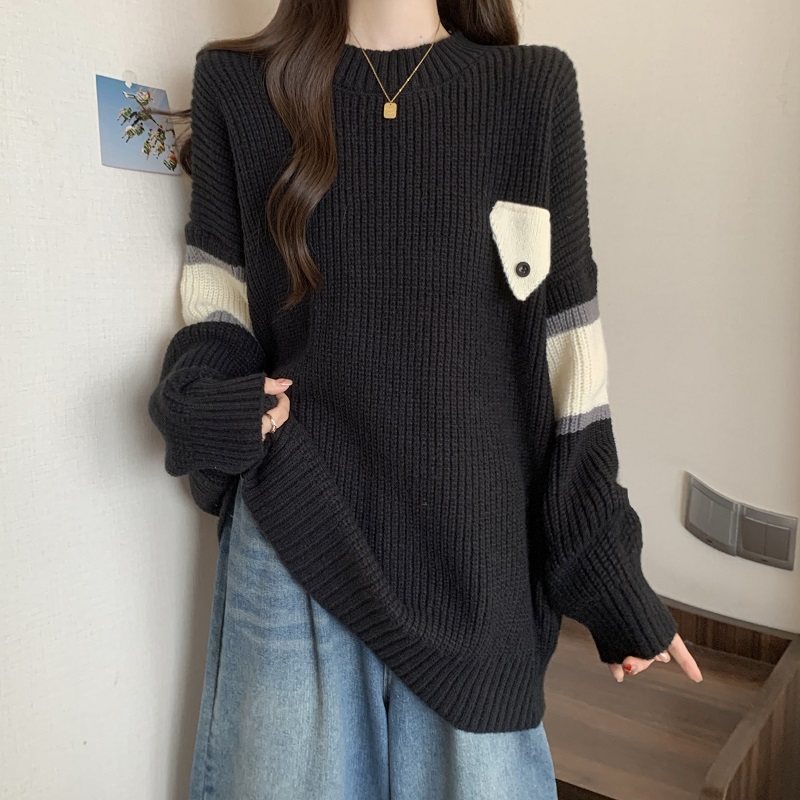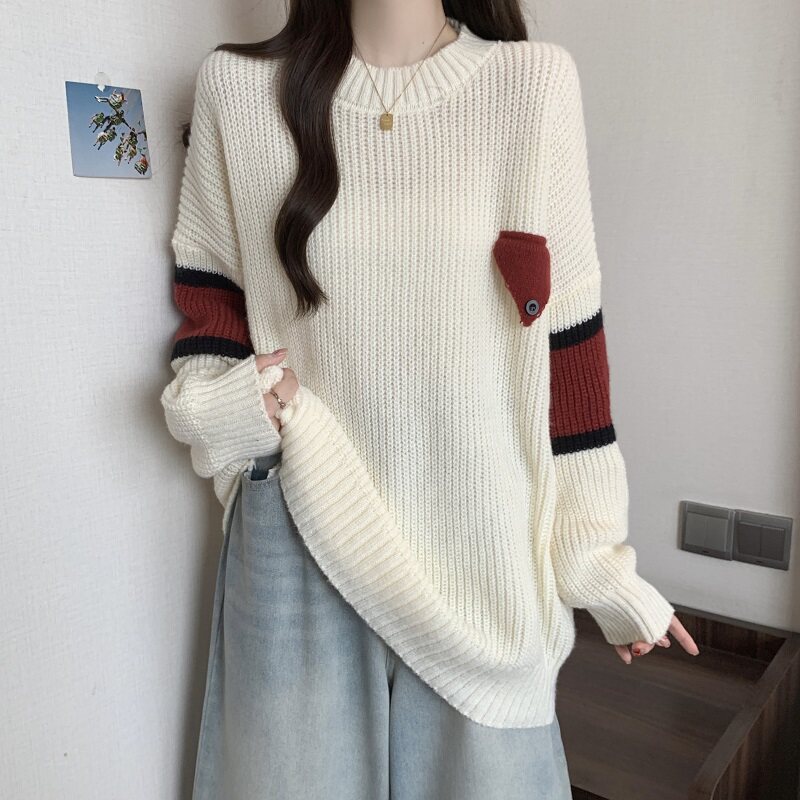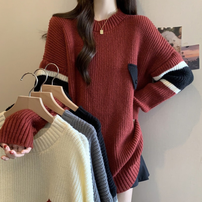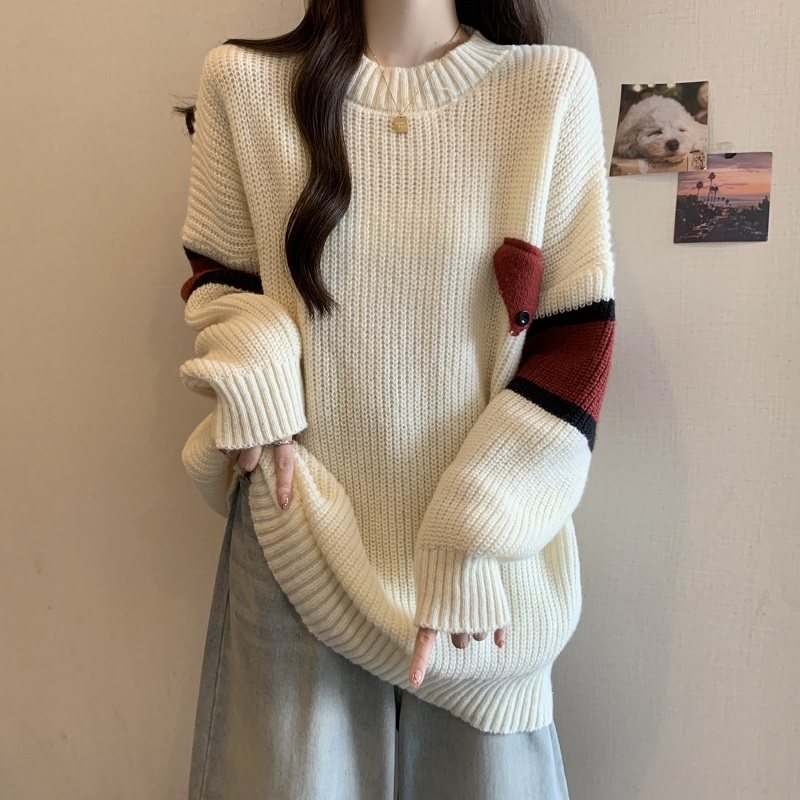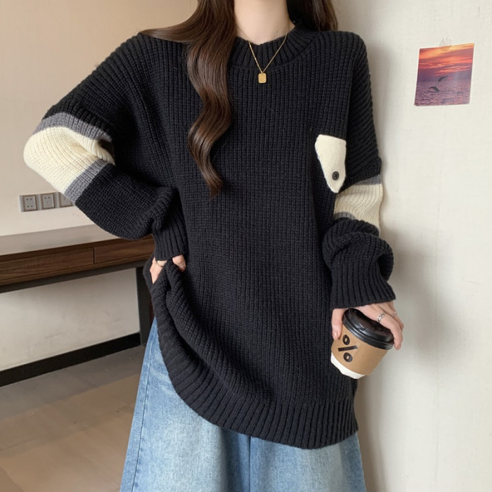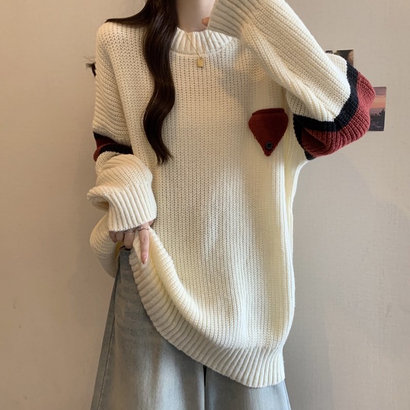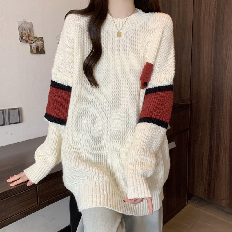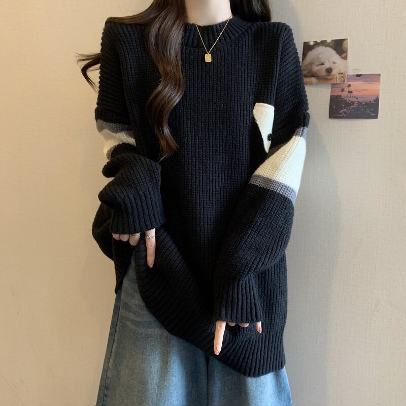大碼胖mm寬鬆中長款套頭毛衣女秋冬慵嬾風歐貨漂亮長袖針織衫上衣