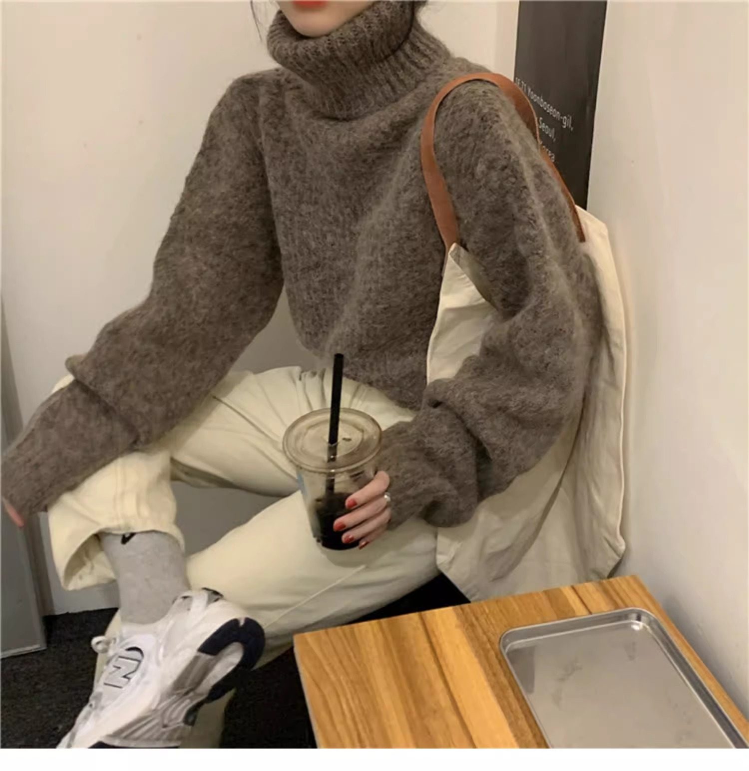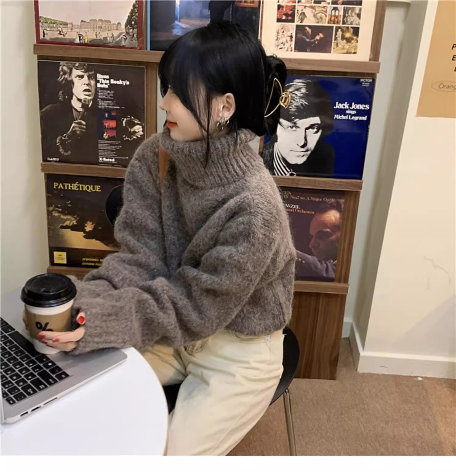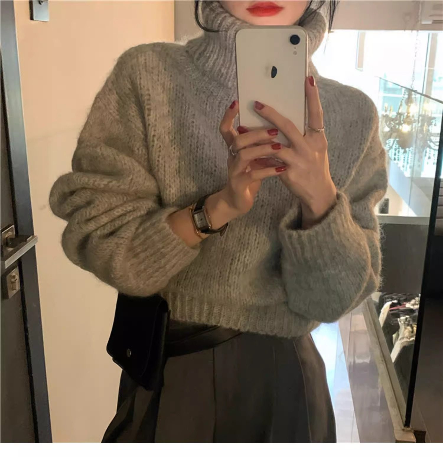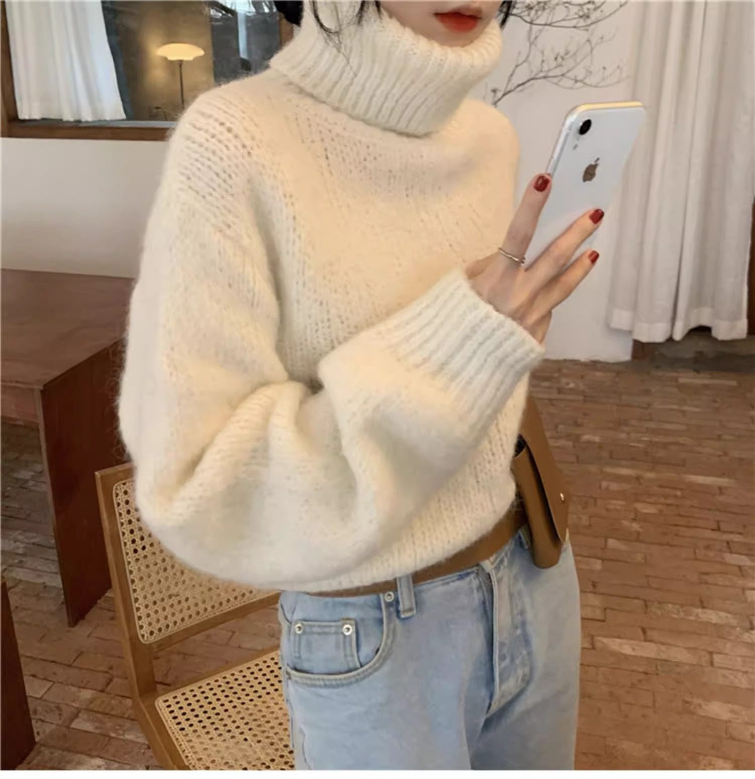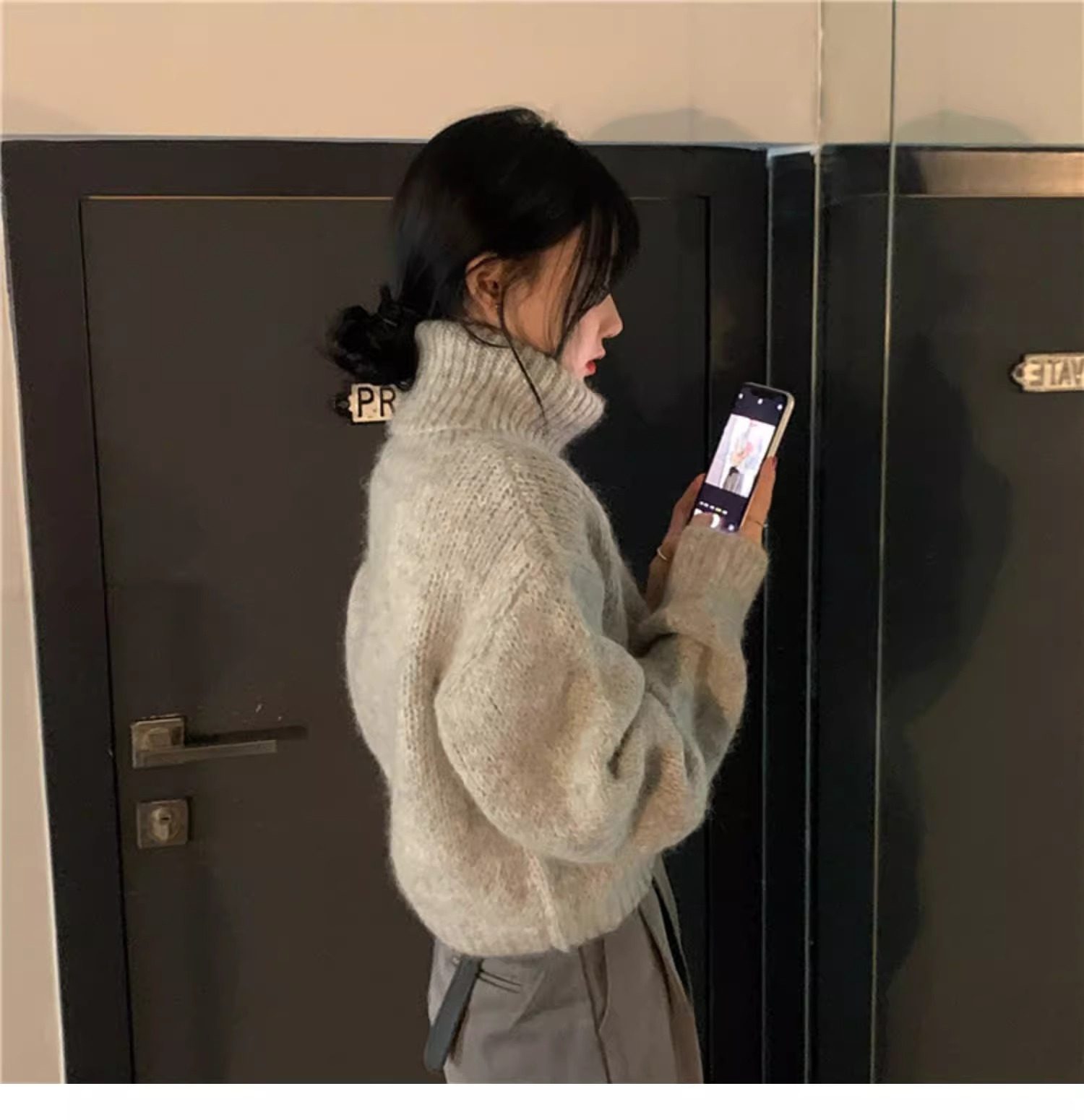 高領毛衣女2025新款秋冬寬鬆外穿慵嬾風軟糯加厚短款打底針織衫潮