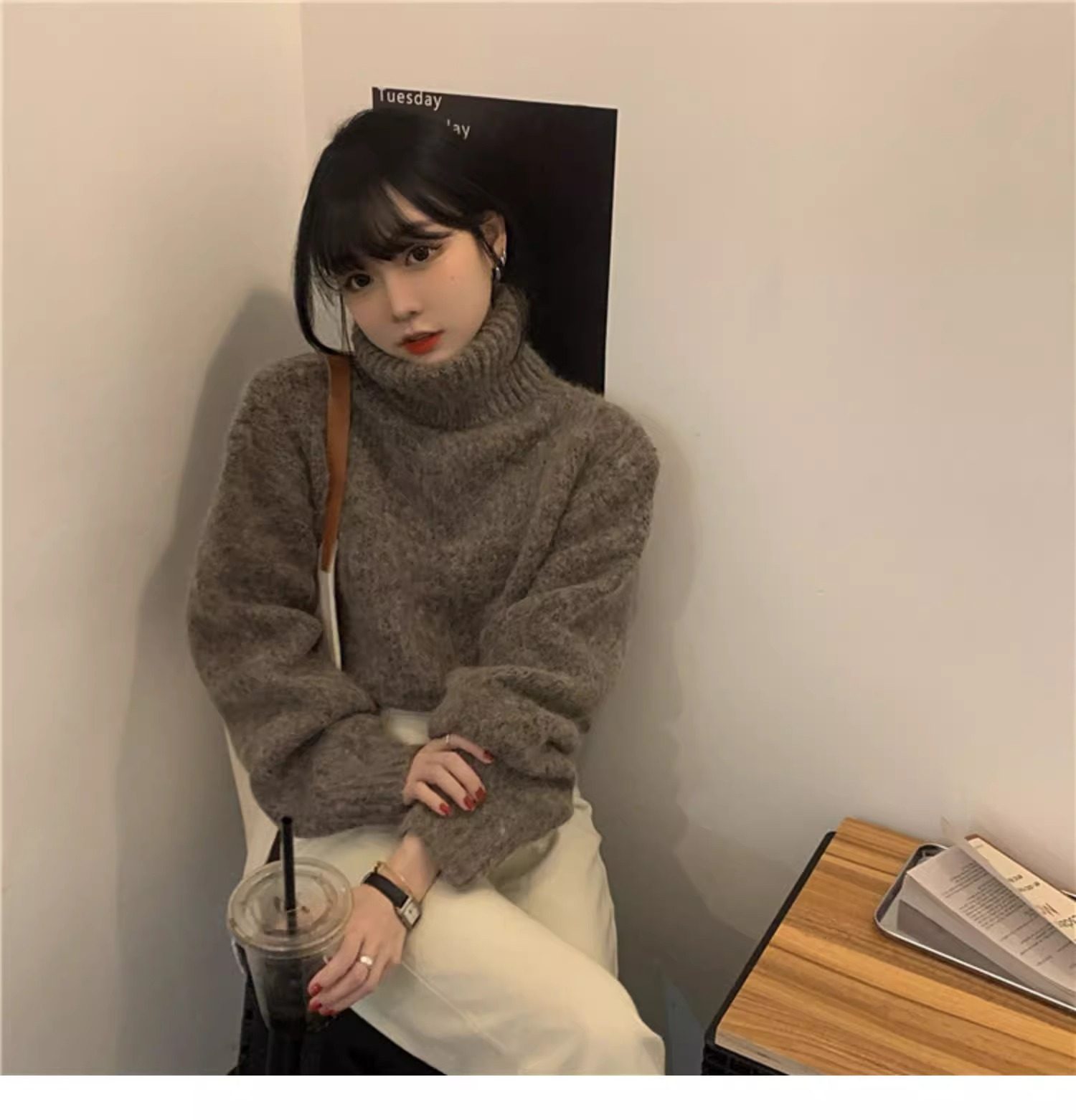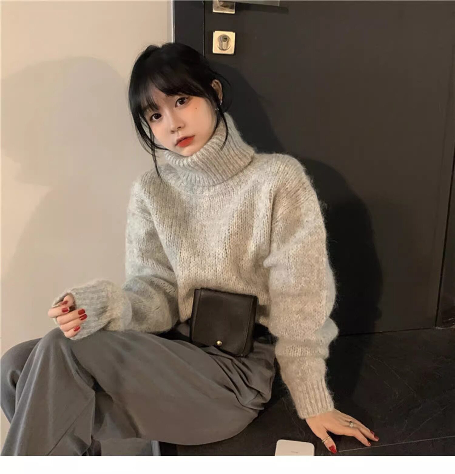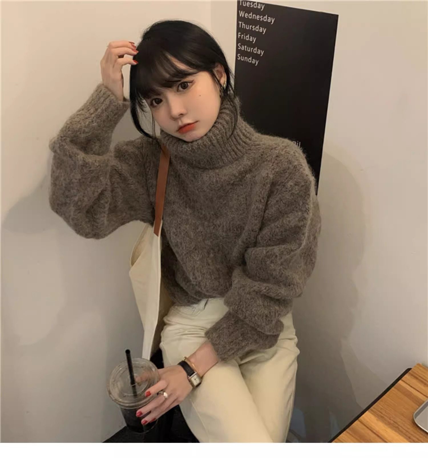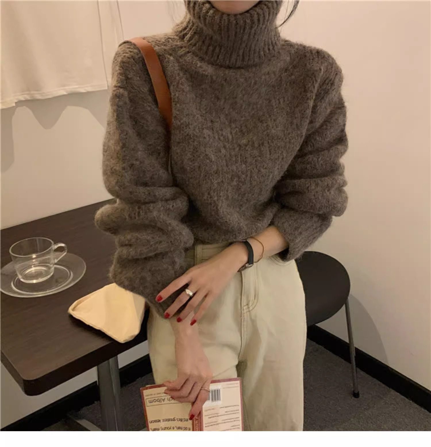 高領毛衣女2025新款秋冬寬鬆外穿慵嬾風軟糯加厚短款打底針織衫潮