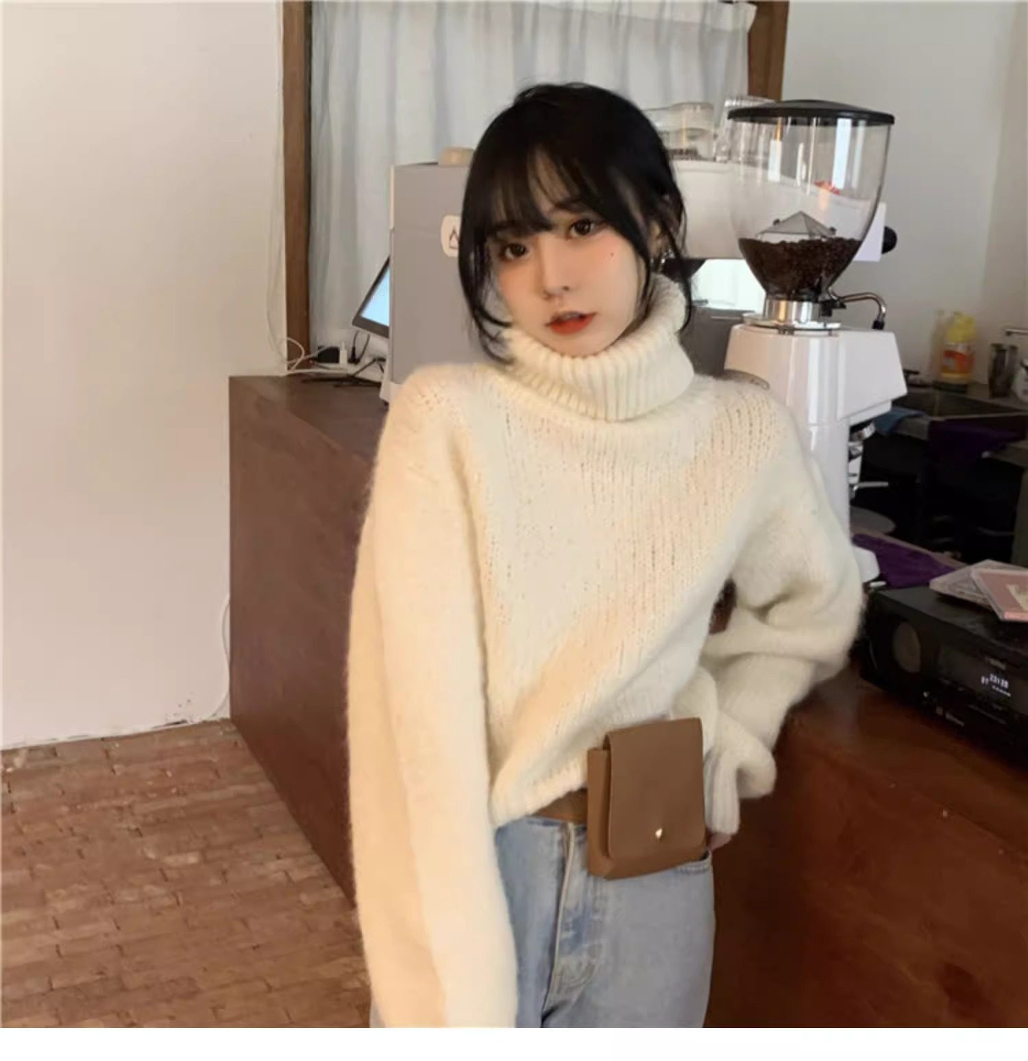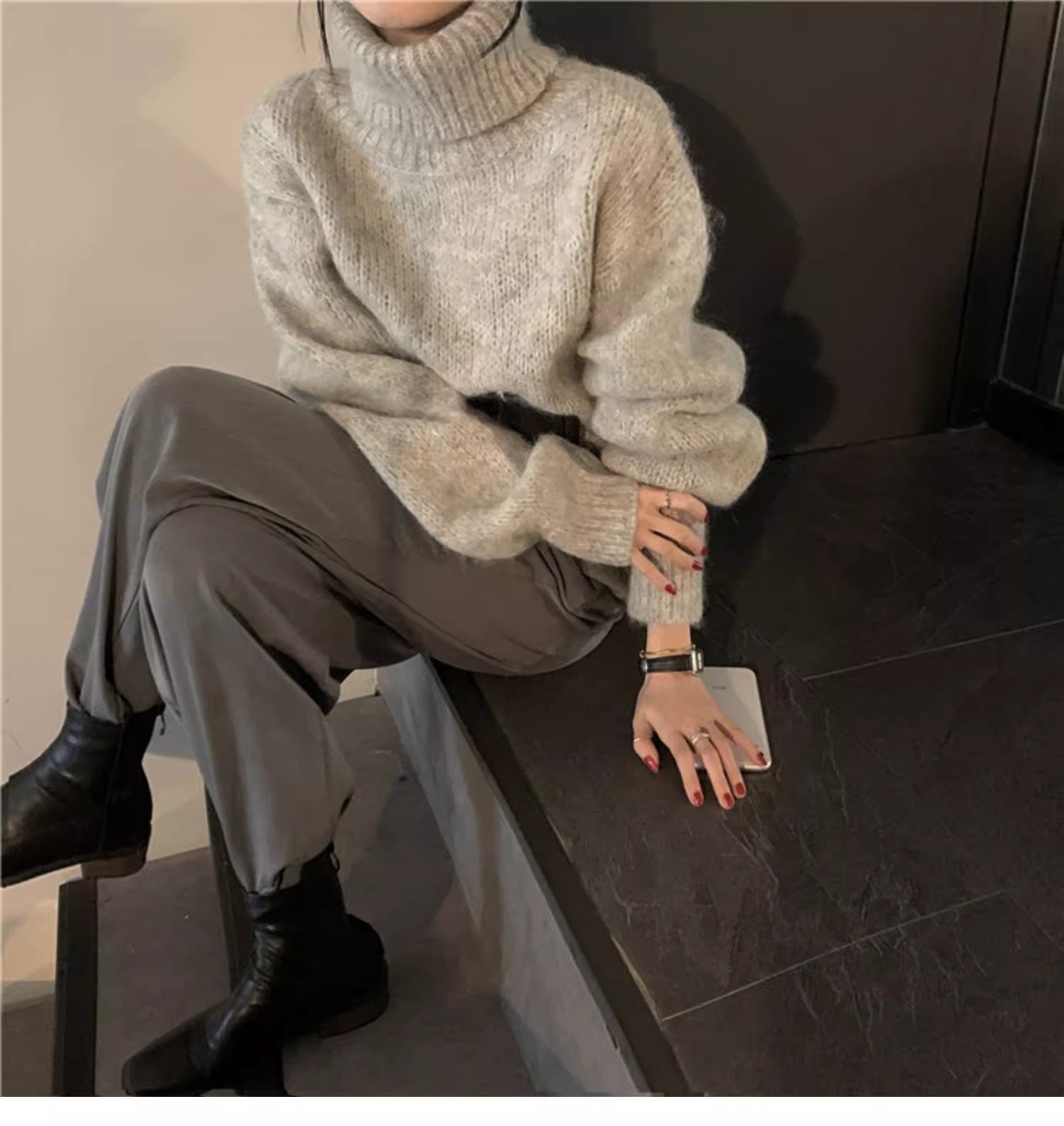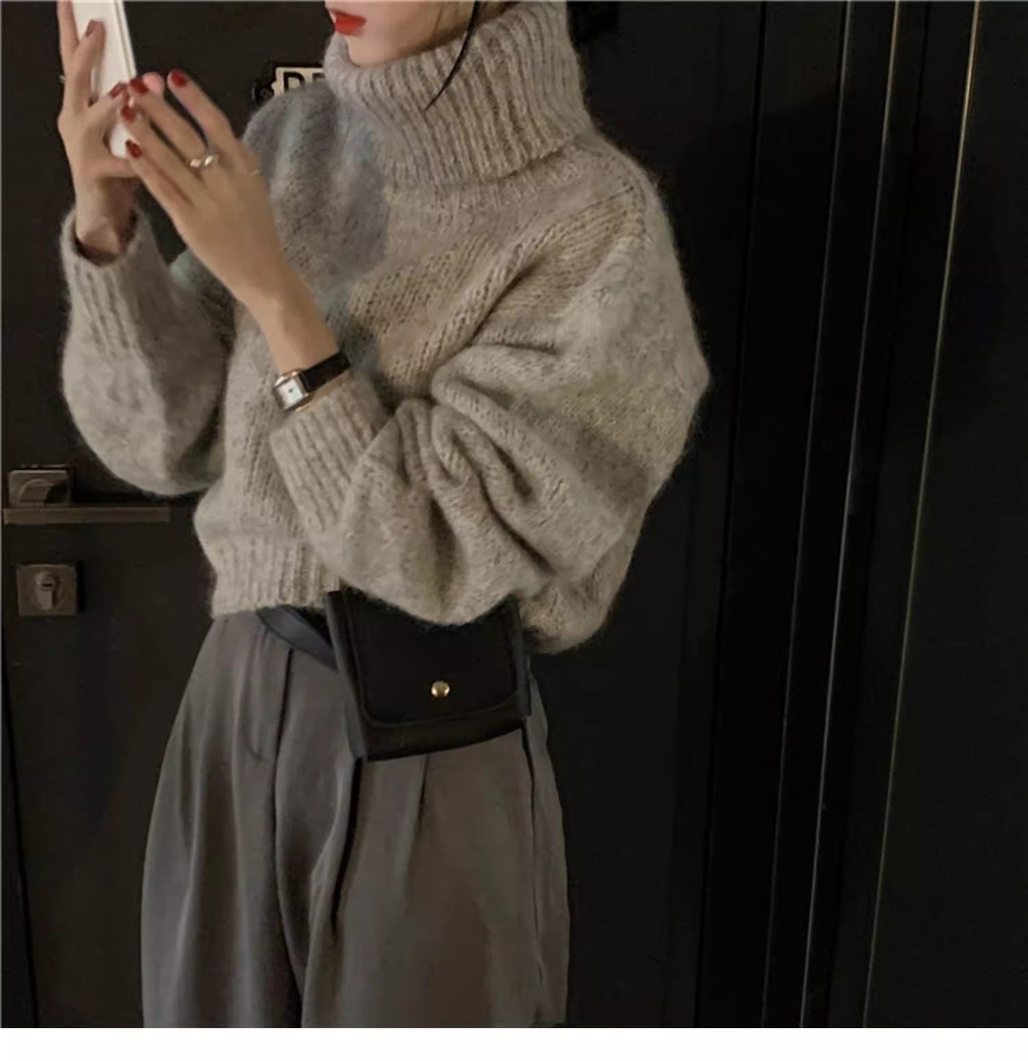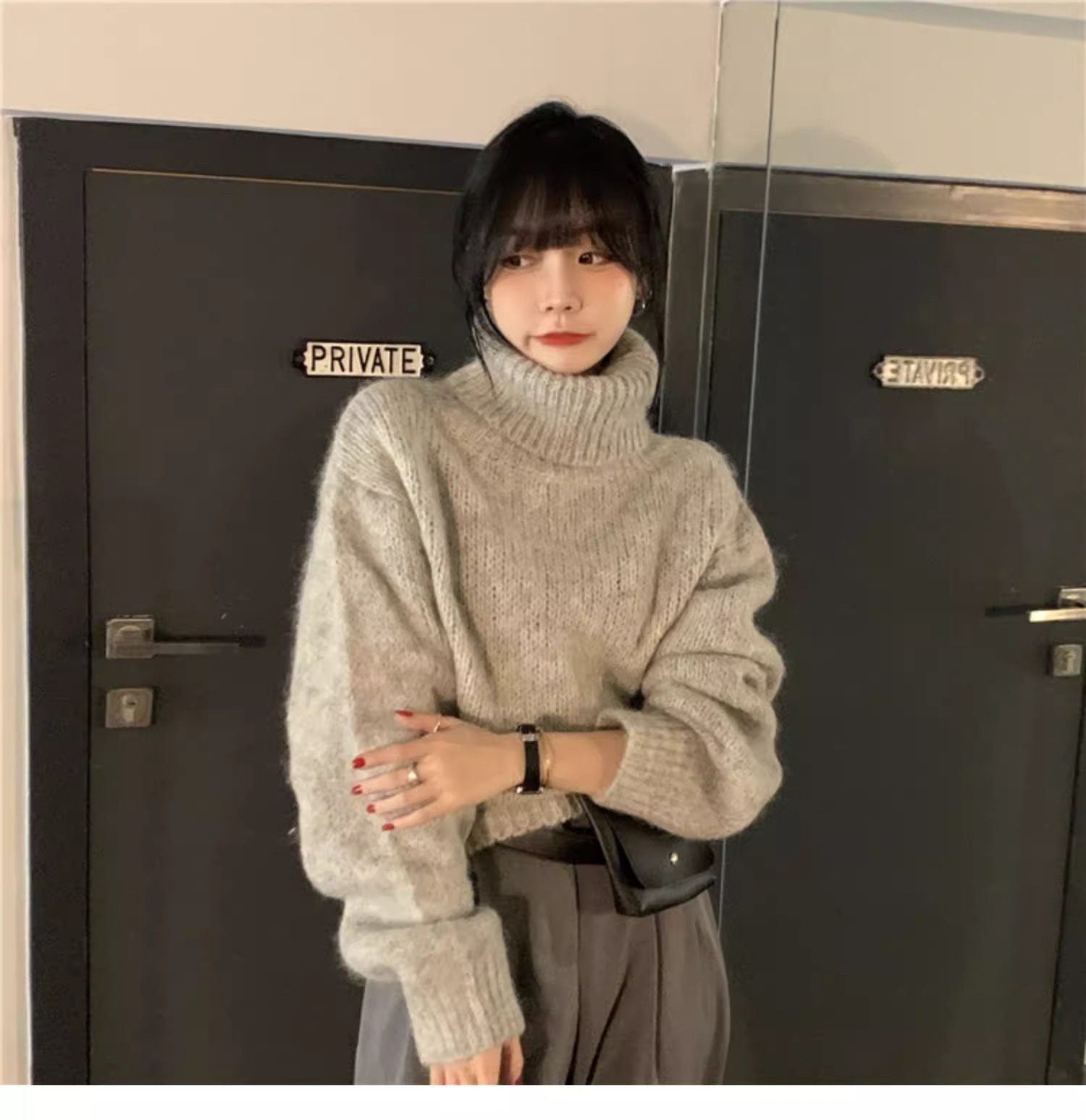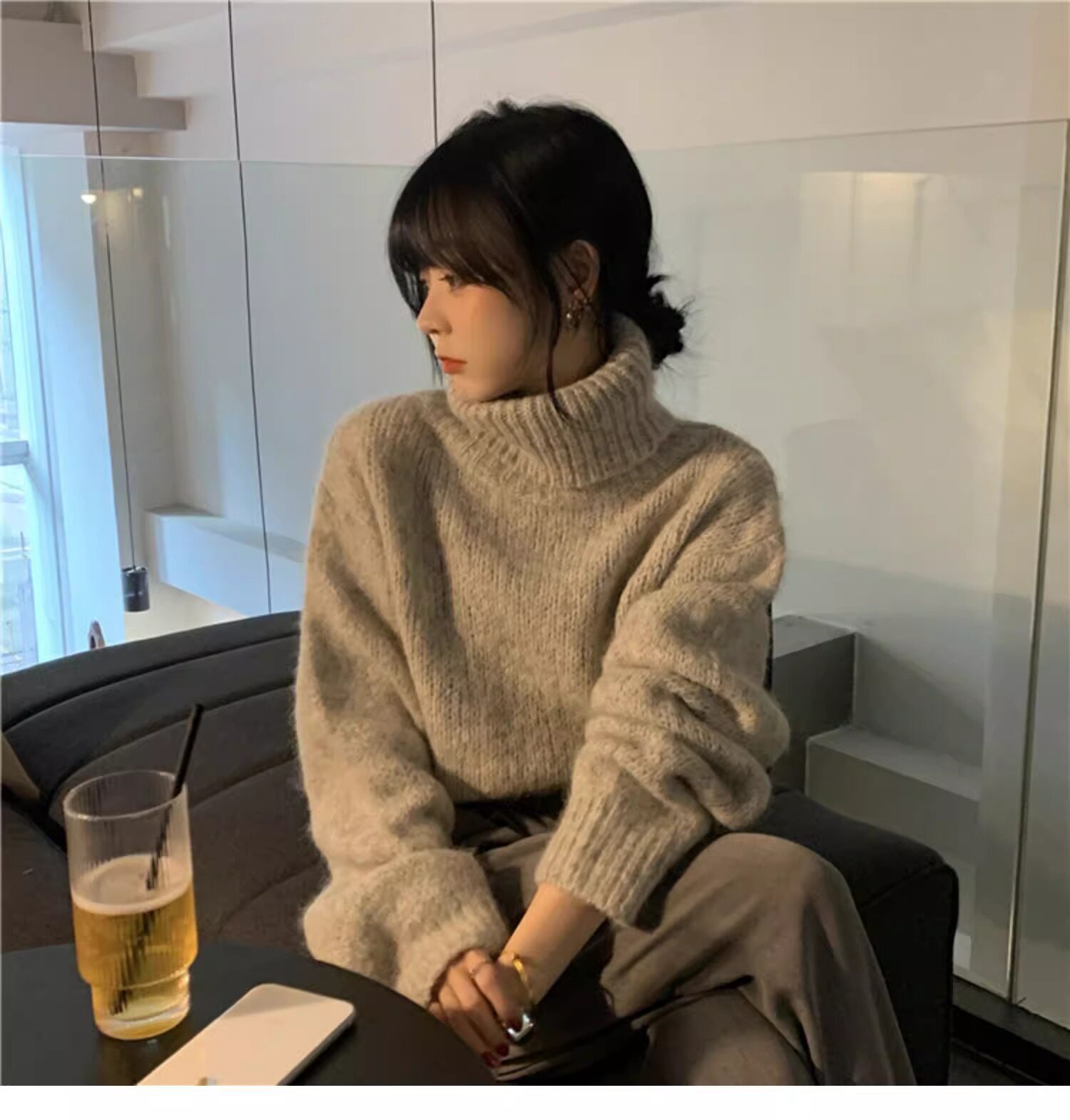 高領毛衣女2025新款秋冬寬鬆外穿慵嬾風軟糯加厚短款打底針織衫潮