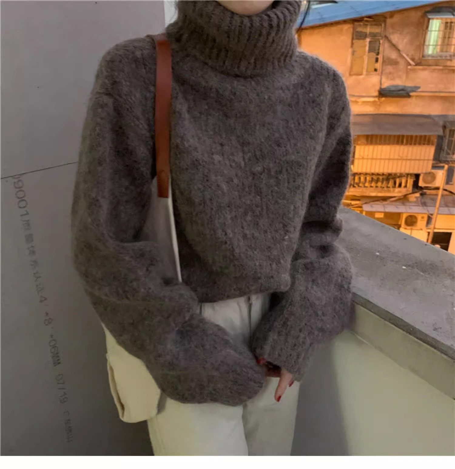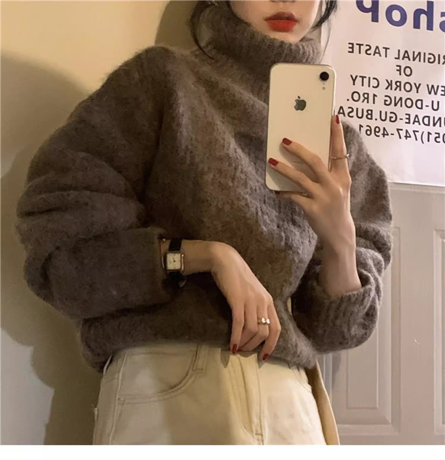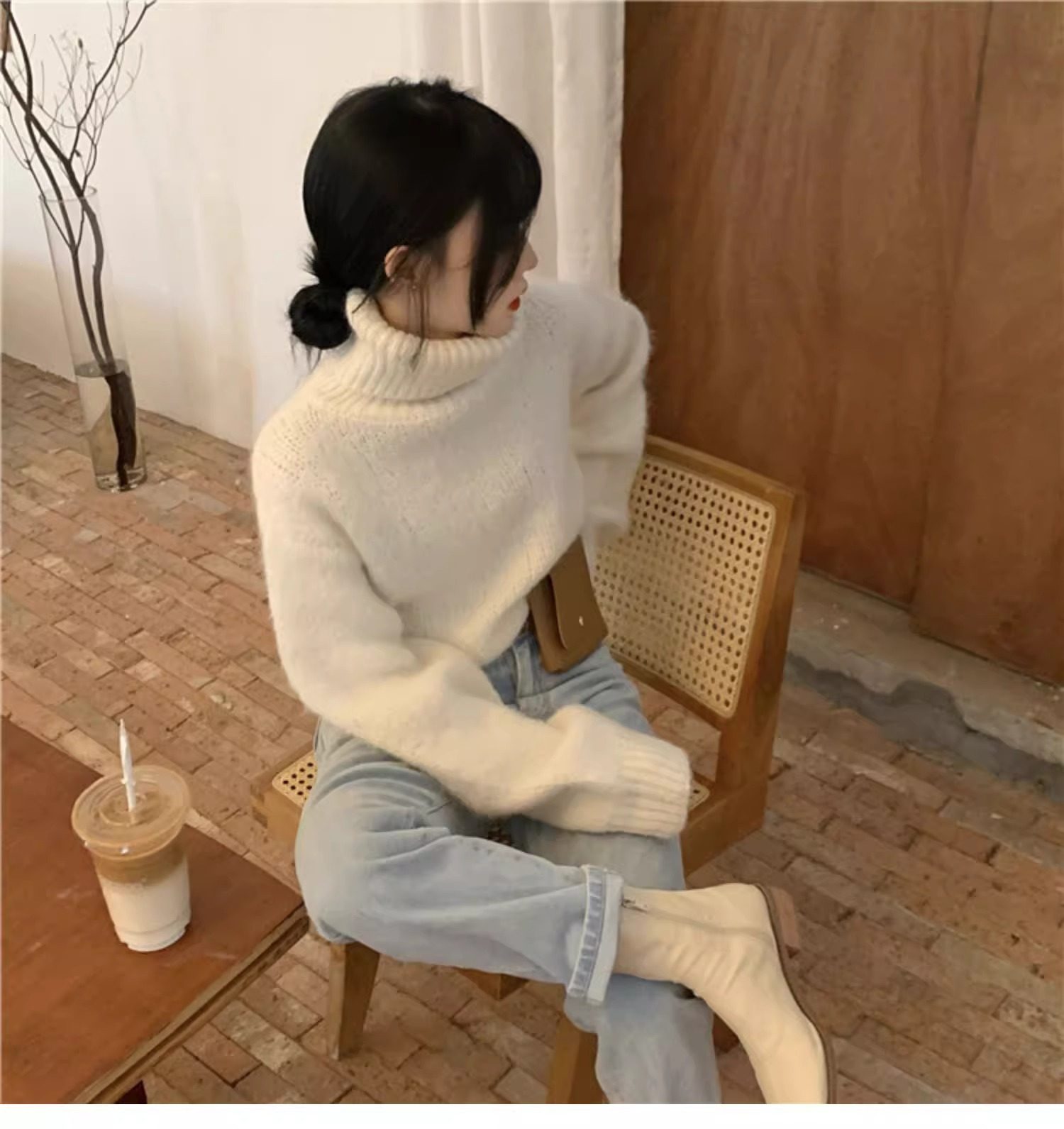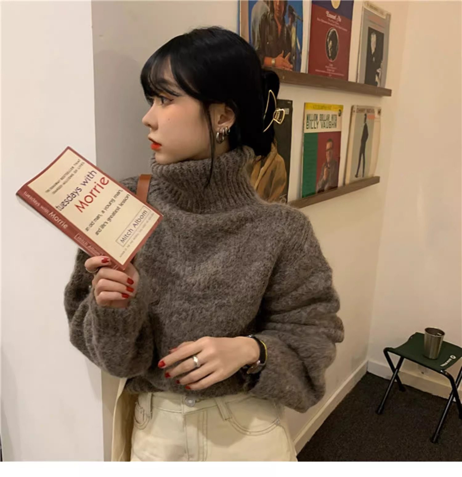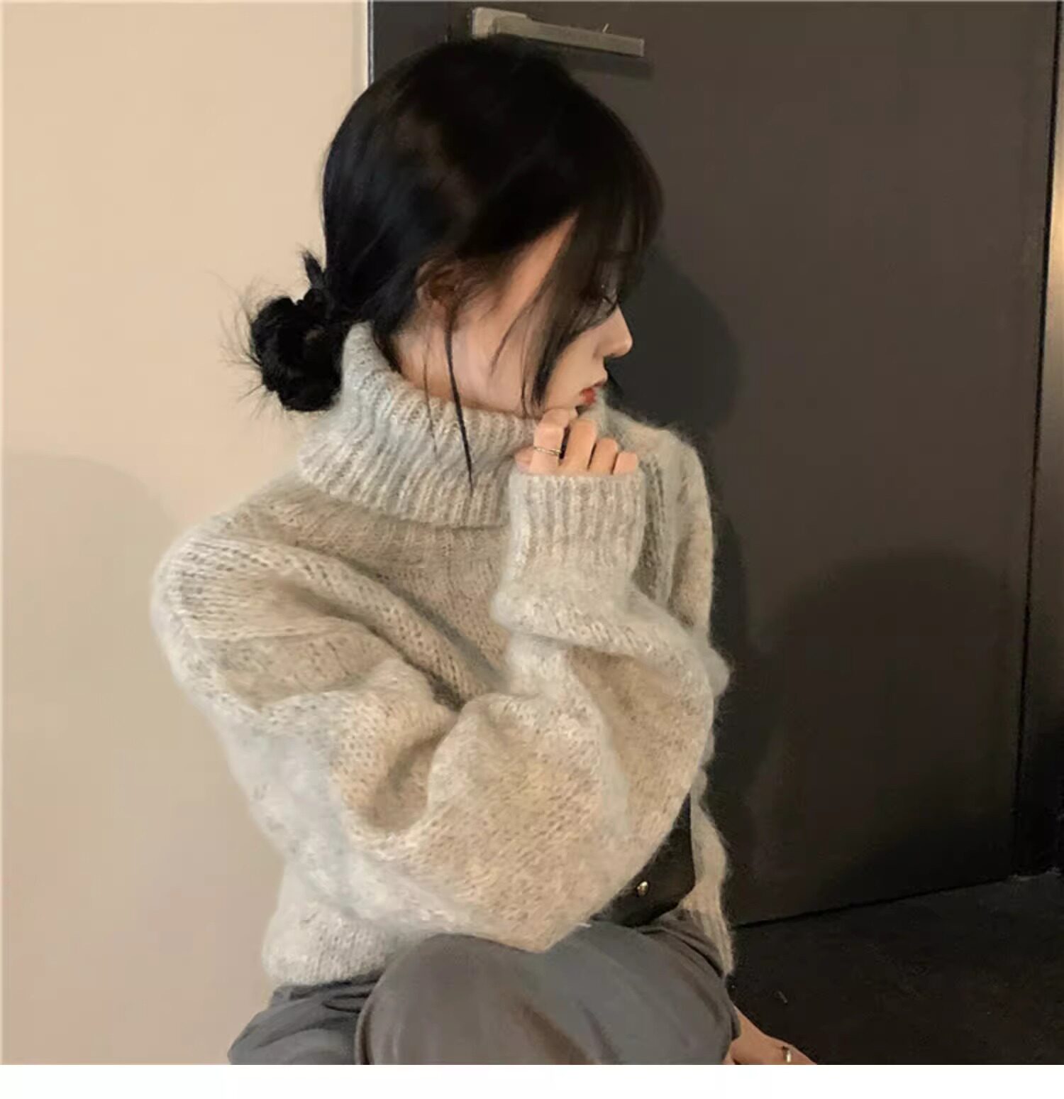 高領毛衣女2025新款秋冬寬鬆外穿慵嬾風軟糯加厚短款打底針織衫潮
