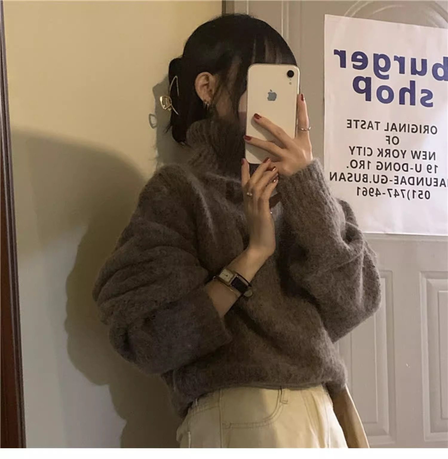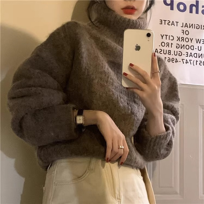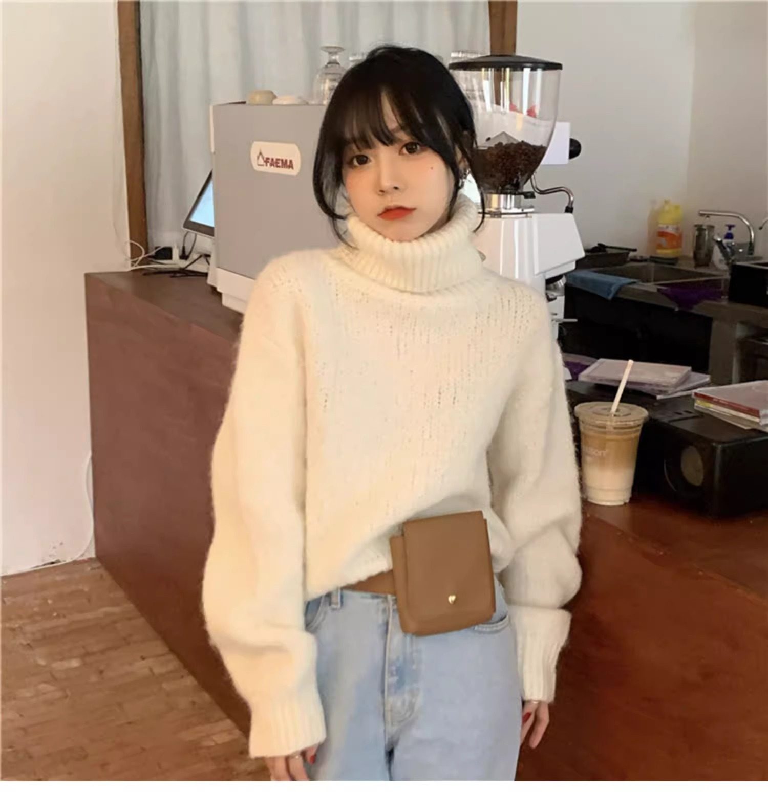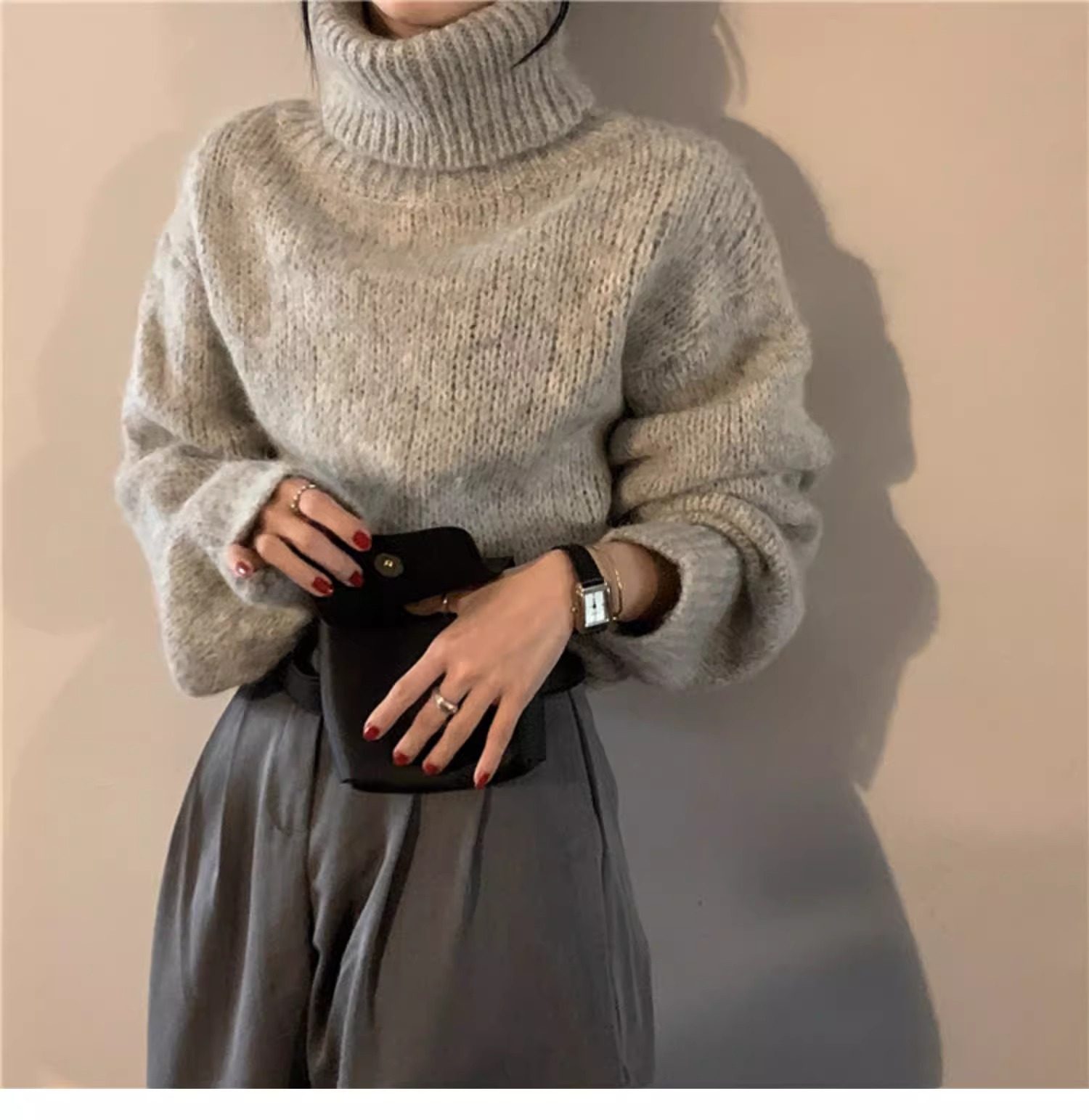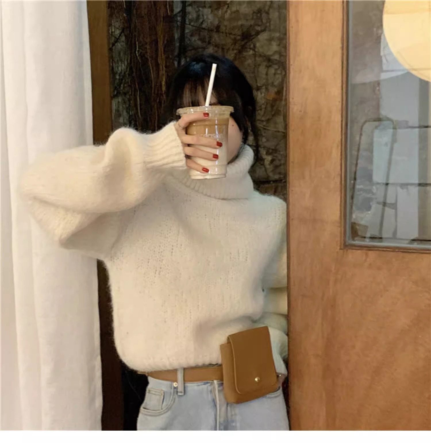 高領毛衣女2025新款秋冬寬鬆外穿慵嬾風軟糯加厚短款打底針織衫潮
