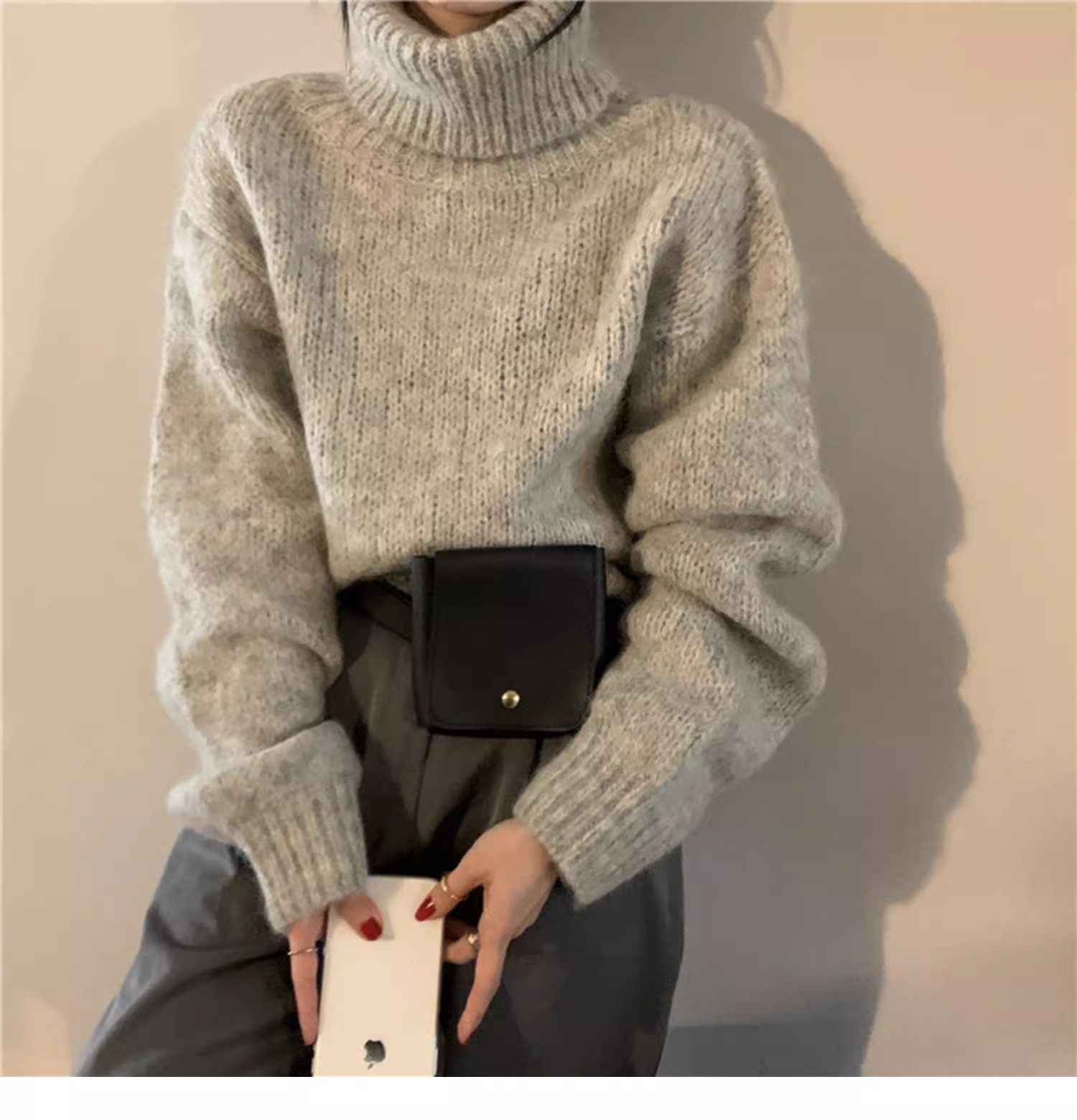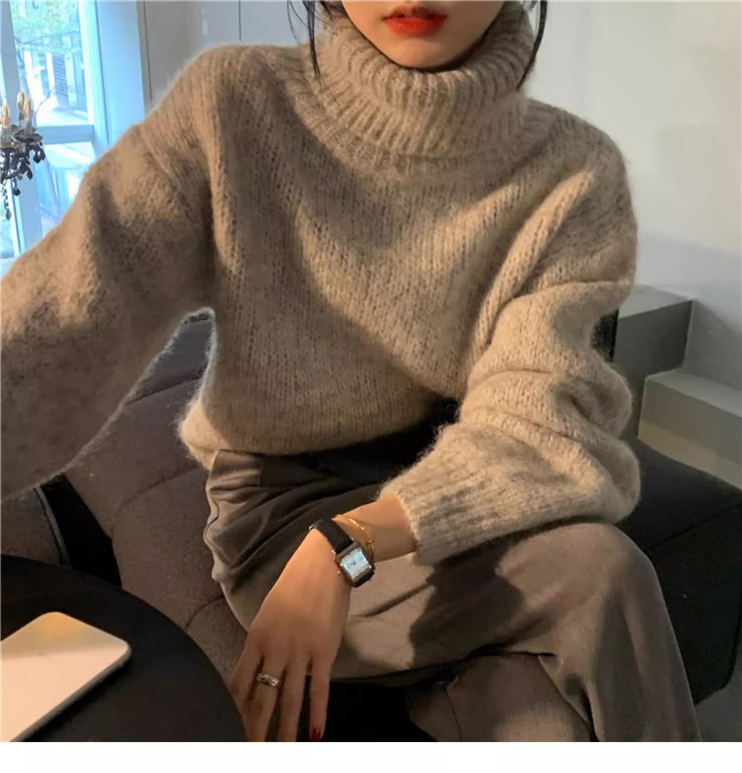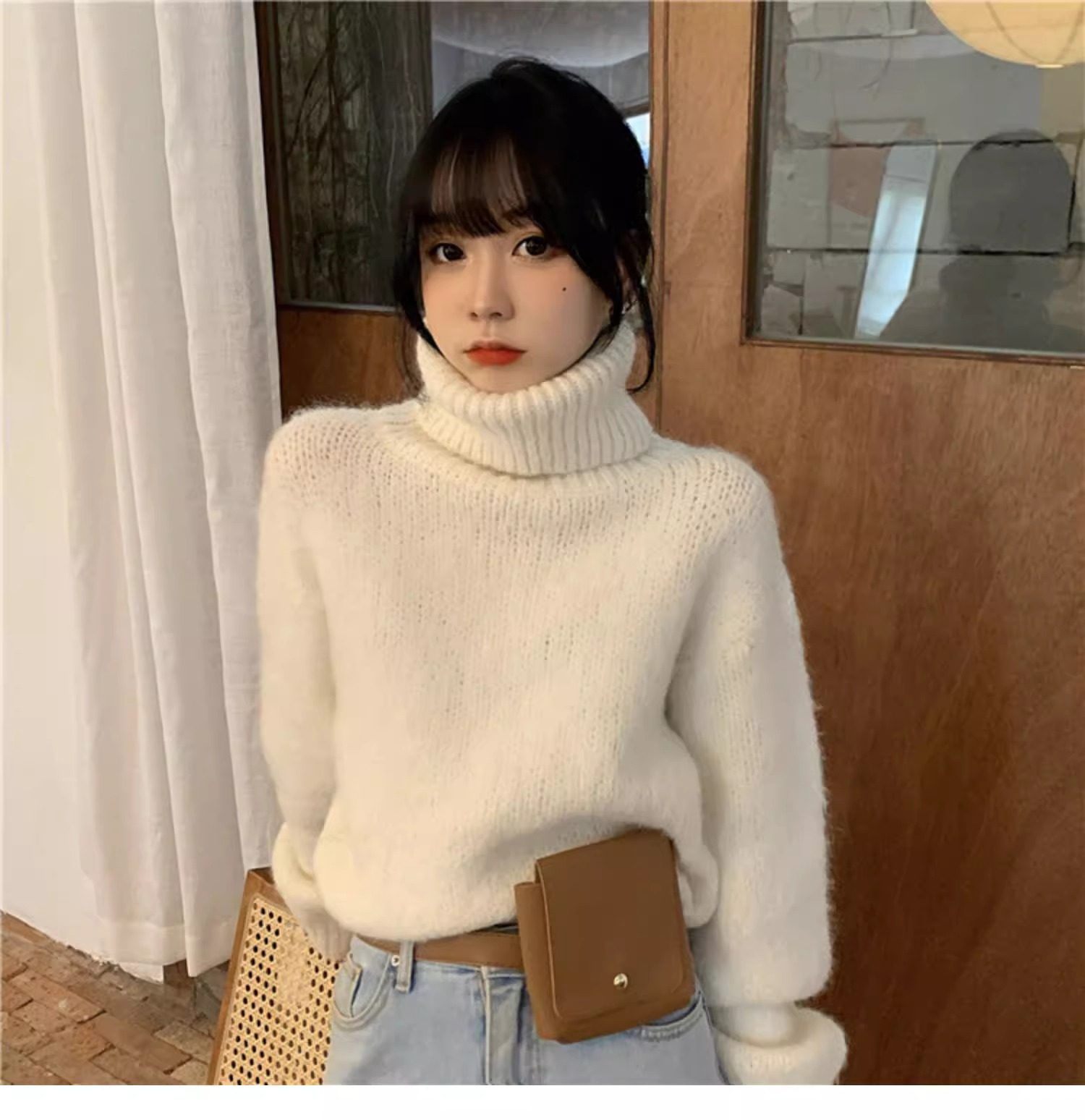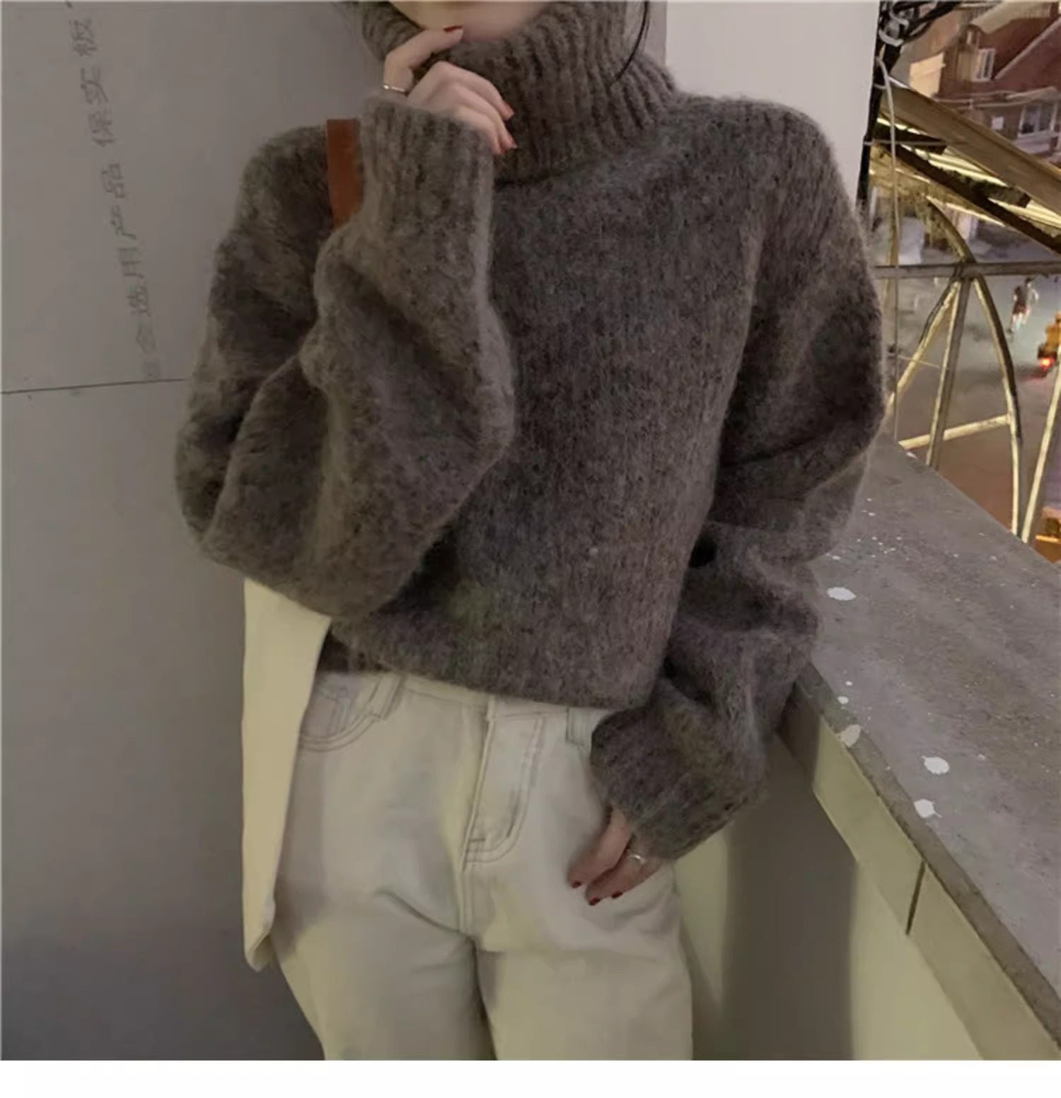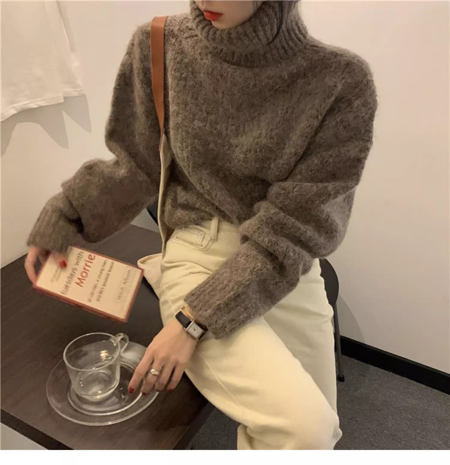 高領毛衣女2025新款秋冬寬鬆外穿慵嬾風軟糯加厚短款打底針織衫潮