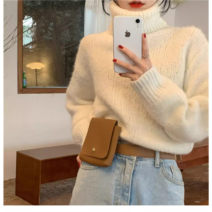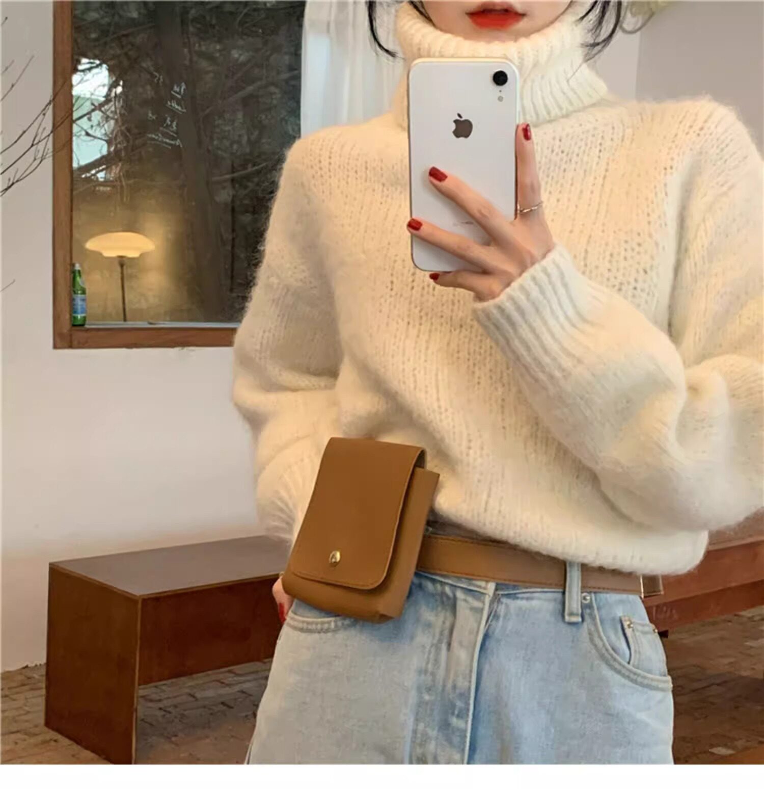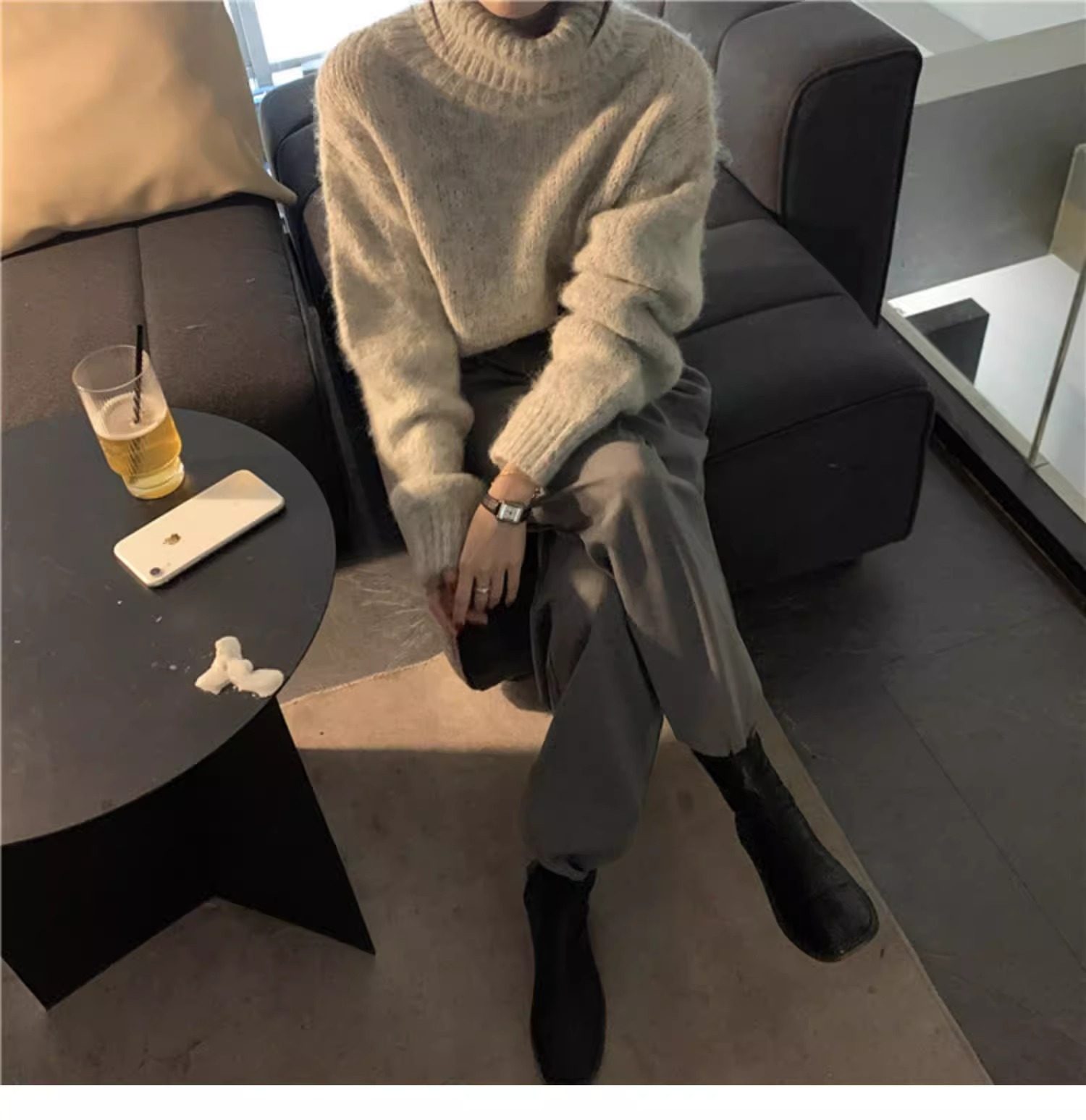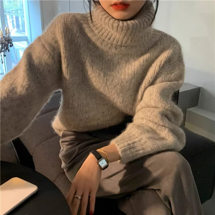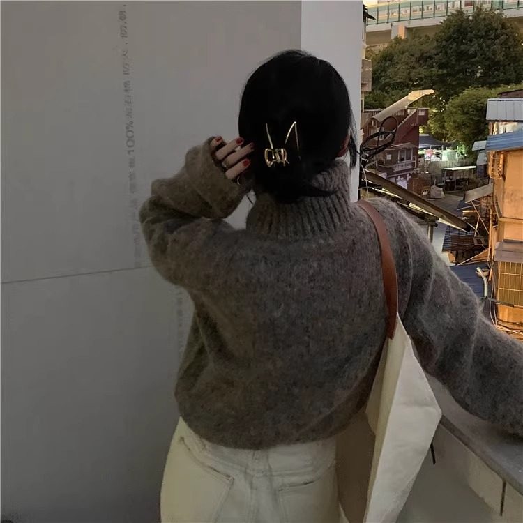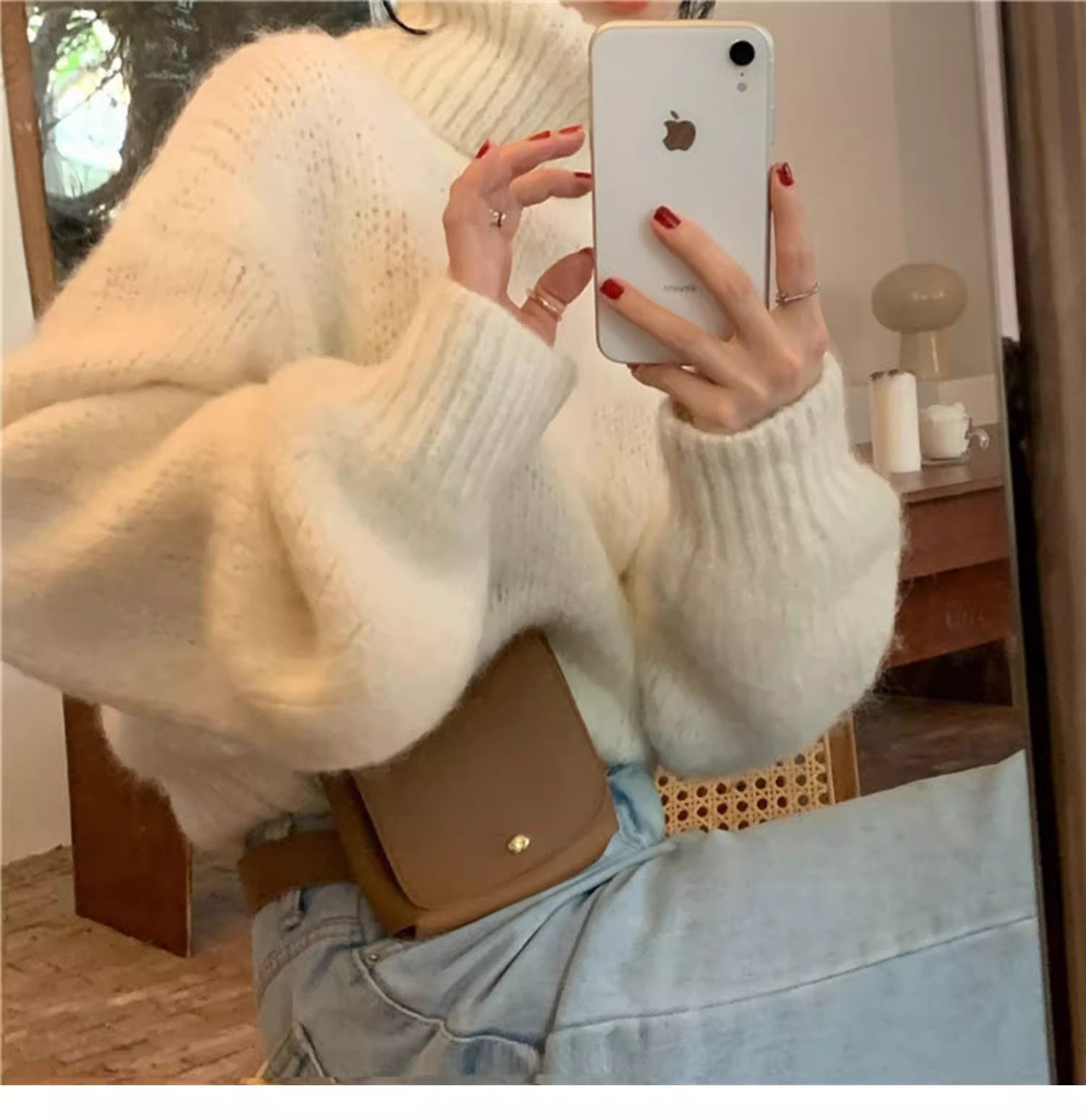高領毛衣女2025新款秋冬寬鬆外穿慵嬾風軟糯加厚短款打底針織衫潮