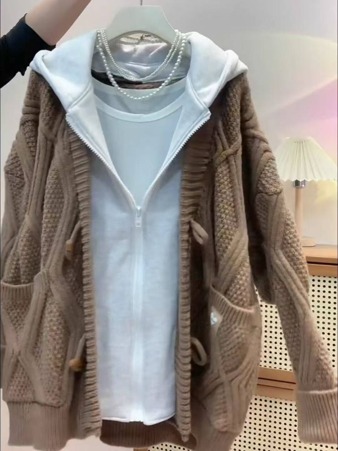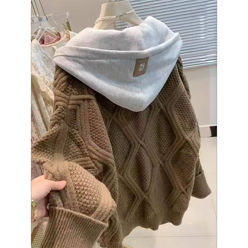 胖mm大碼300斤秋冬季加厚毛衣開衫外套男女寬鬆假兩件針織上衣潮2