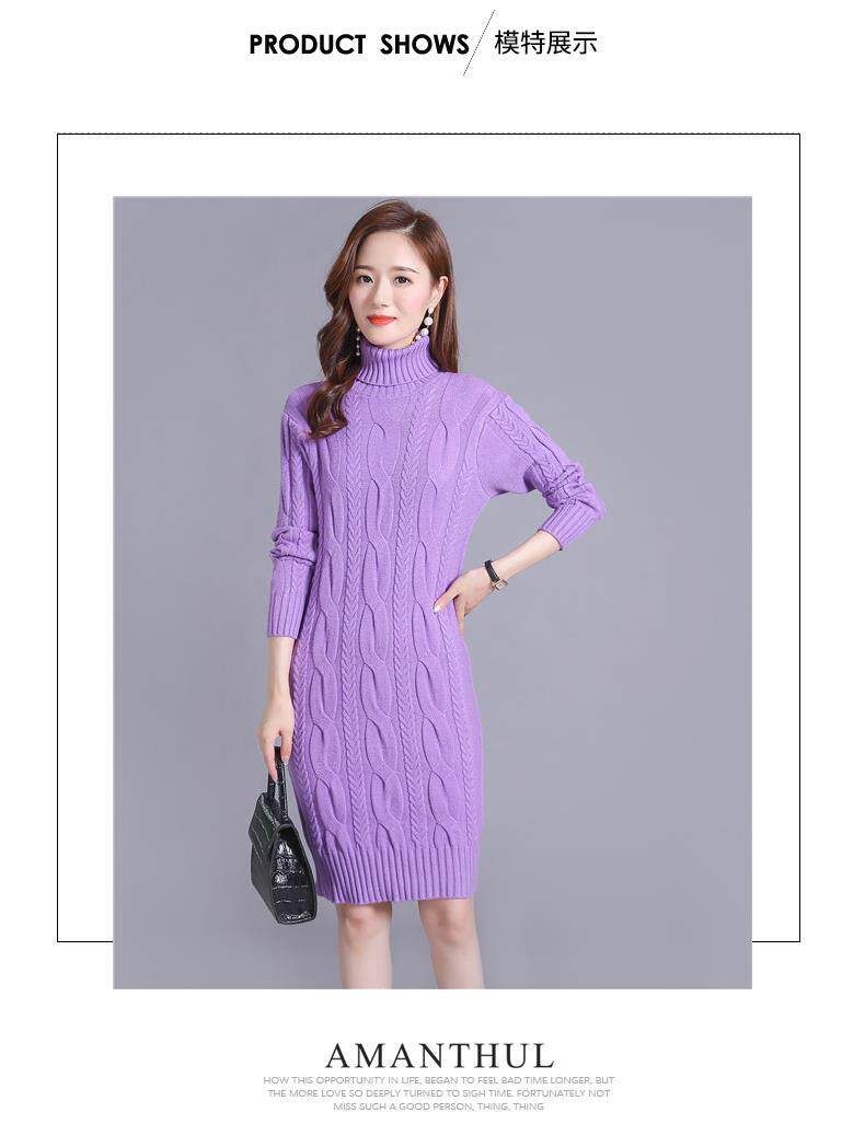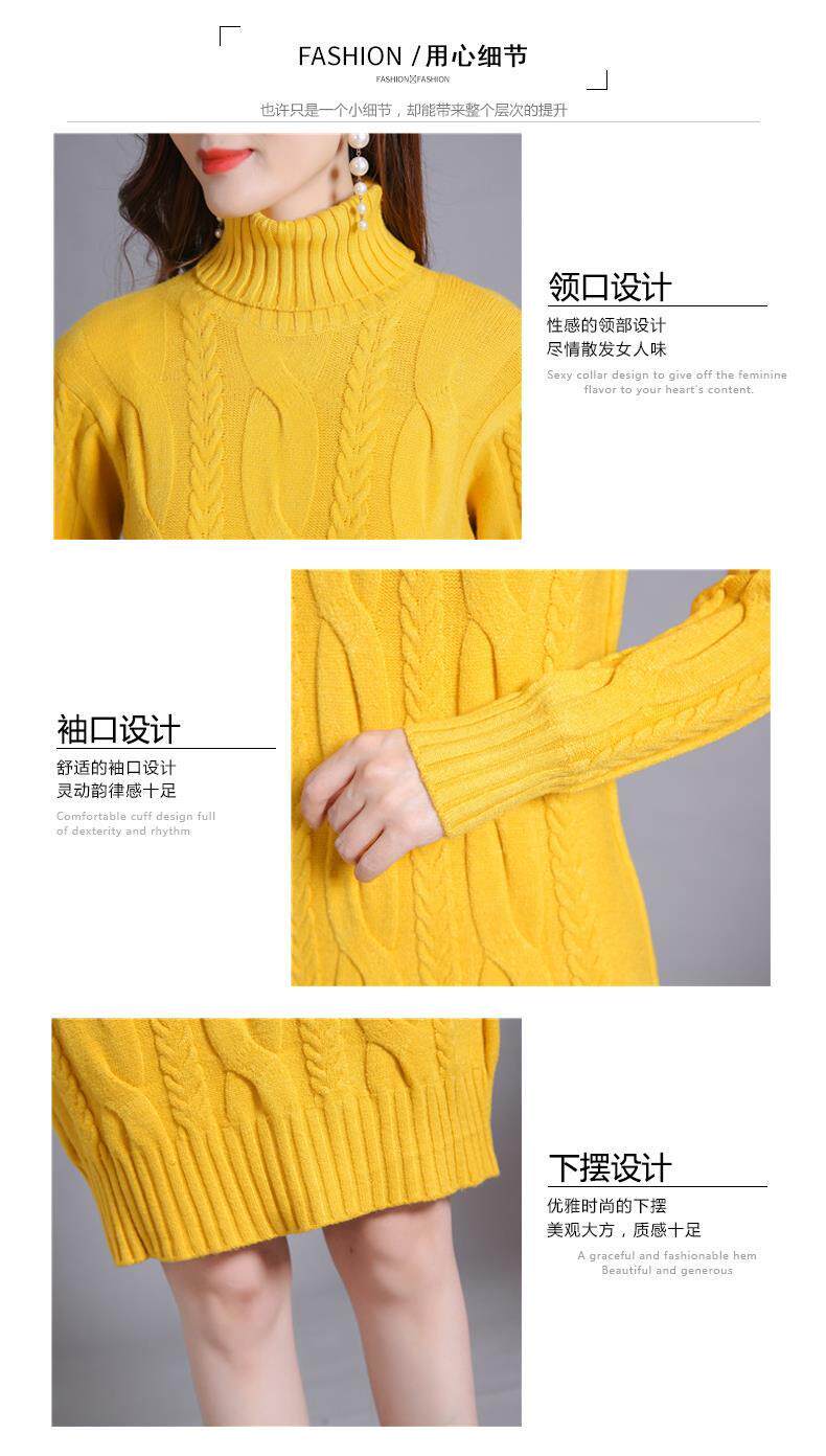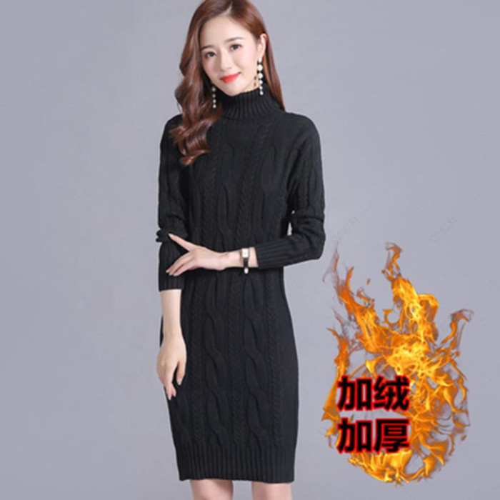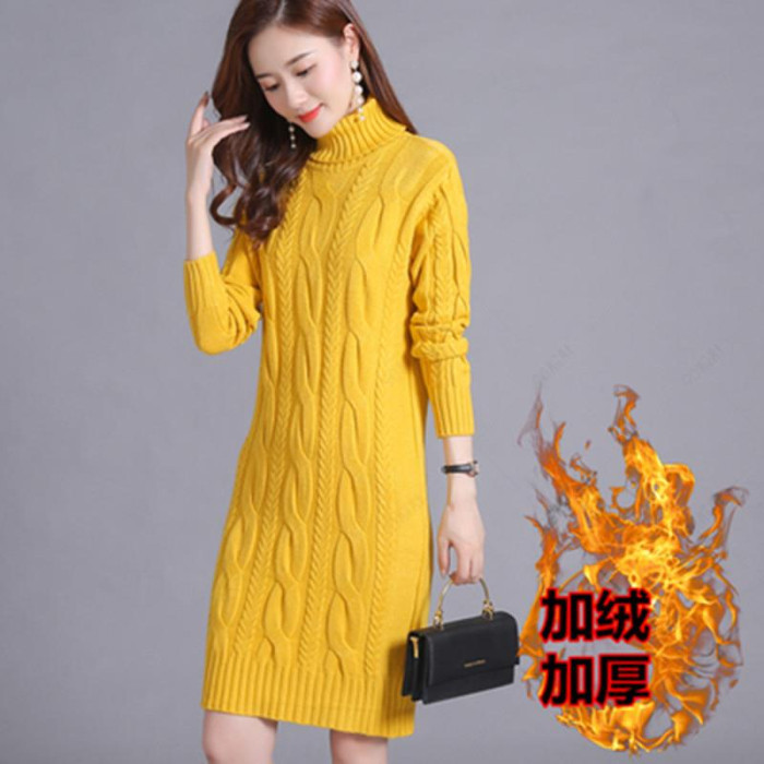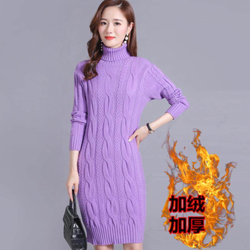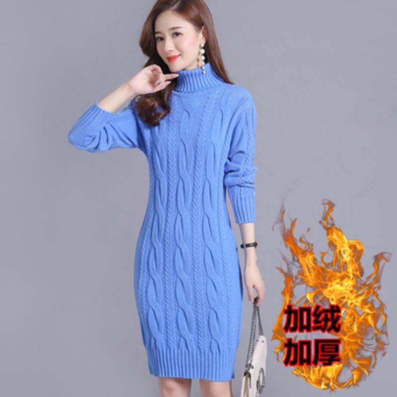 秋冬新款加絨加厚高領毛衣女寬鬆大碼中長款針織衫小個過膝打底裙