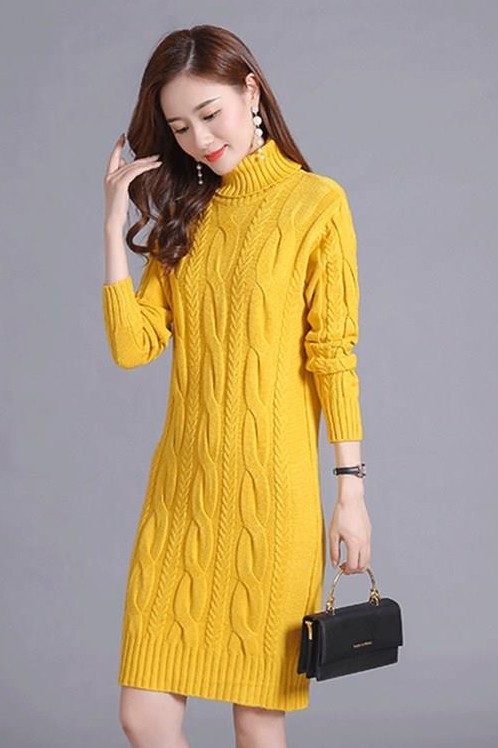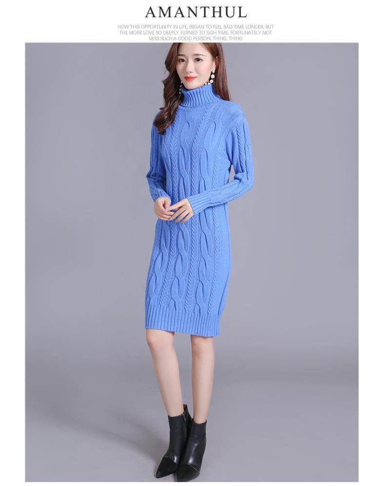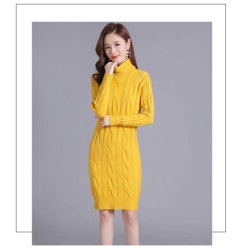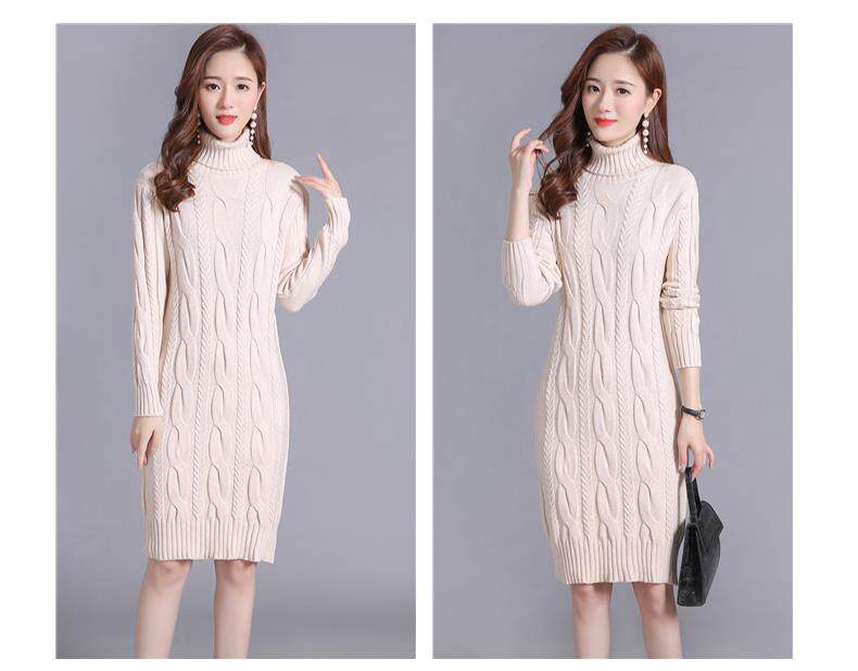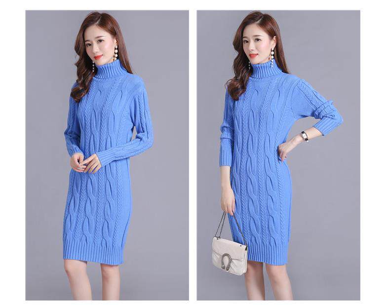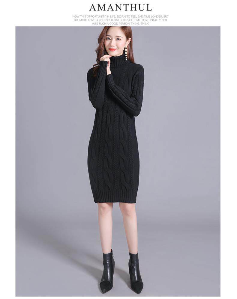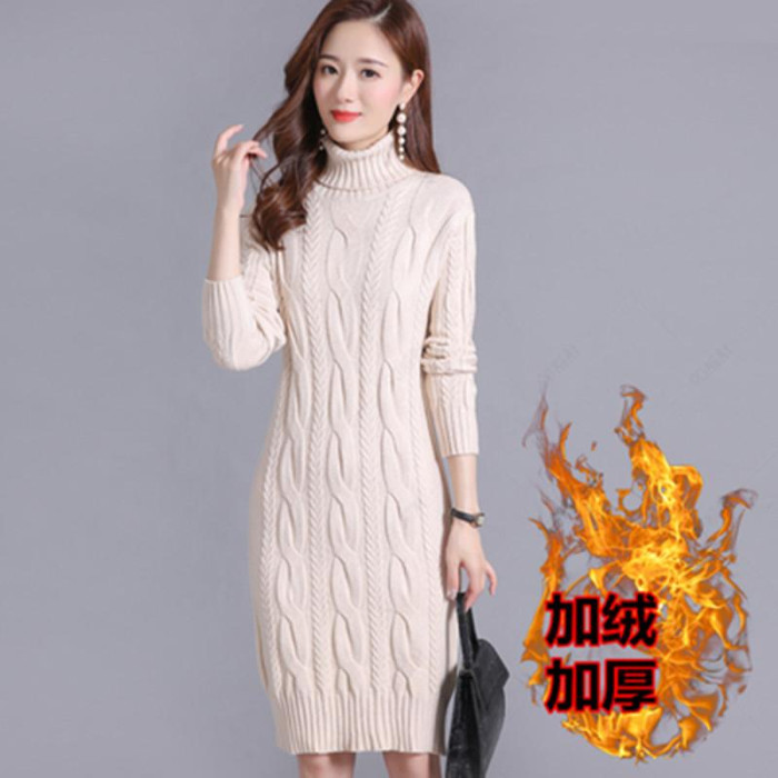 秋冬新款加絨加厚高領毛衣女寬鬆大碼中長款針織衫小個過膝打底裙