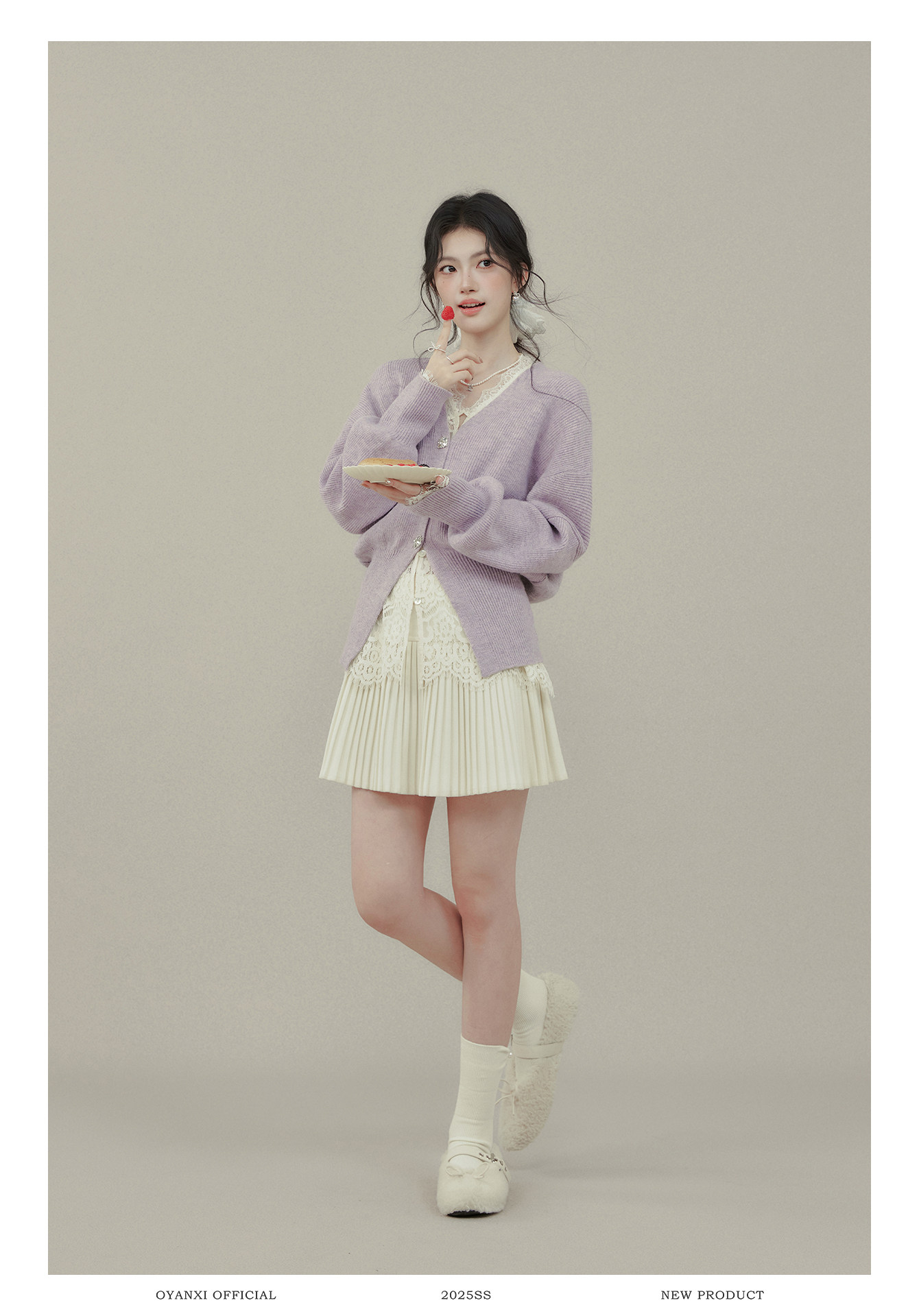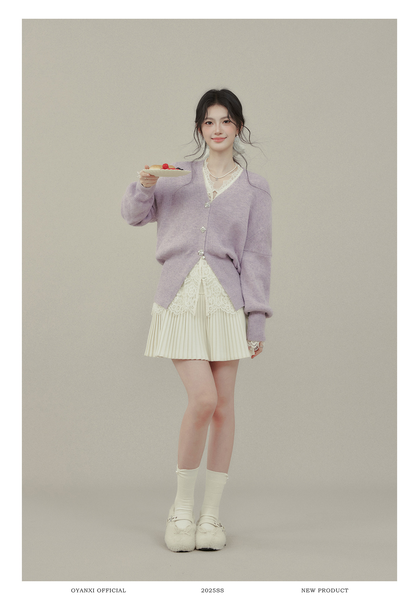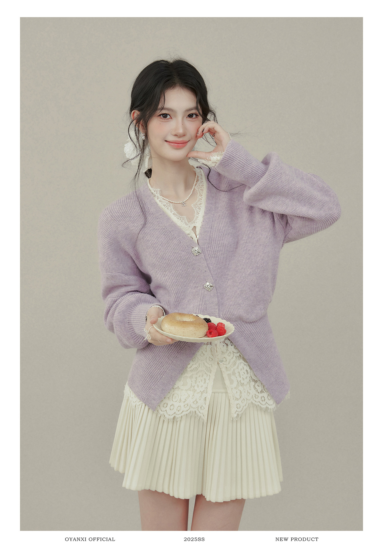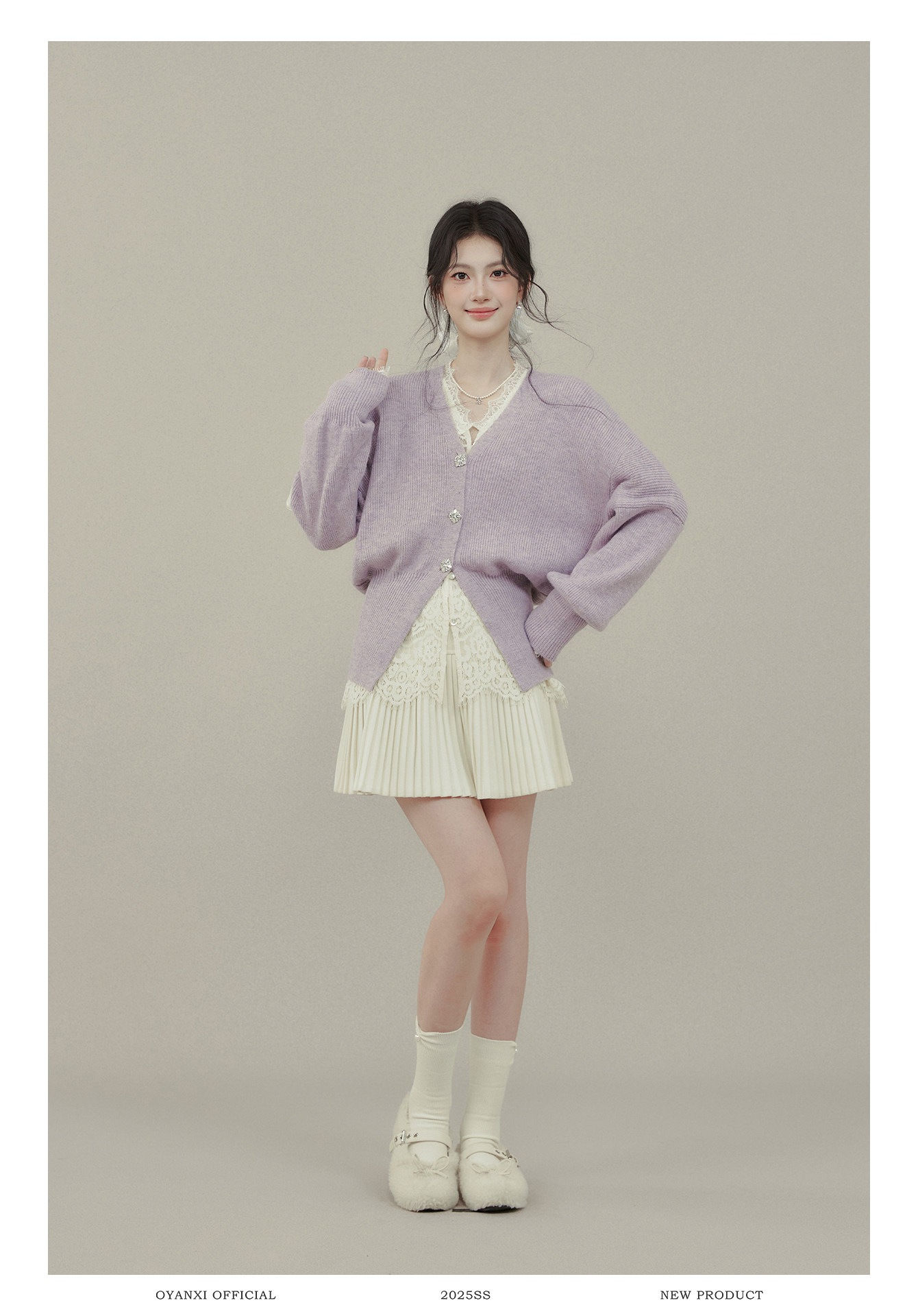 歐陽喜《法式高貴》紫色V領毛衣開衫女冬新款內搭外穿打底衫上衣