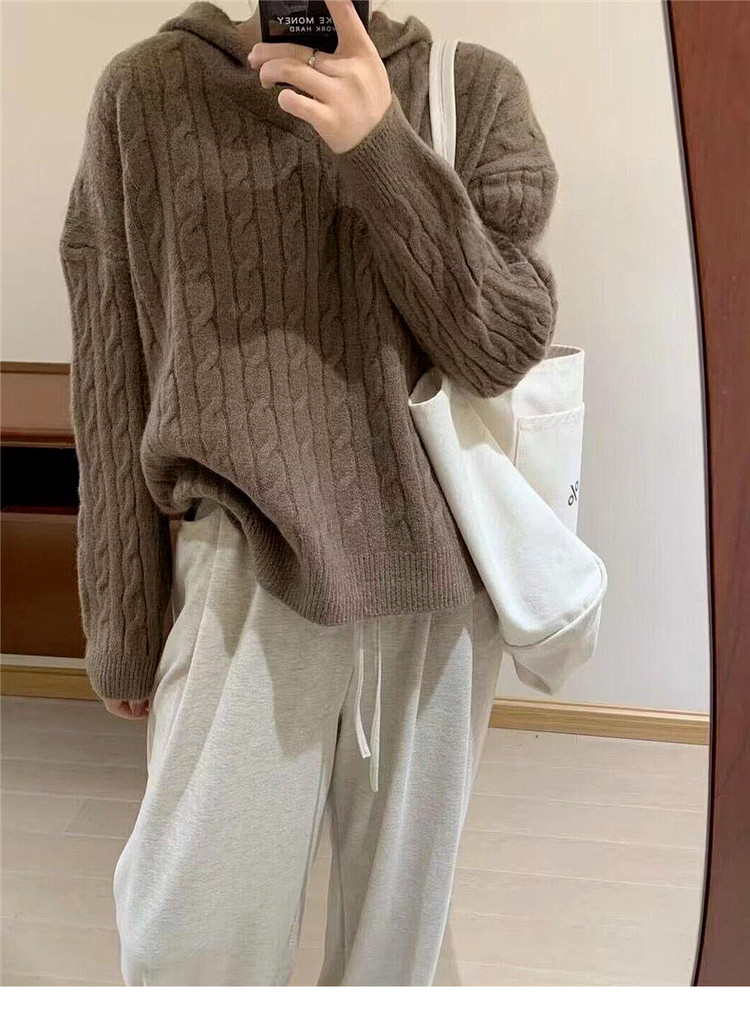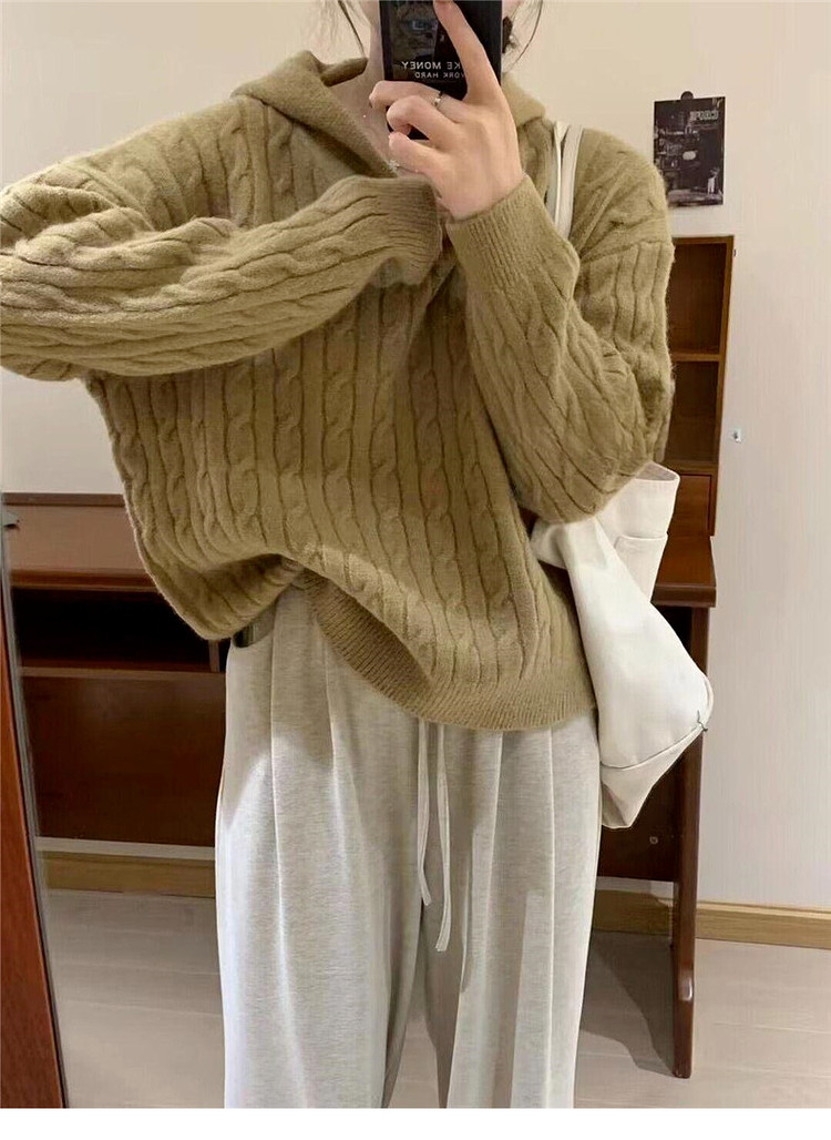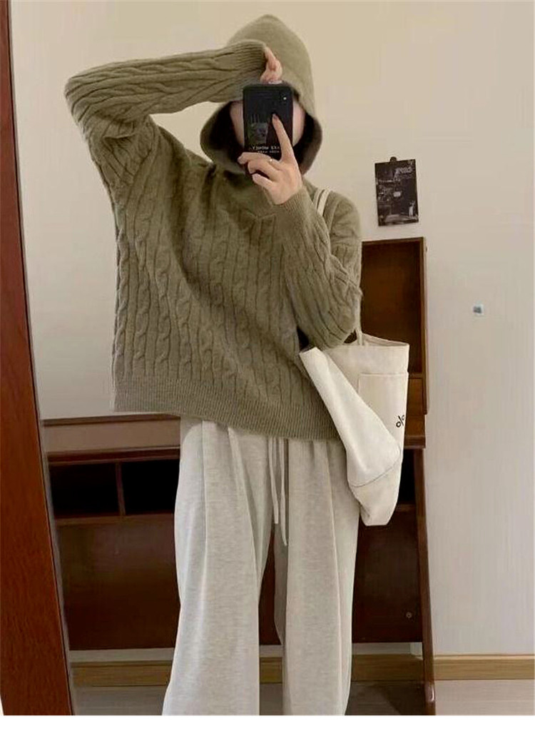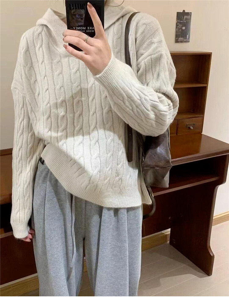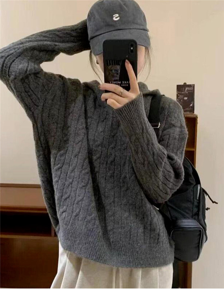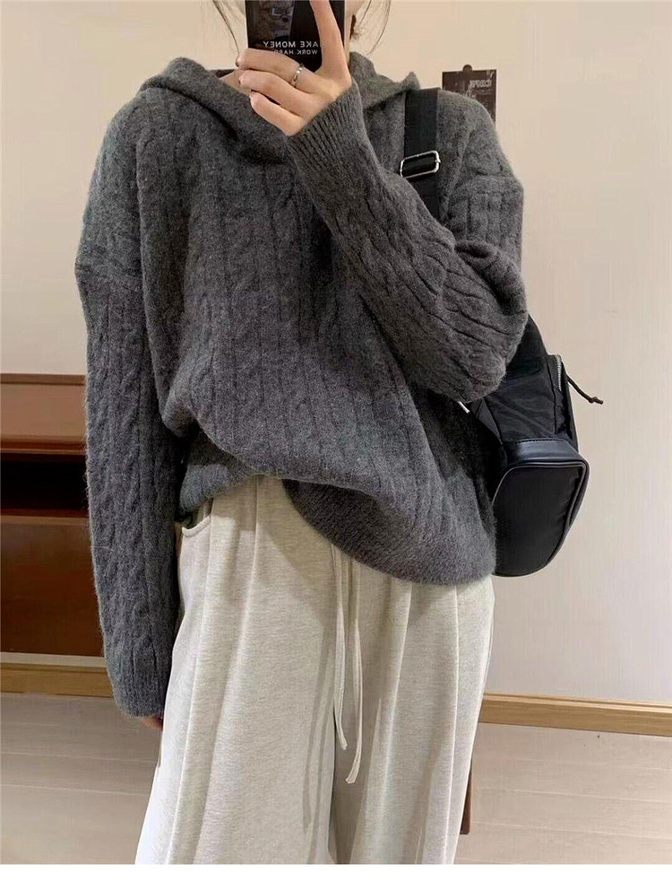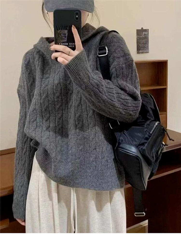 慵懶風復古灰色連帽針織毛衣女早春季2026新款小個子外穿內搭上衣