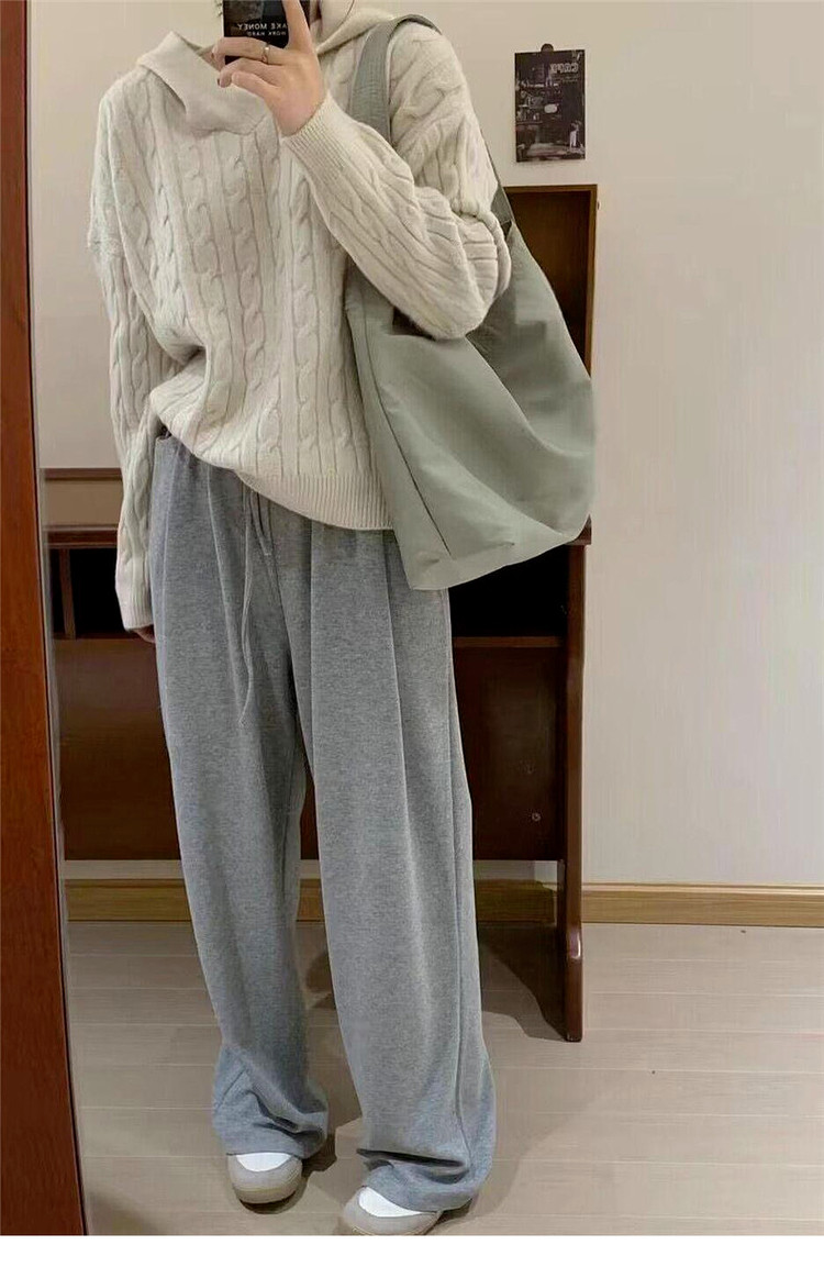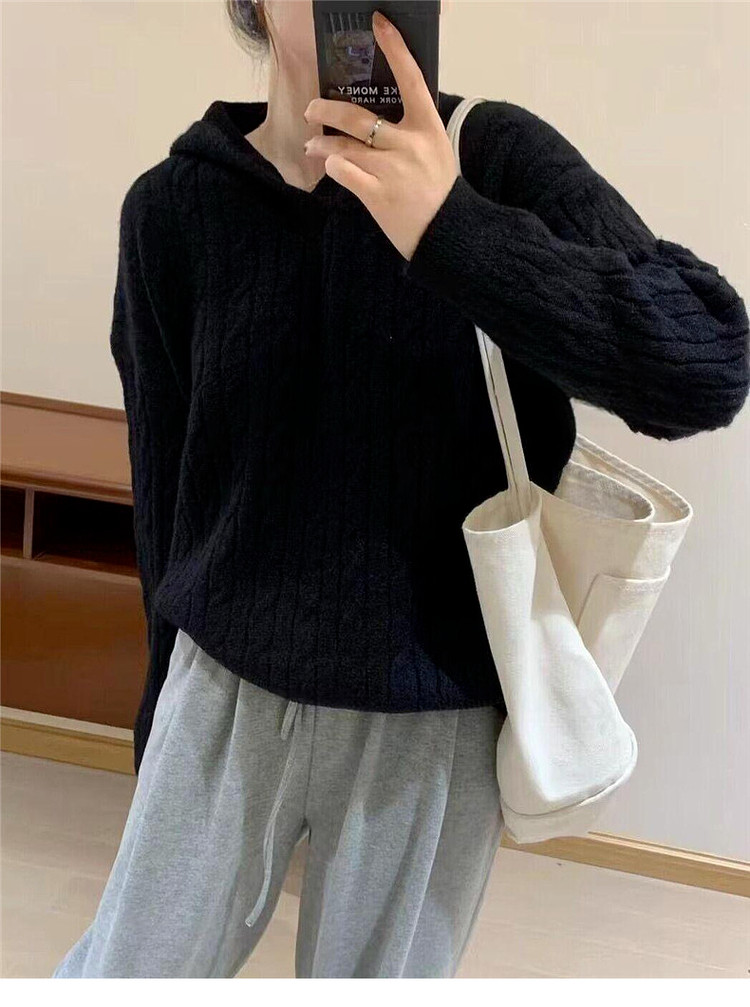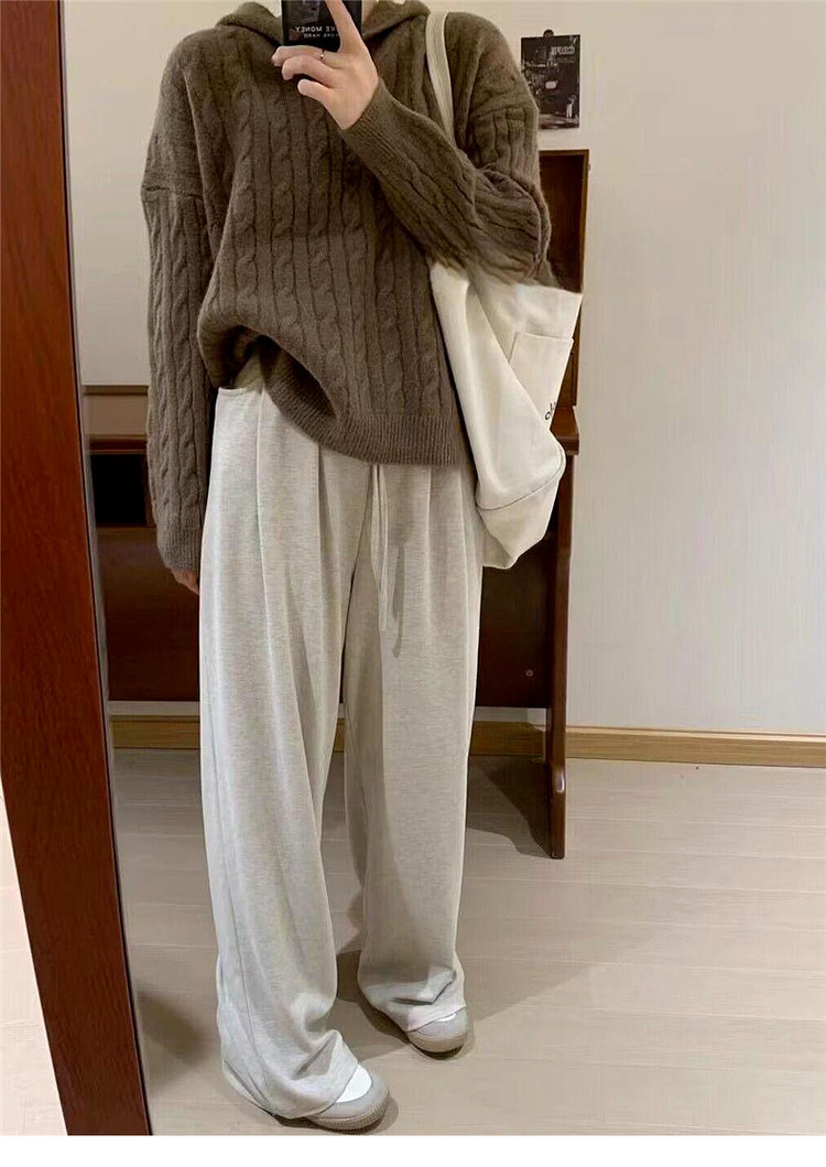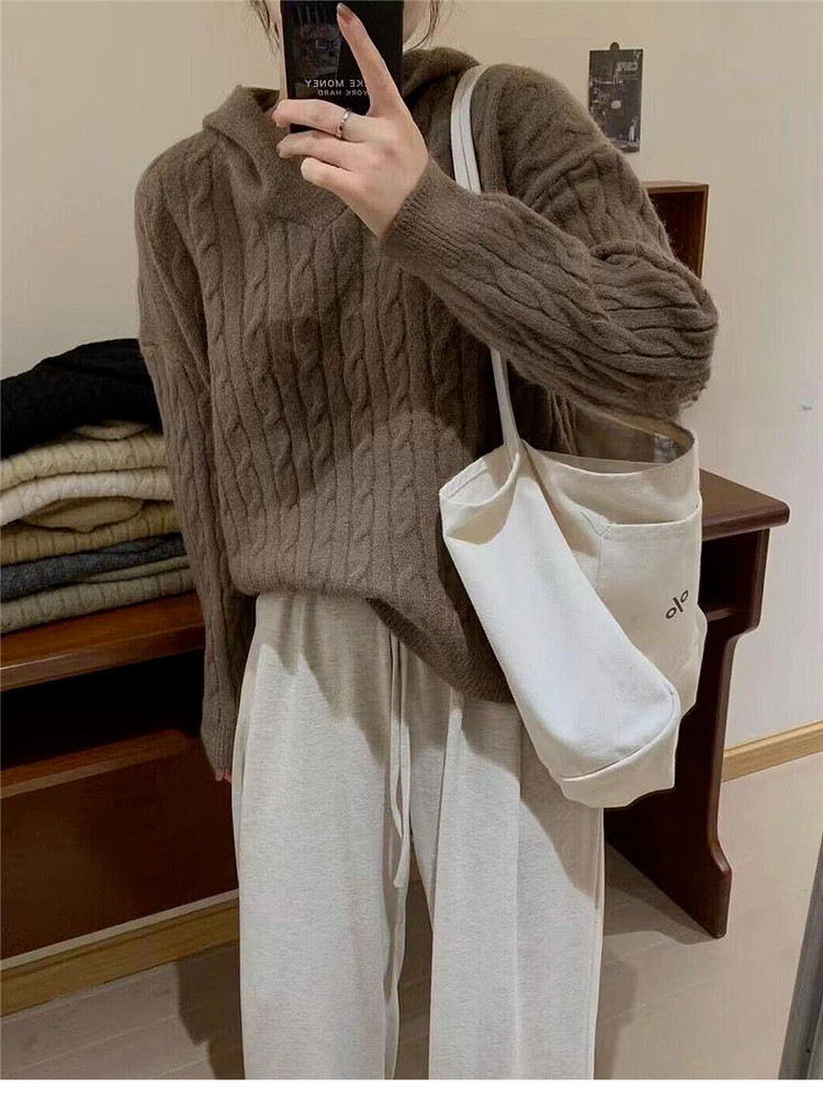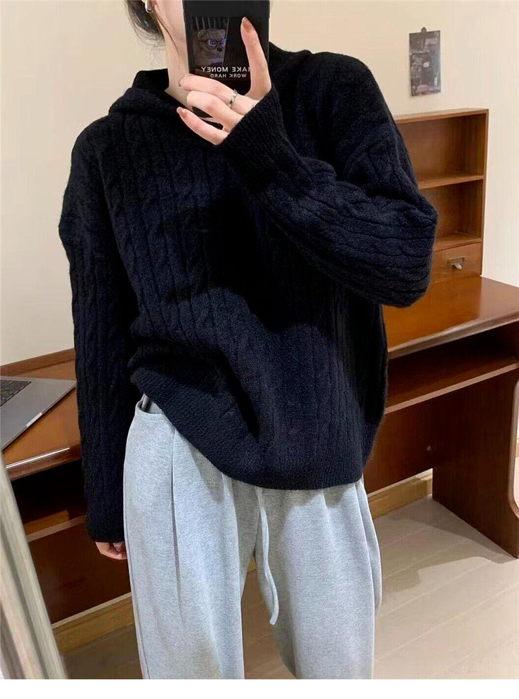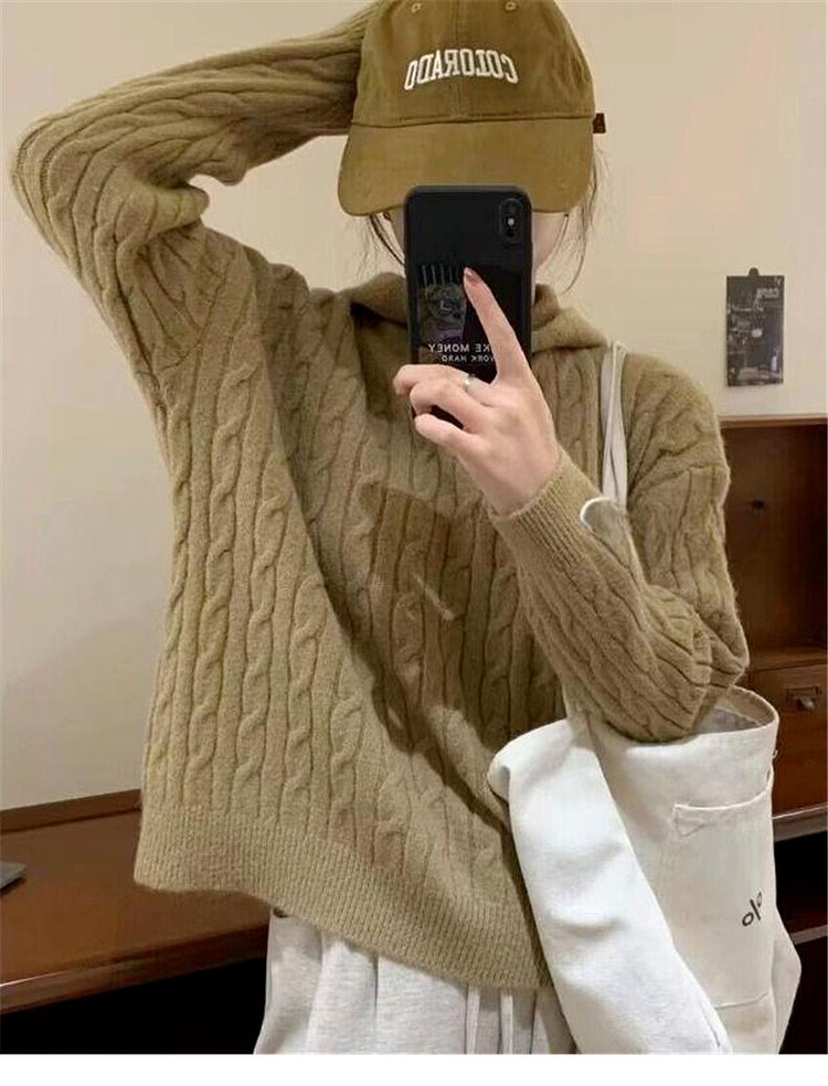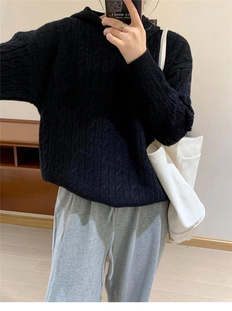 慵懶風復古灰色連帽針織毛衣女早春季2026新款小個子外穿內搭上衣