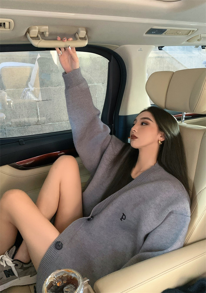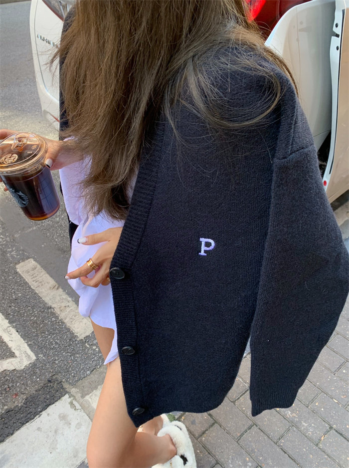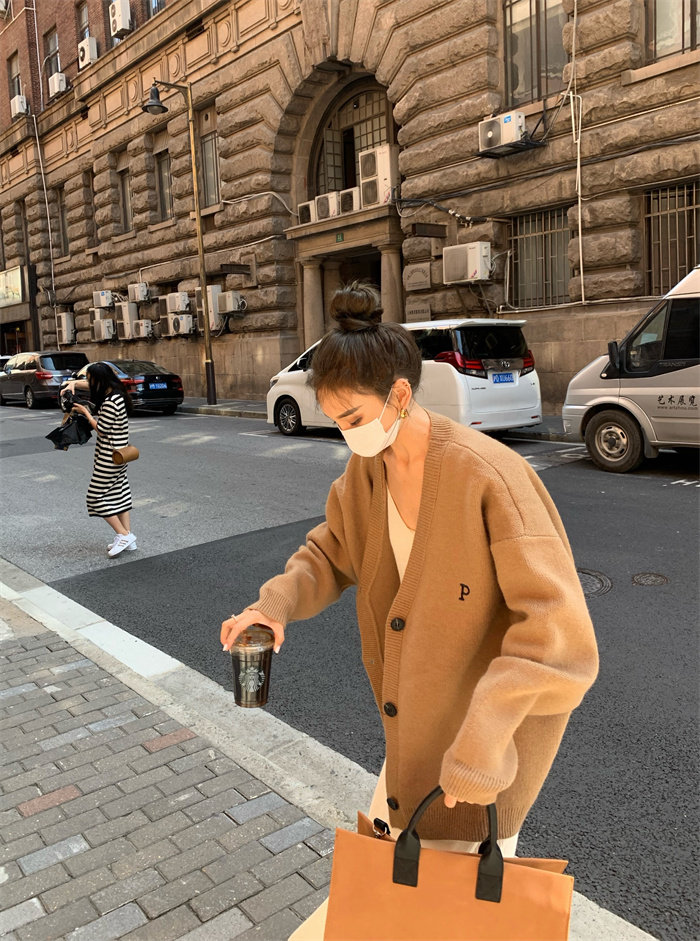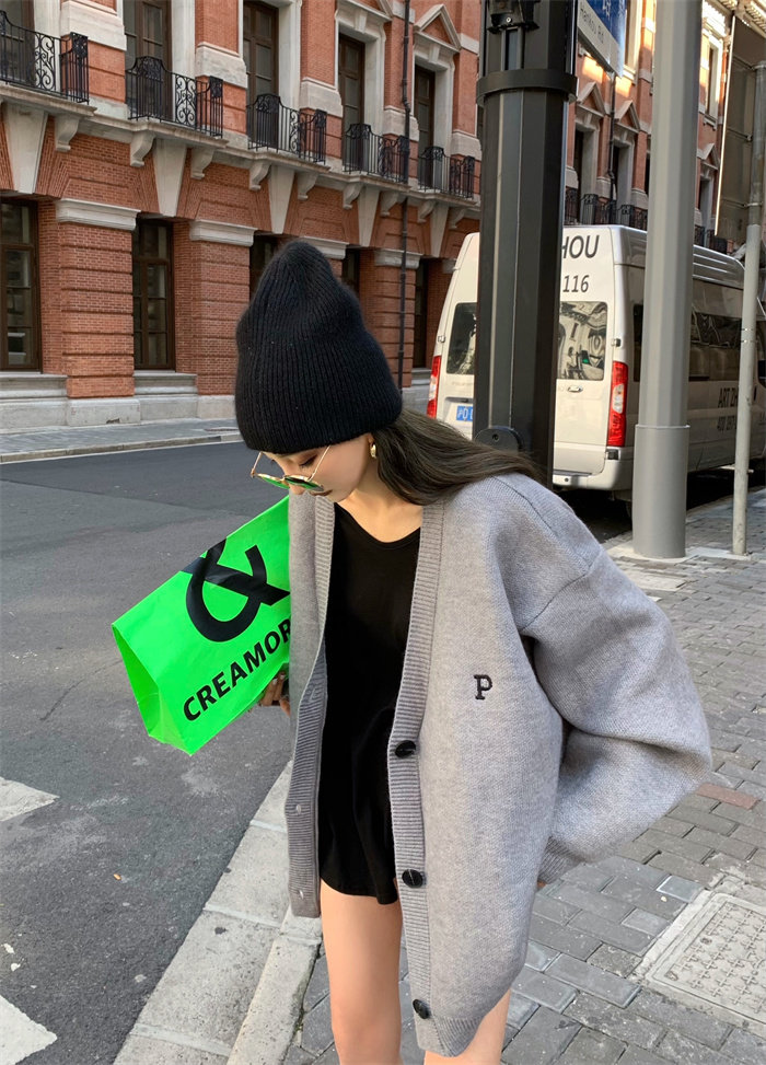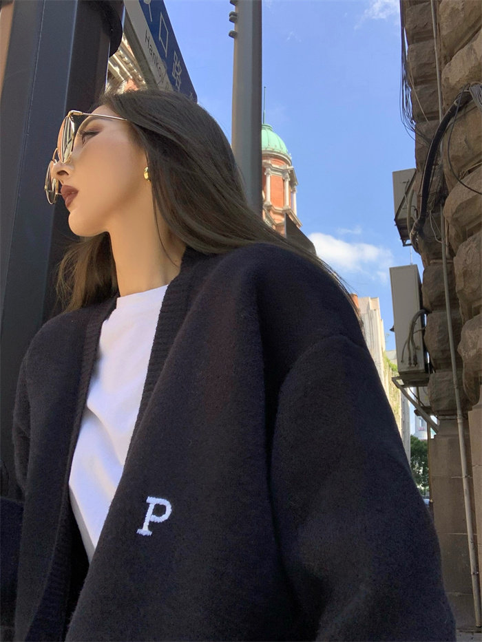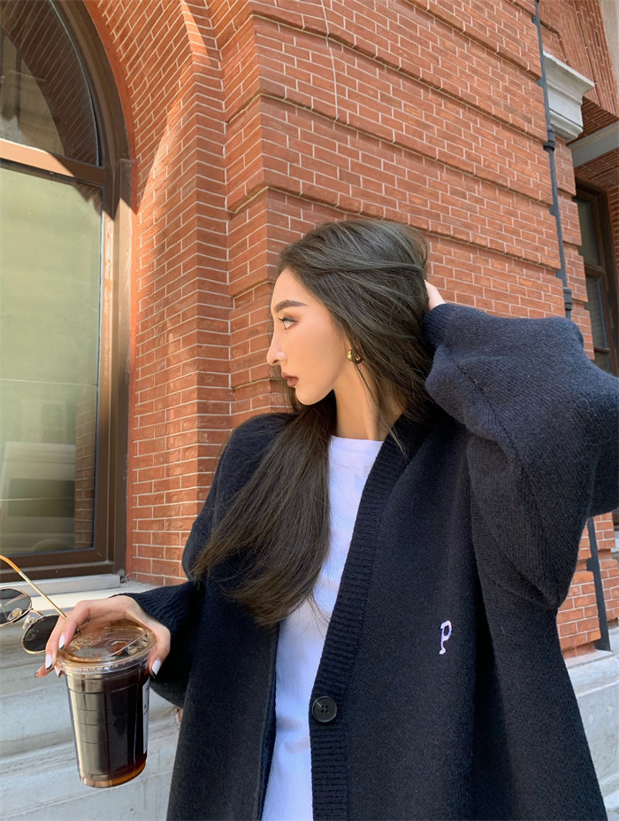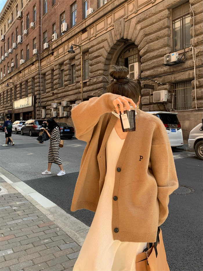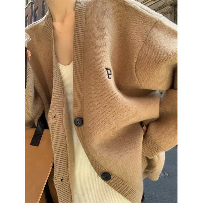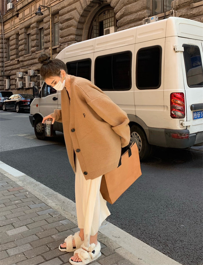 慵懶風毛衣外套女秋冬新款V領寬松外穿設計感小衆中長款針織開衫