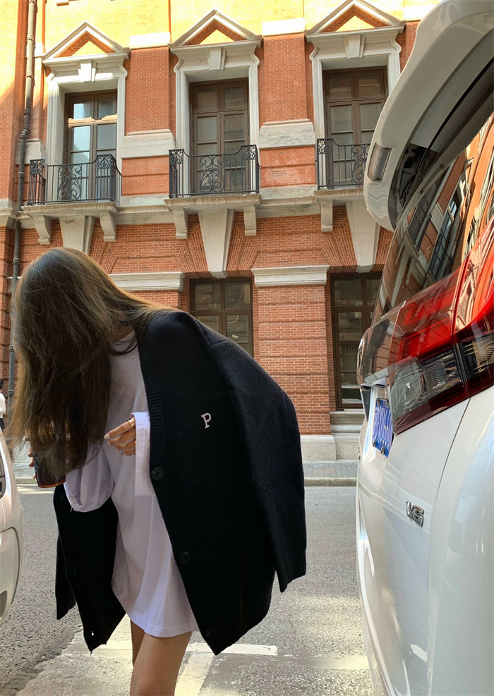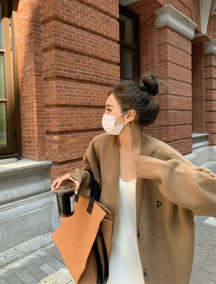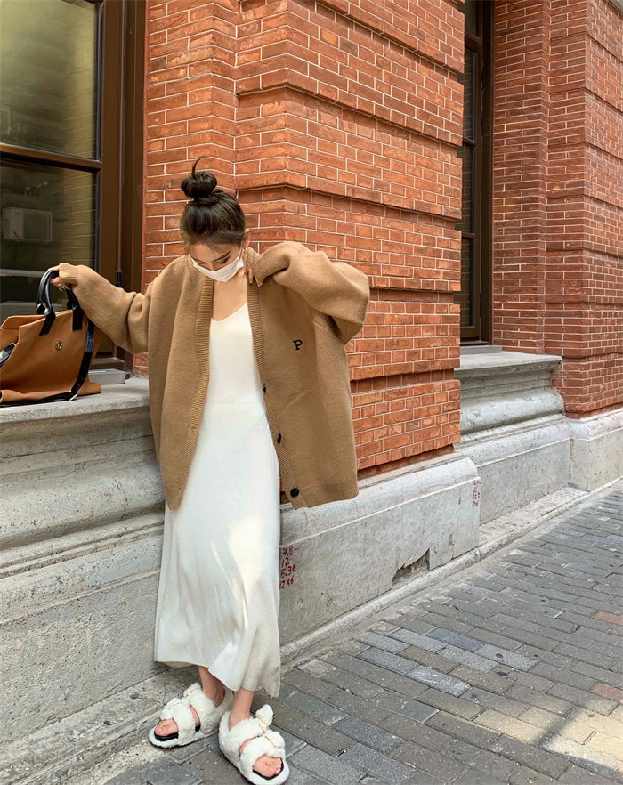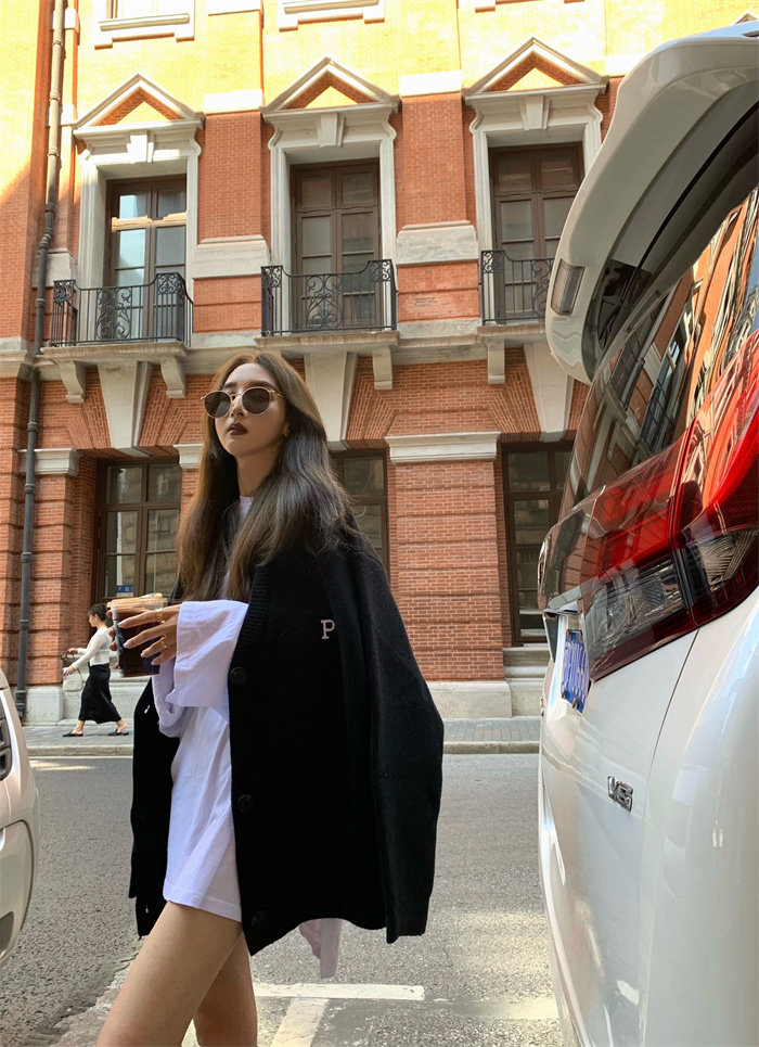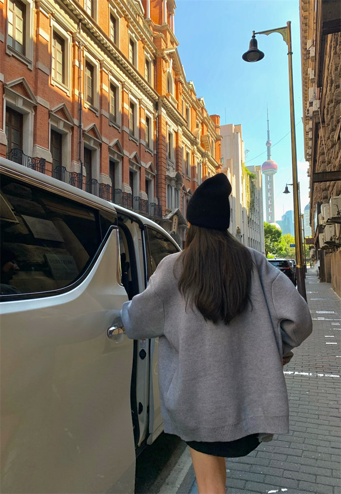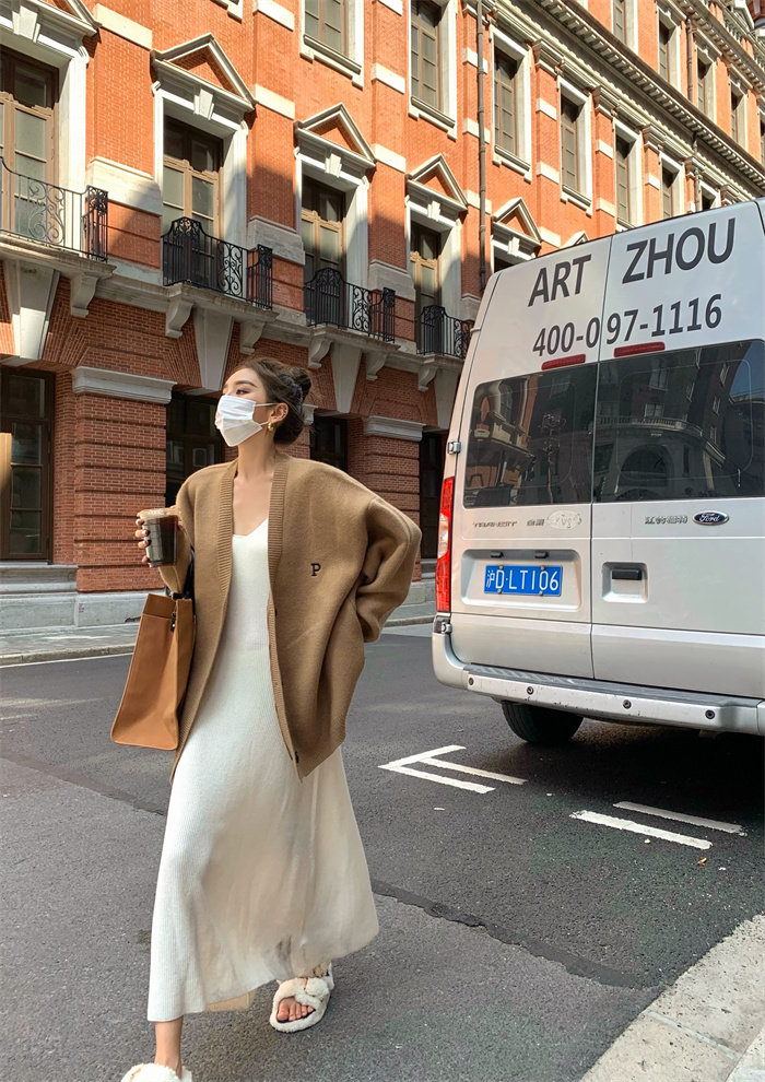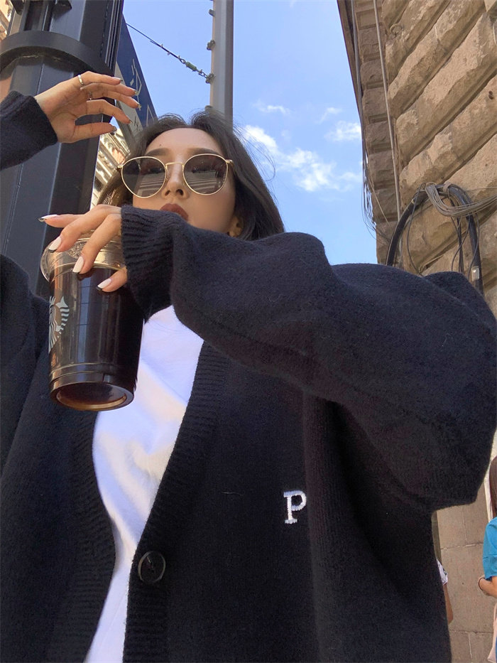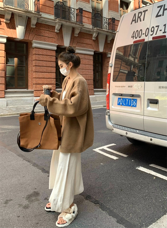 慵懶風毛衣外套女秋冬新款V領寬松外穿設計感小衆中長款針織開衫