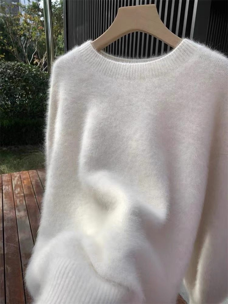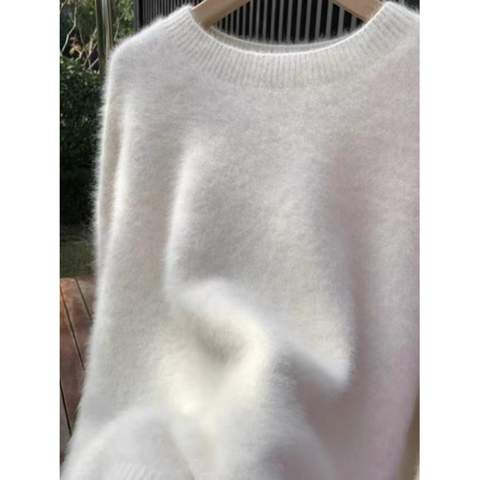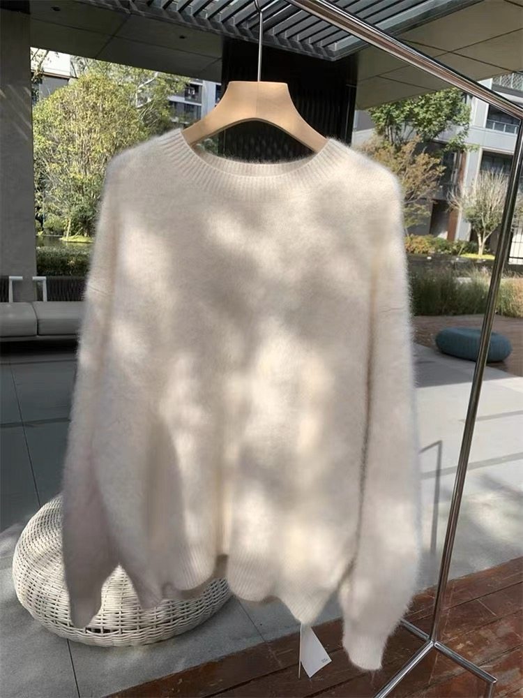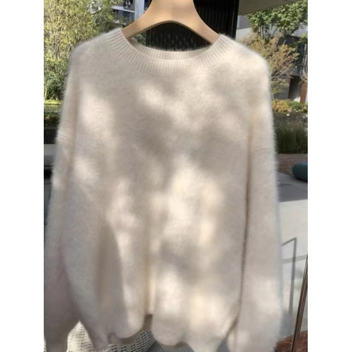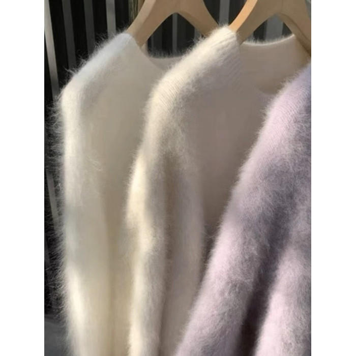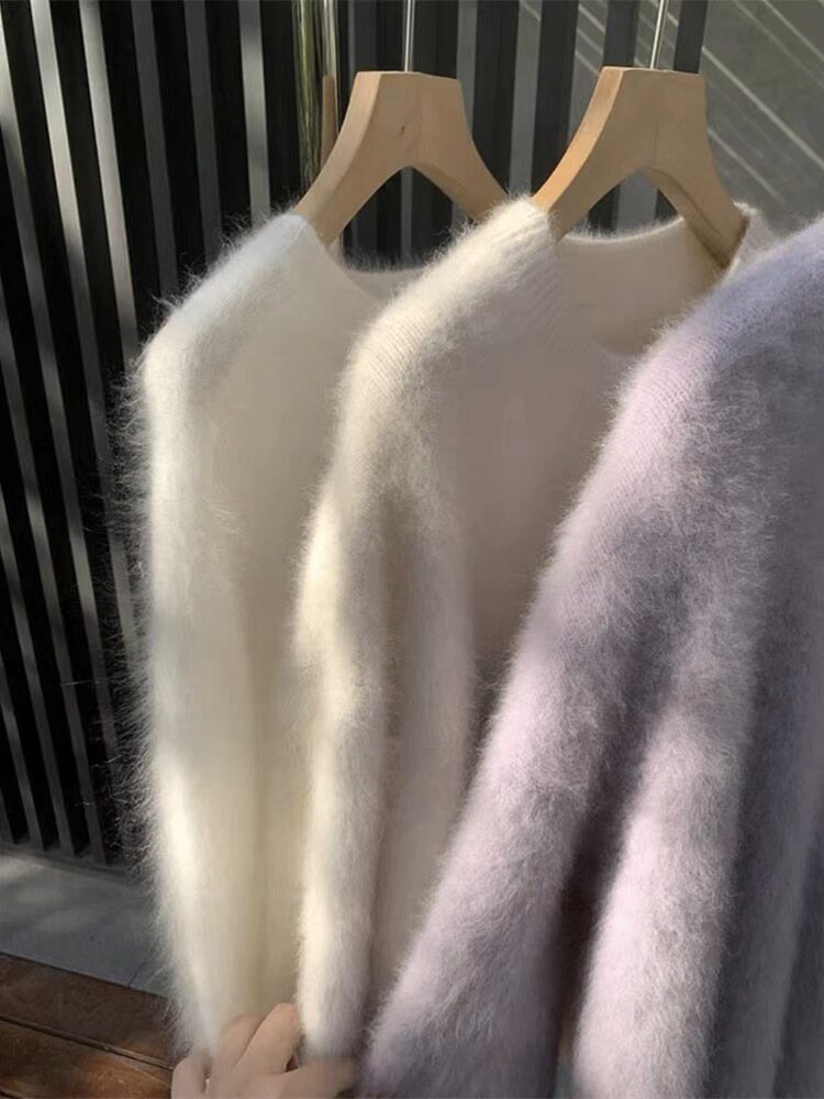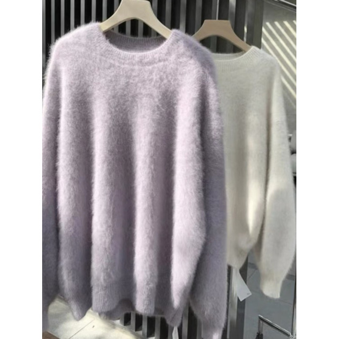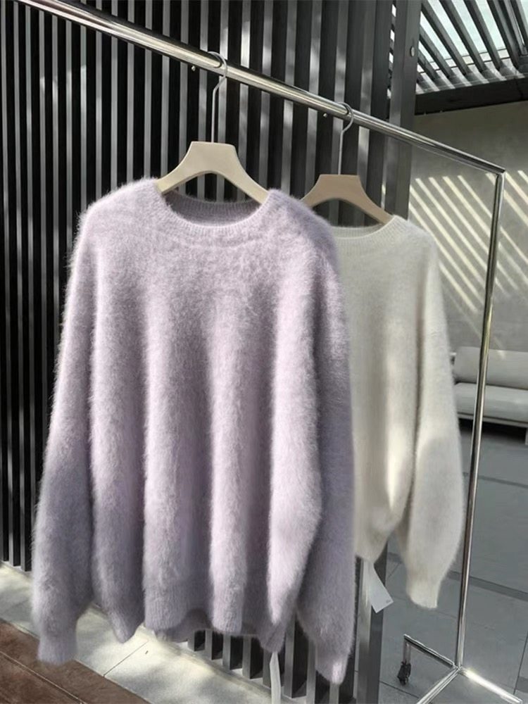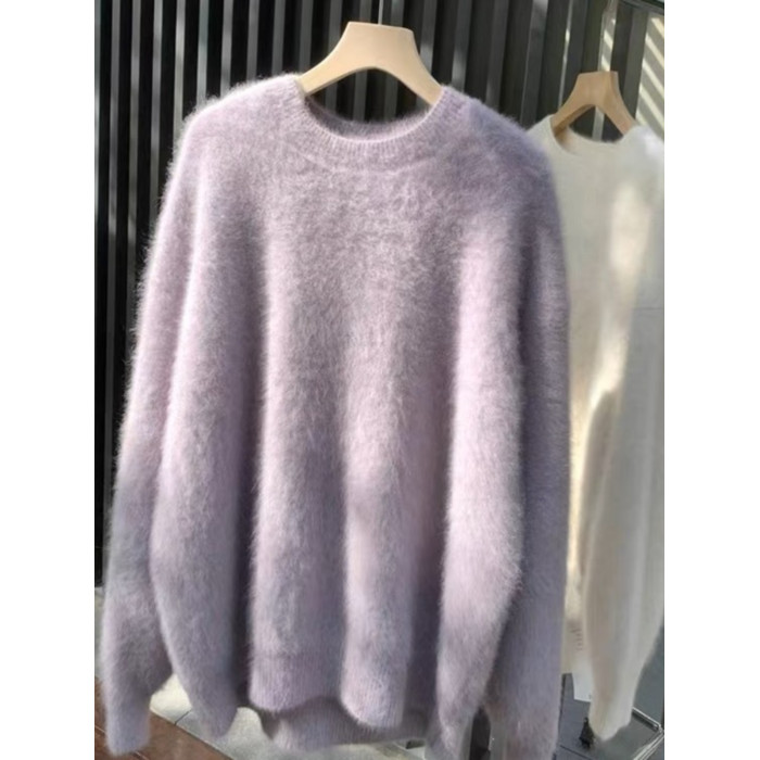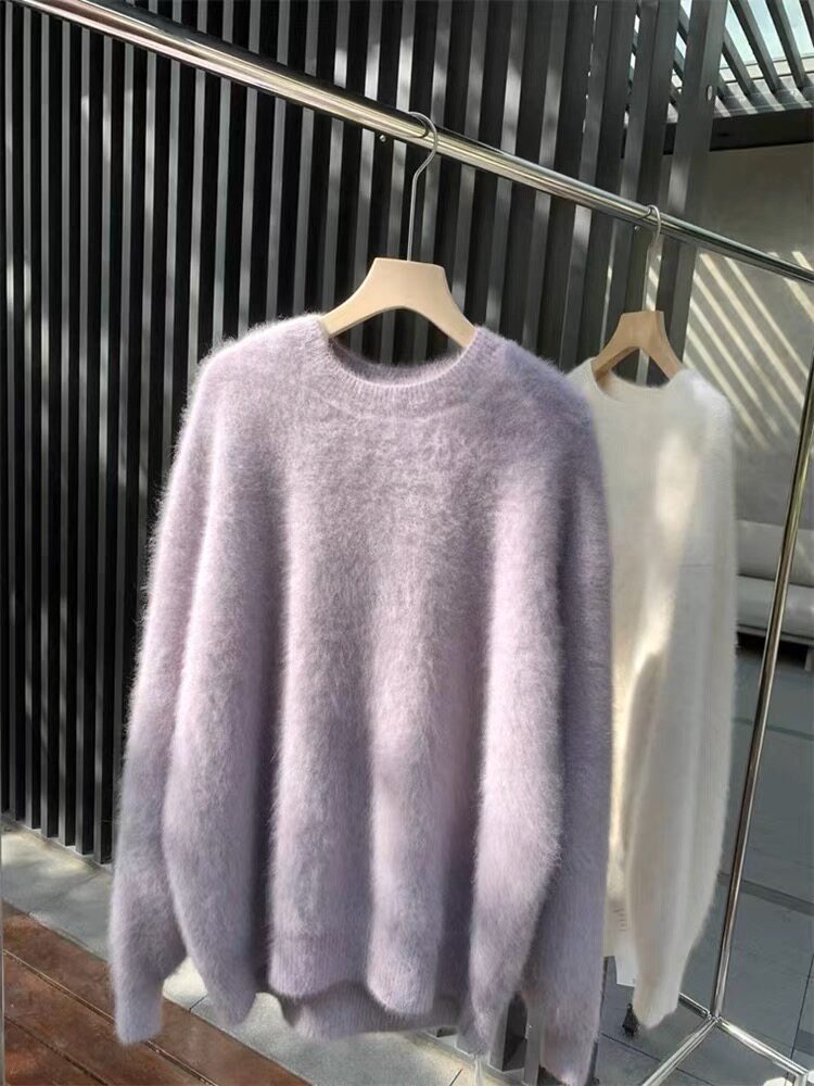 香芋紫色水貂絨圓領毛衣女秋冬季加厚小個子慵懶風軟糯針織衫上衣