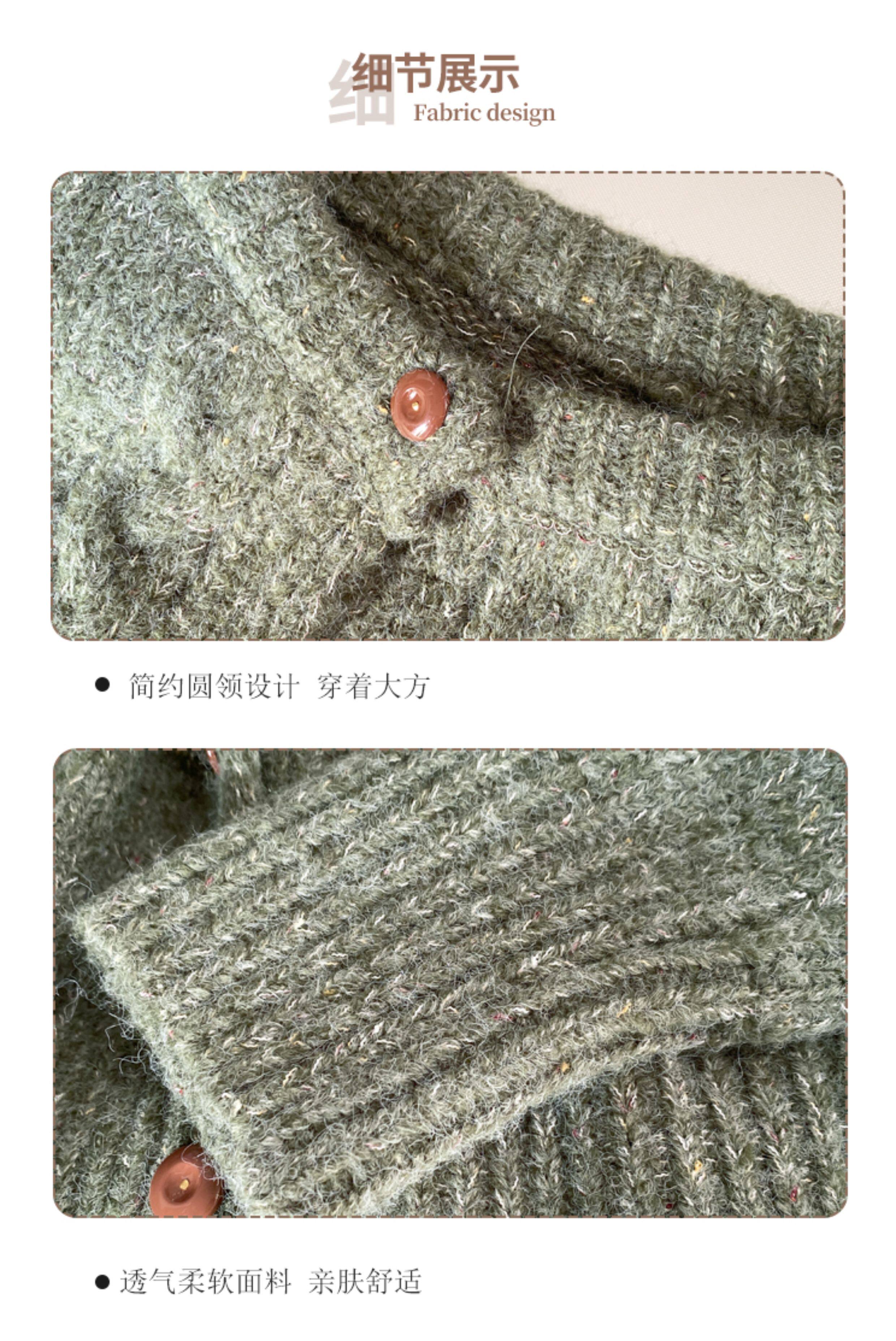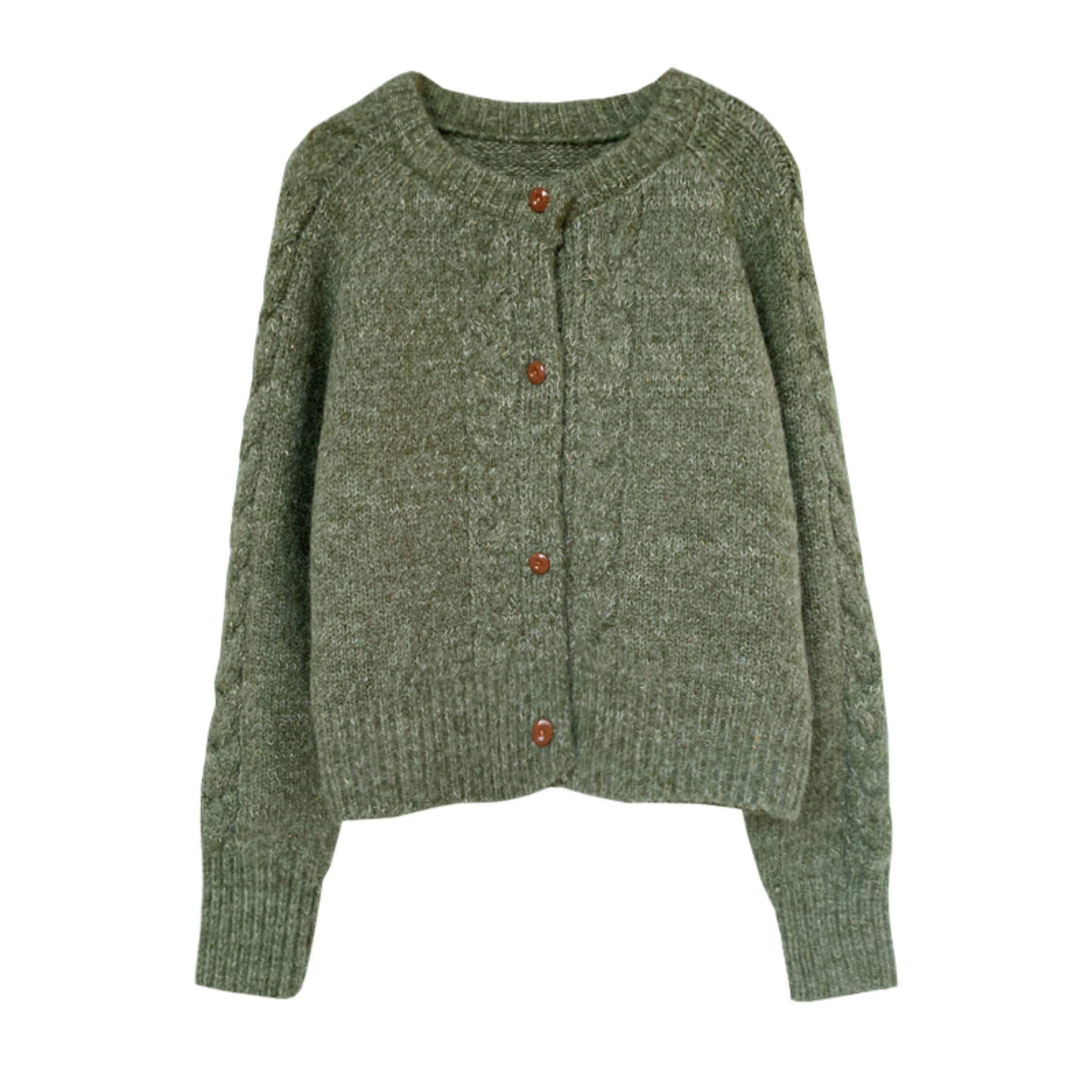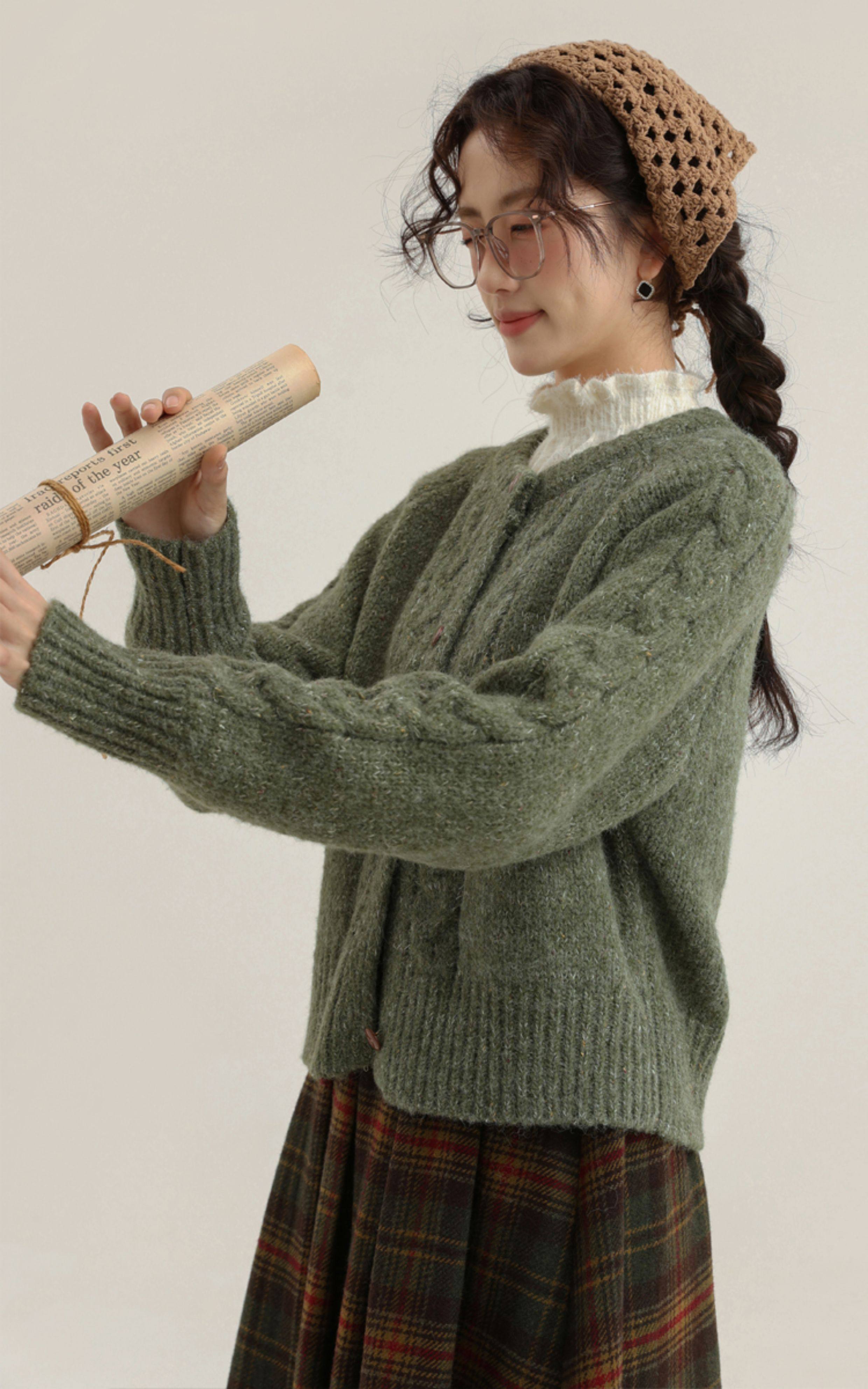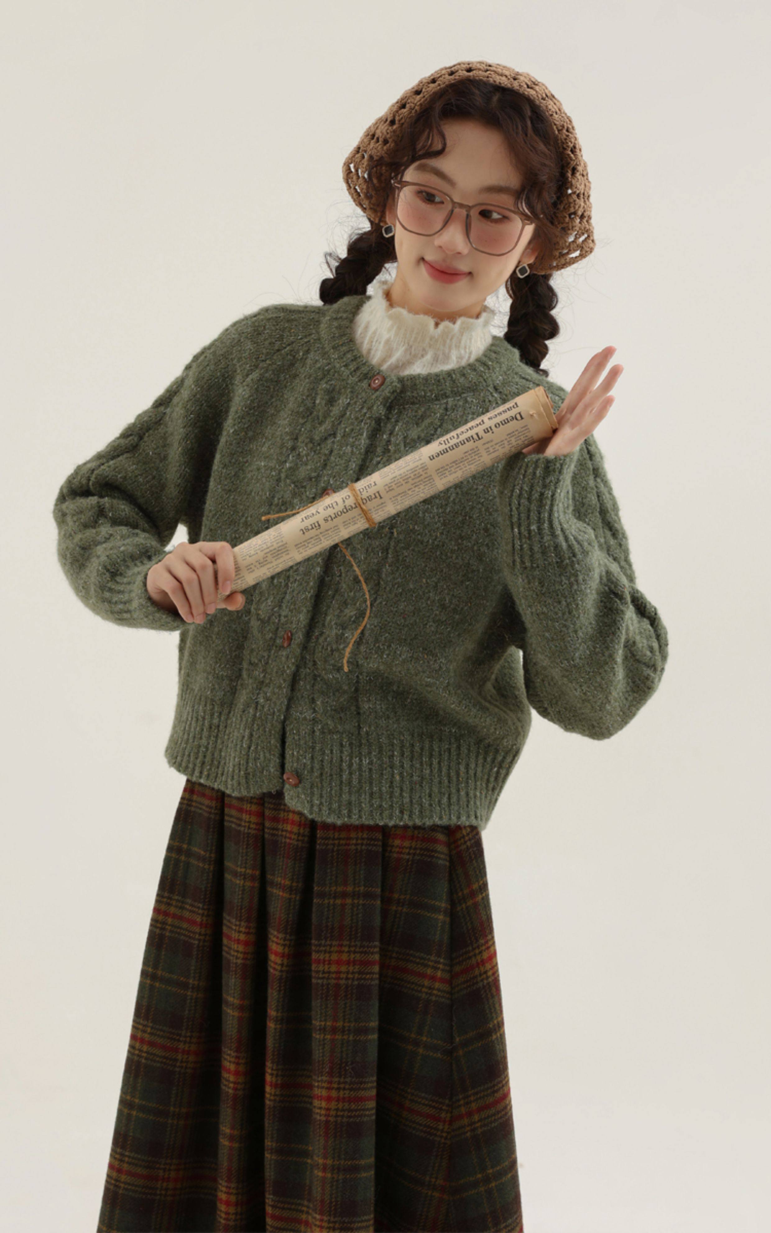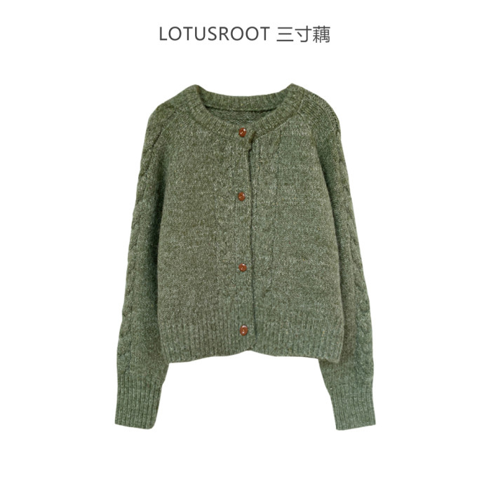 【三寸藕】冬季復古綠色針織開衫麻花紋軟糯森系毛衣甜美氣質外套