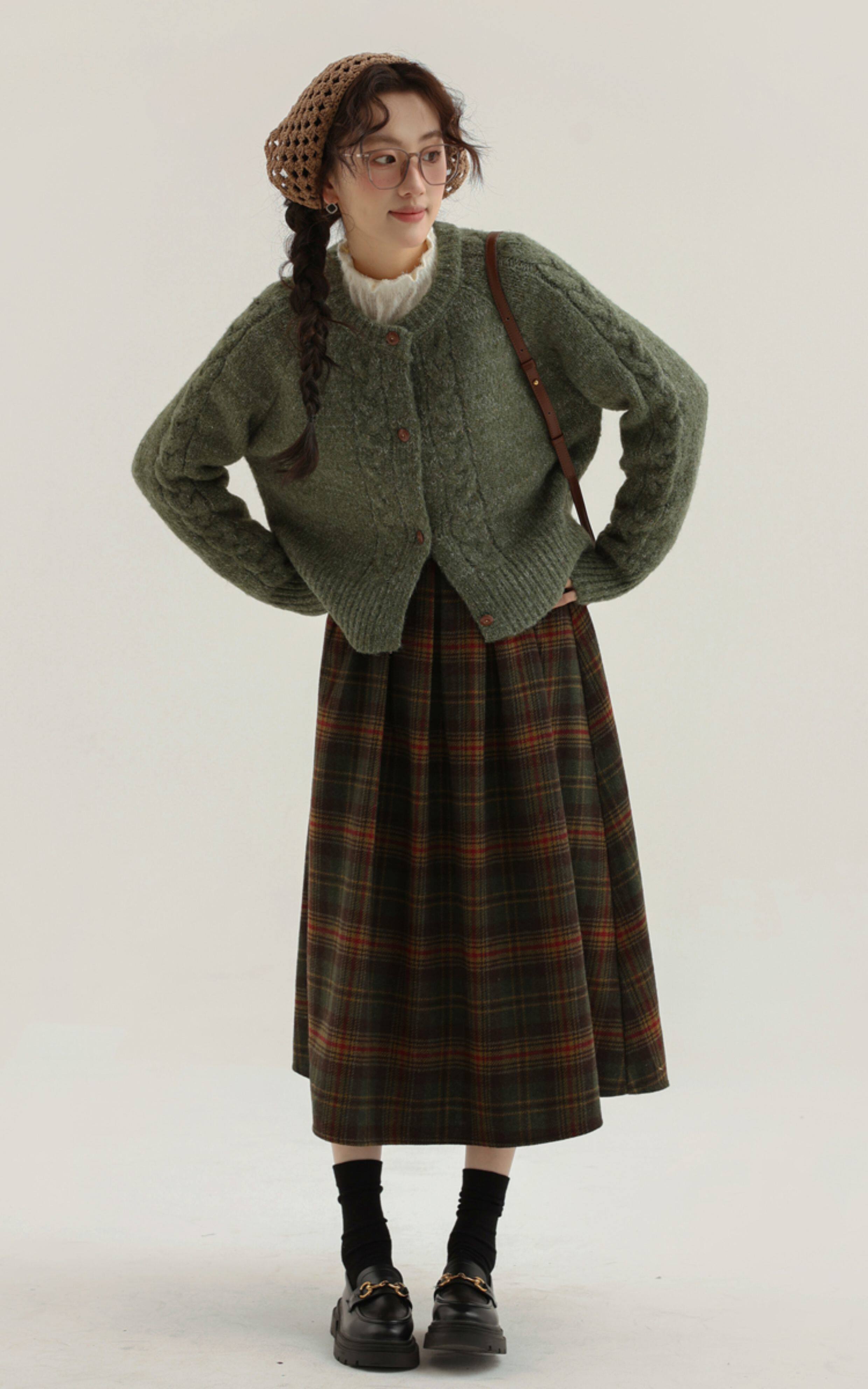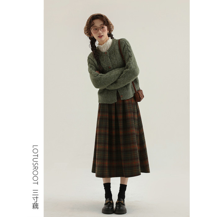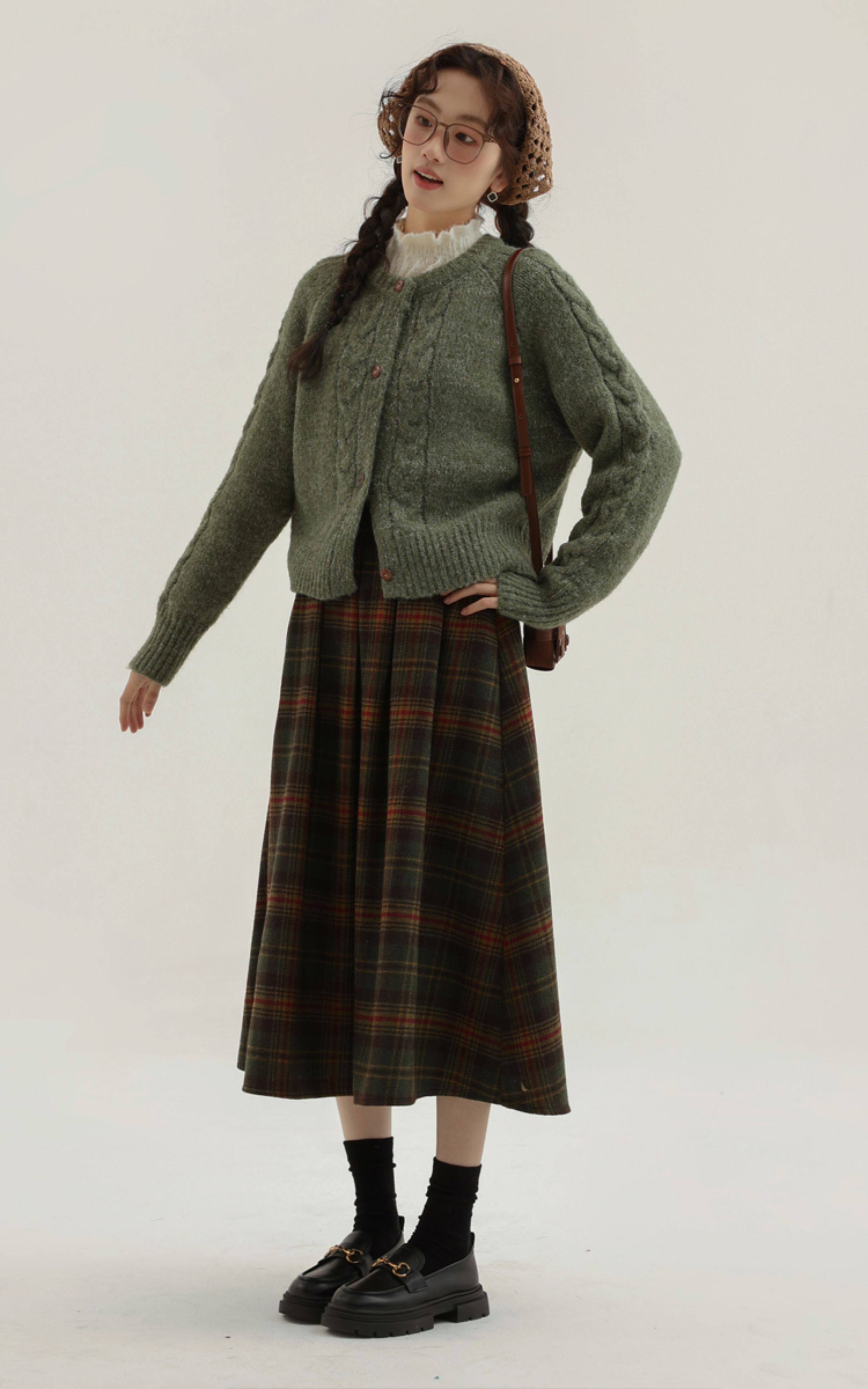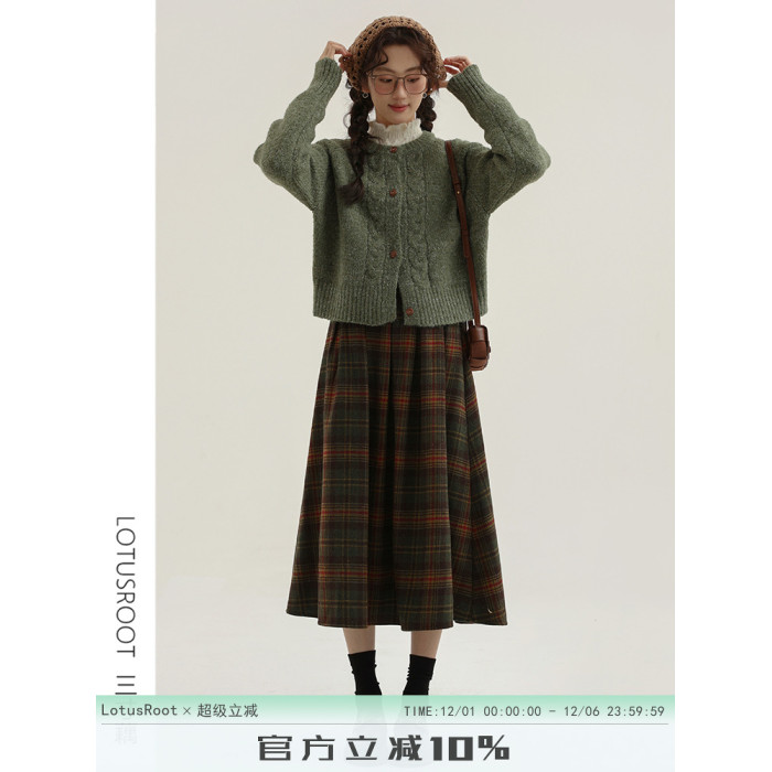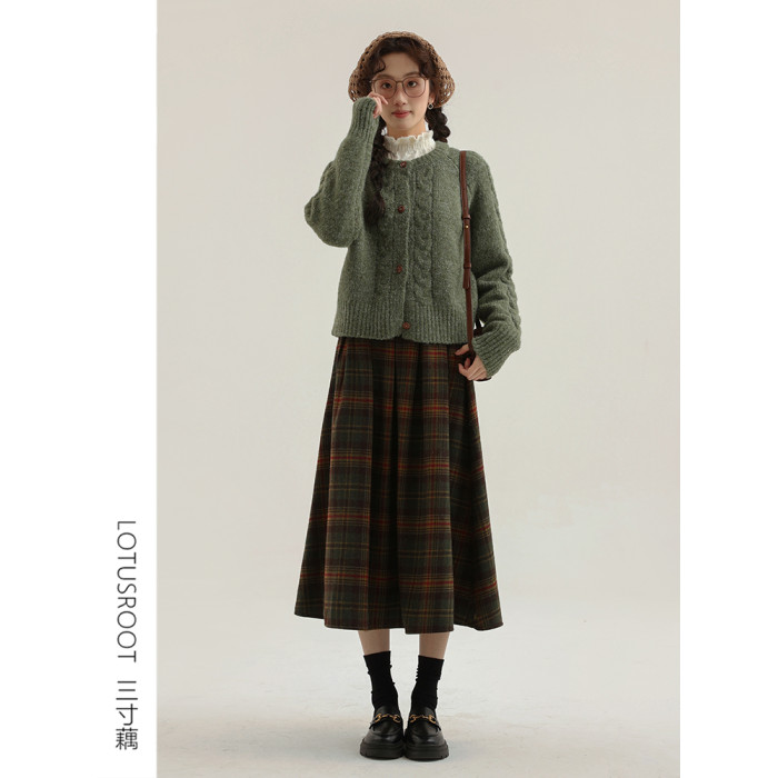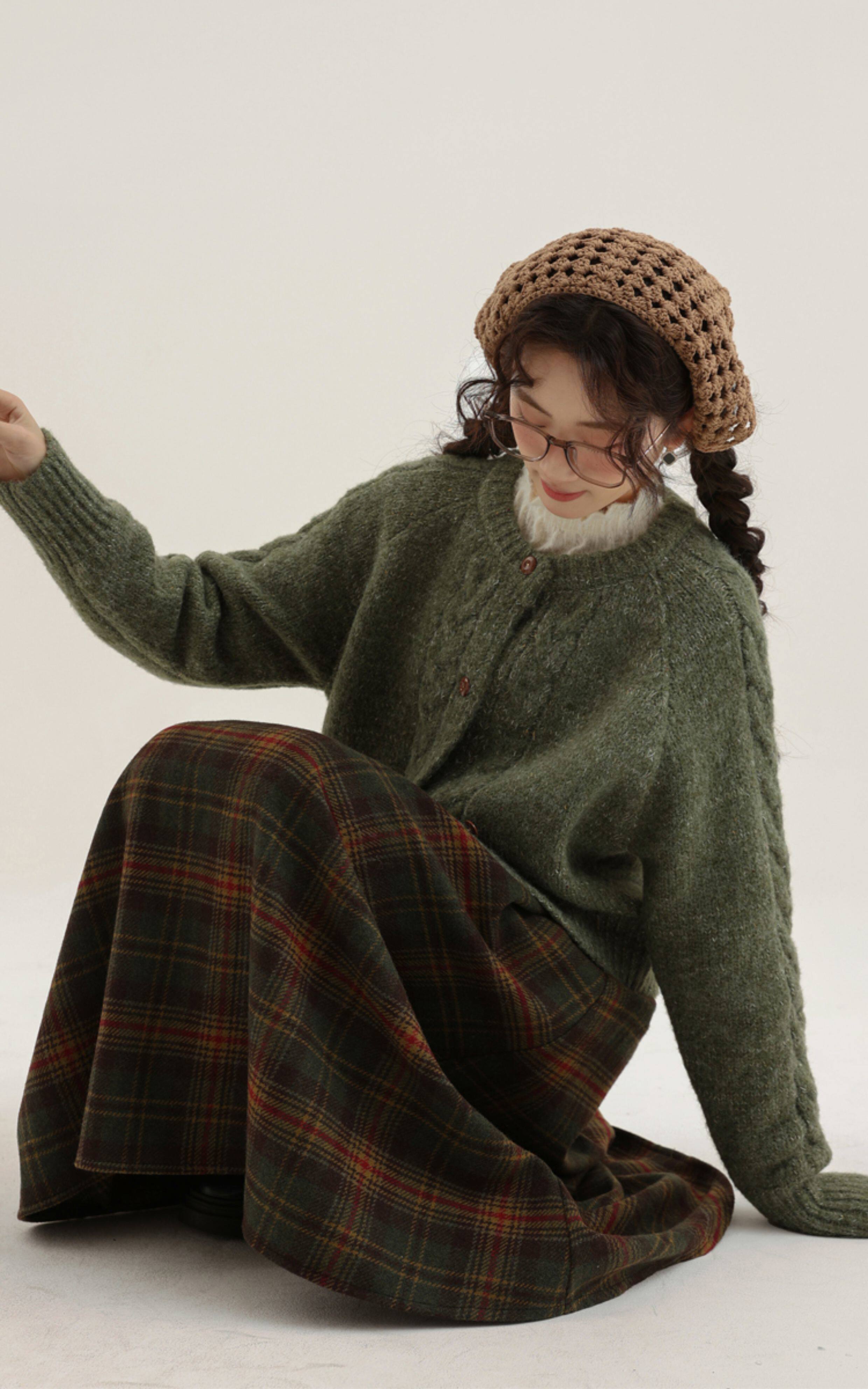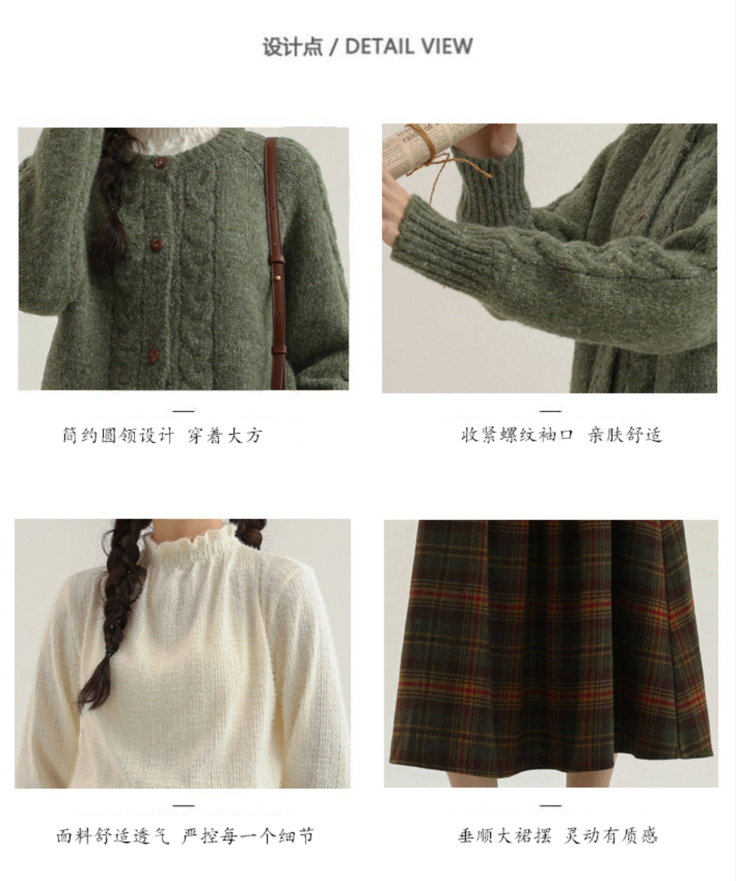 【三寸藕】冬季復古綠色針織開衫麻花紋軟糯森系毛衣甜美氣質外套